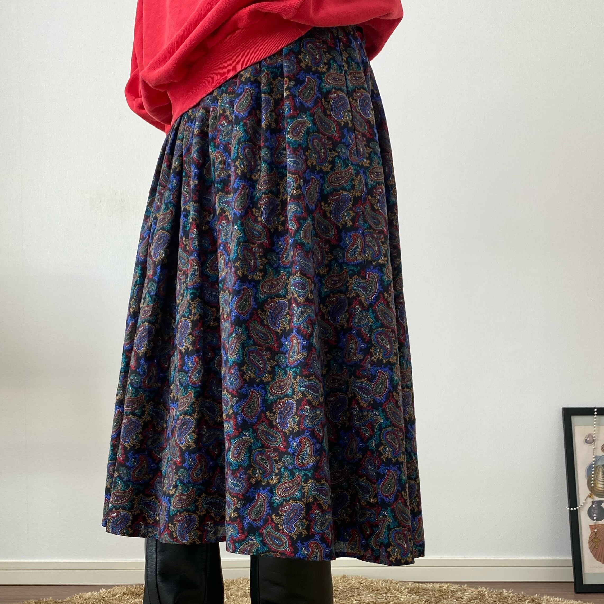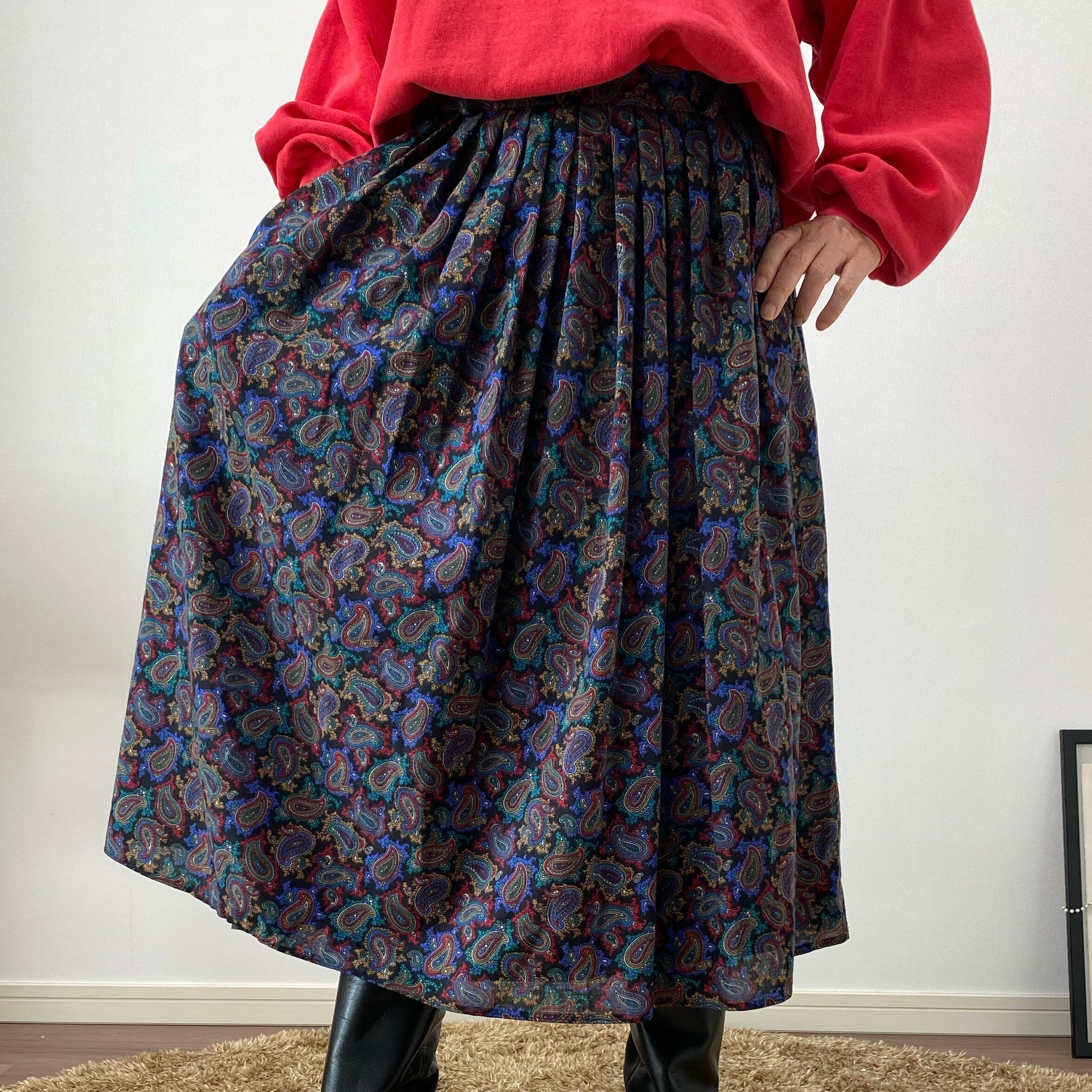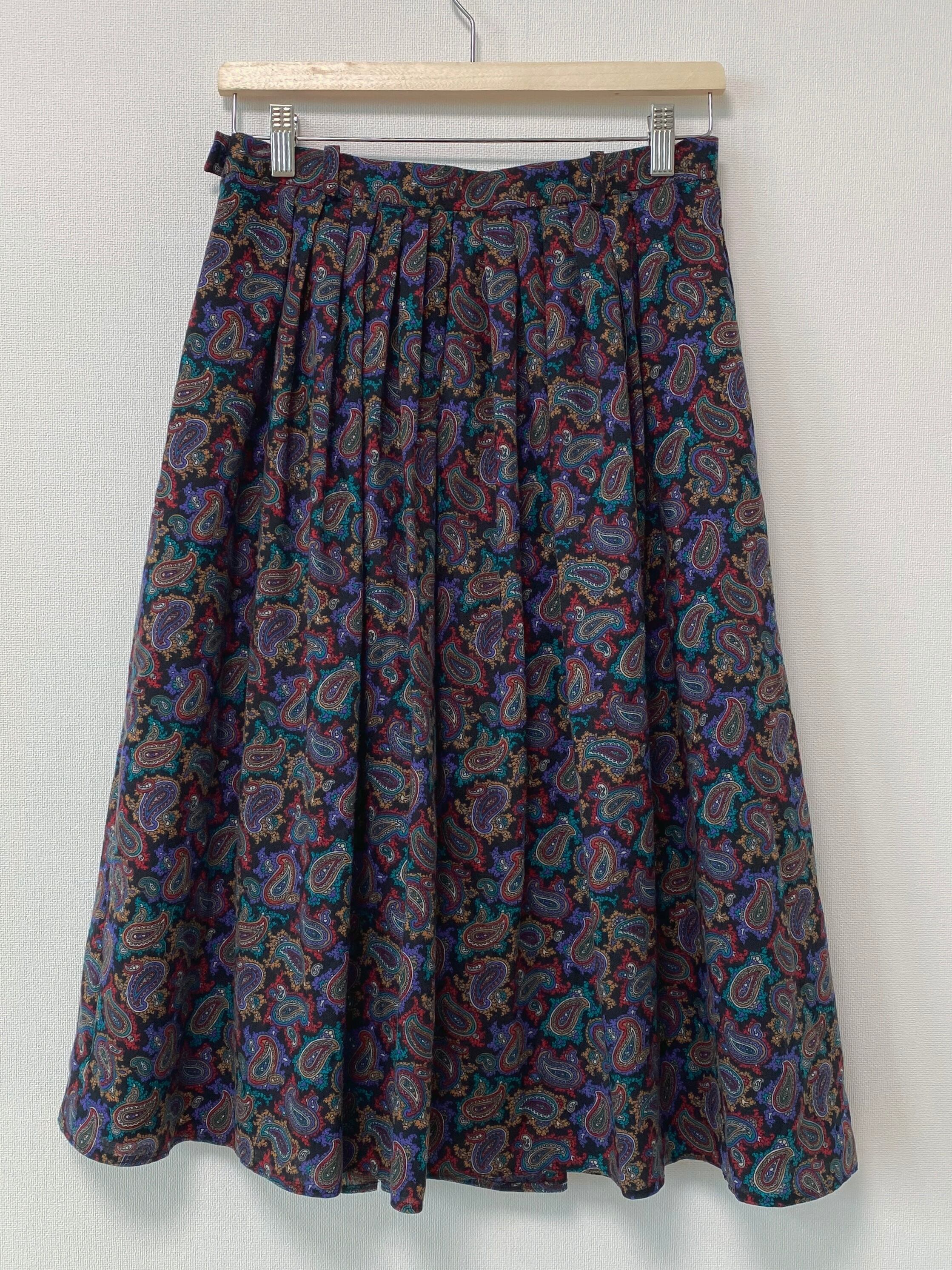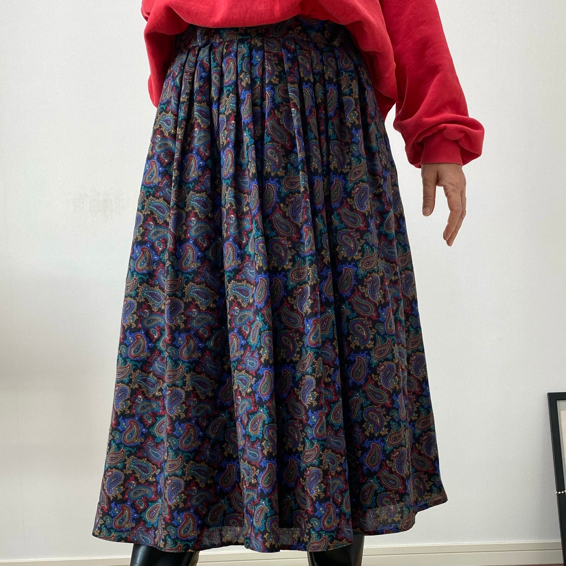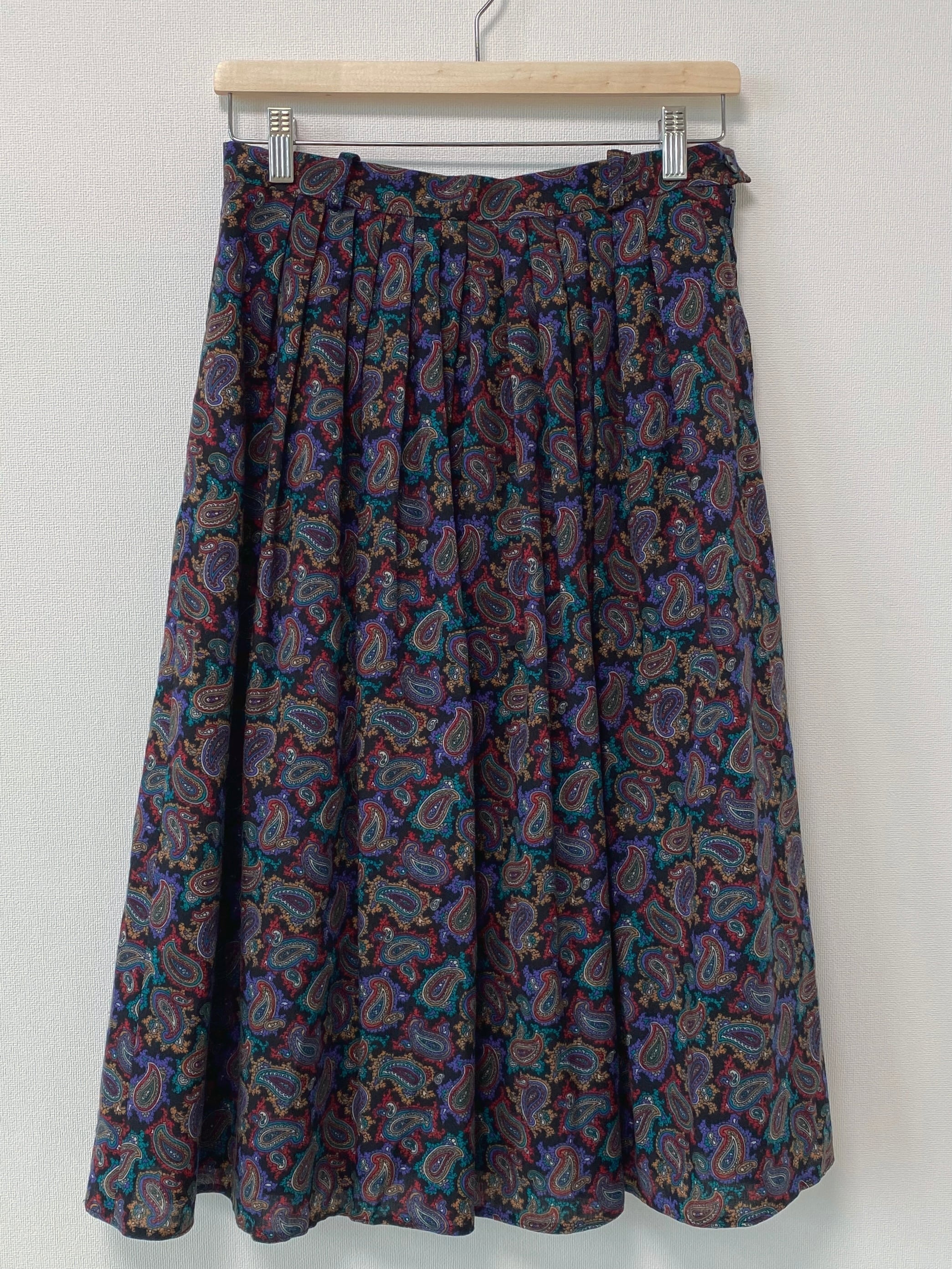 タック使いでボリュームたっぷりのフレアースカート。透け感のある柔らかい素材がエアリーです。ベルトループ付き。