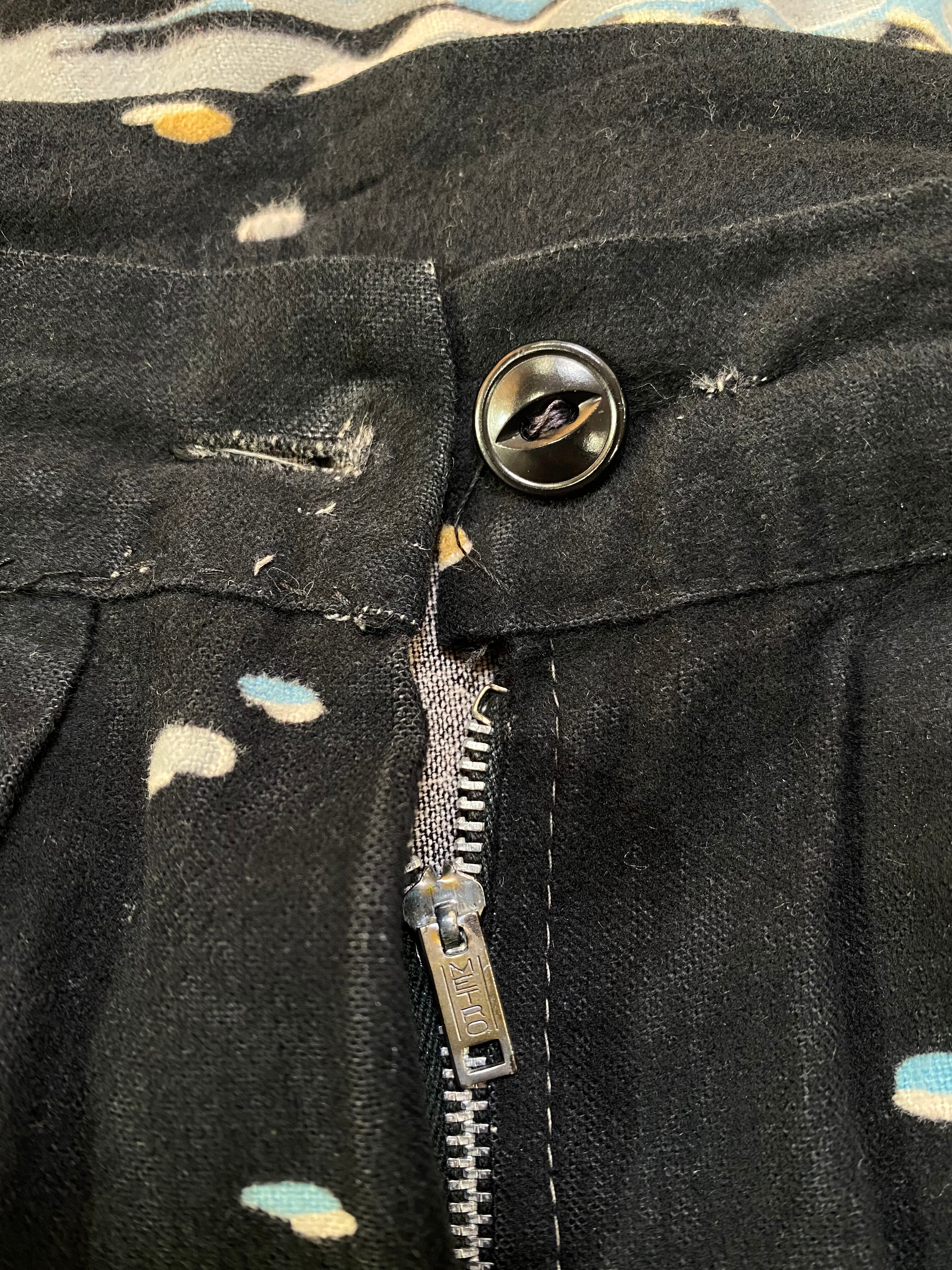 {コンディション}ウエストボタン近辺、補修後とほつれがあります。フロントに2箇所、小さなプリントが剥げています。使用感はありますが、他ダメージは見受けられず、ほぼ良いコンディションです。