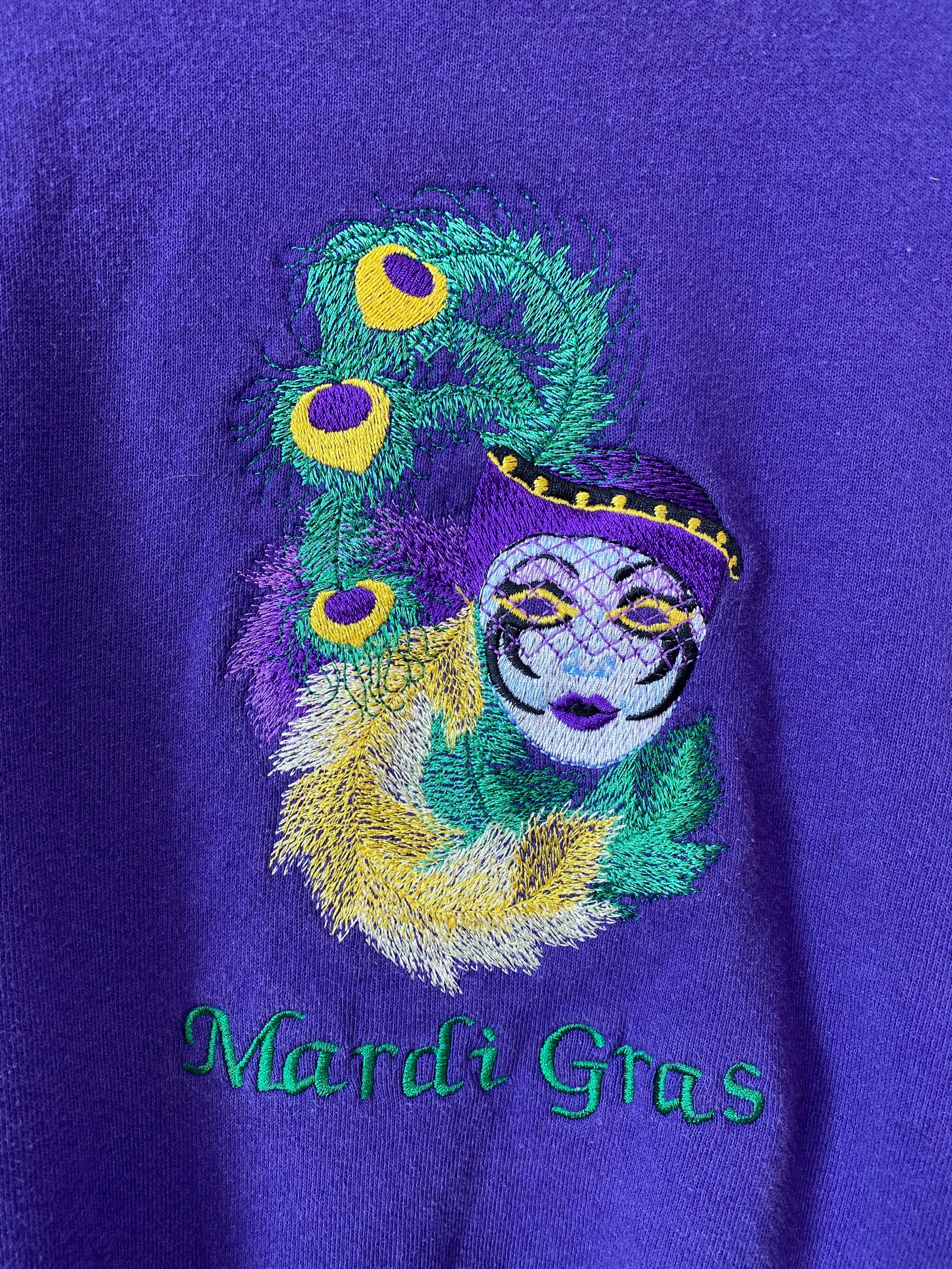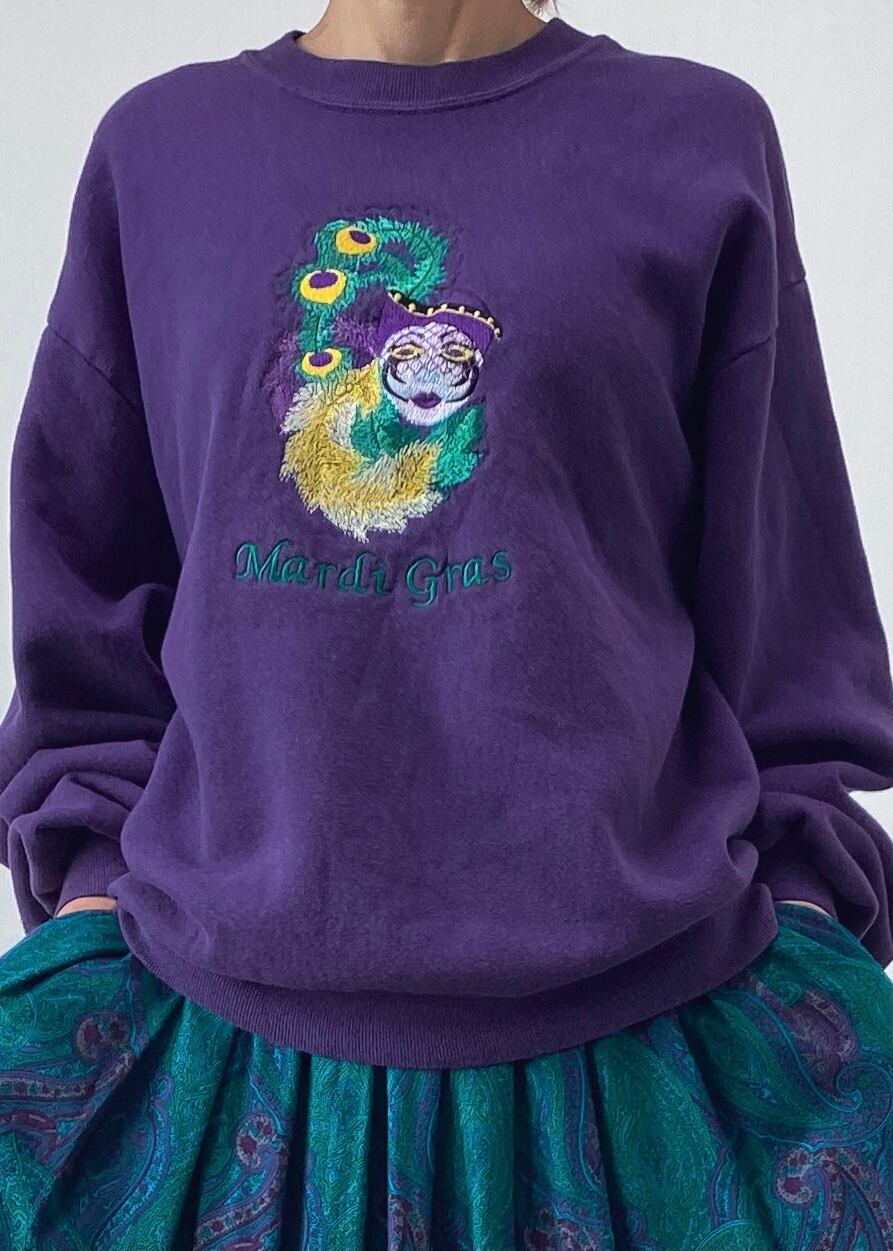 孔雀の羽根と貴婦人の刺繍が印象的なトレーナー。Lサイズなので着やすいですね。モデル着用の色が現物とほぼ同じです。