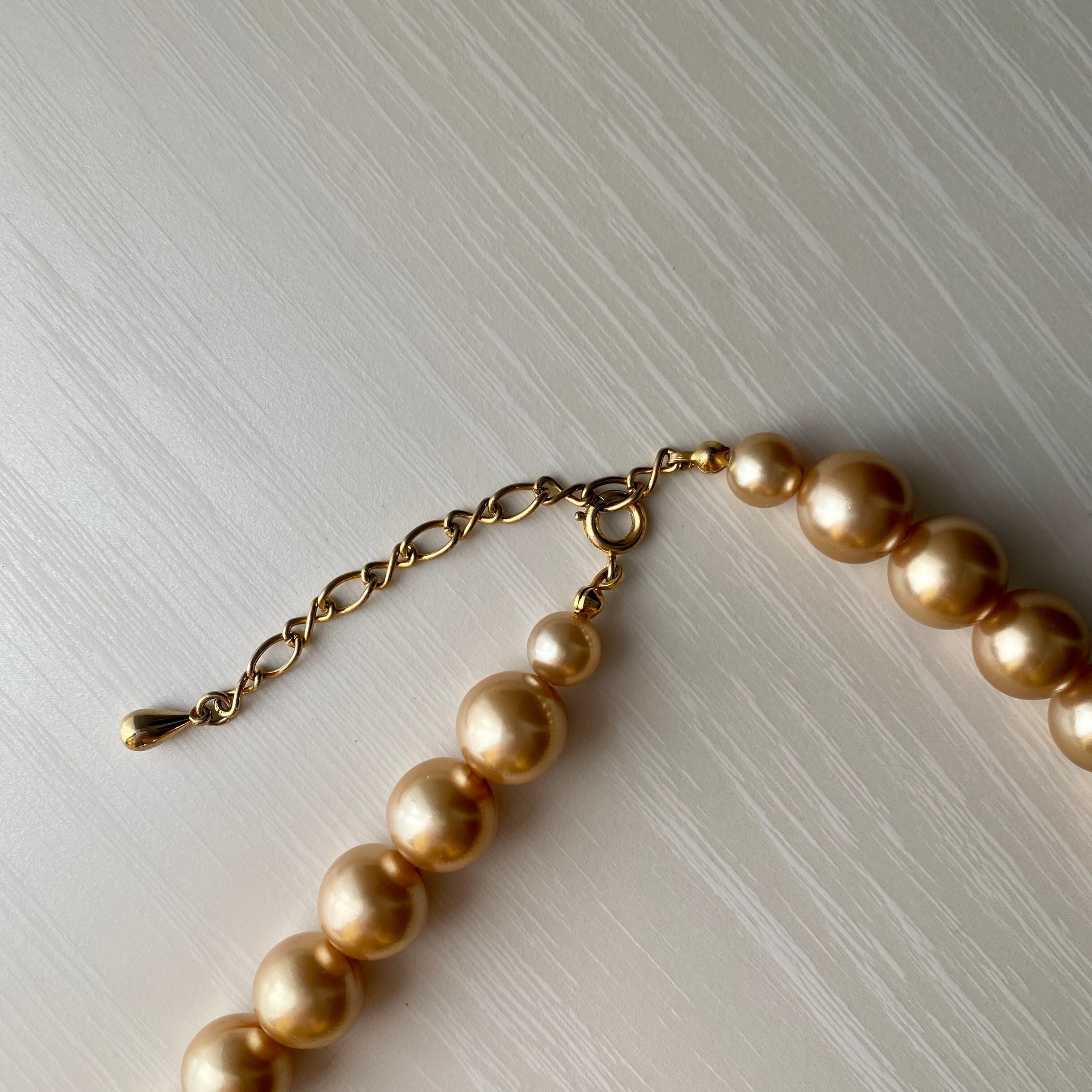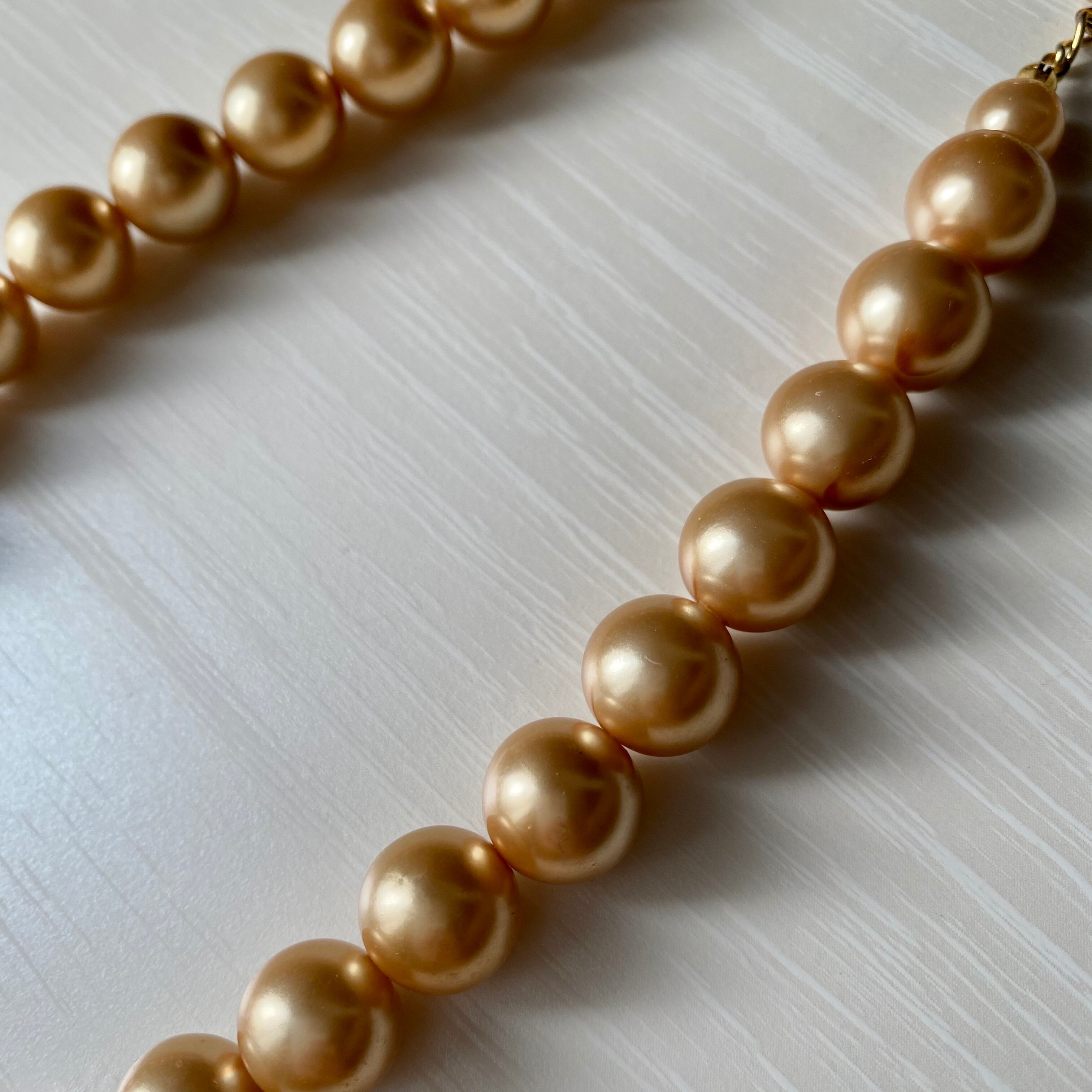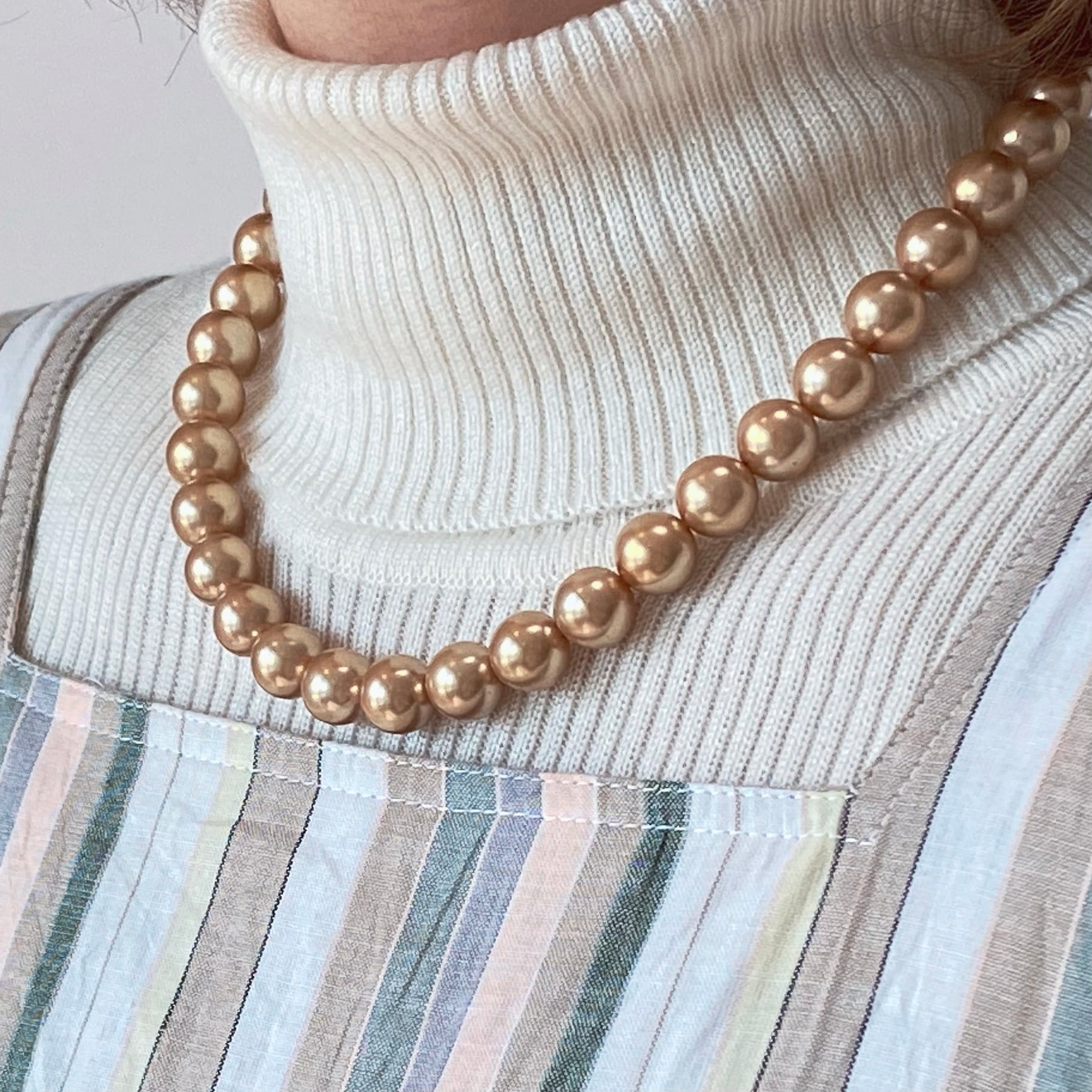 大粒のパールビーズネックレス。暖かみのあるピンクベージュでカジュアルにお使い頂けます。モデル着用画像が現物に近い色です。