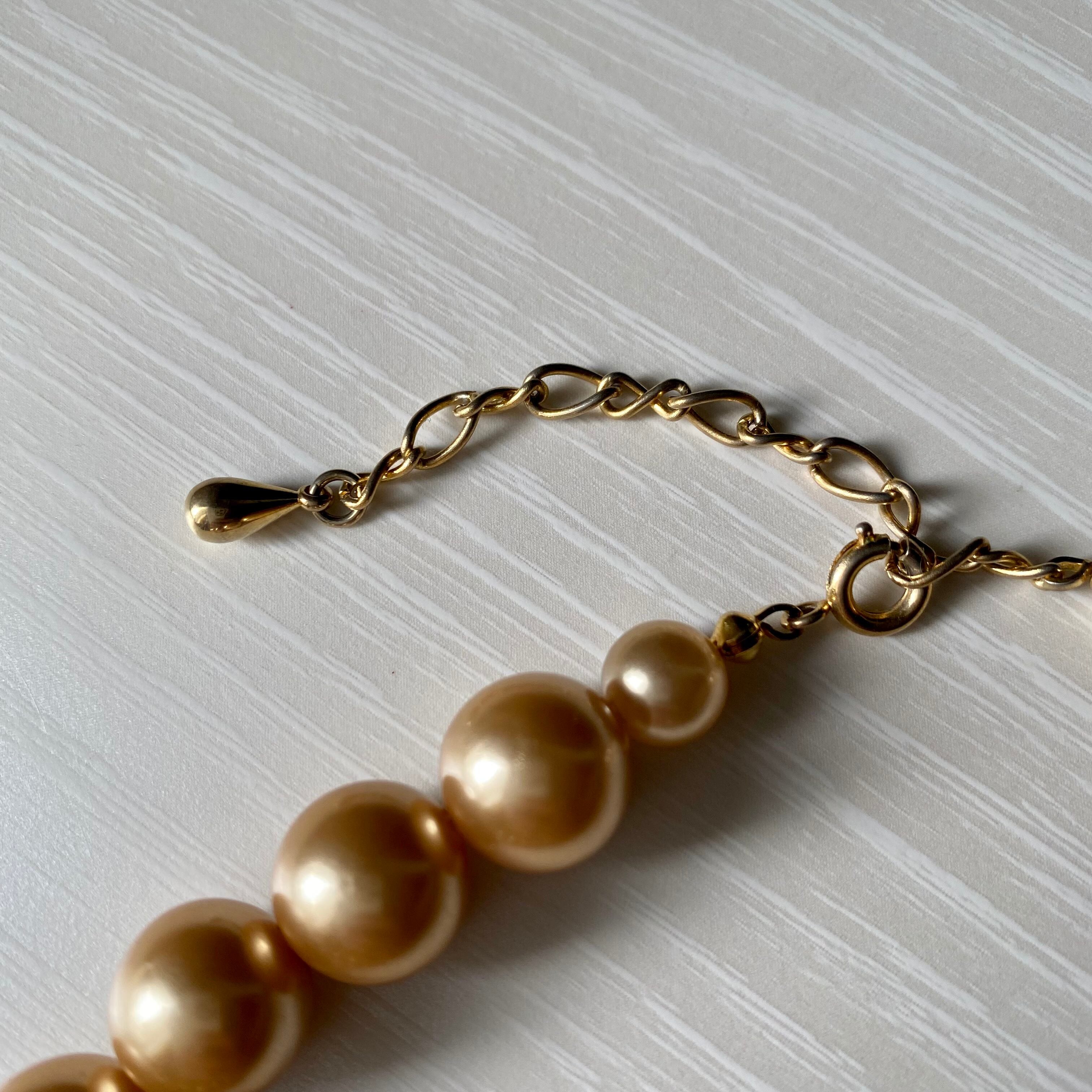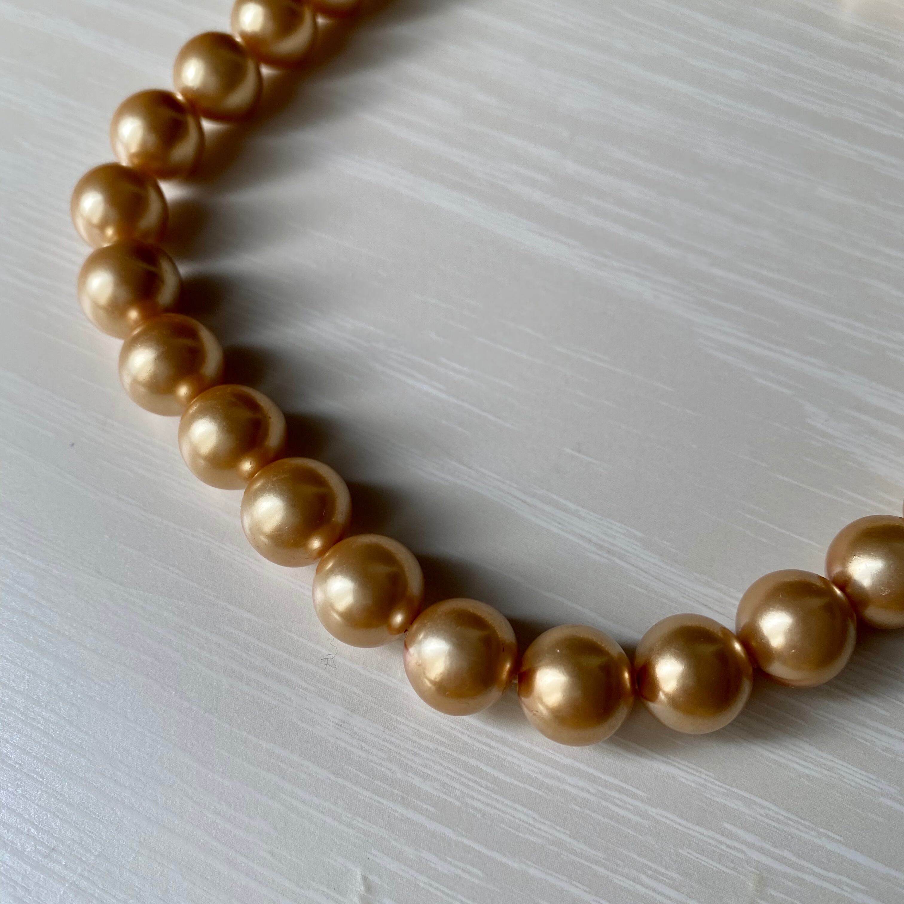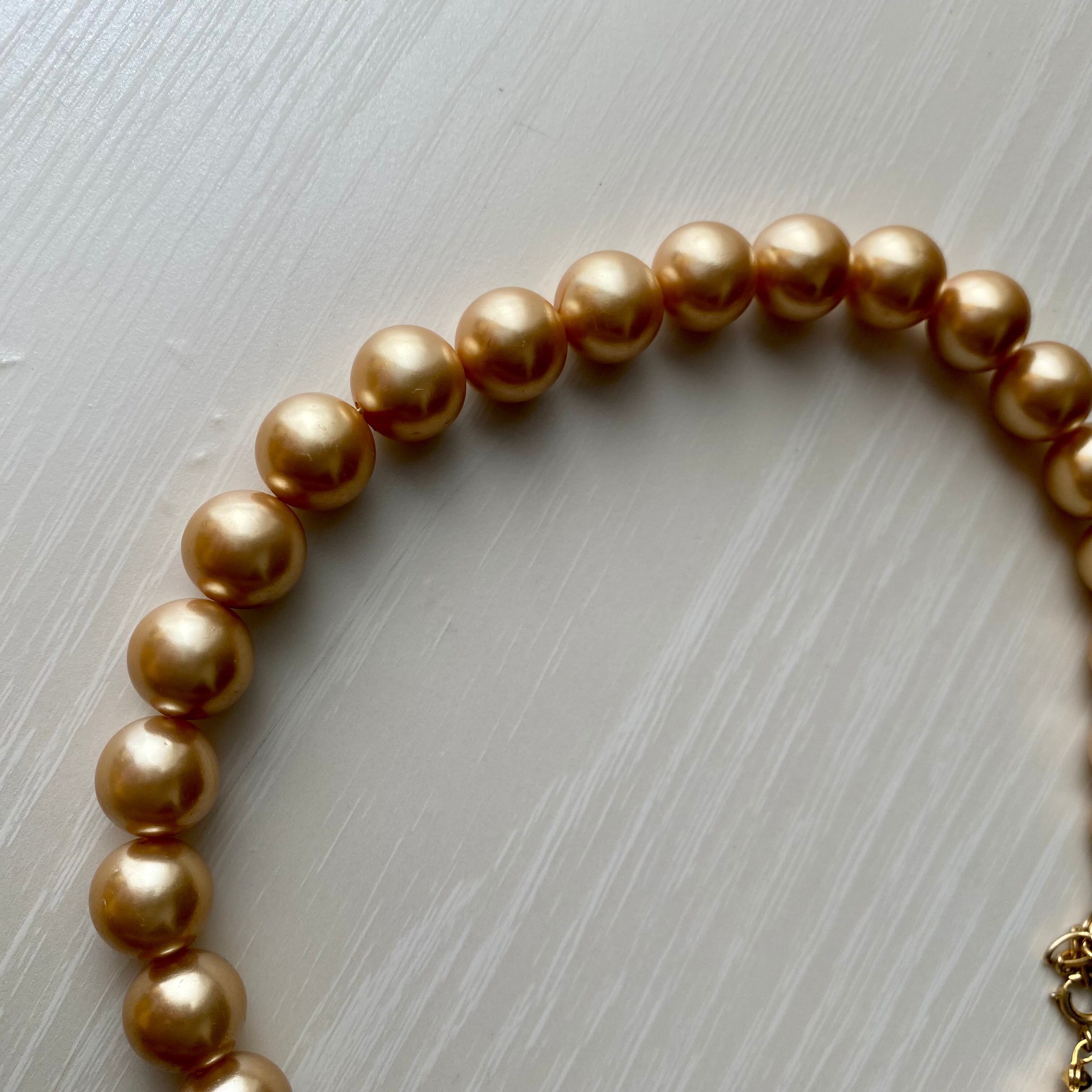 大粒のパールビーズネックレス。暖かみのあるピンクベージュでカジュアルにお使い頂けます。モデル着用画像が現物に近い色です。