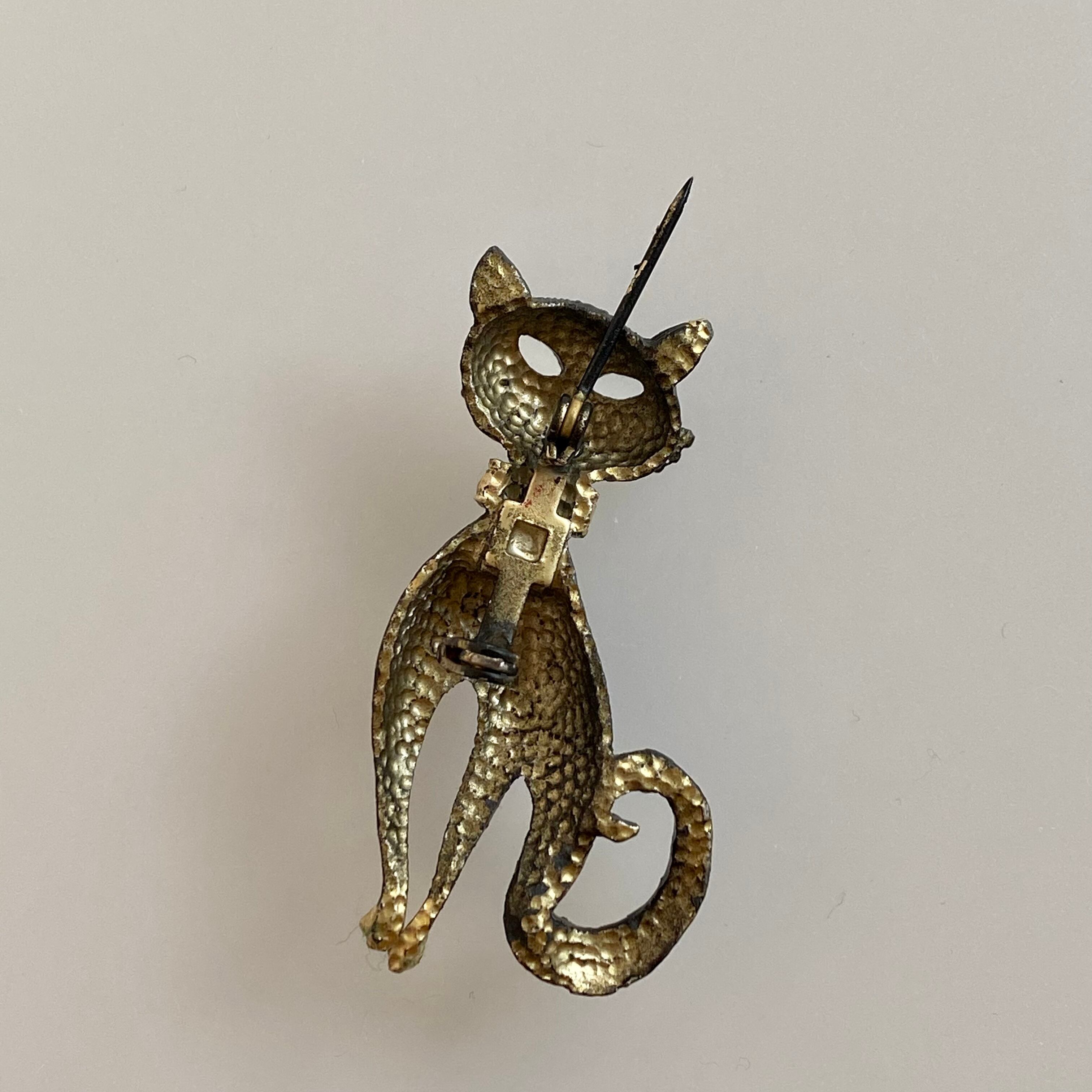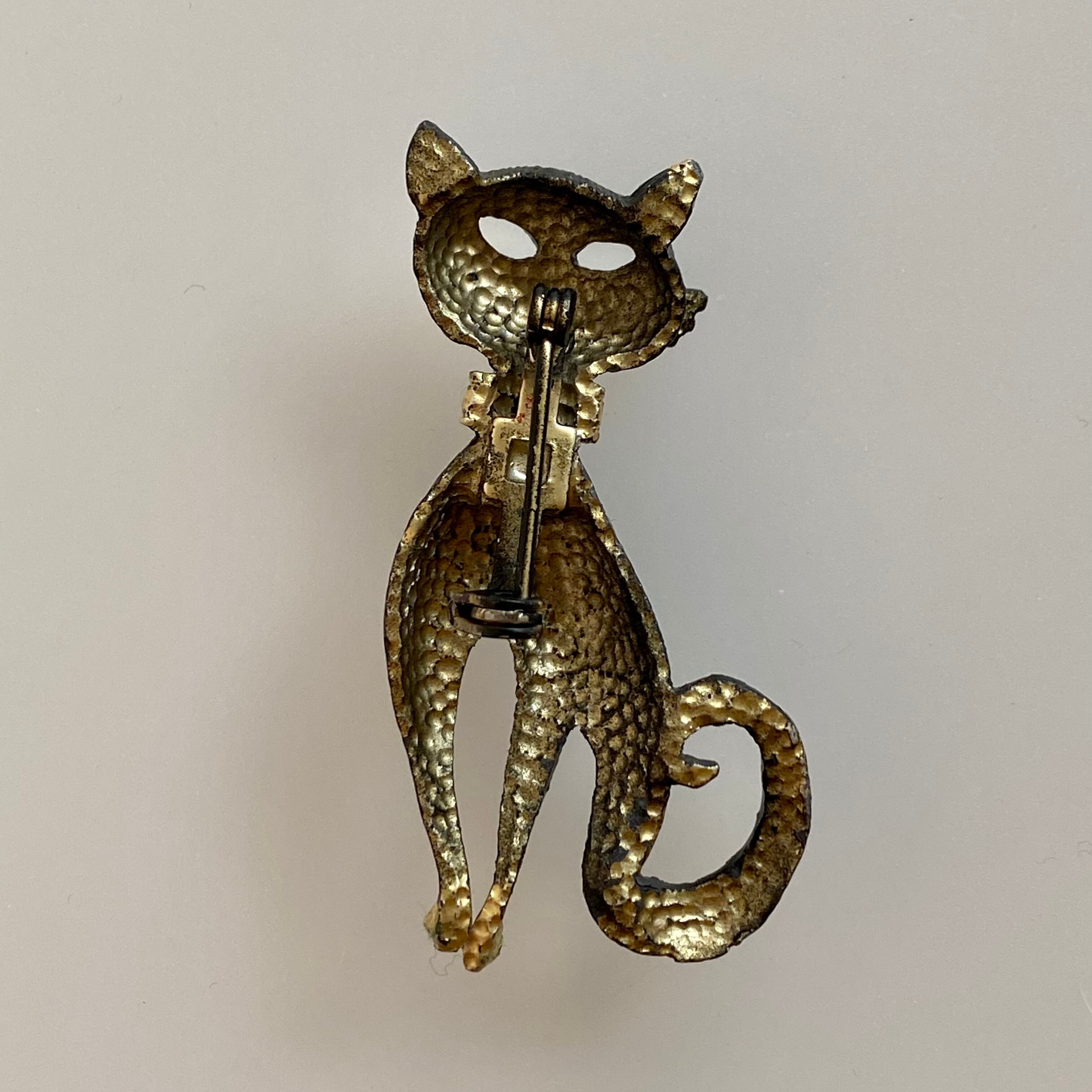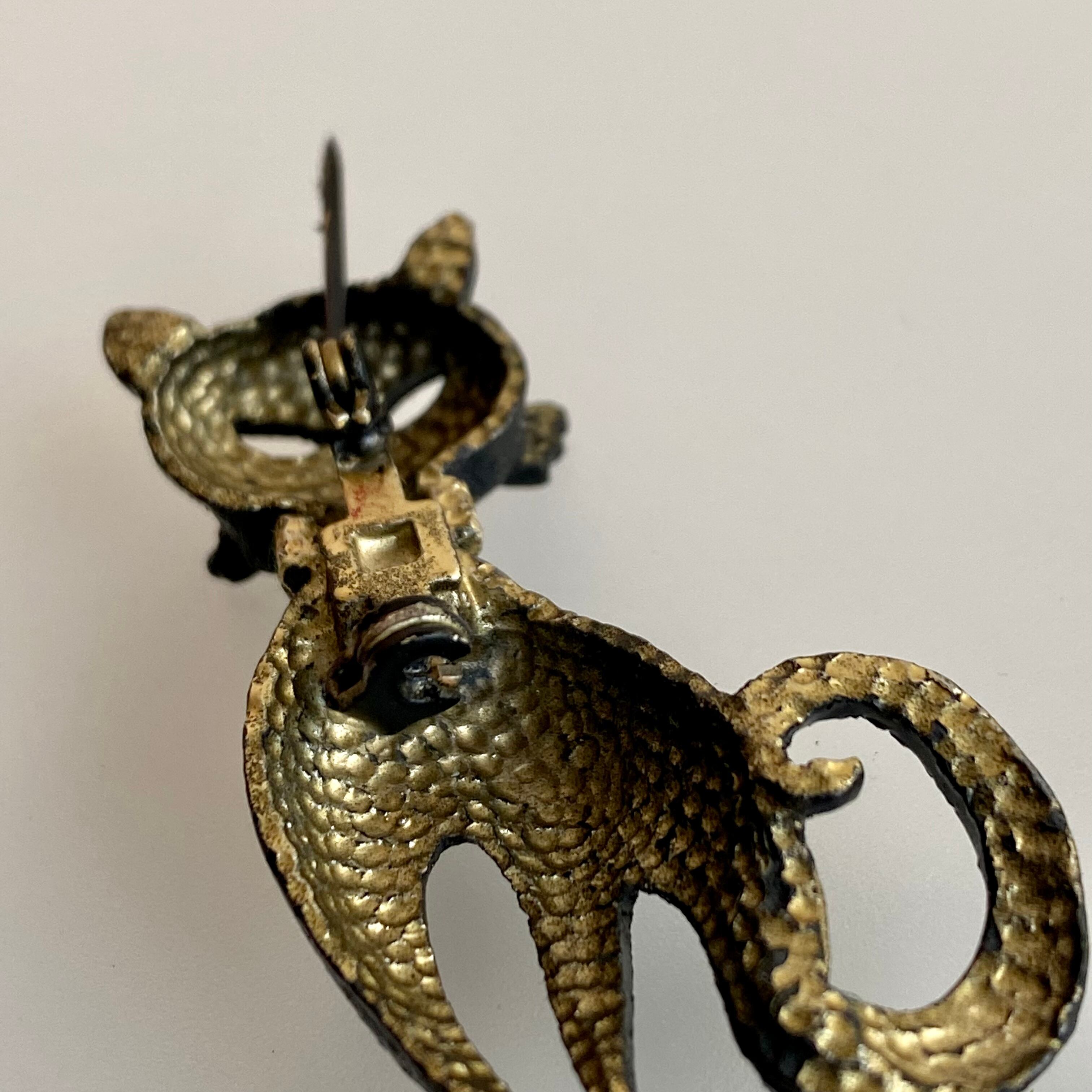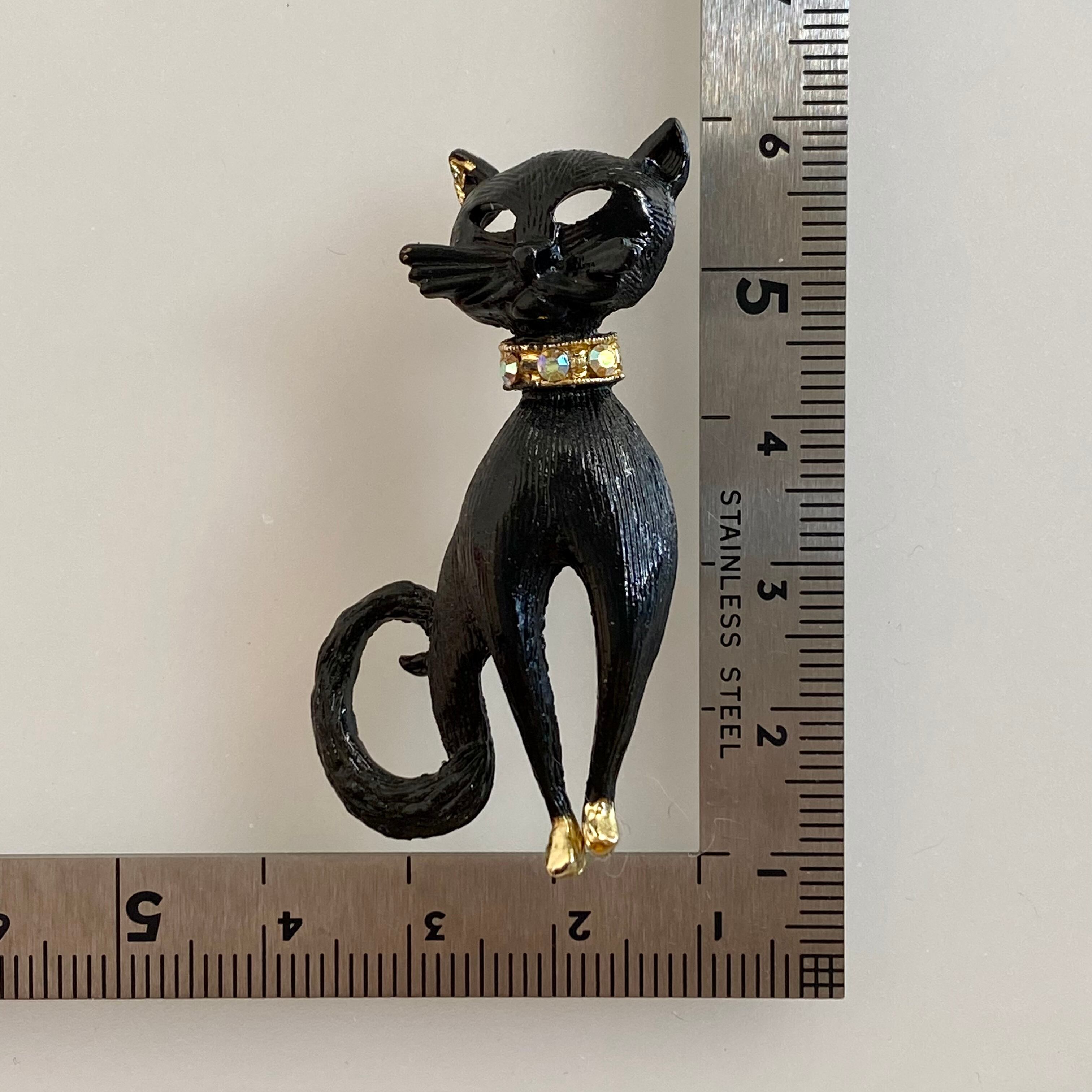 オーロララインストーンの首輪をした黒猫ちゃん。足はゴールドでソックスネコちゃんのデザインです。姿勢良く座る姿と目がホールなのもクールな印象。右耳のメッキが禿げていますが可愛いです。