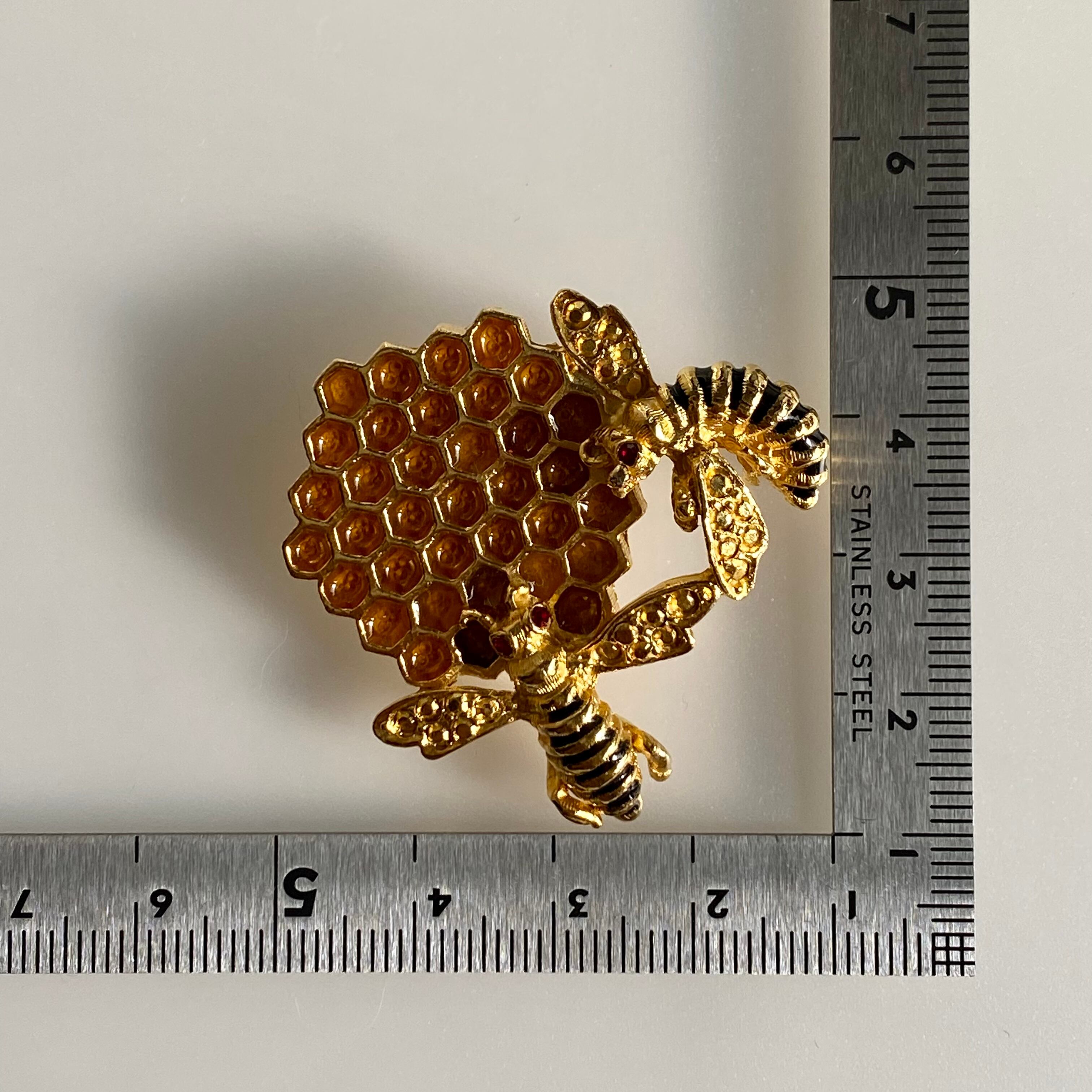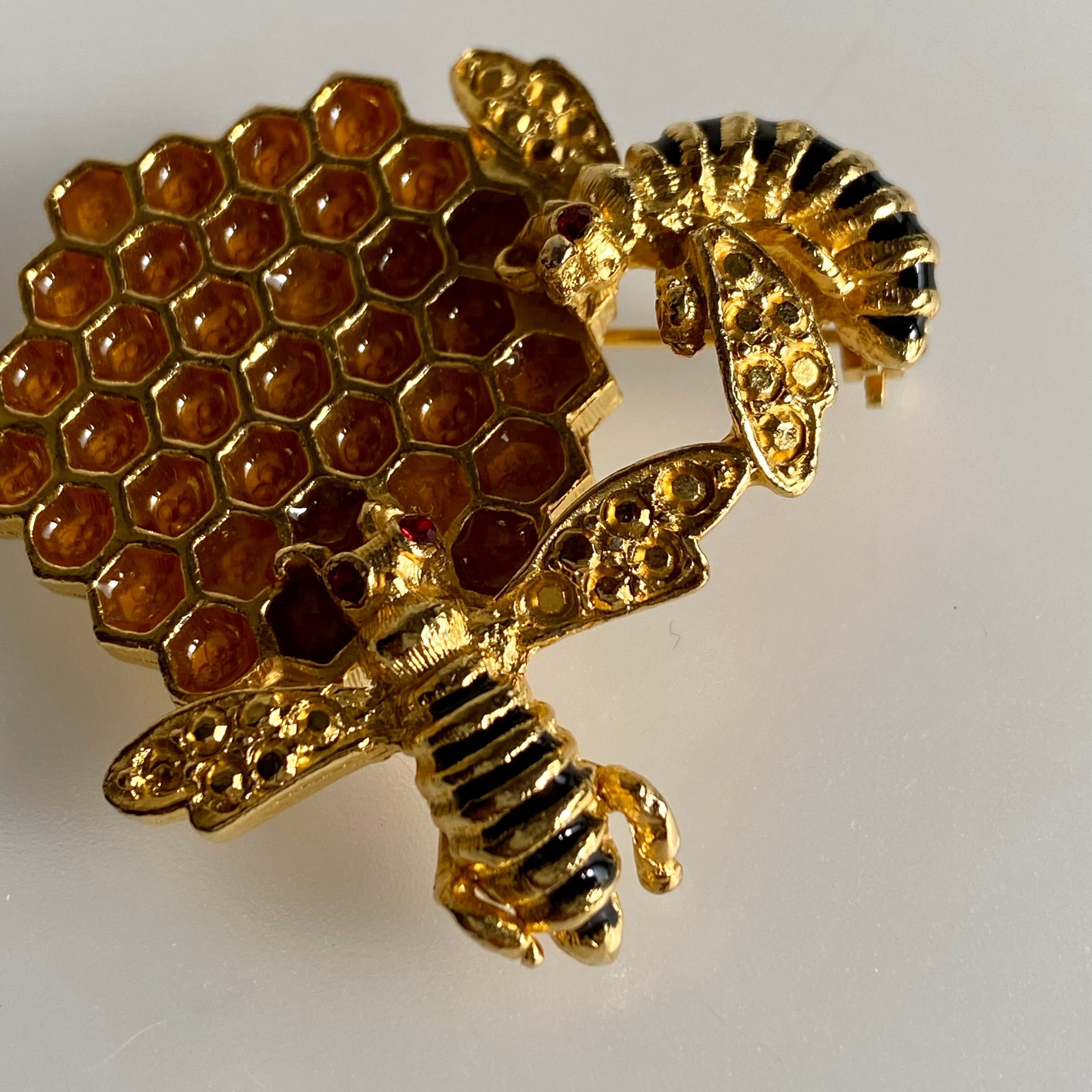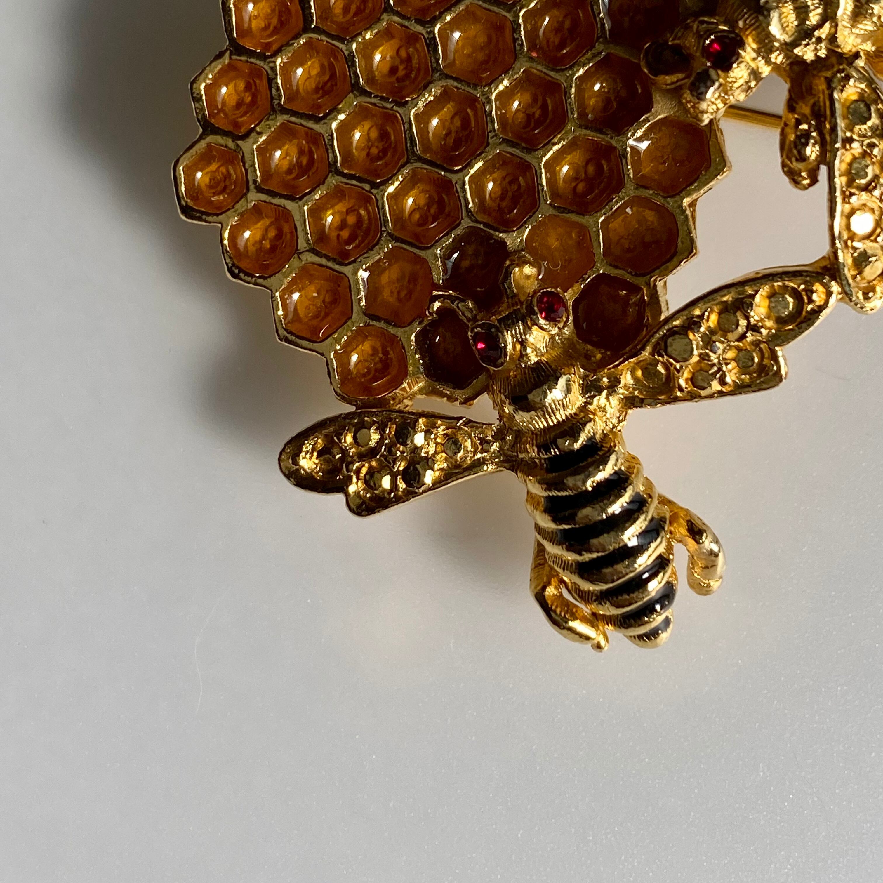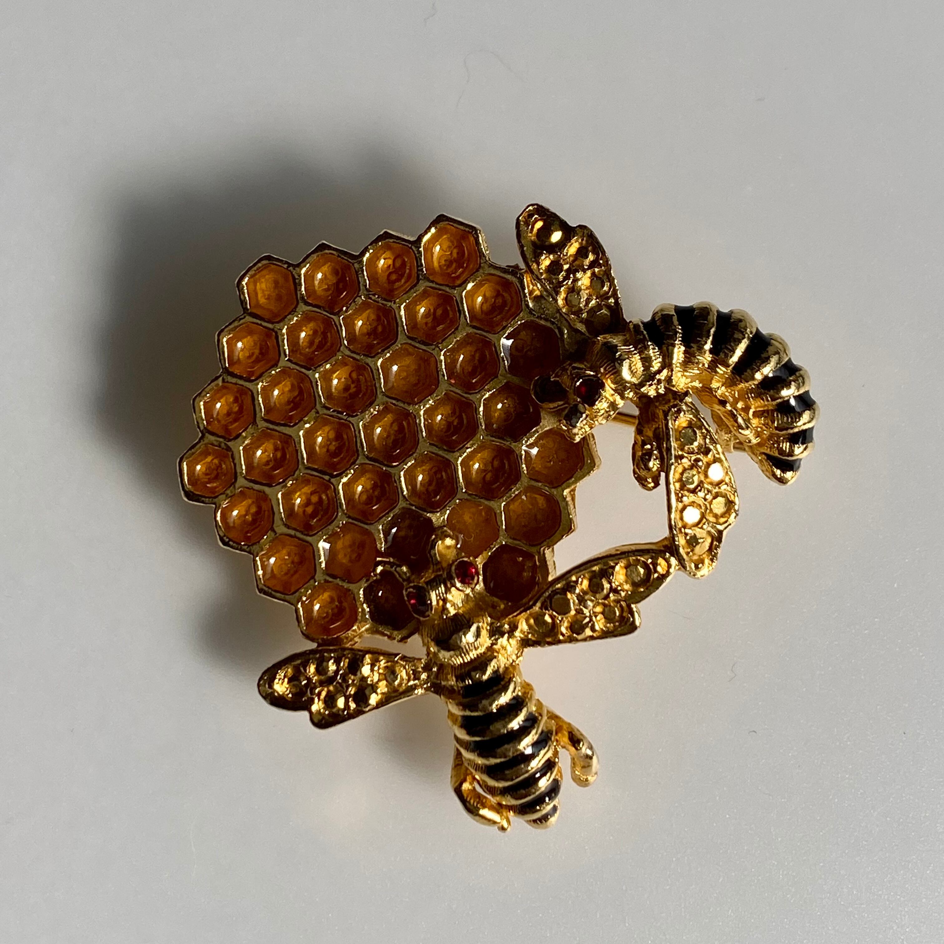 2匹のミツバチと蜂の巣。エナメルで施されたミツがリアルです。