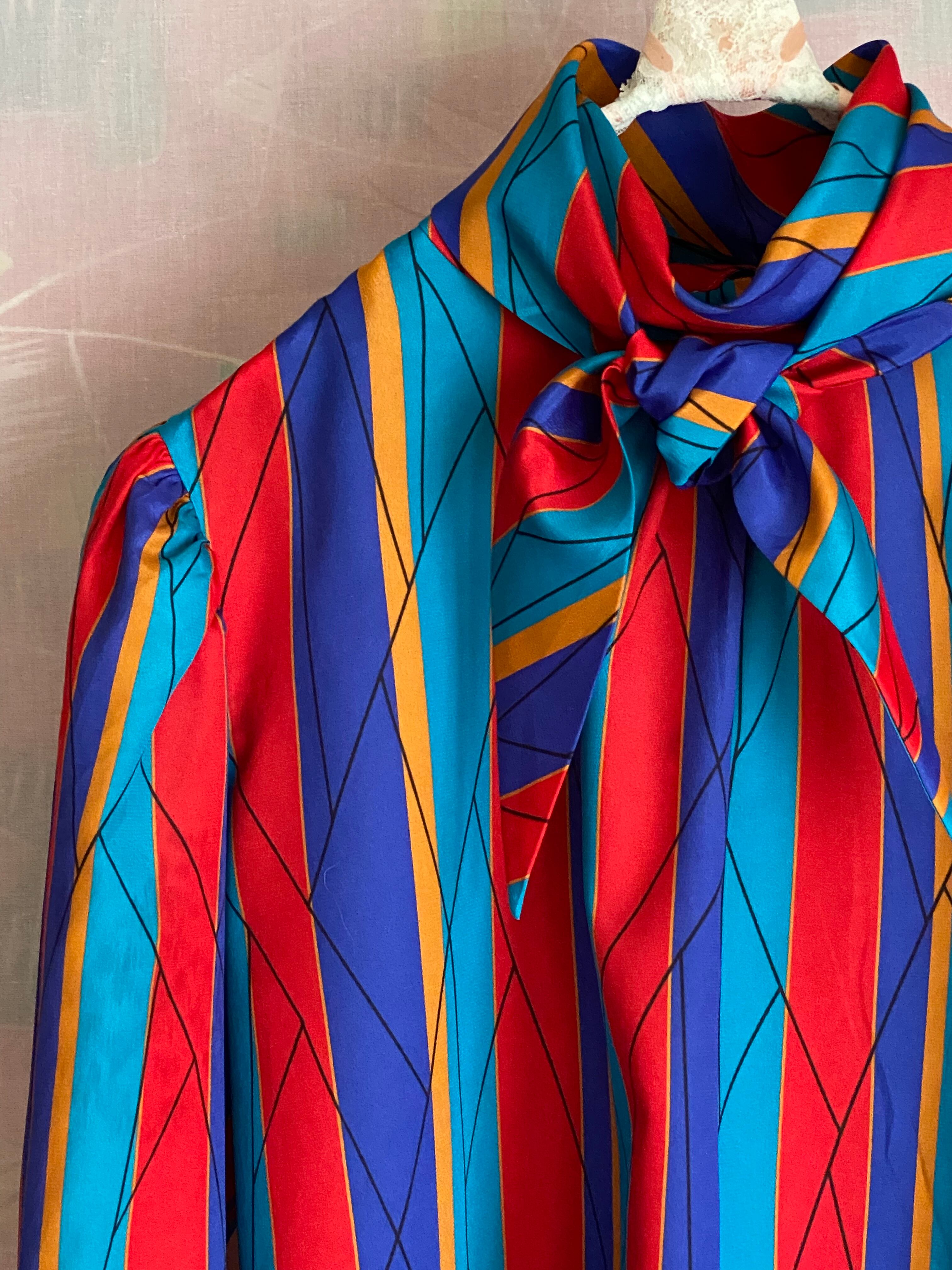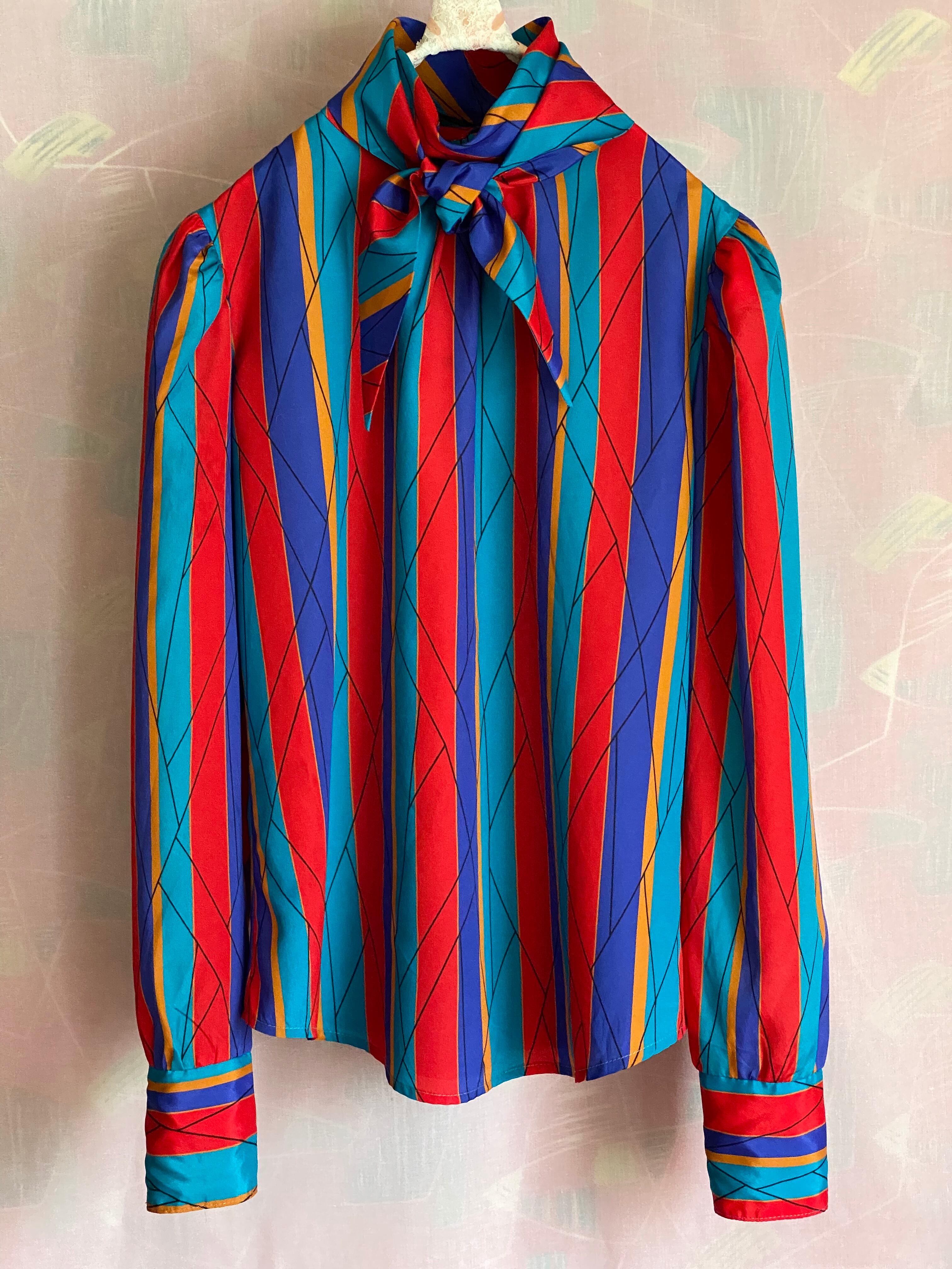 Used multicolor striped bowtie blouse