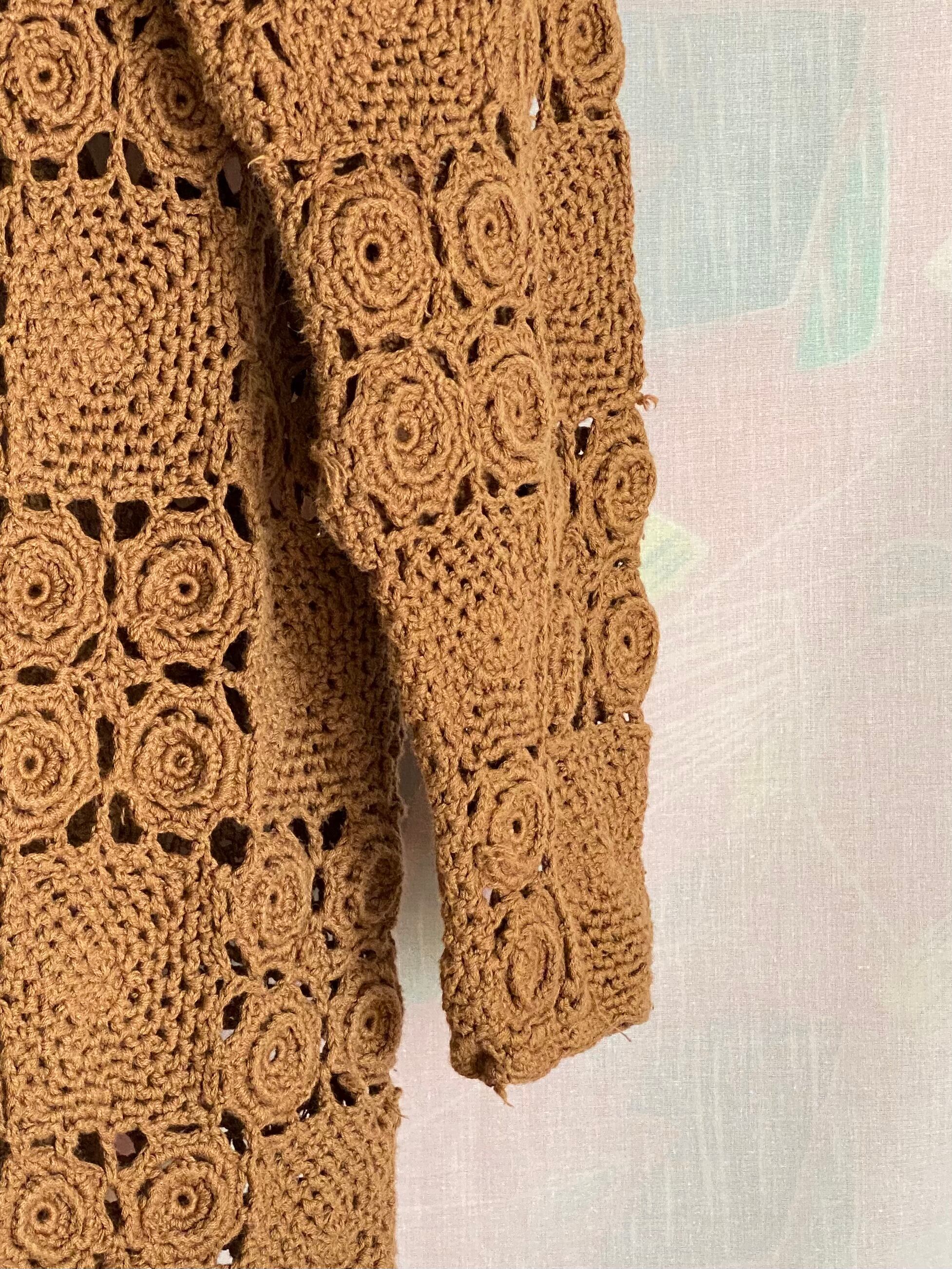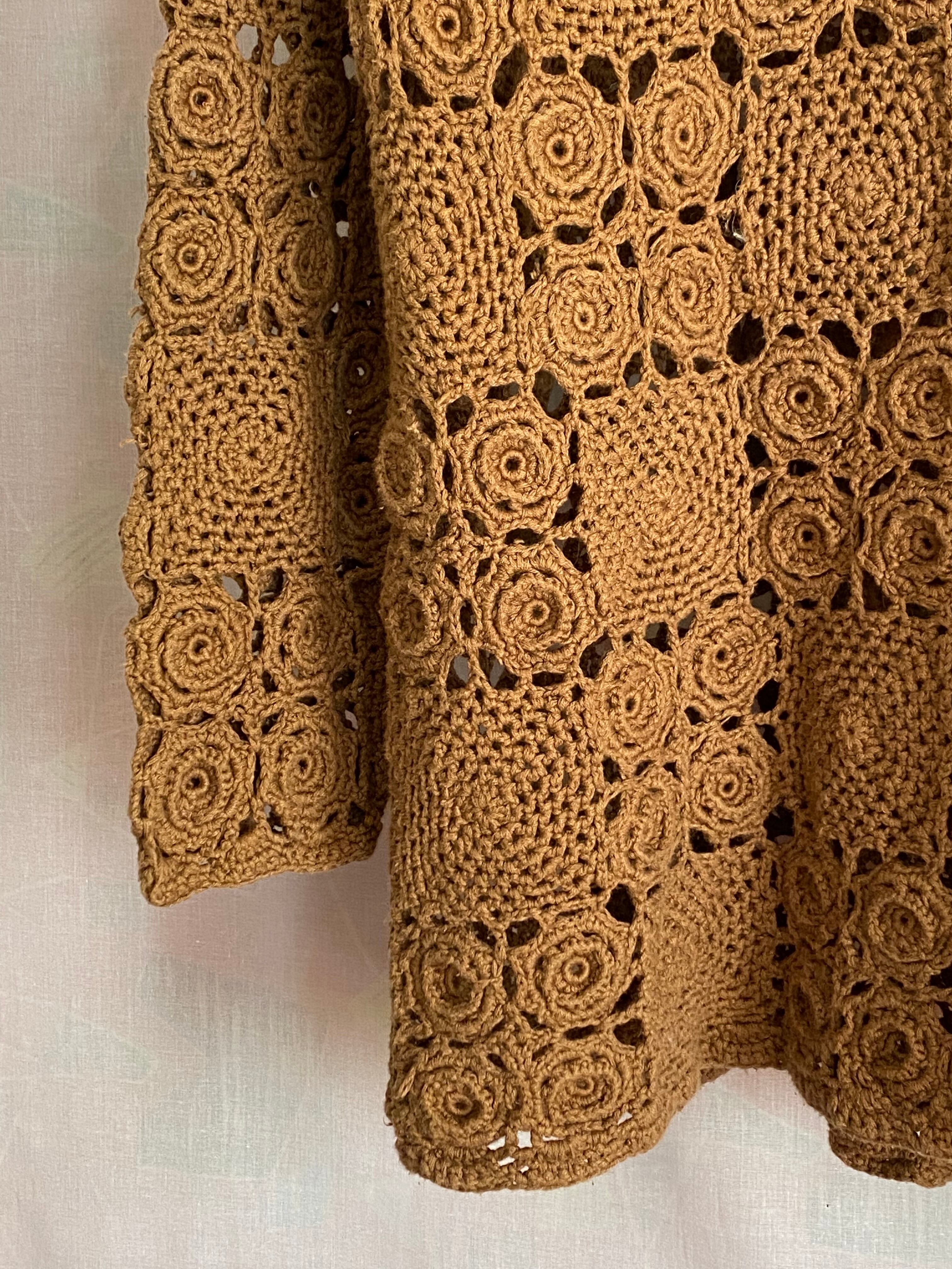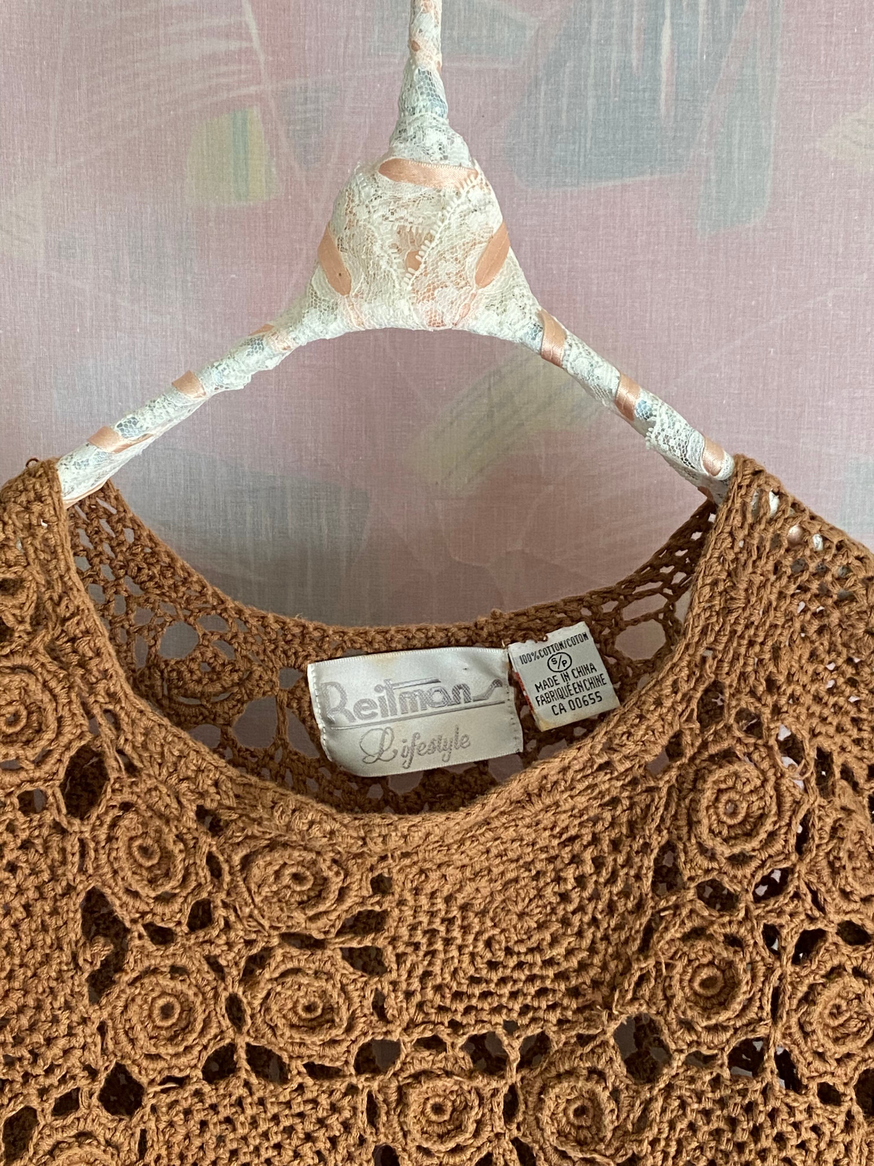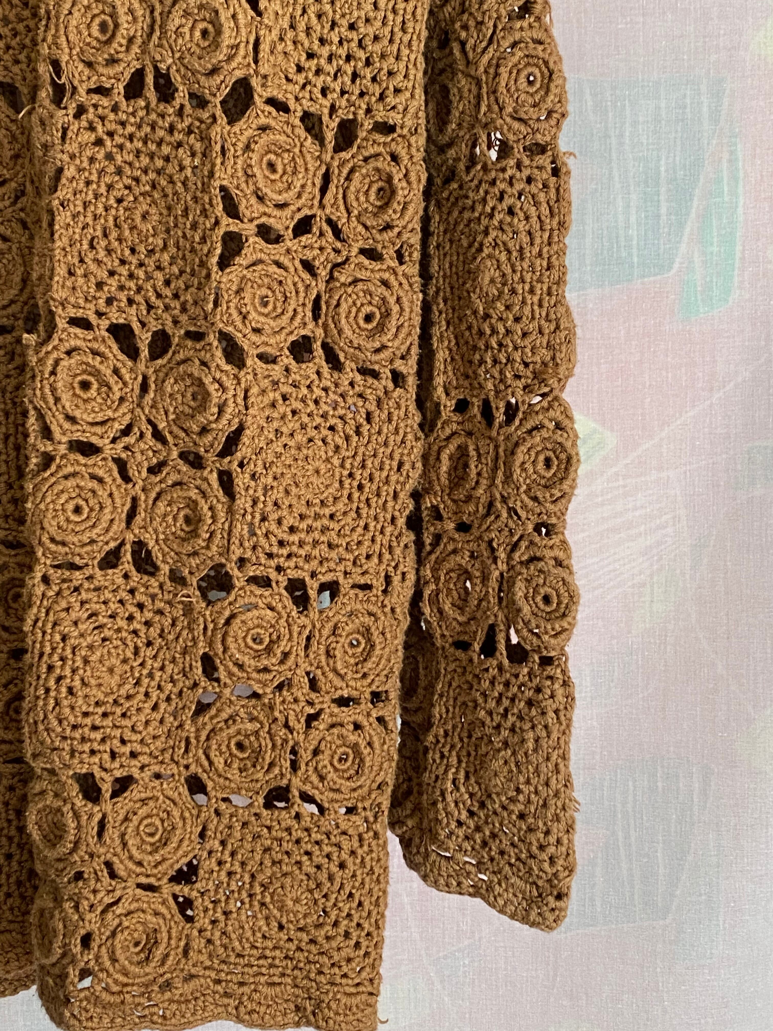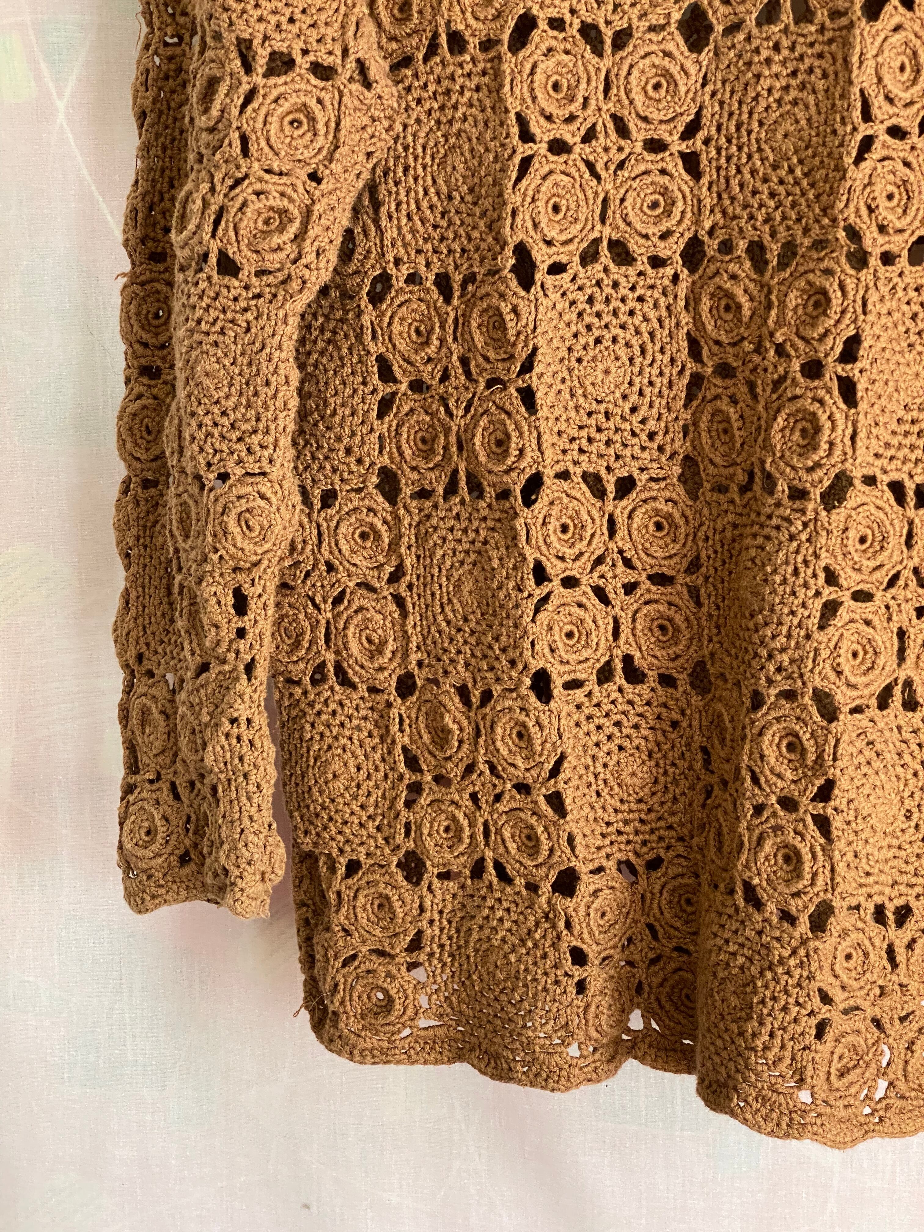 かぎ針編みのレーシーなセーター。程良い透け感で春はブラウスin、夏はキャミソールinで楽しめるお品です。