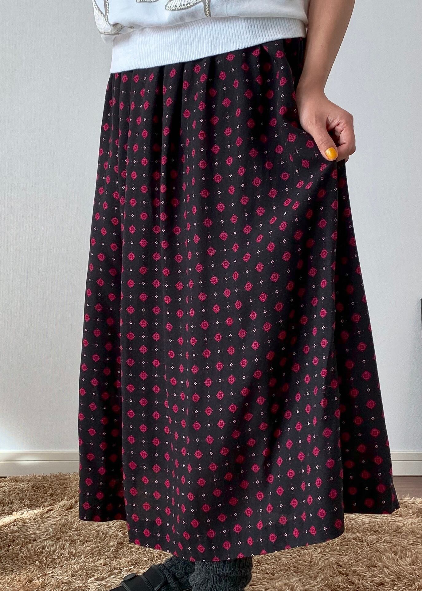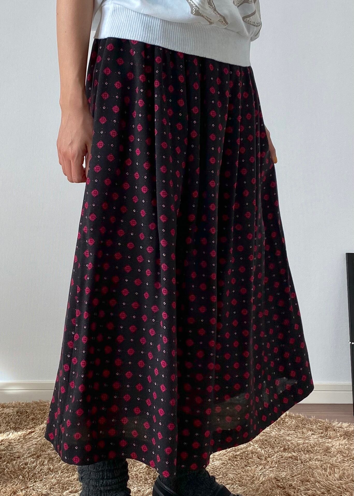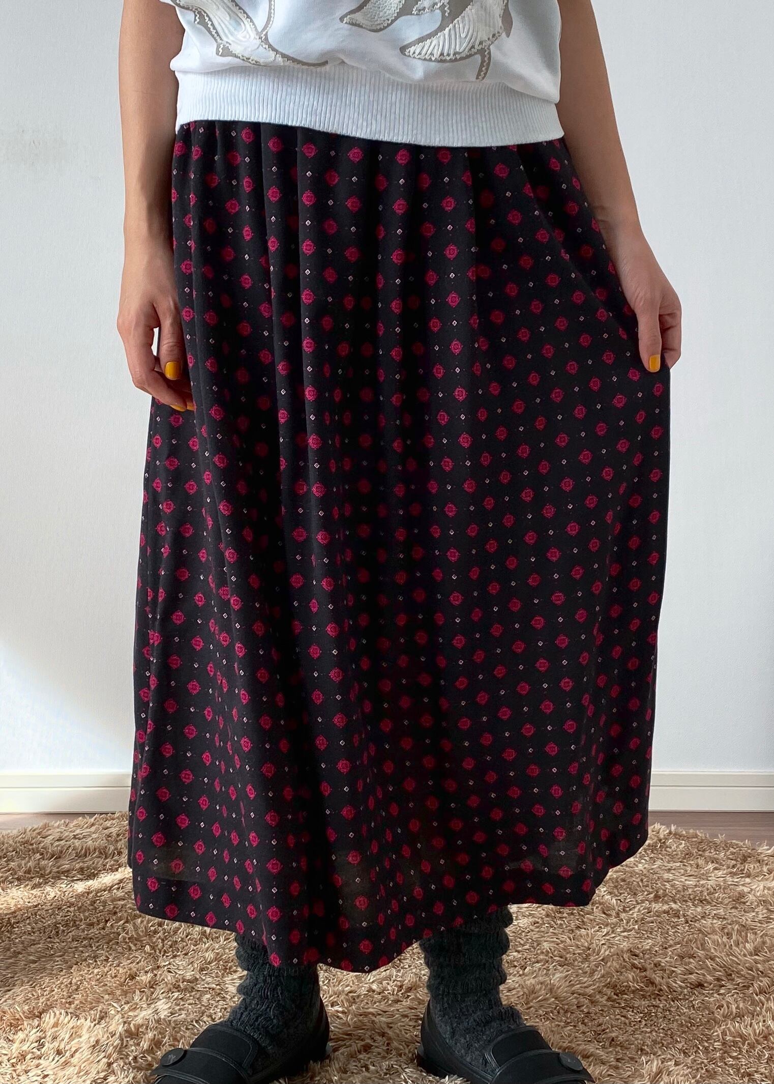 80's small pattern tuck skirt