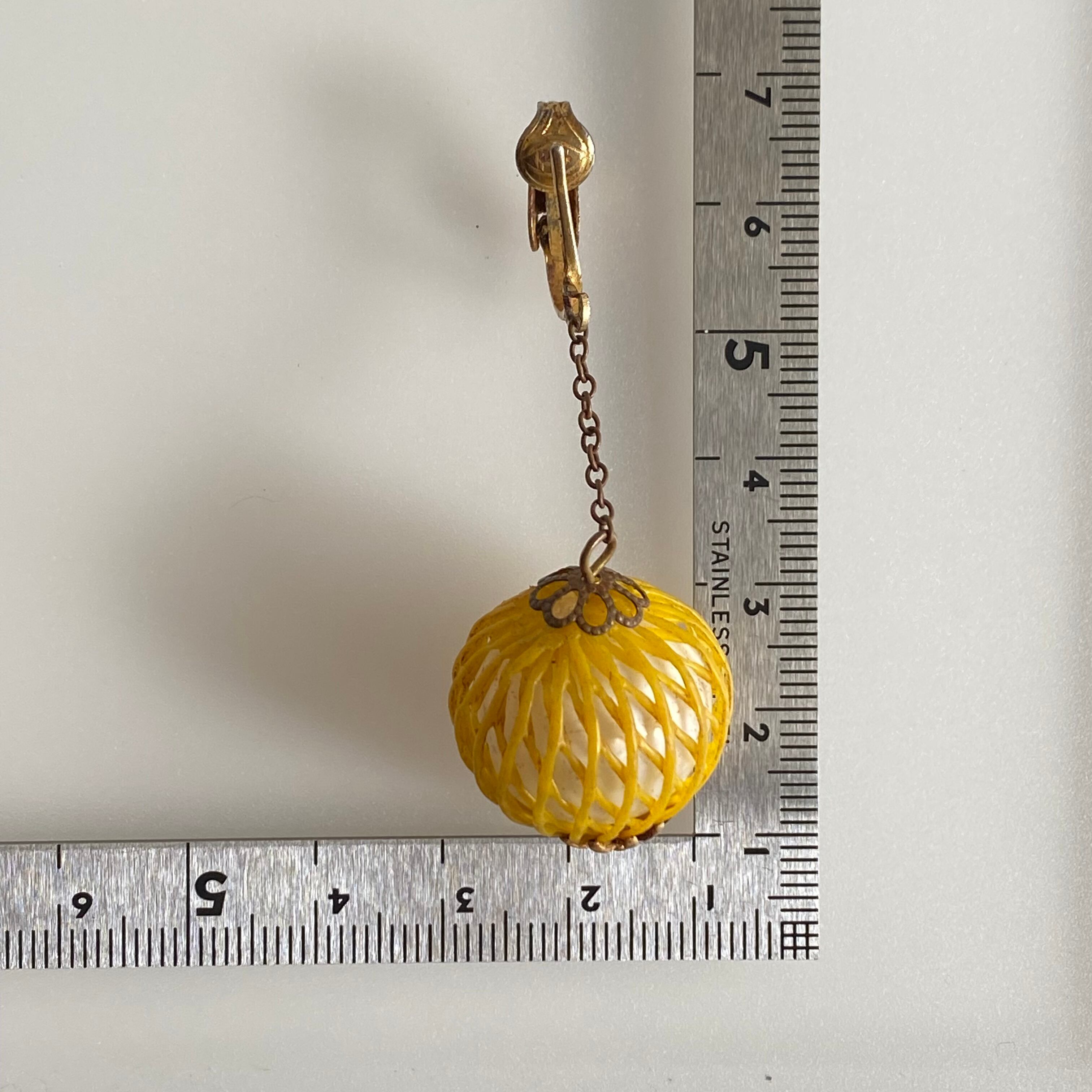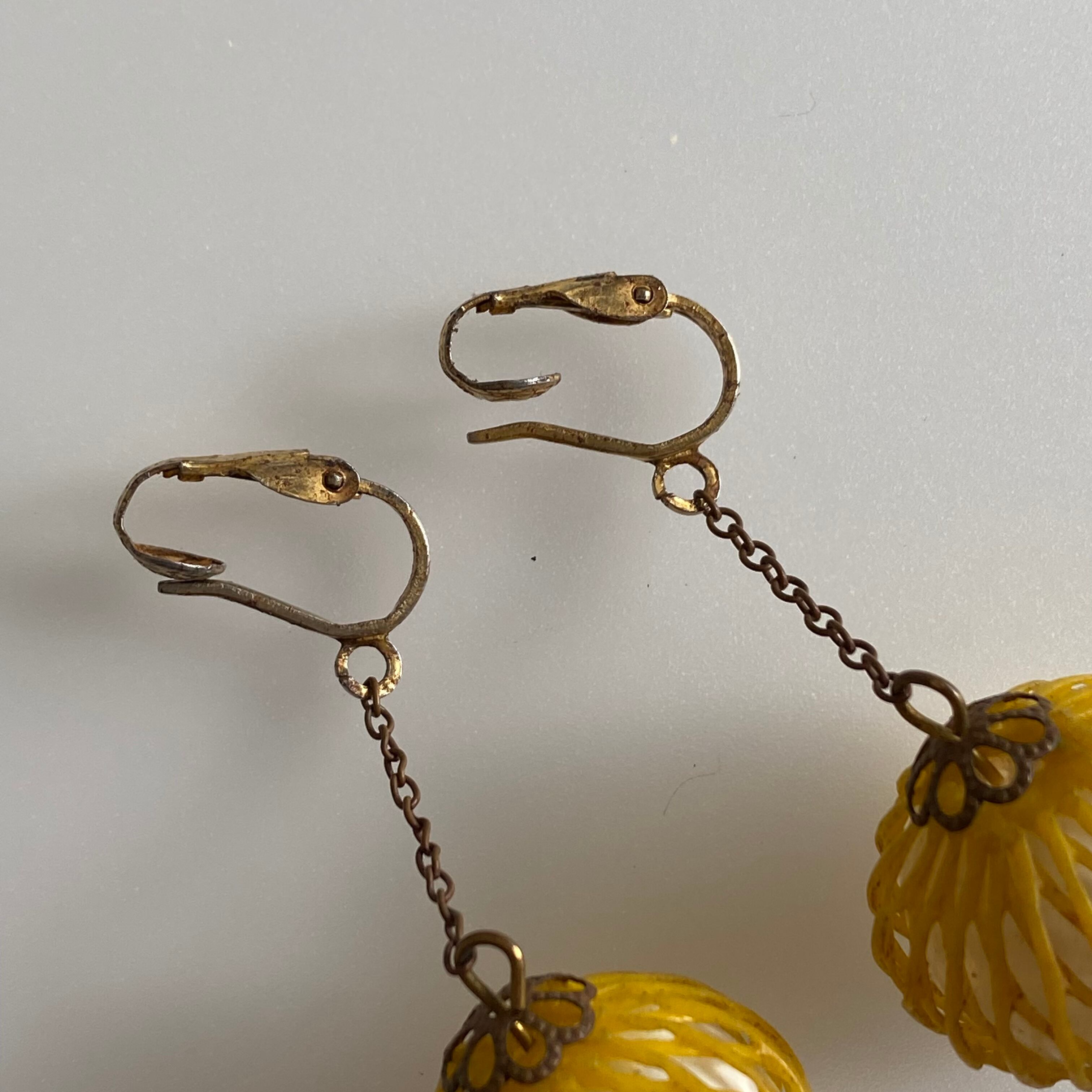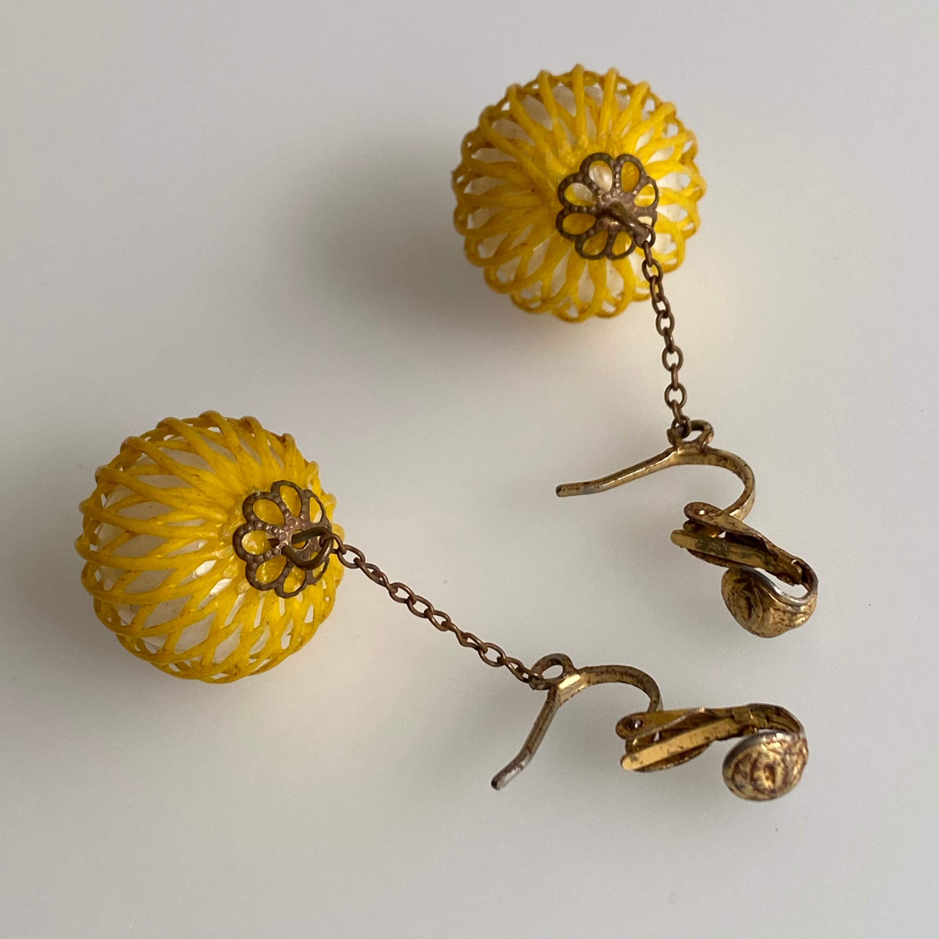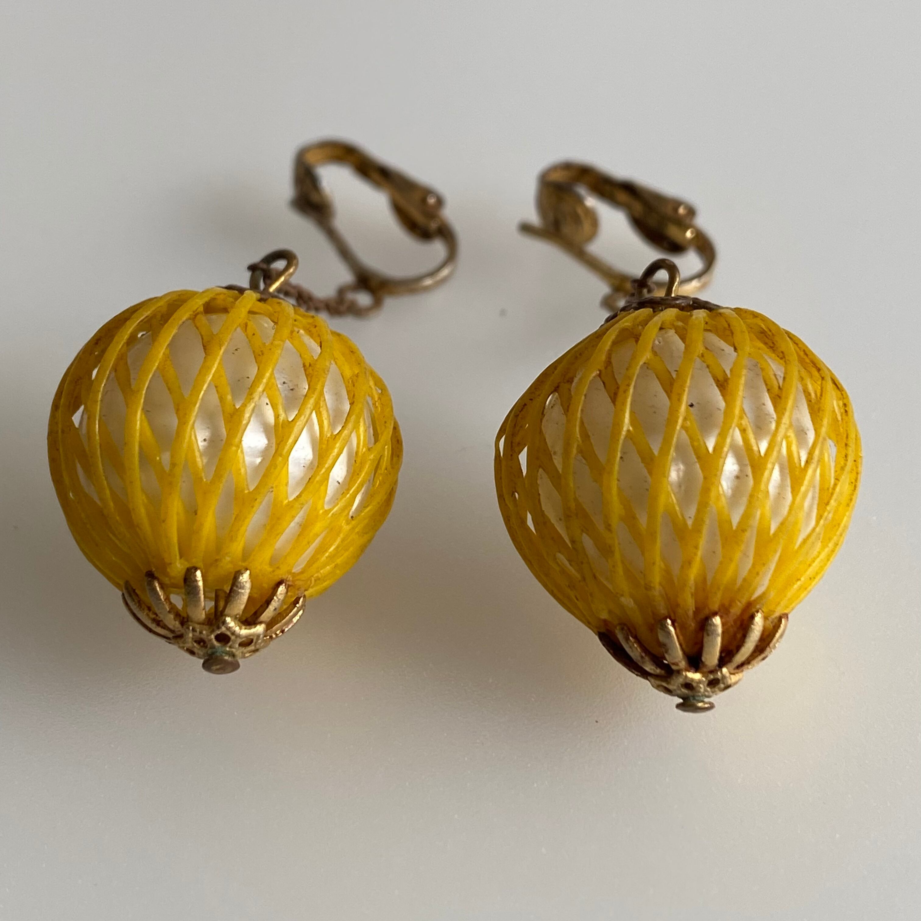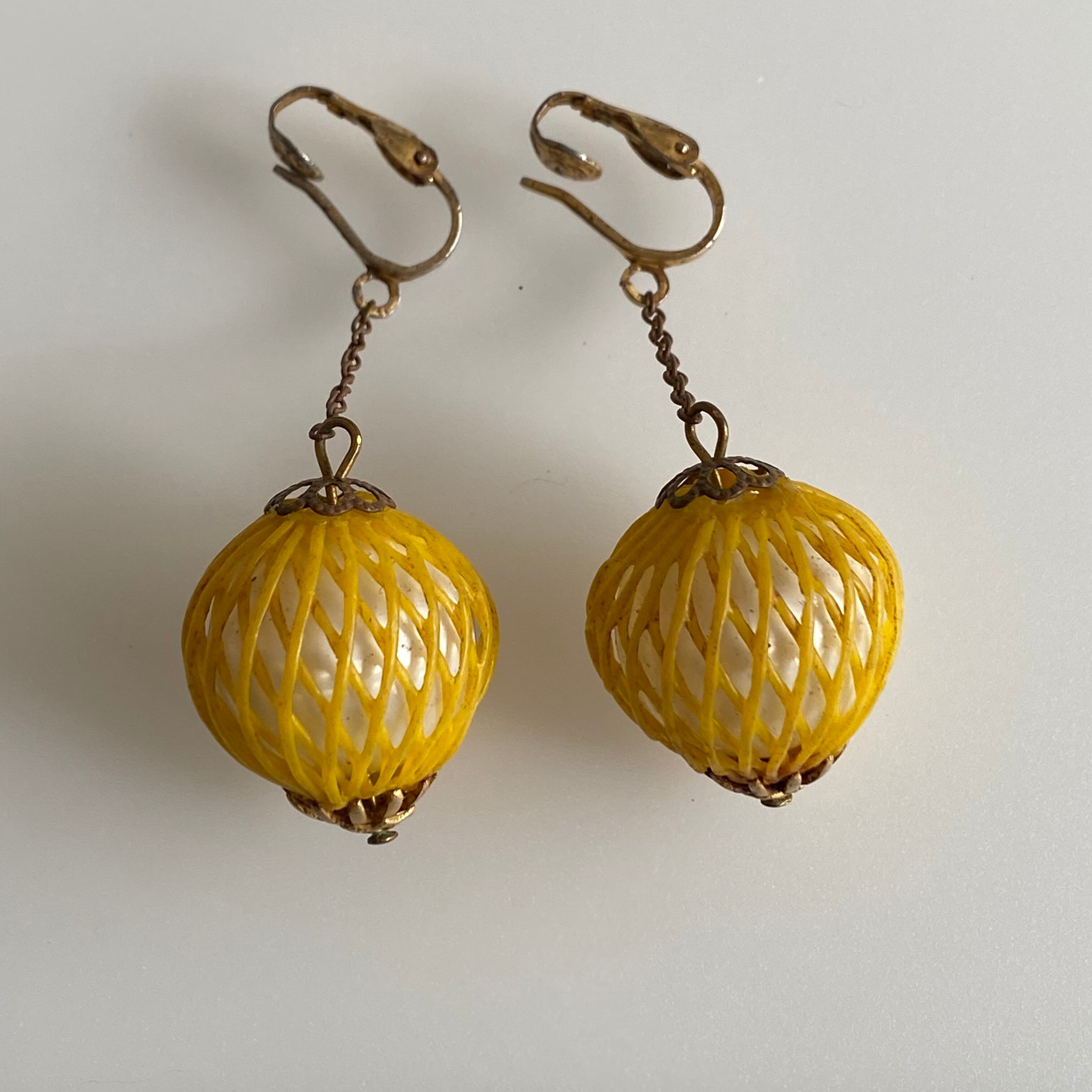 ランプシェードのようなモチーフが揺れる可愛いイヤリング。プラスチックストローのような軽い素材で編まれたデザインが素敵なお品です。全体的にサビが見られますのでUSEDにご理解のある方にオススメ致します。