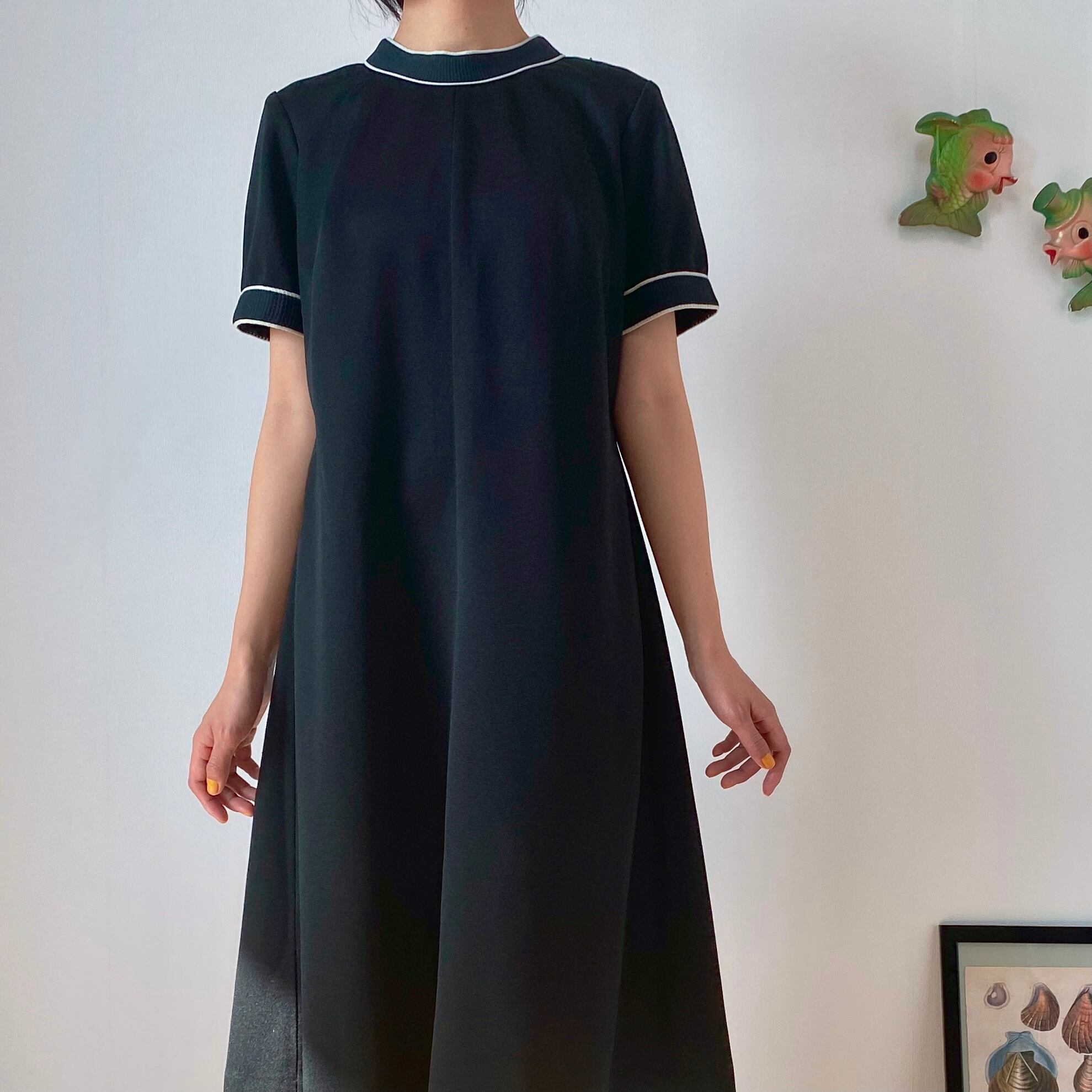 60's〜70's Black A line dress