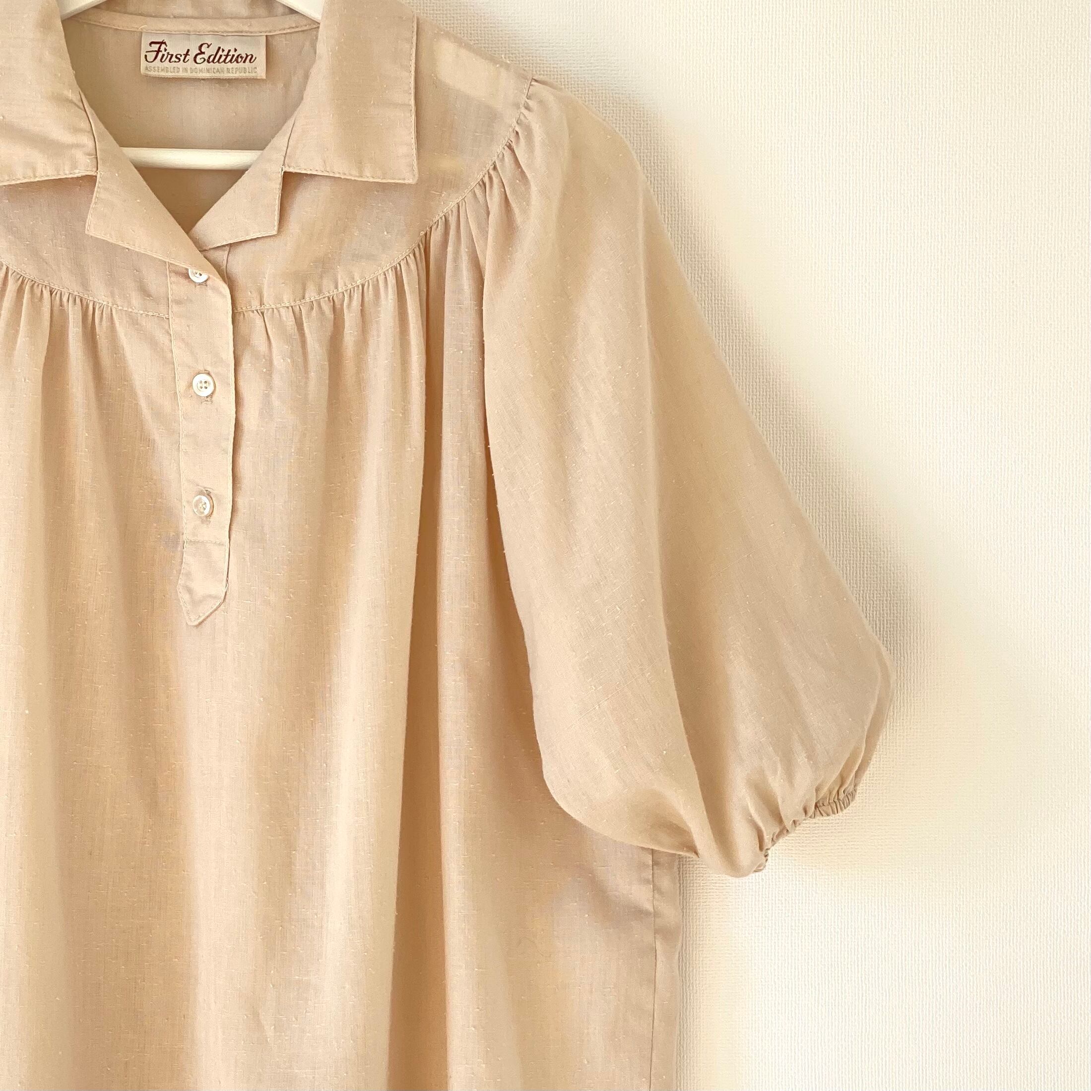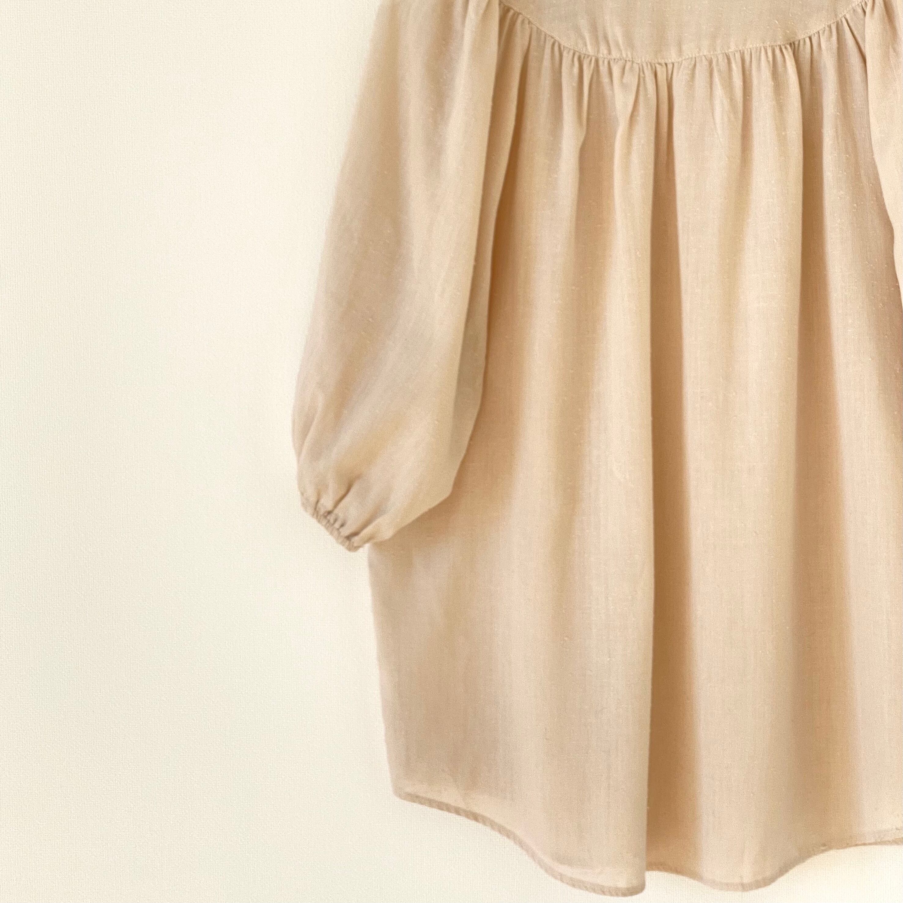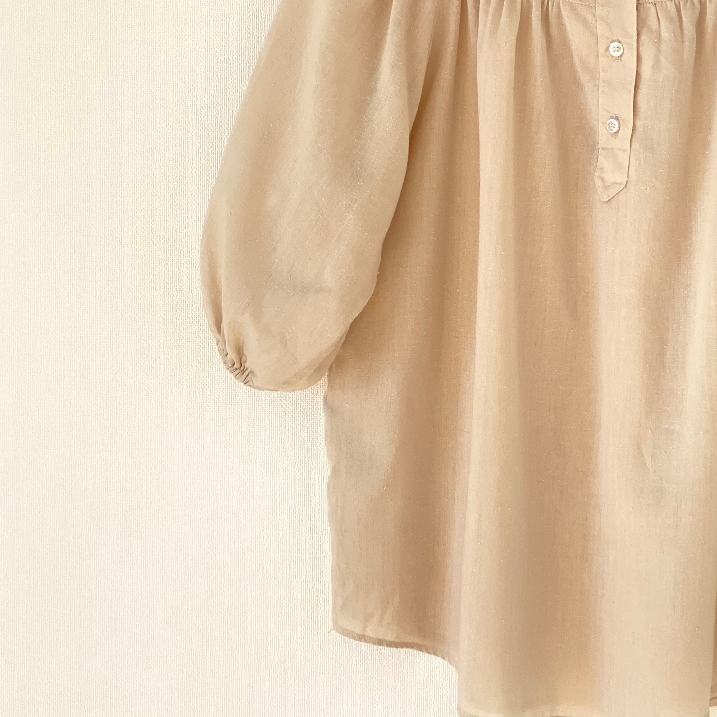 5分丈バルーンスリーブが印象的なブラウス。ドルマンスリーブ。フロントバックもギャザー使いなのでふわっとボリューミーなシルエット。柔らかく肌触りも良いネップ生地のお品です。