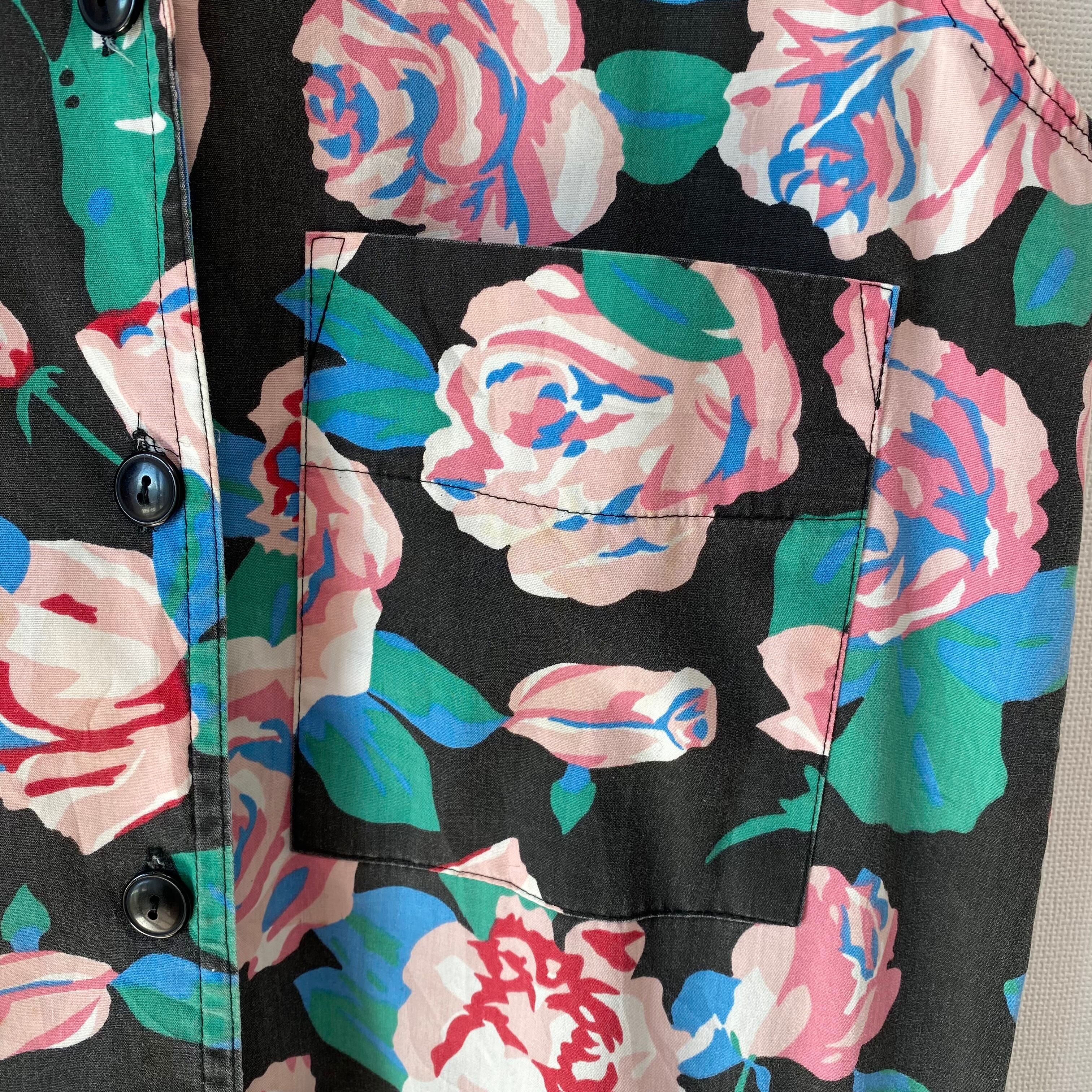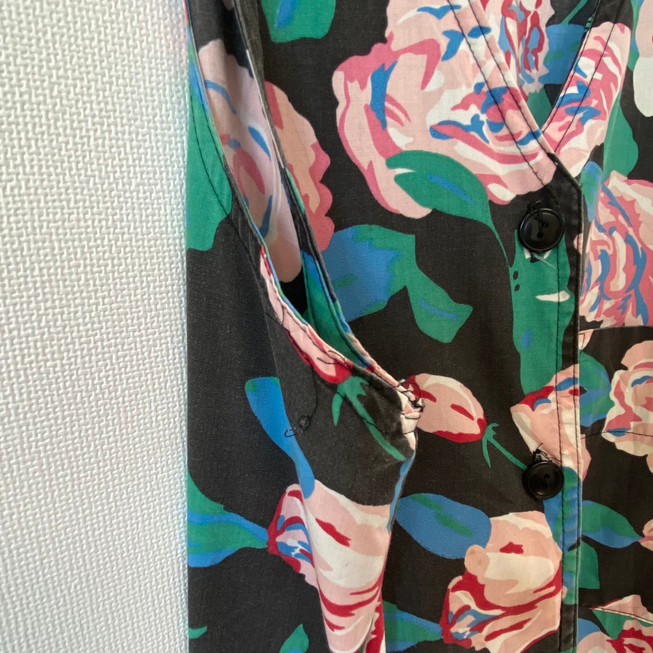 {コンディション}全体的に色褪せ。左胸ポケットのバラに薄いシミ。ボタン上から5個目付近のバラにシミ。左右脇糸が出てます。下2個ボタン欠損がありましたので似たボタンを付けてます。9枚目以降の画像でご確認下さい。