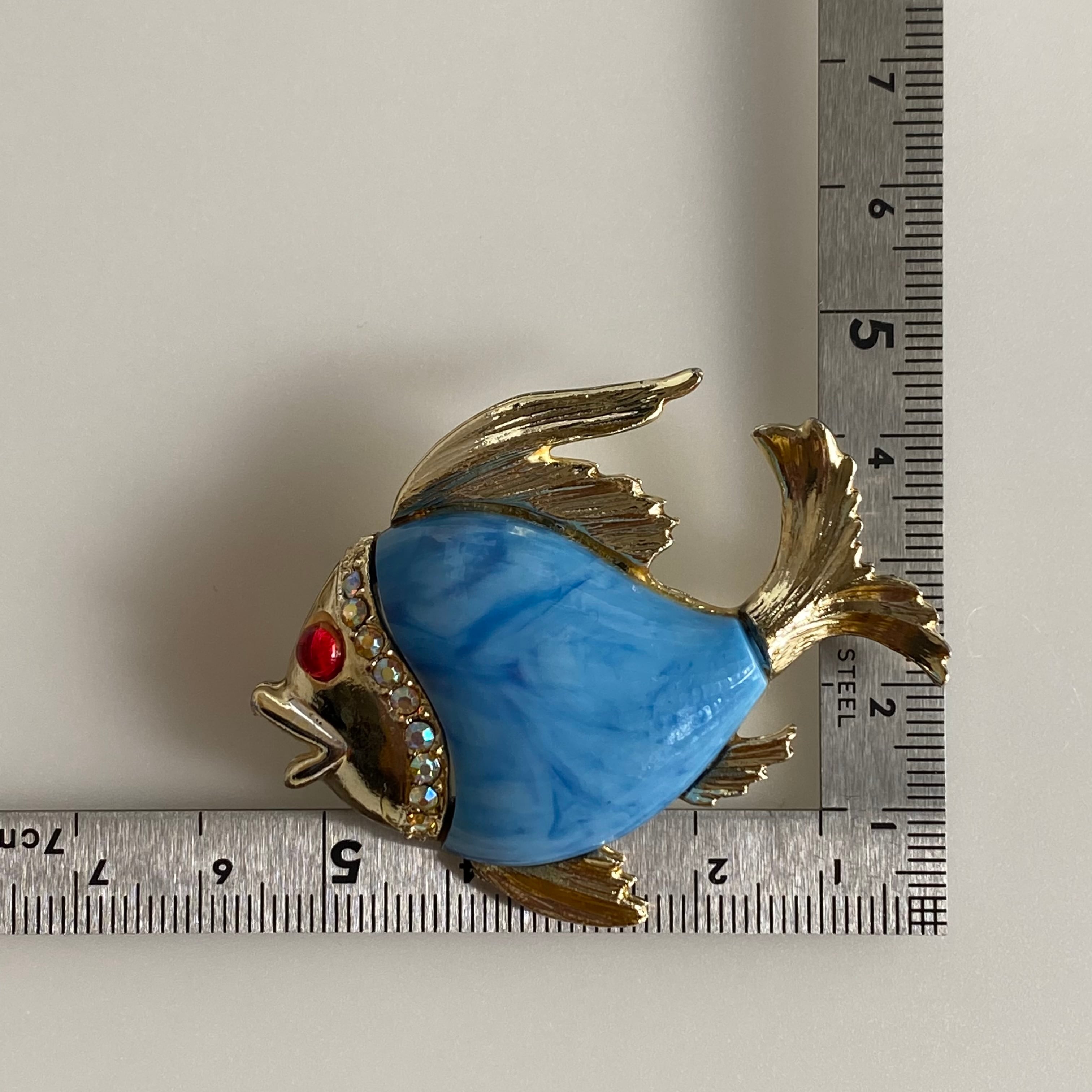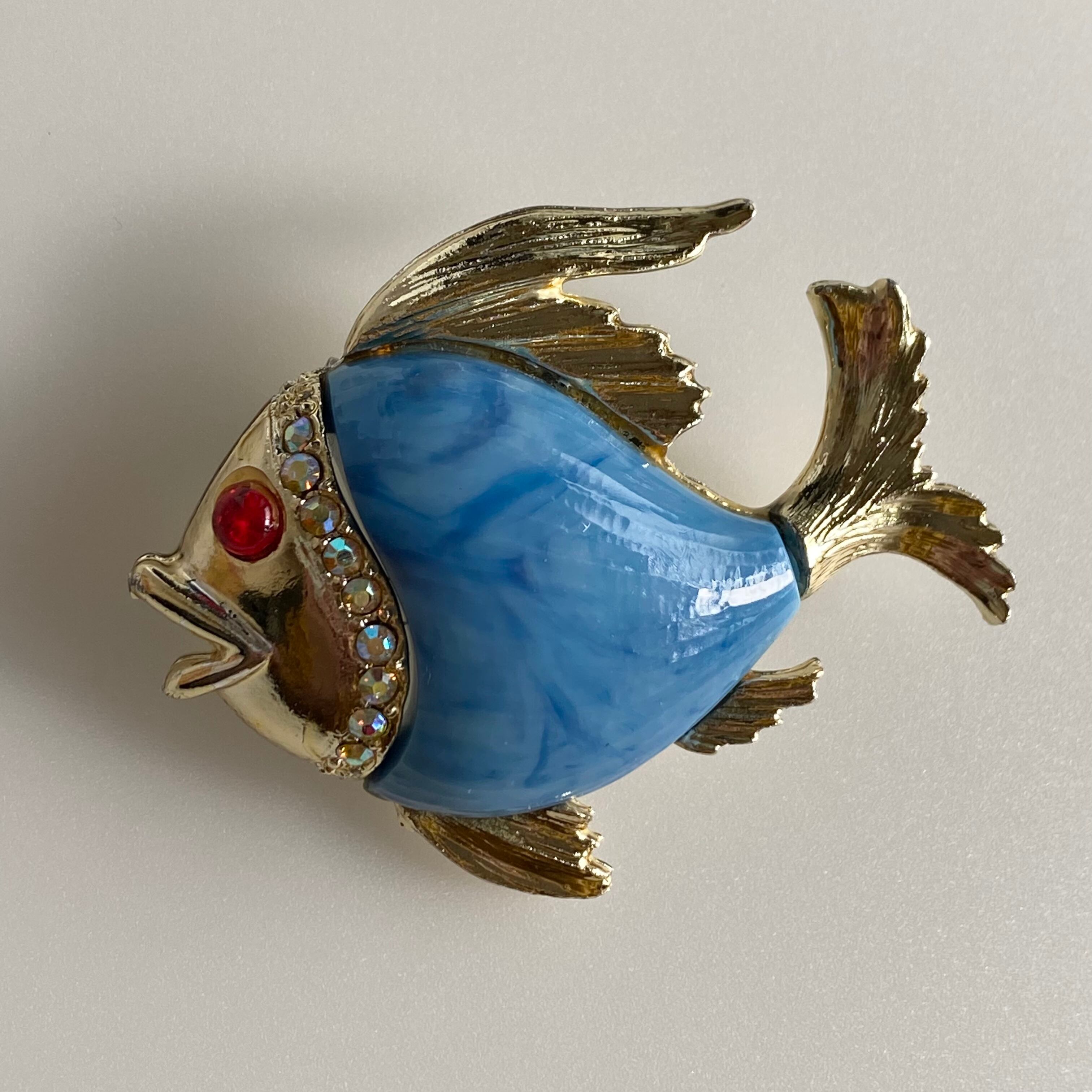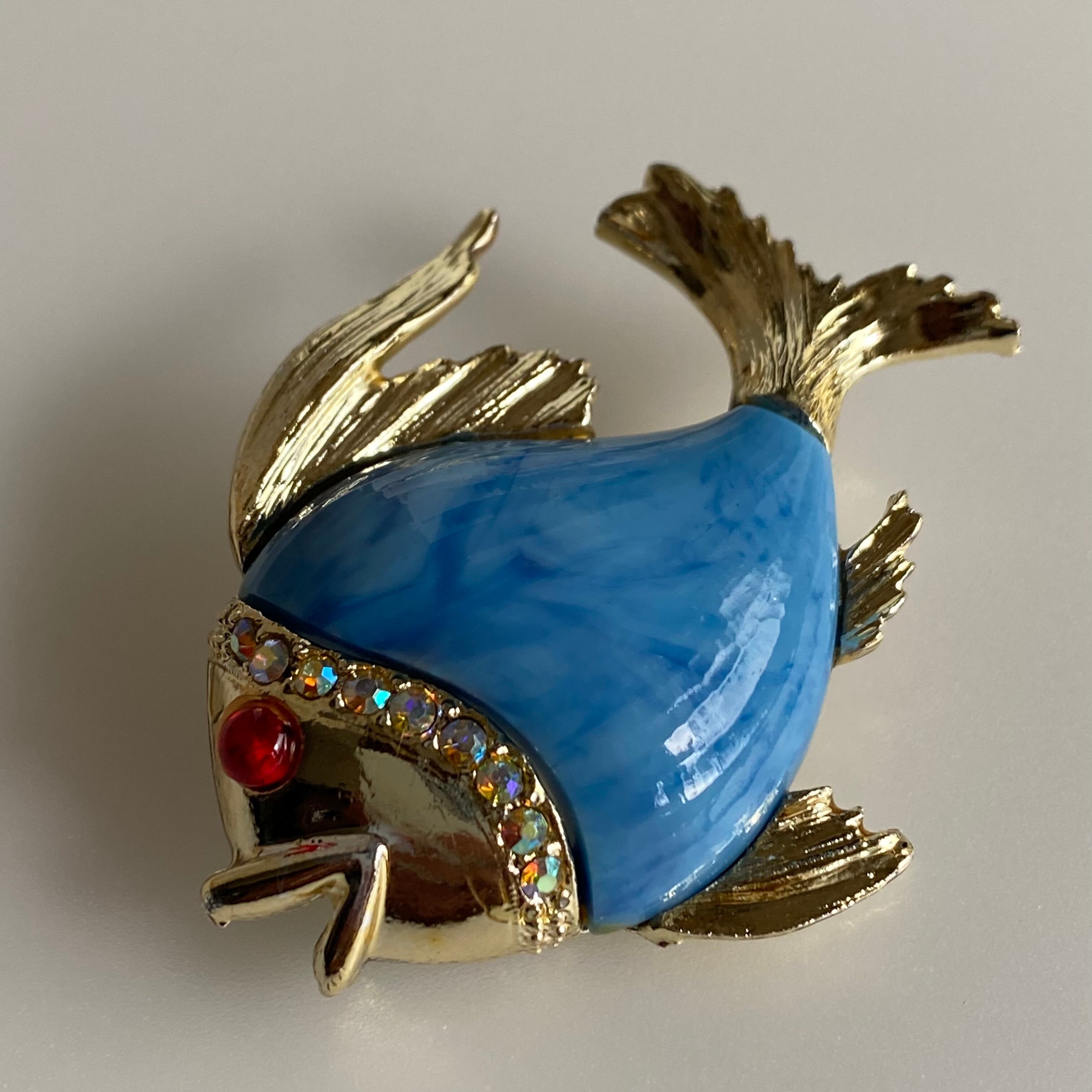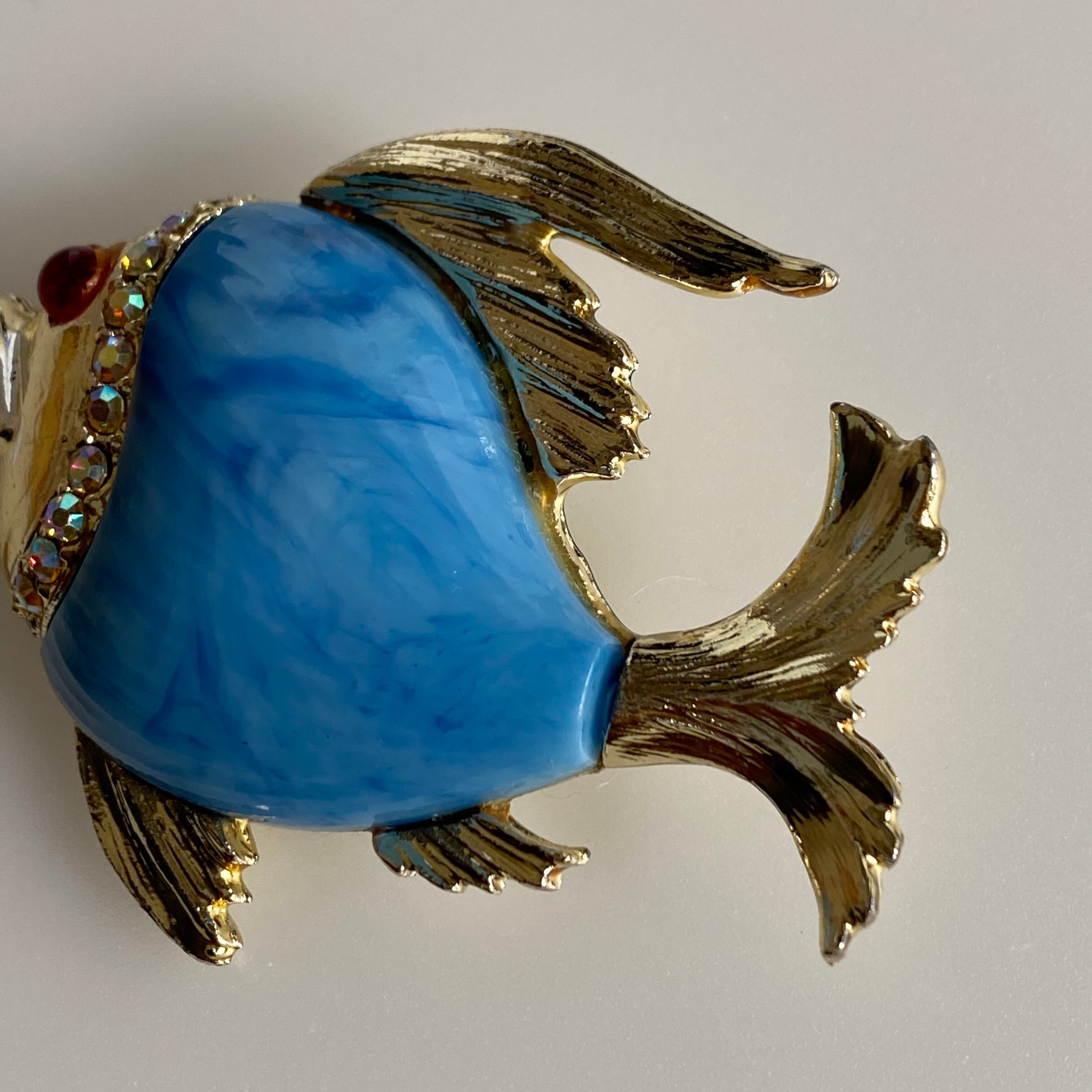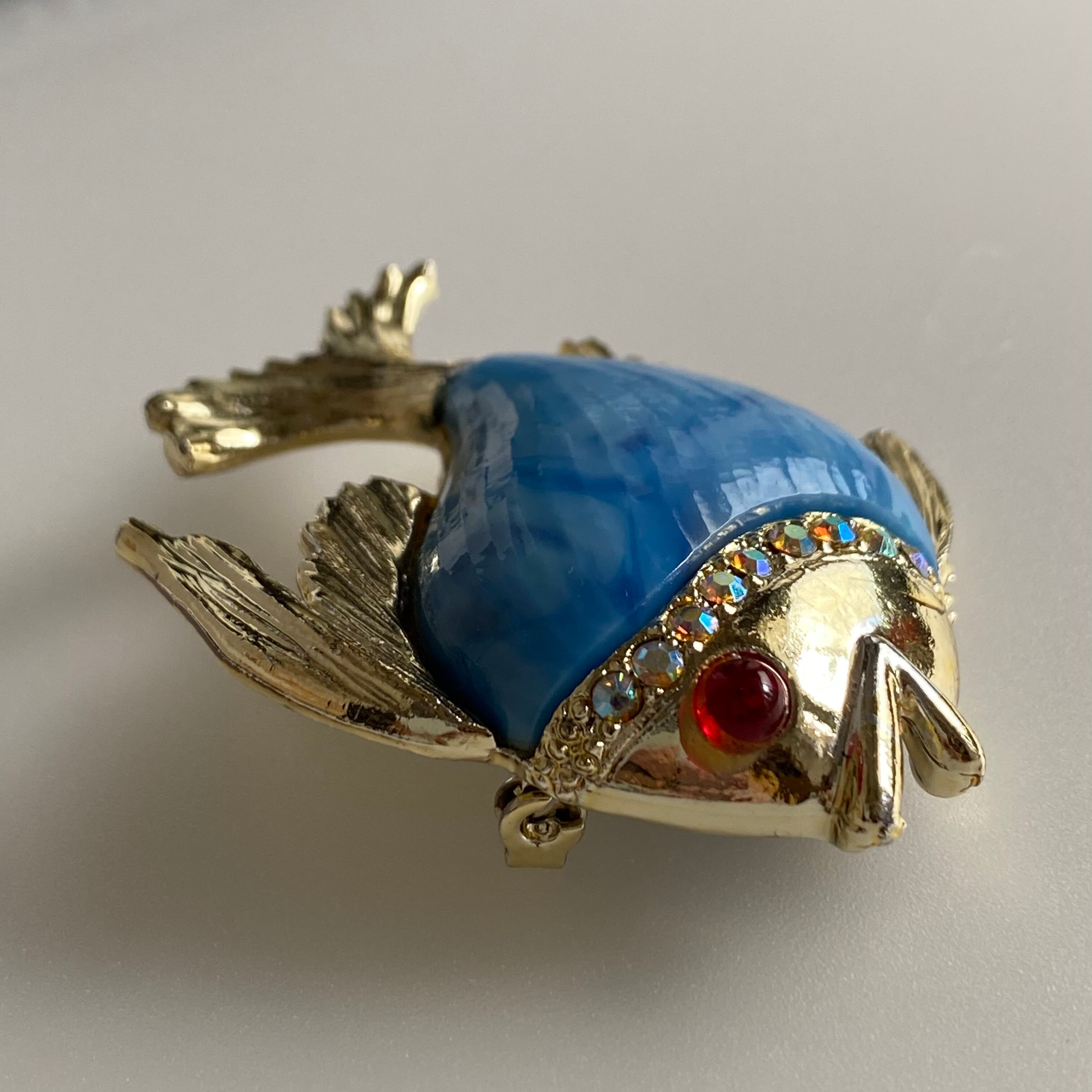 Used blue fish brooch