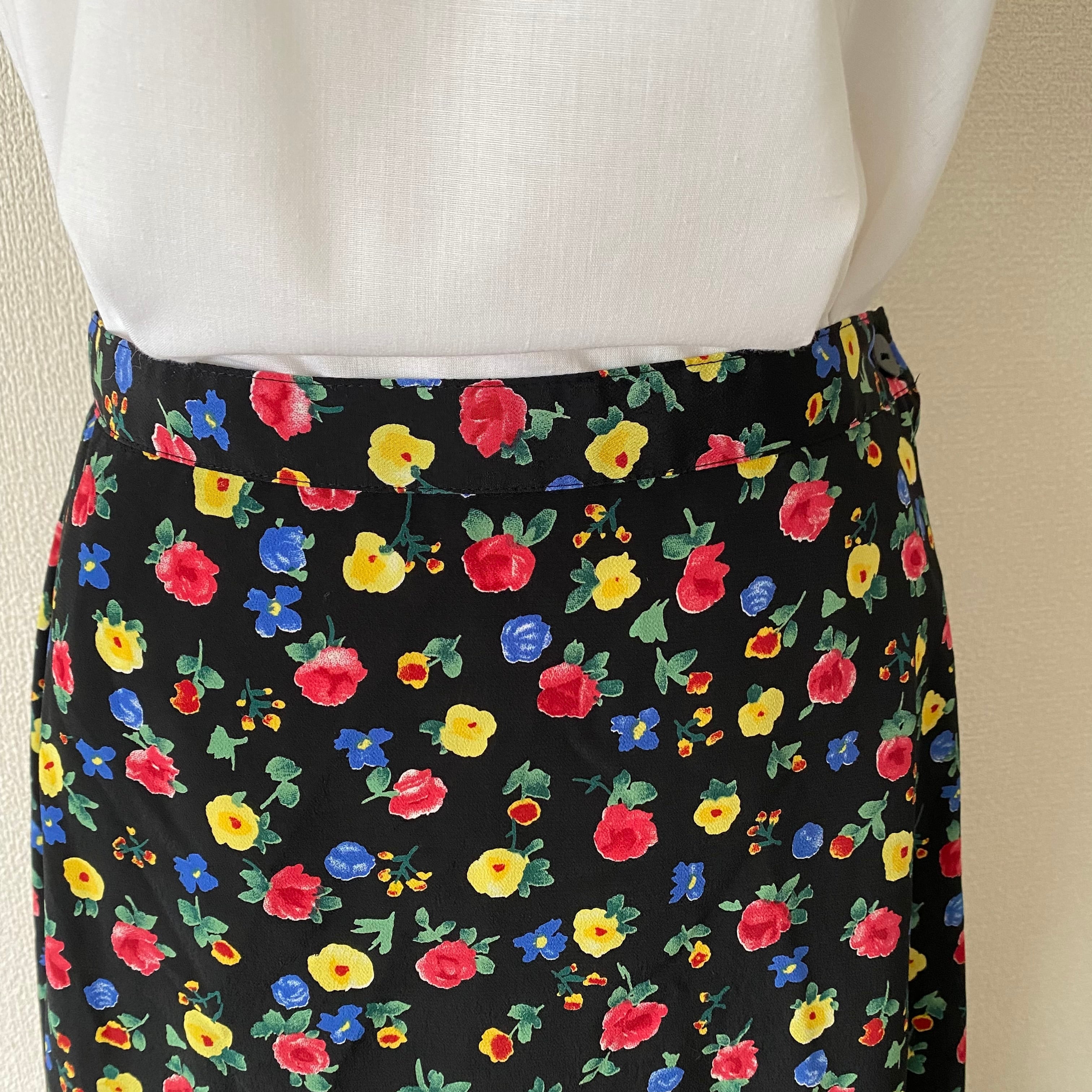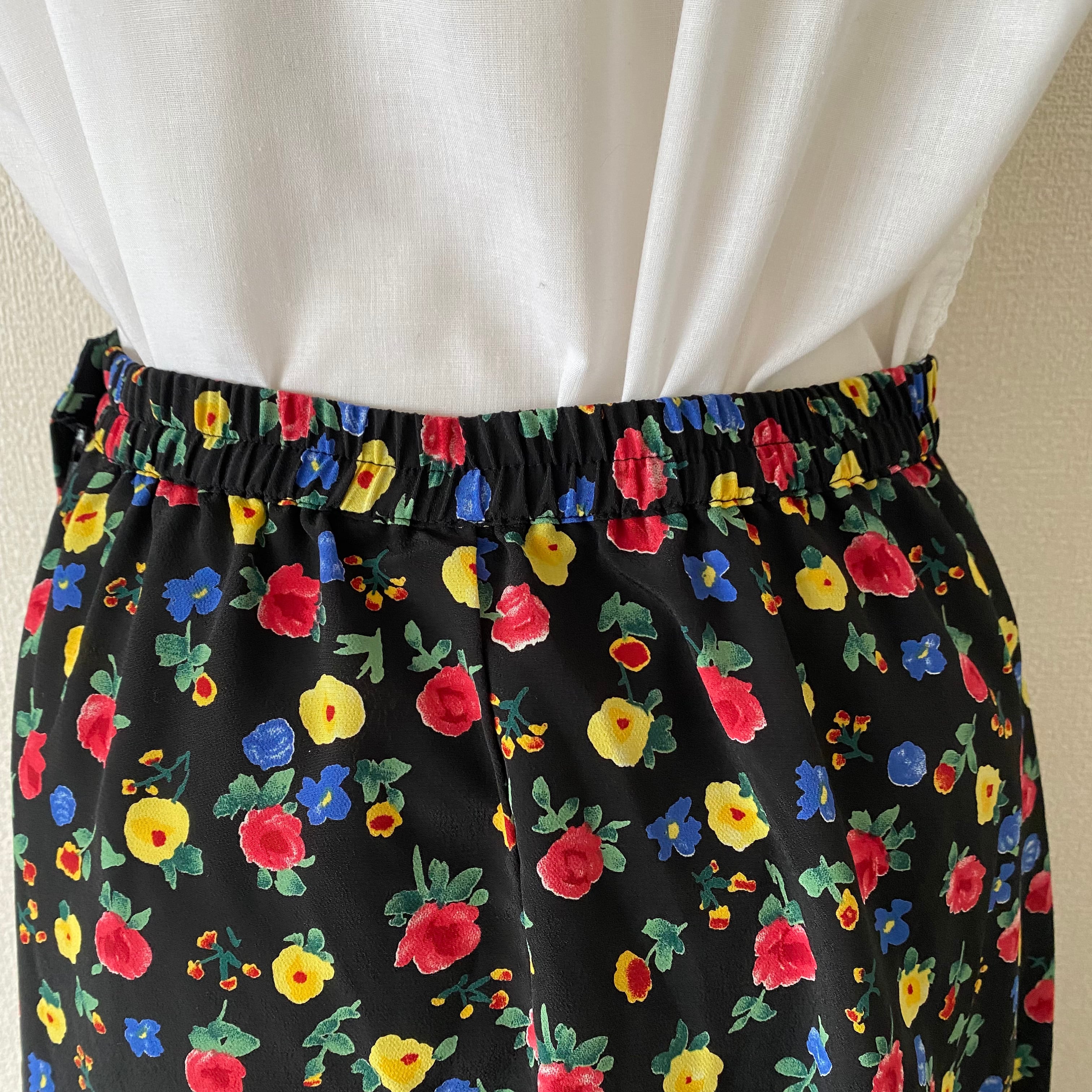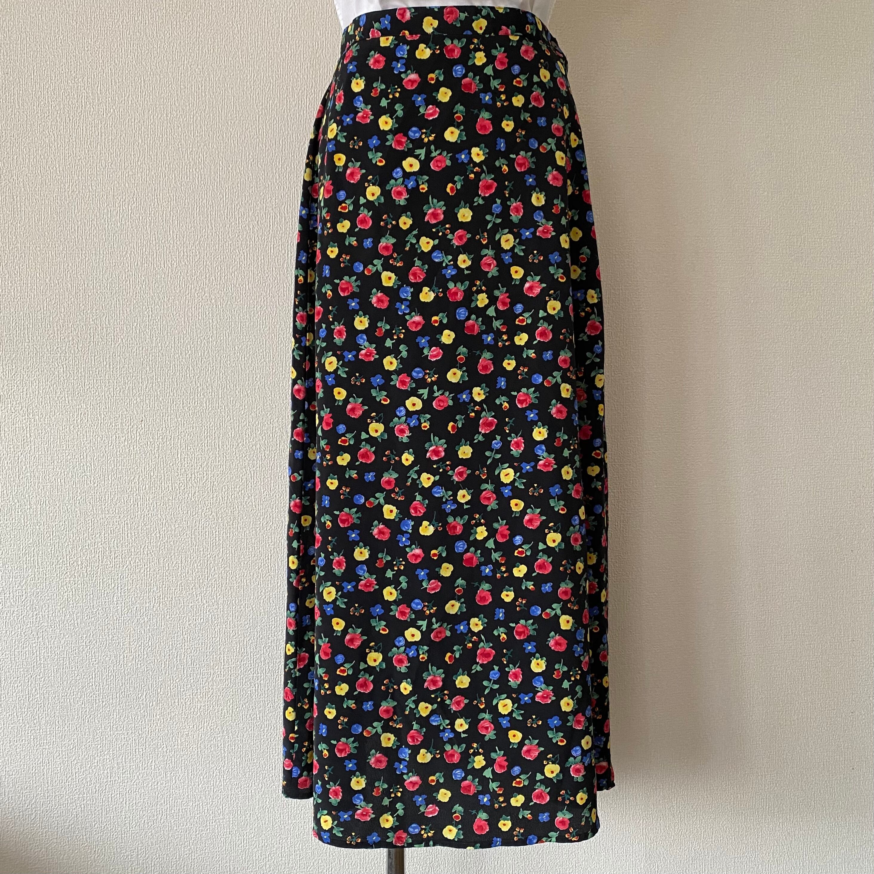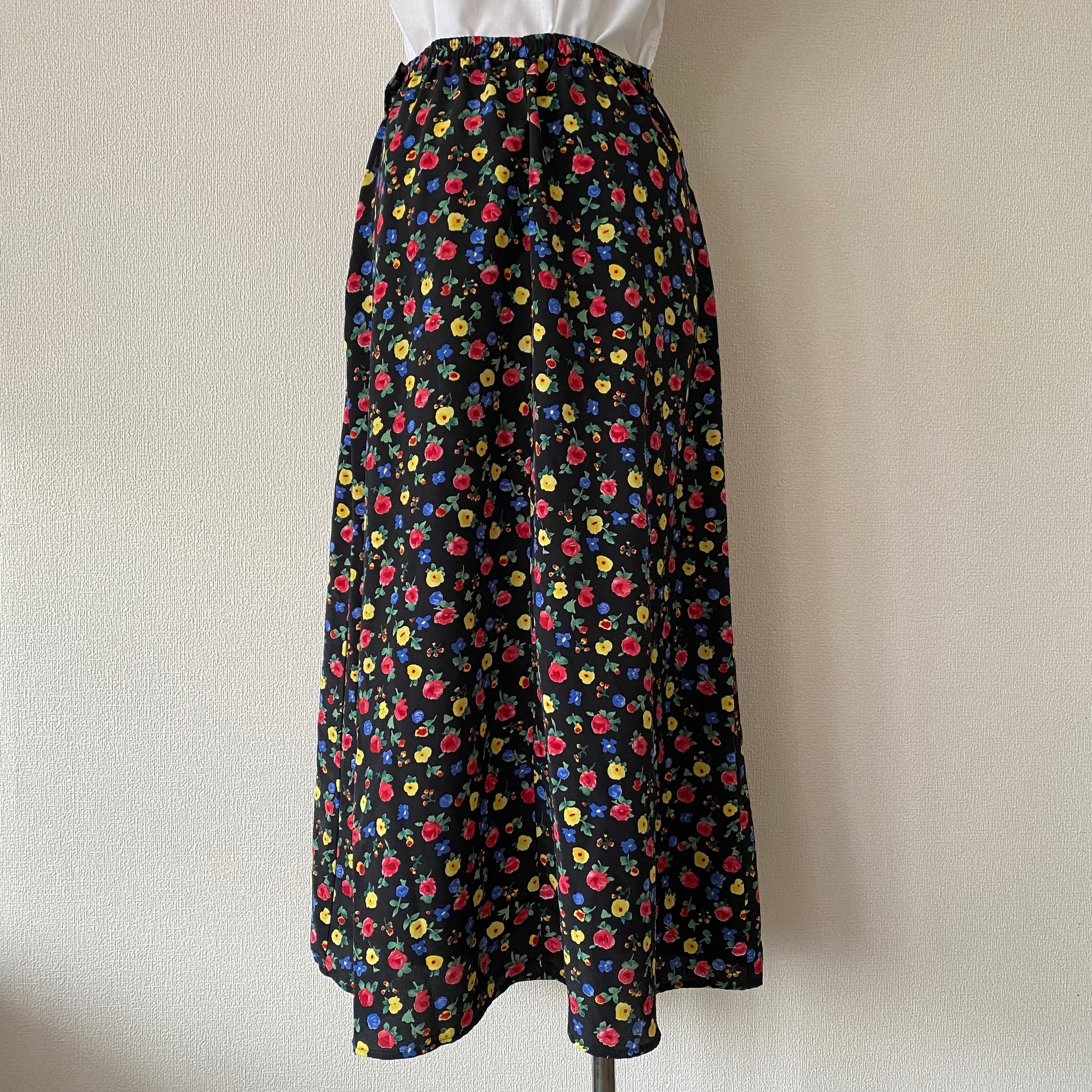 マルチカラーのお花プリントが可愛いロング丈スカート。