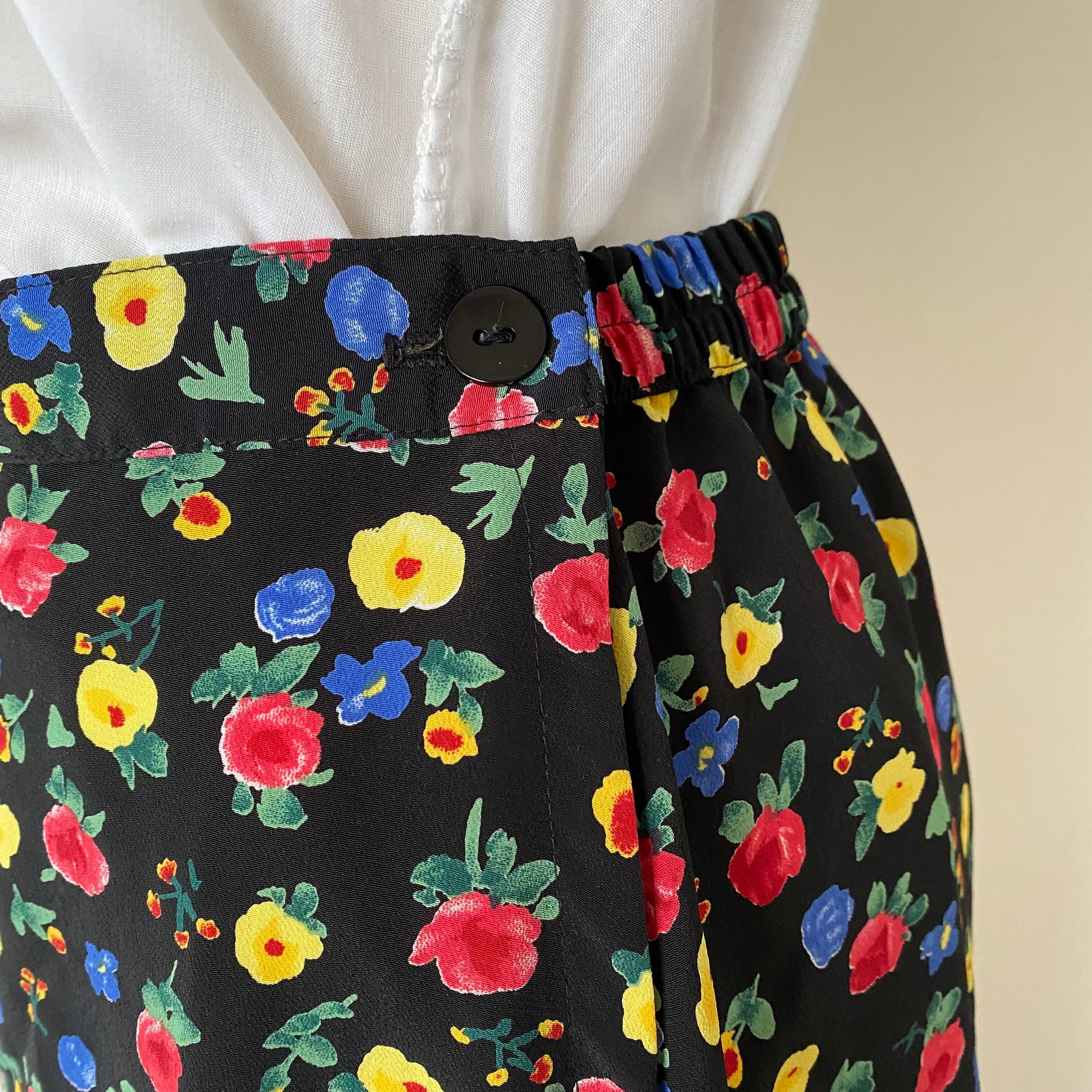 Used black x multicolor flower print maxi skirt