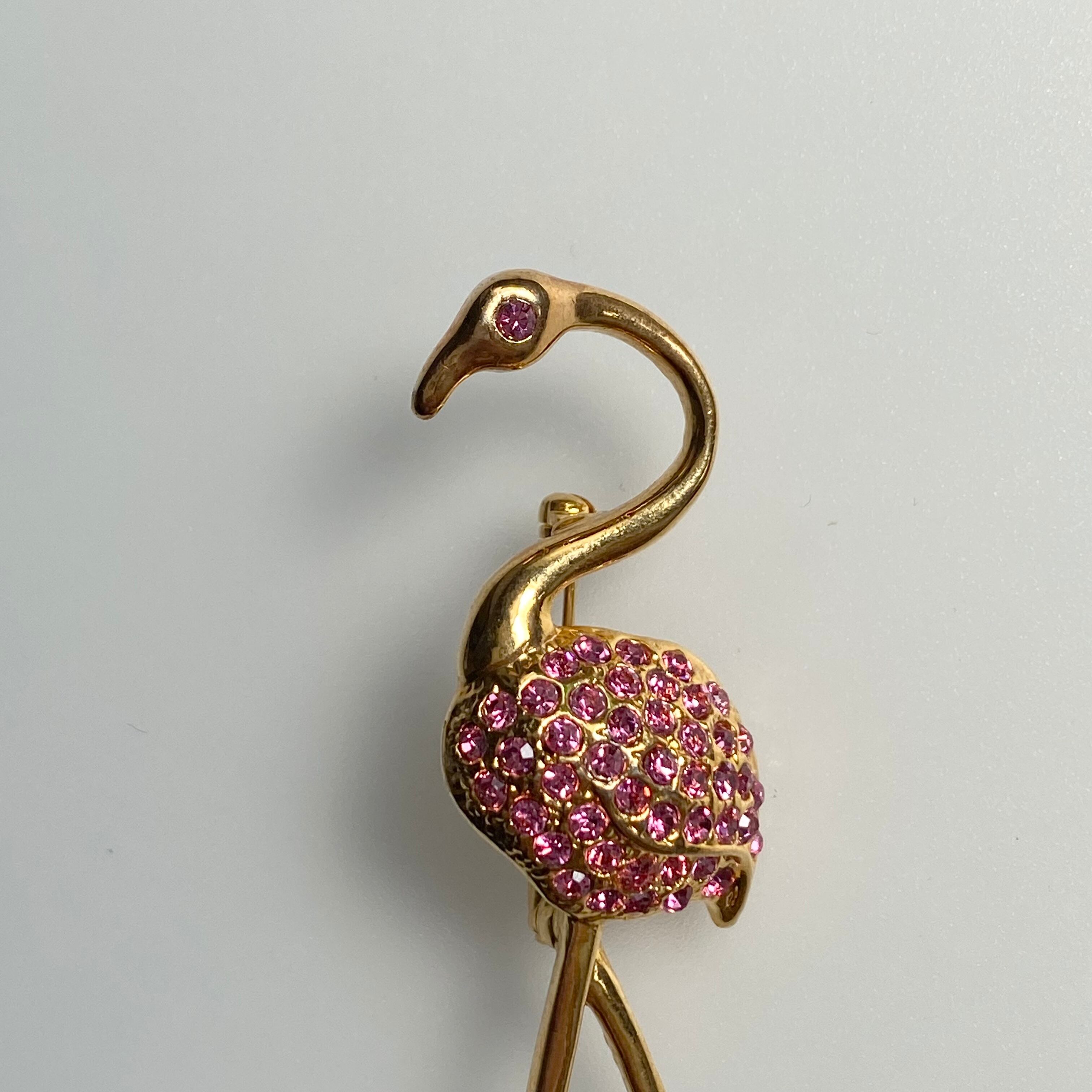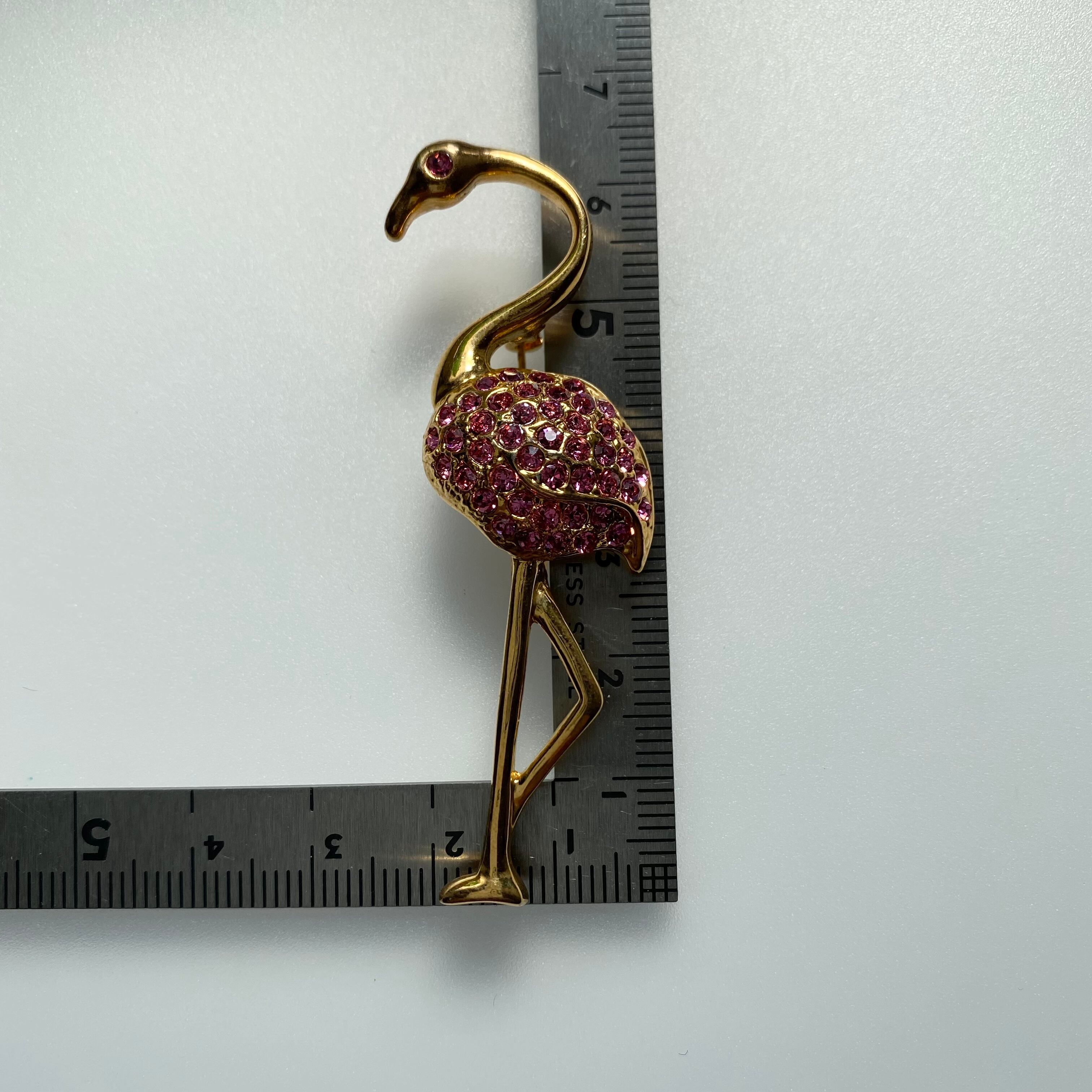 ピンクのラインストーンが可愛いフラミンゴブローチ。