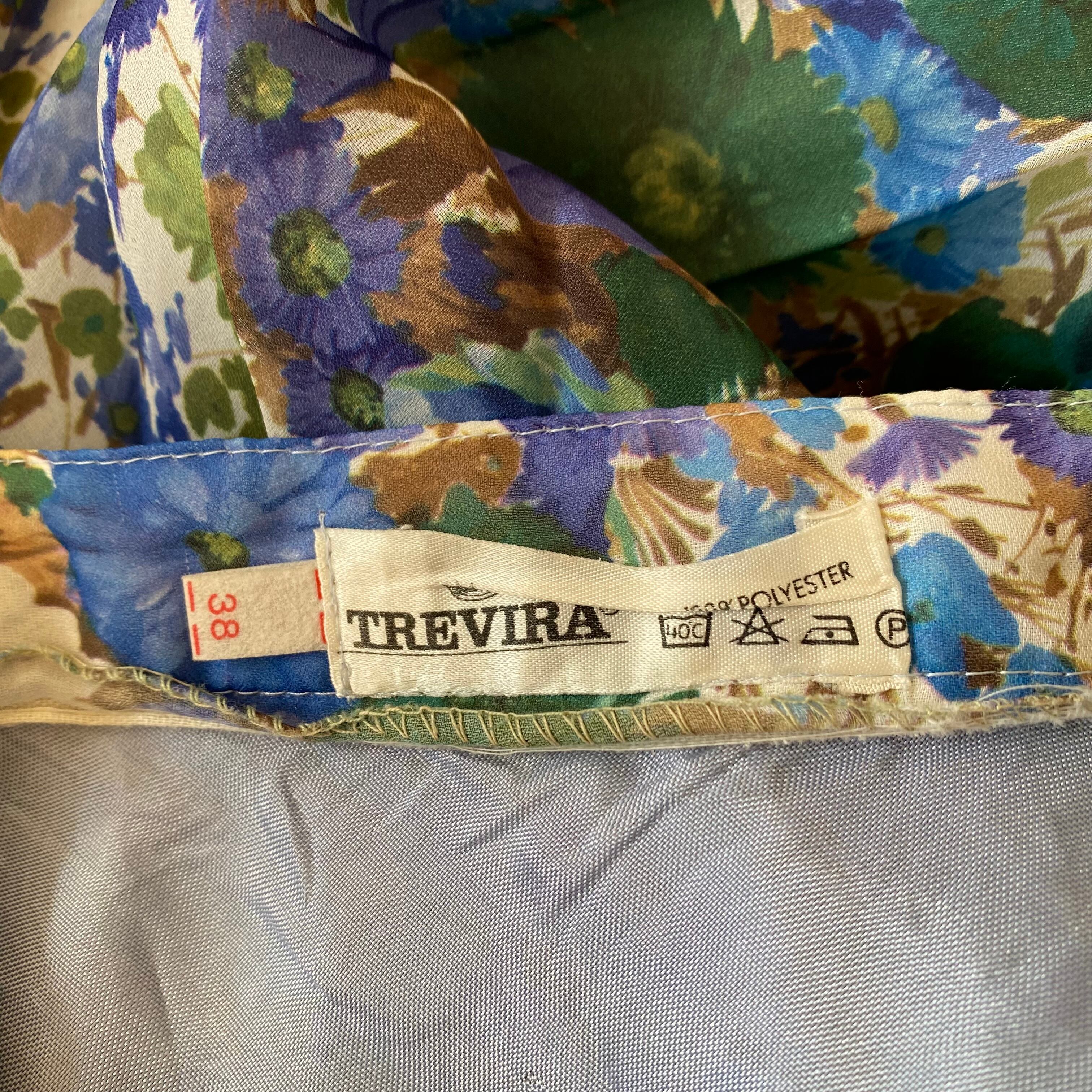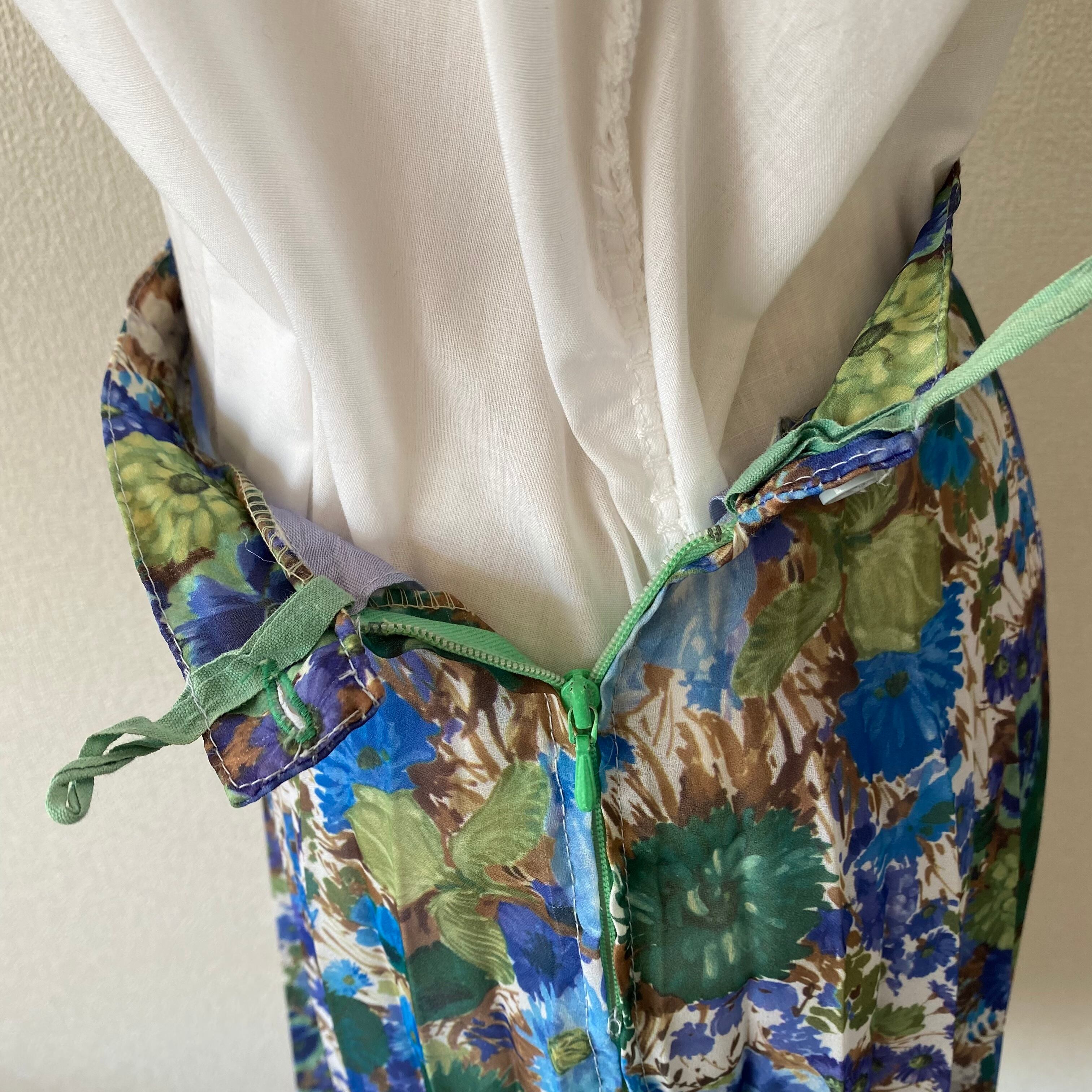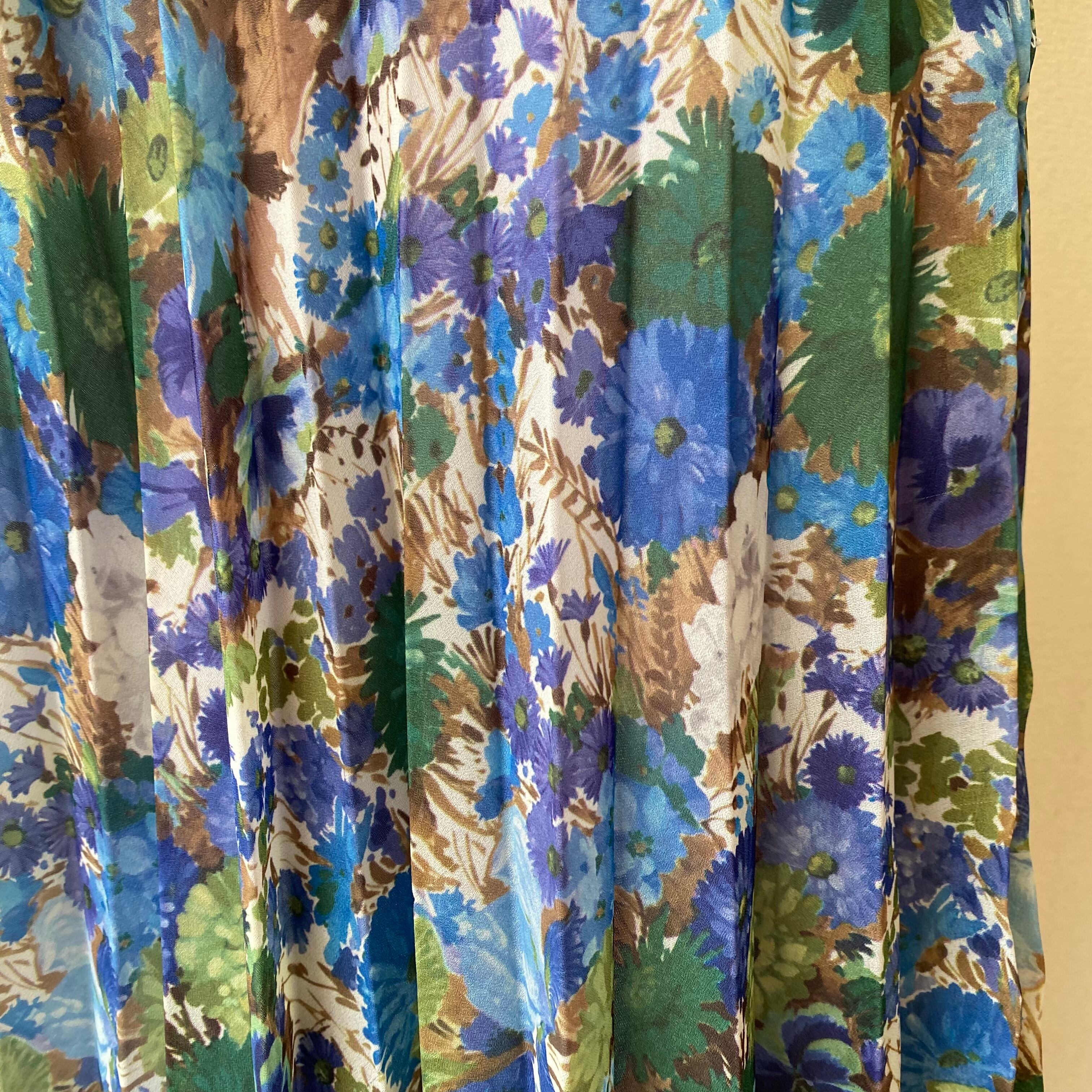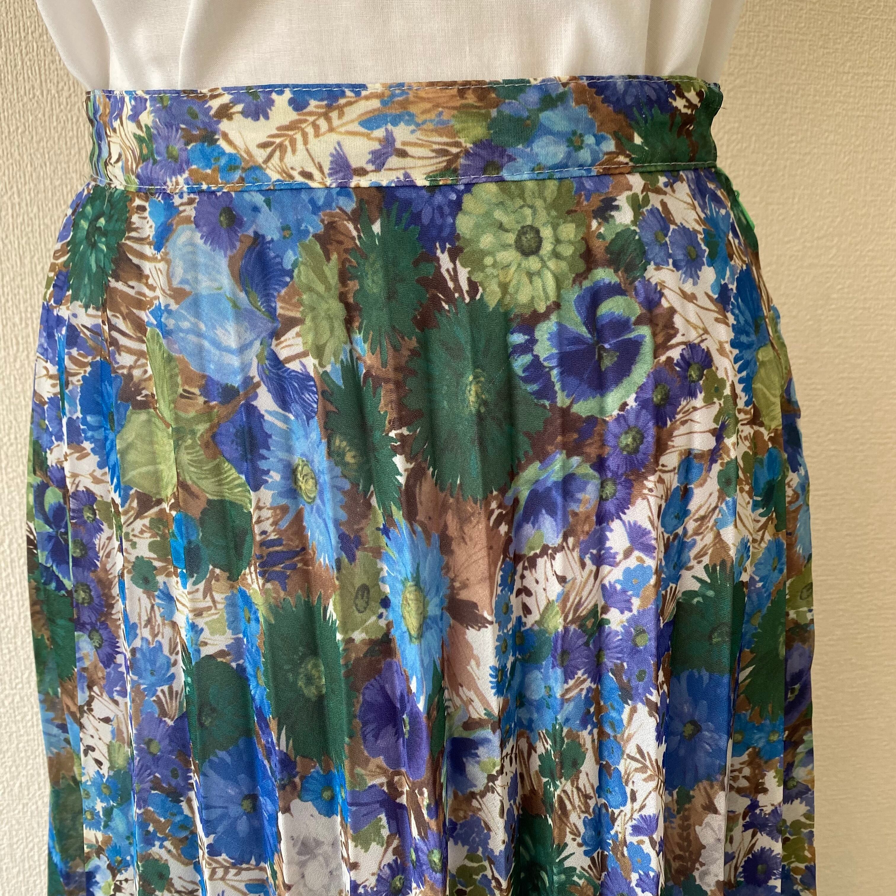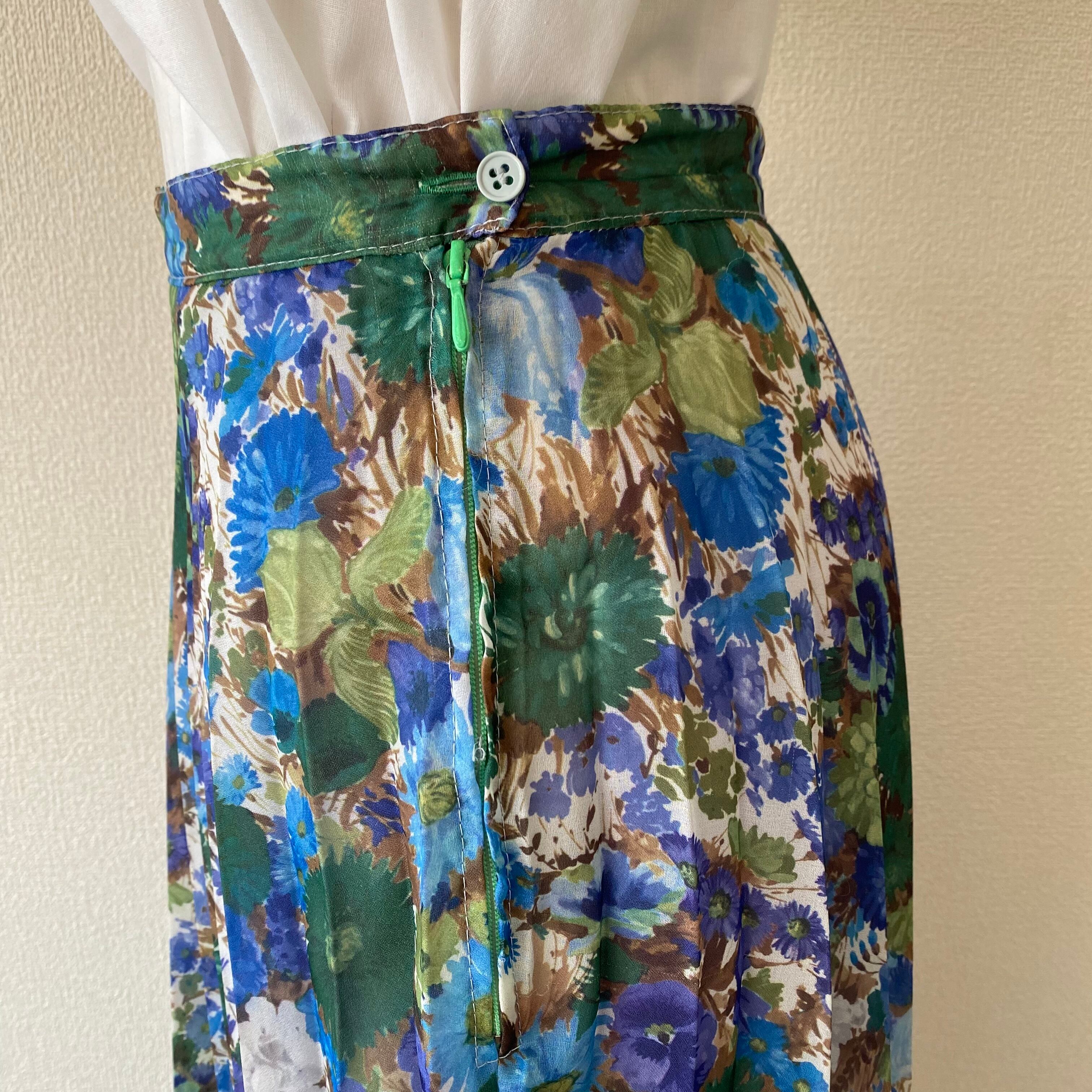 透け感のある素材にブルー×グリーン系のお色味は総柄でも着やすい、爽やかな印象のスカートです。