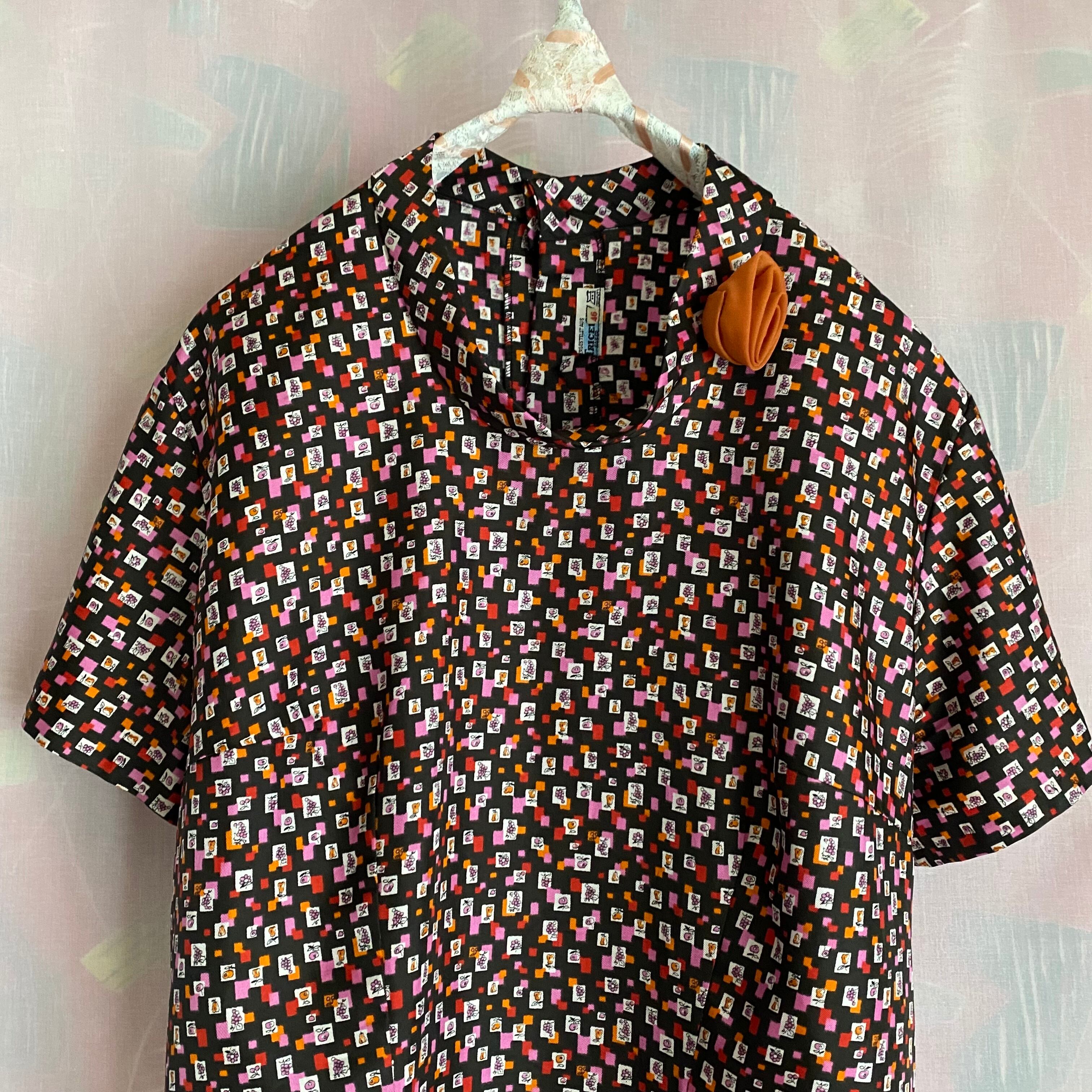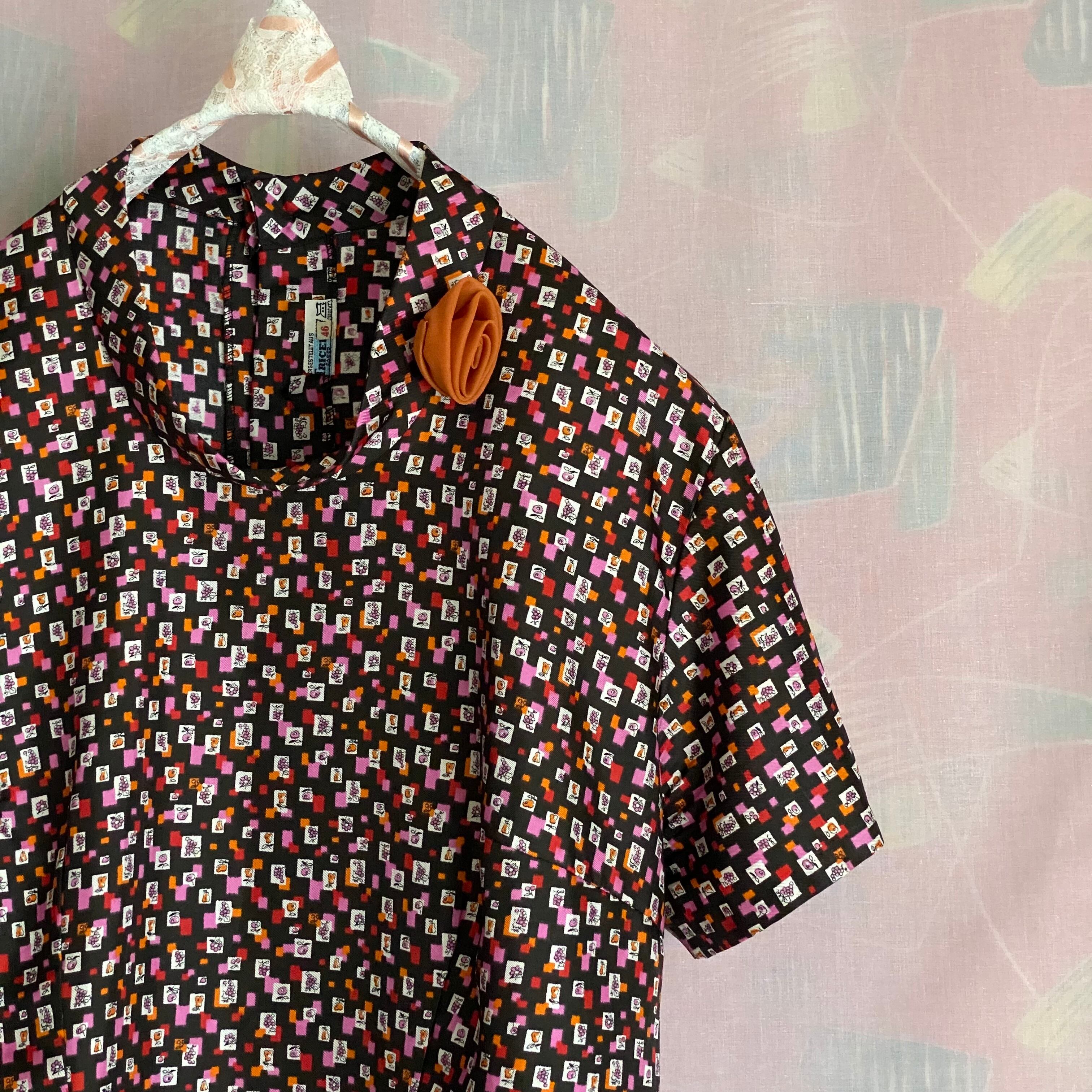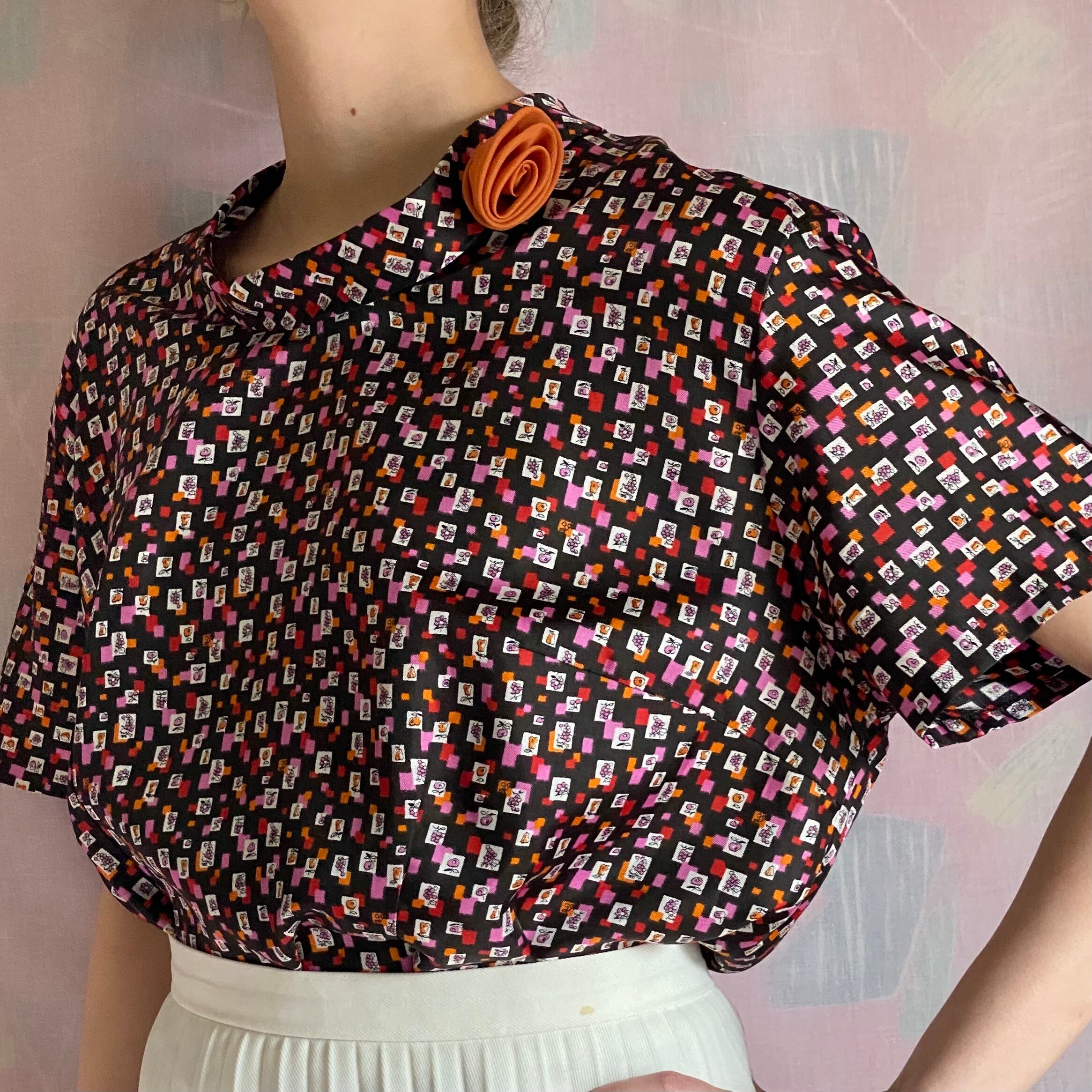 60's Geometric pattern x fruit pattern blouse with corsage