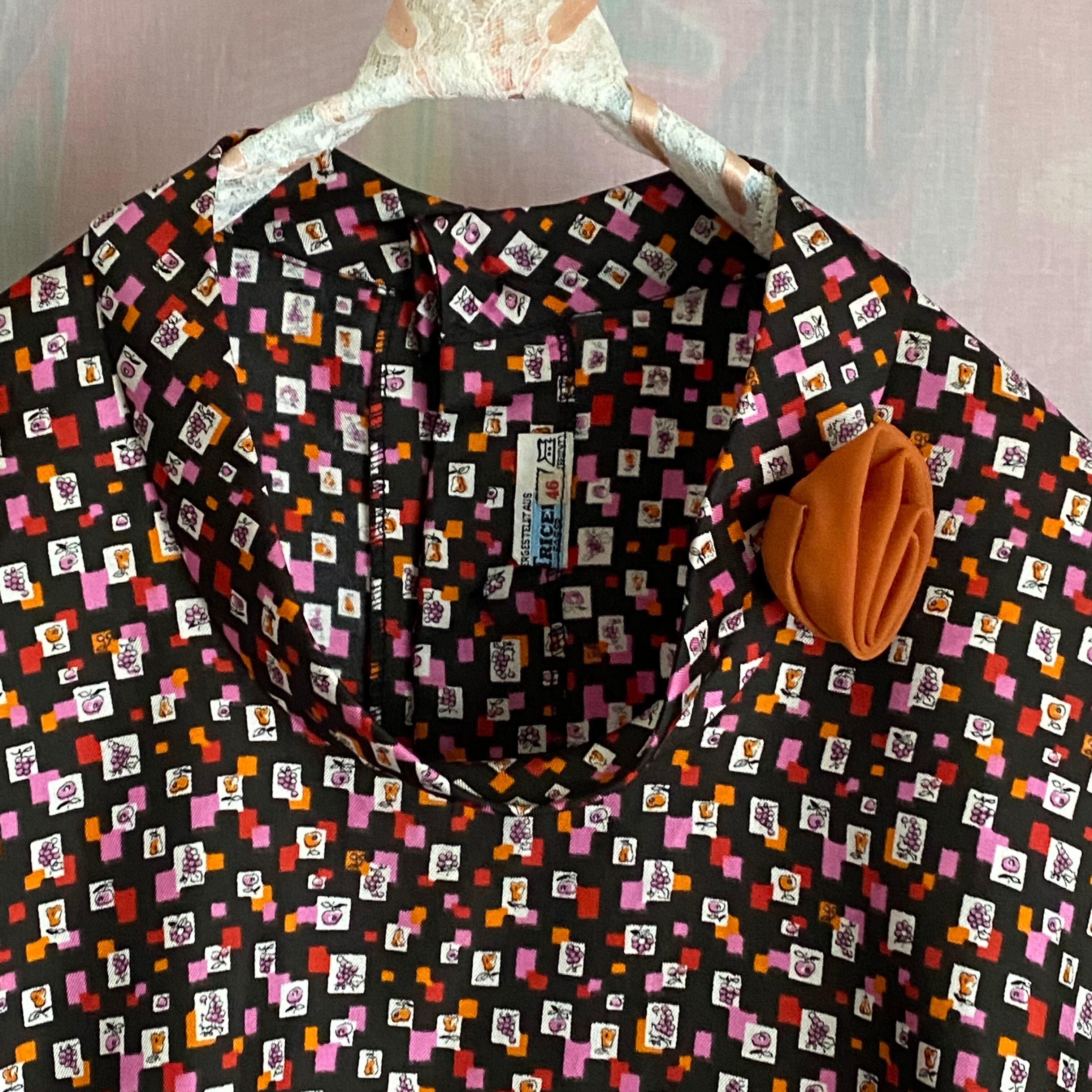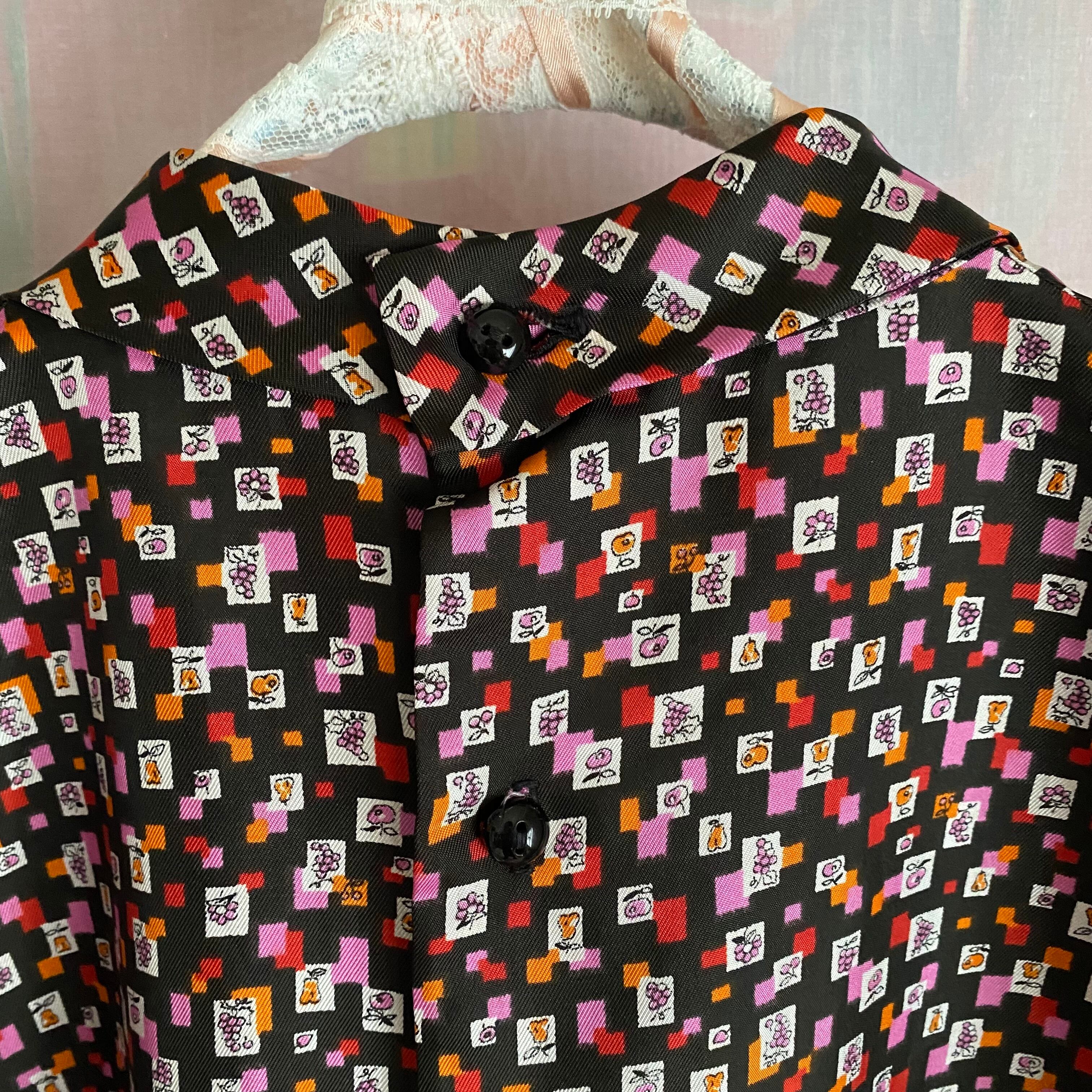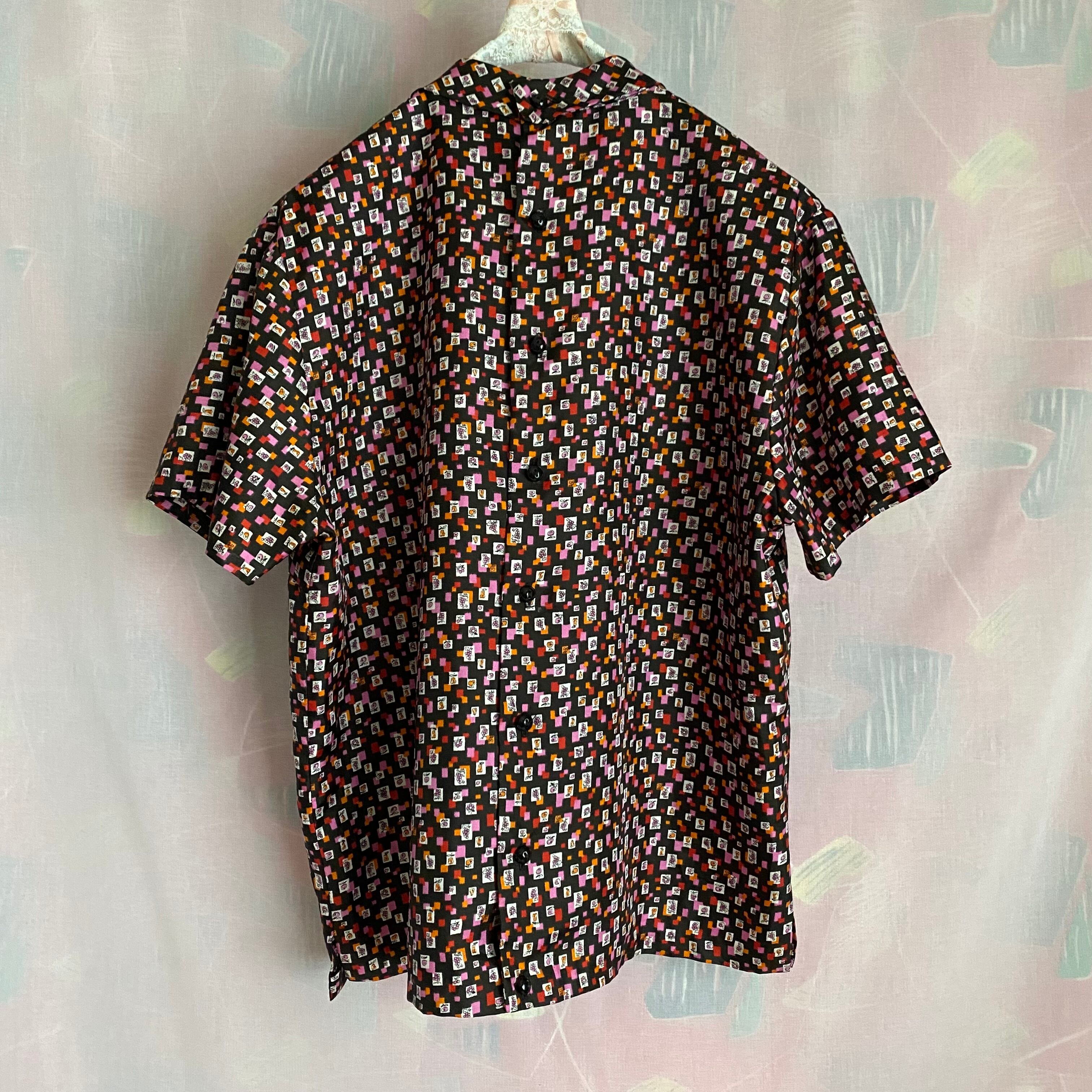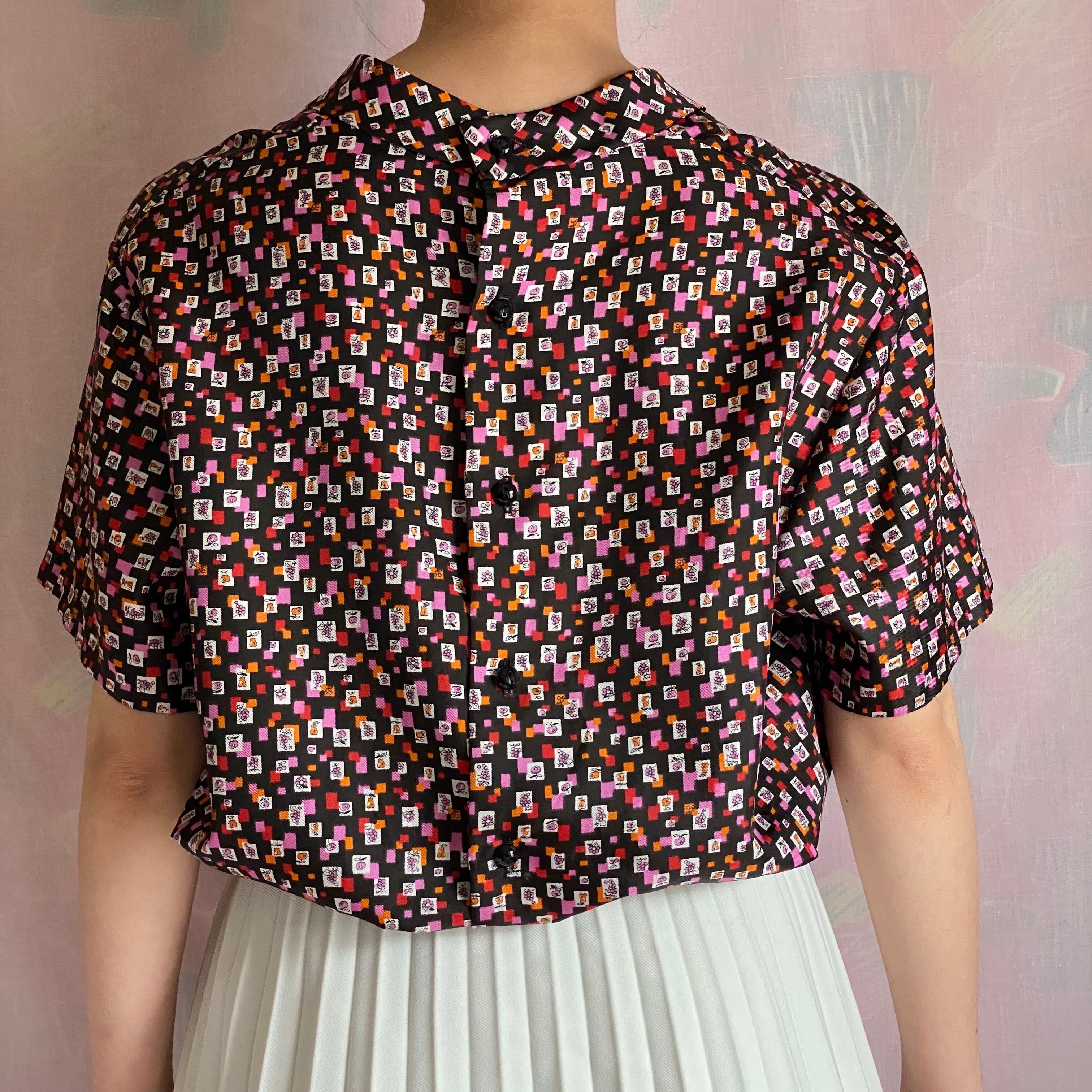 60's Geometric pattern x fruit pattern blouse with corsage