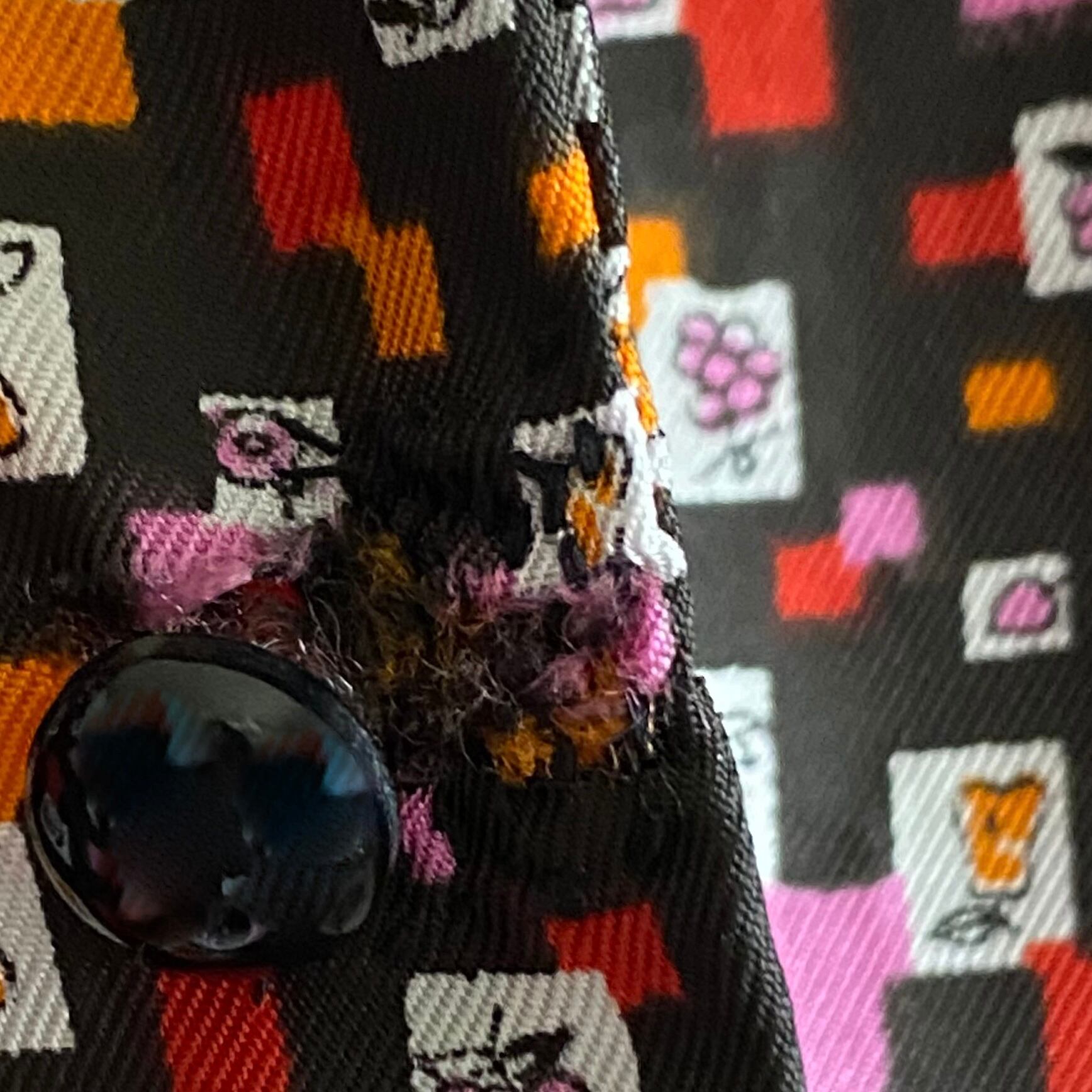 {コンディション}ボタンを留めると見えませんが、上から3つ目と4つ目のボタンホールにダメージとお直し痕があります。最後2枚の画像でご確認下さい。他は良いコンディションです。