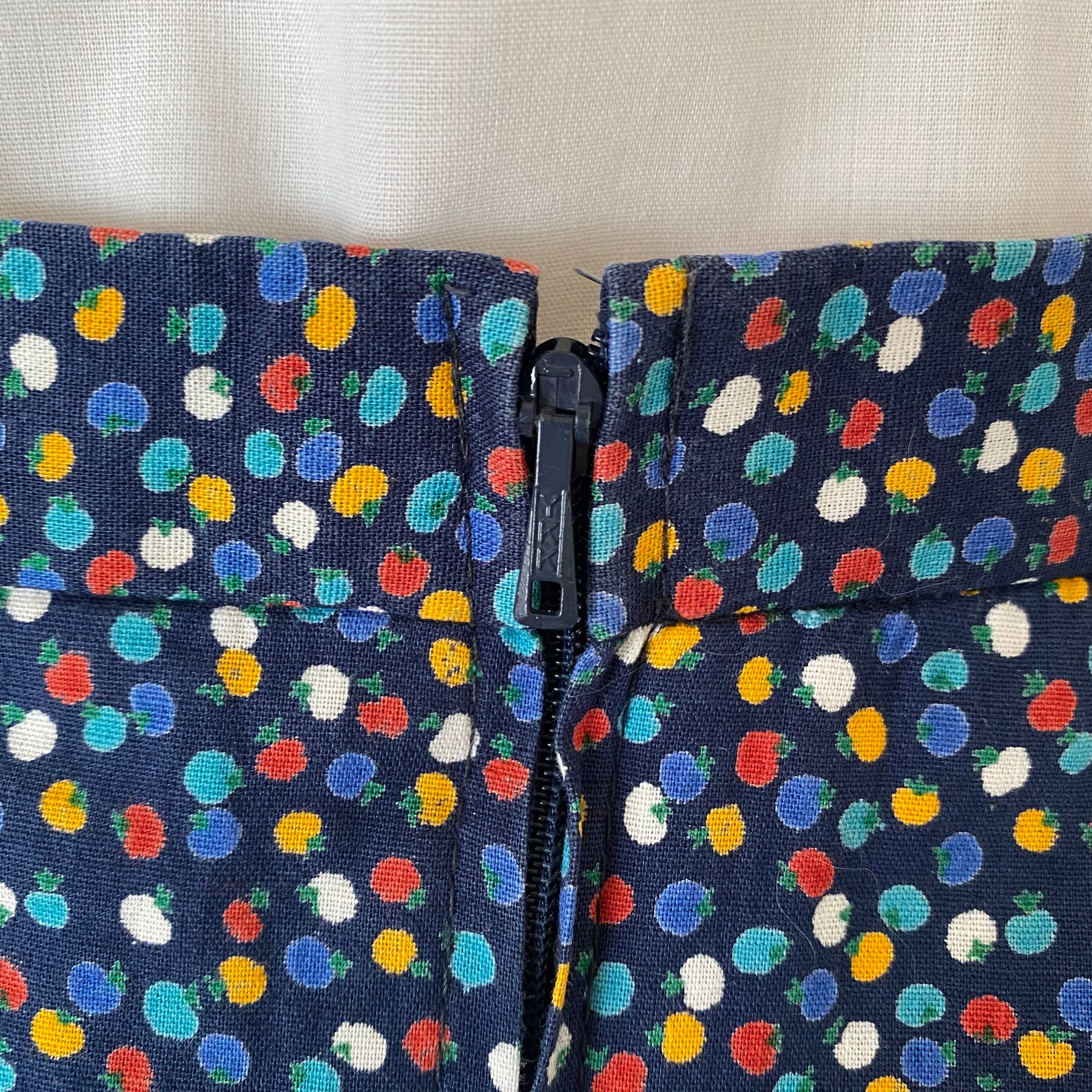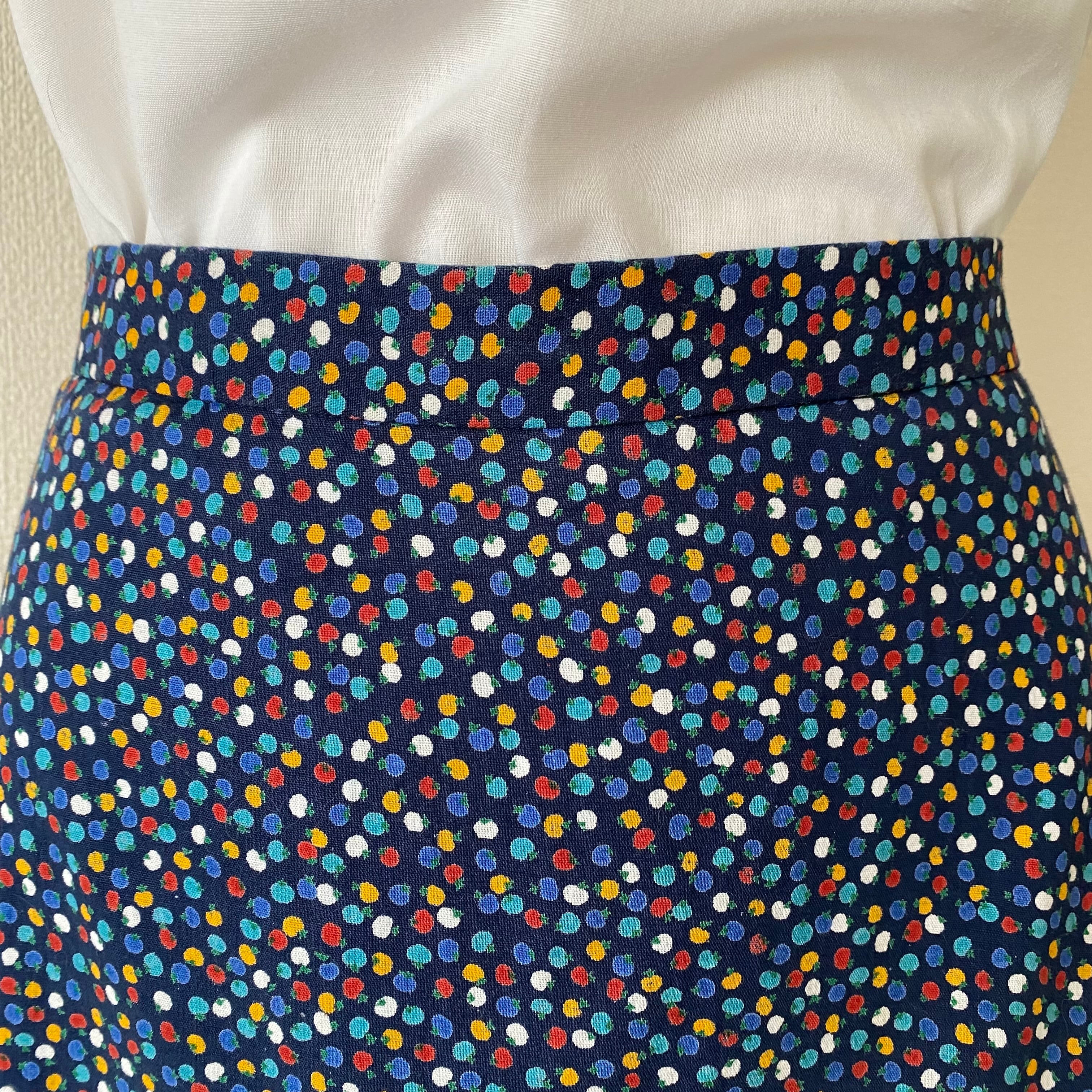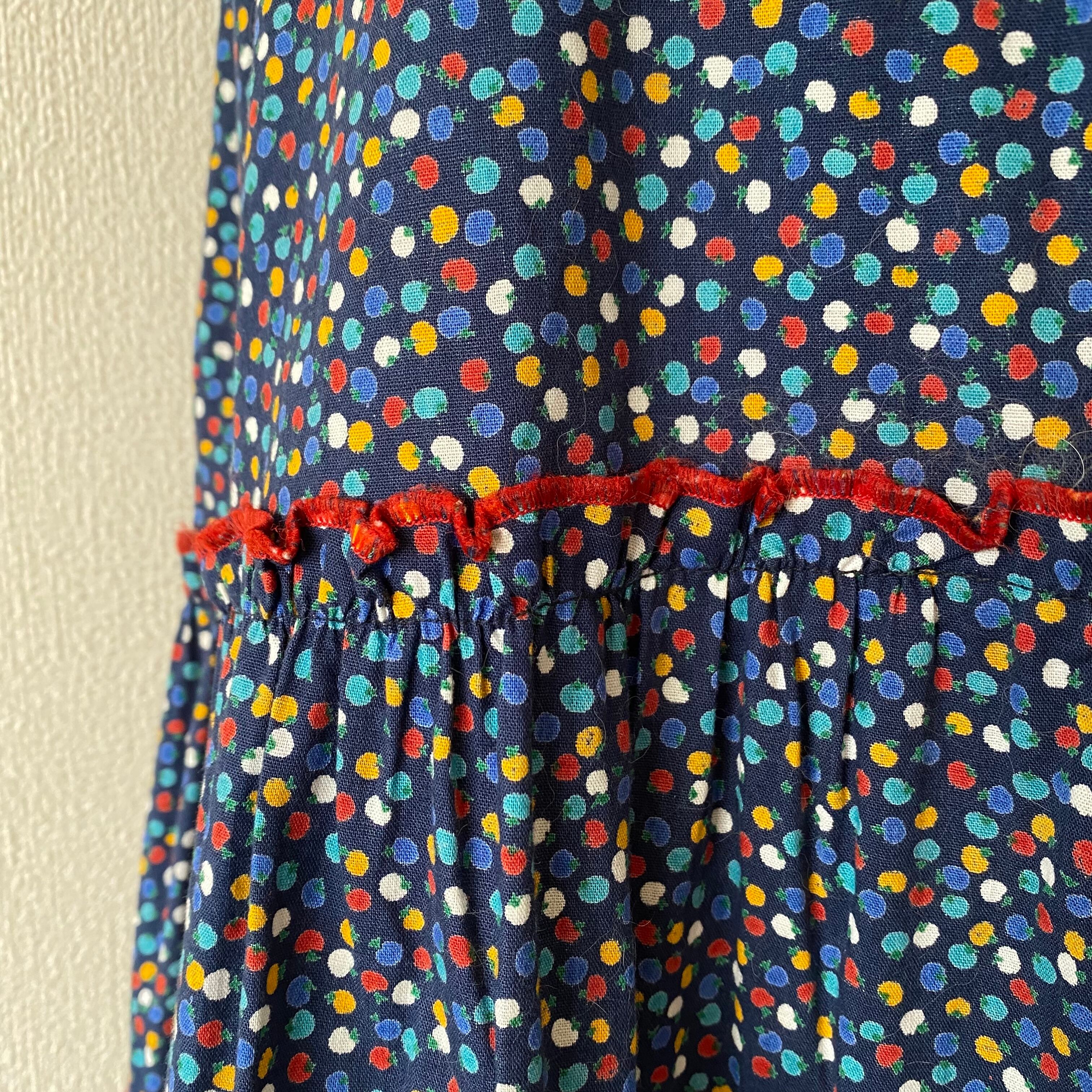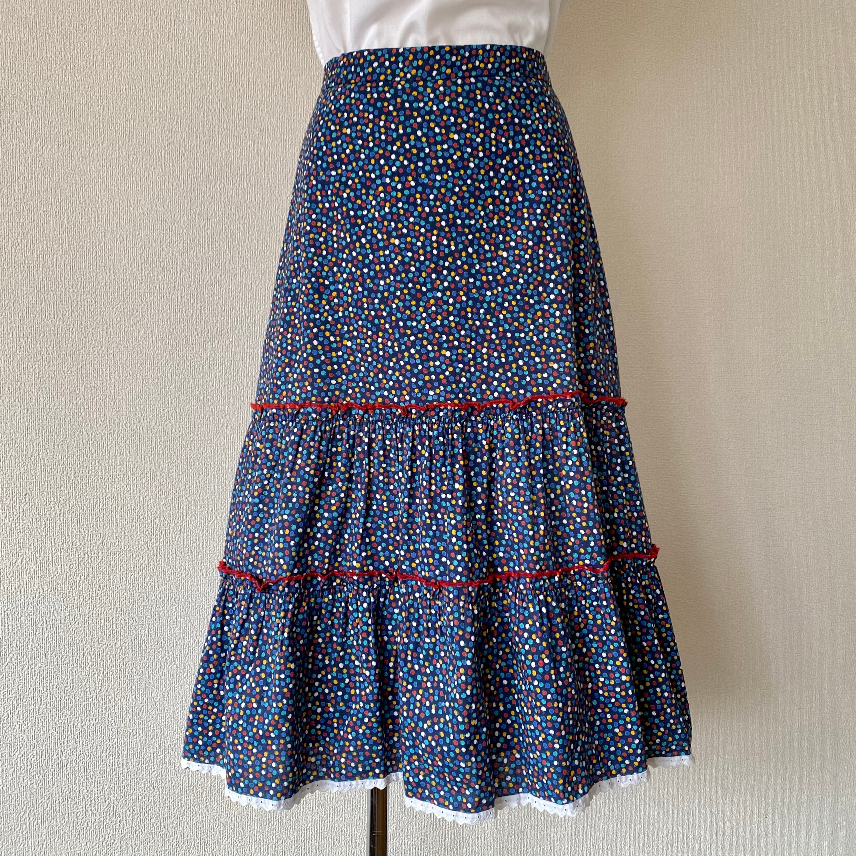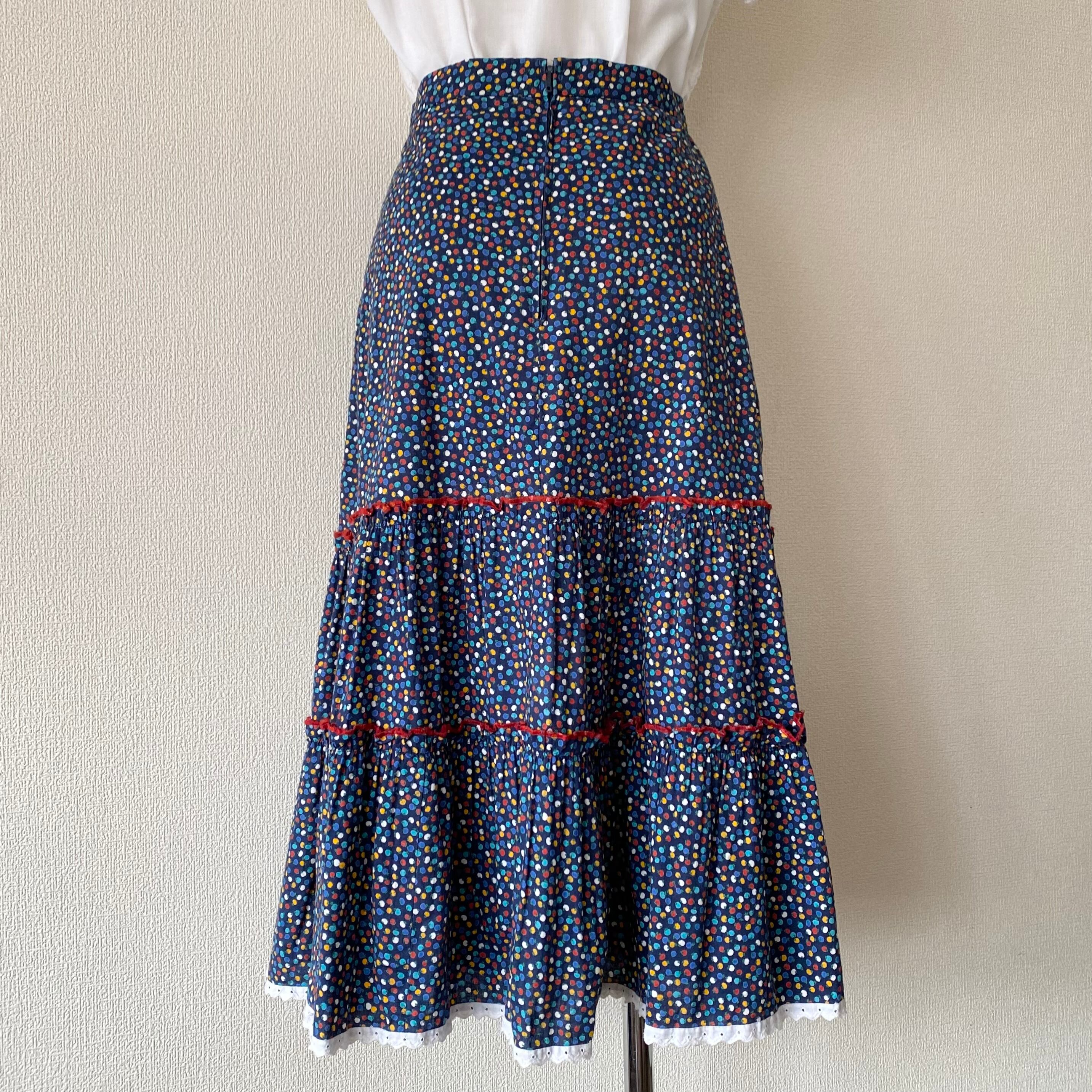 70's Multi-colored petit tomato pattern tiered skirt