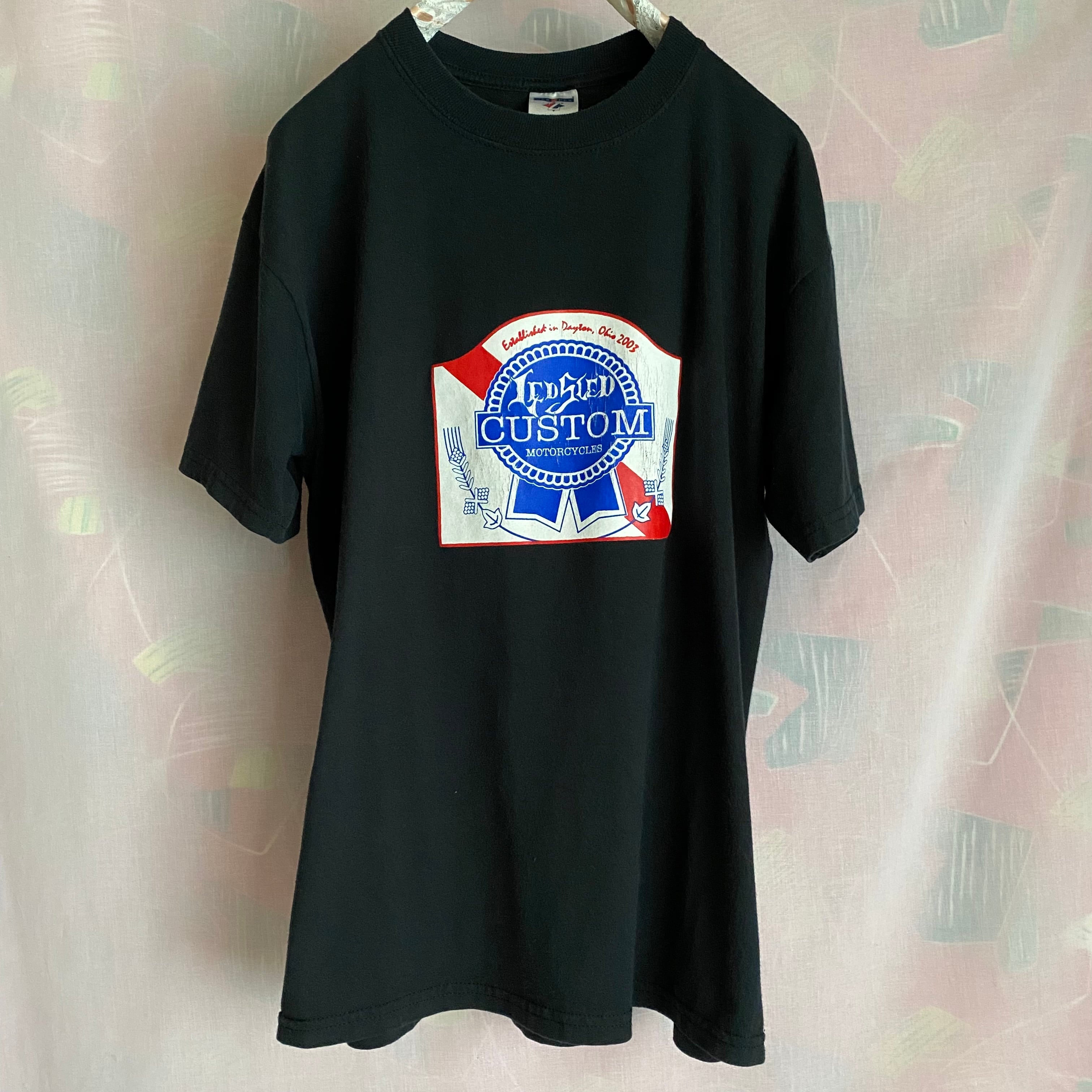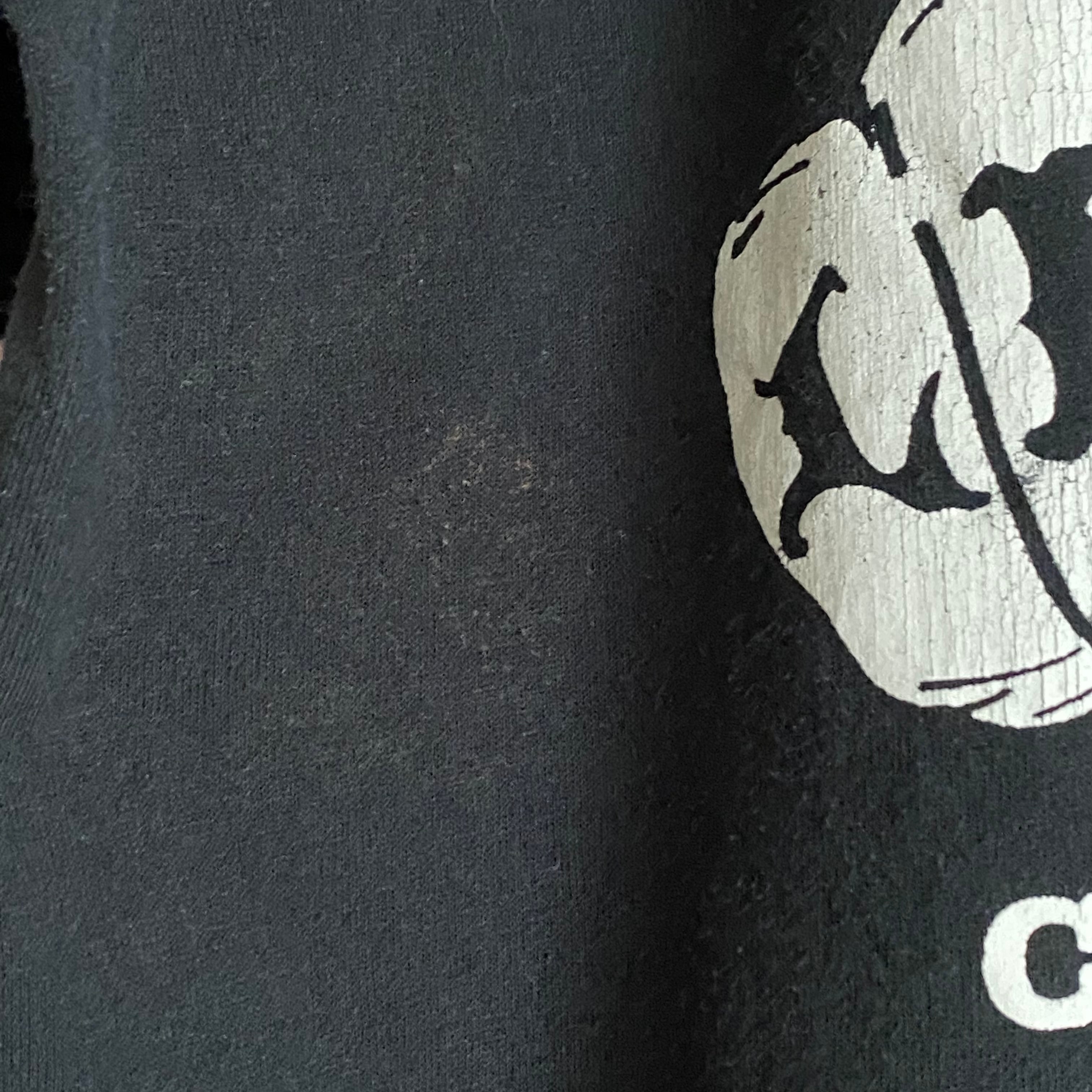 {コンディション}ラバープリントにひび割れ、ボディバックのプリント右側に着色、全体的に微細な毛玉がございます。