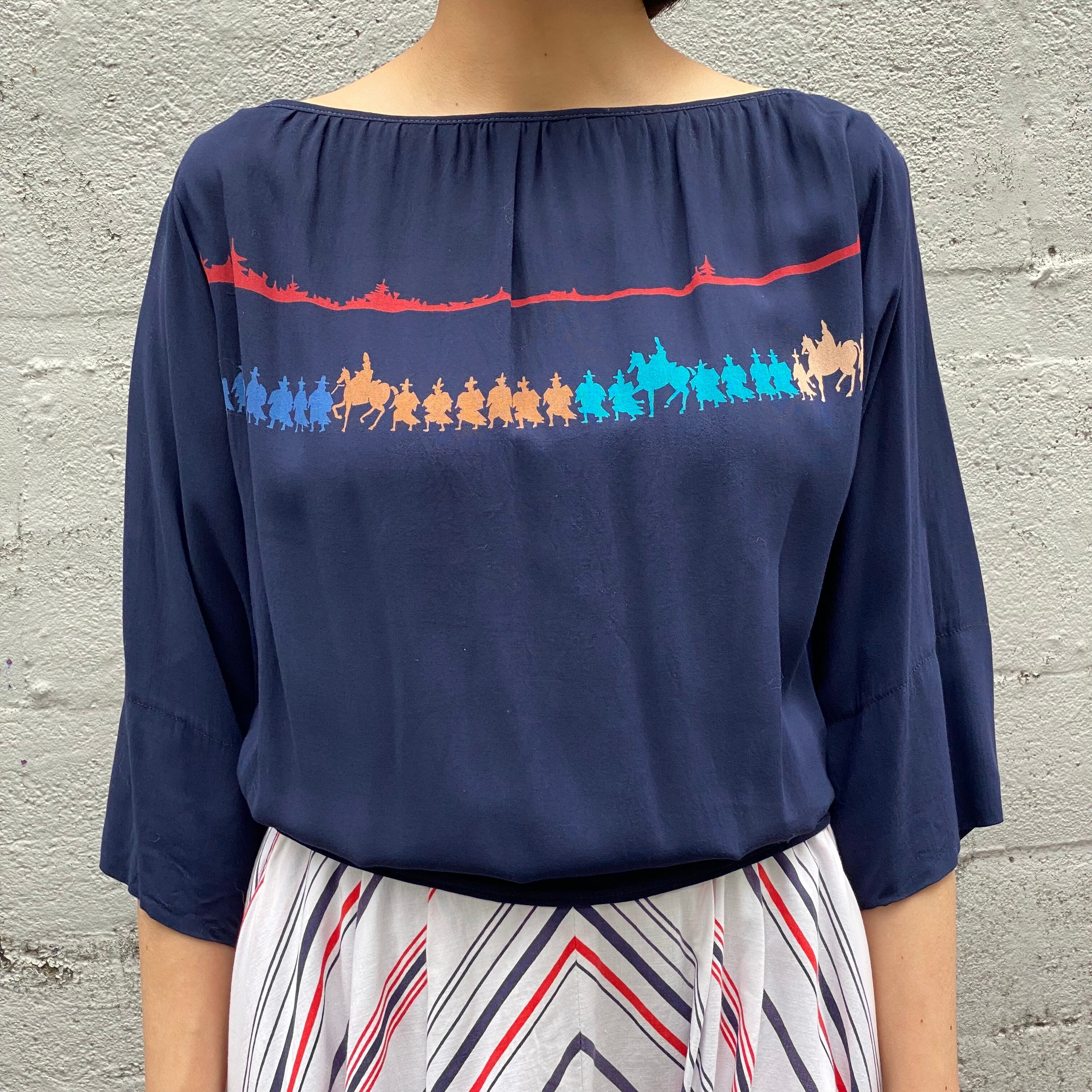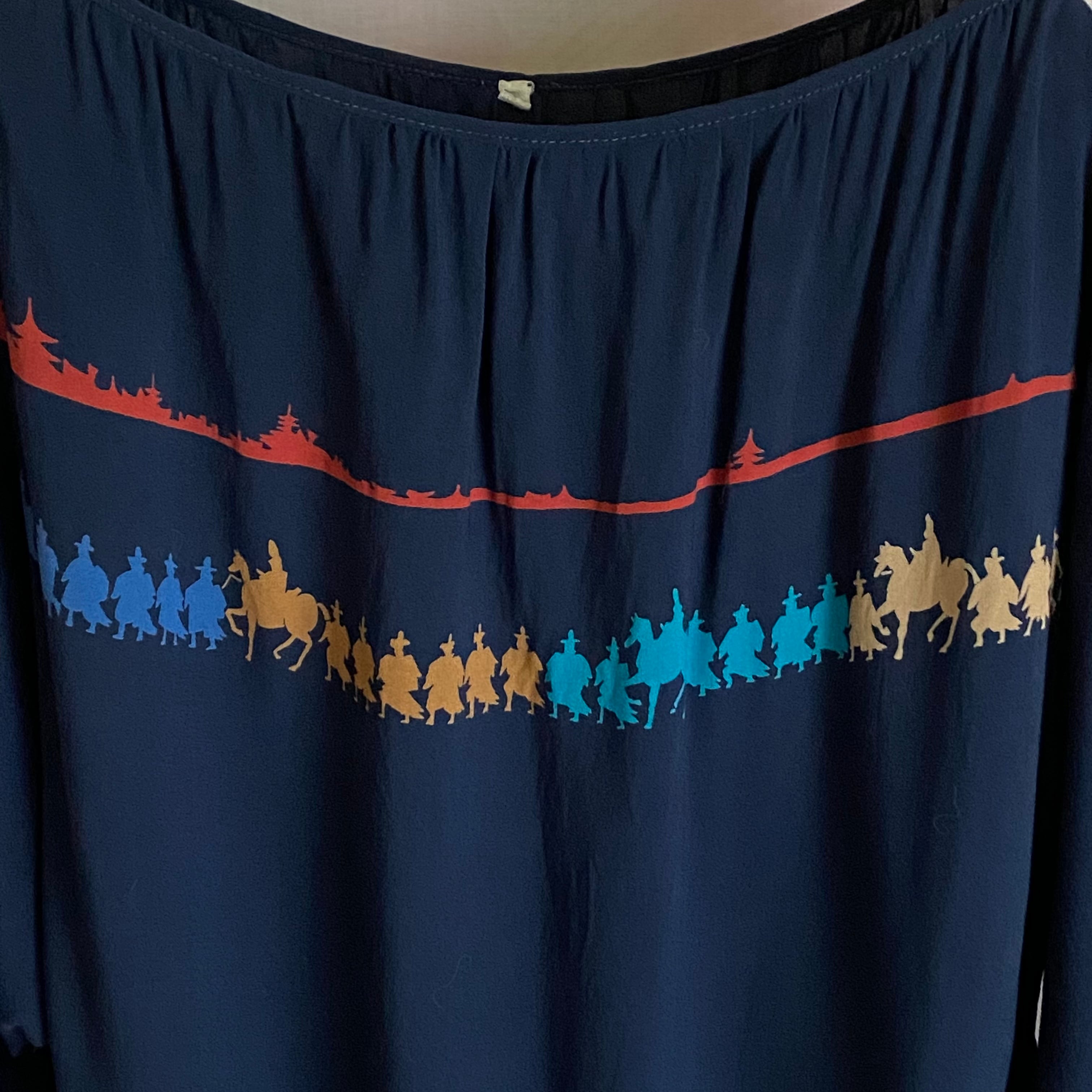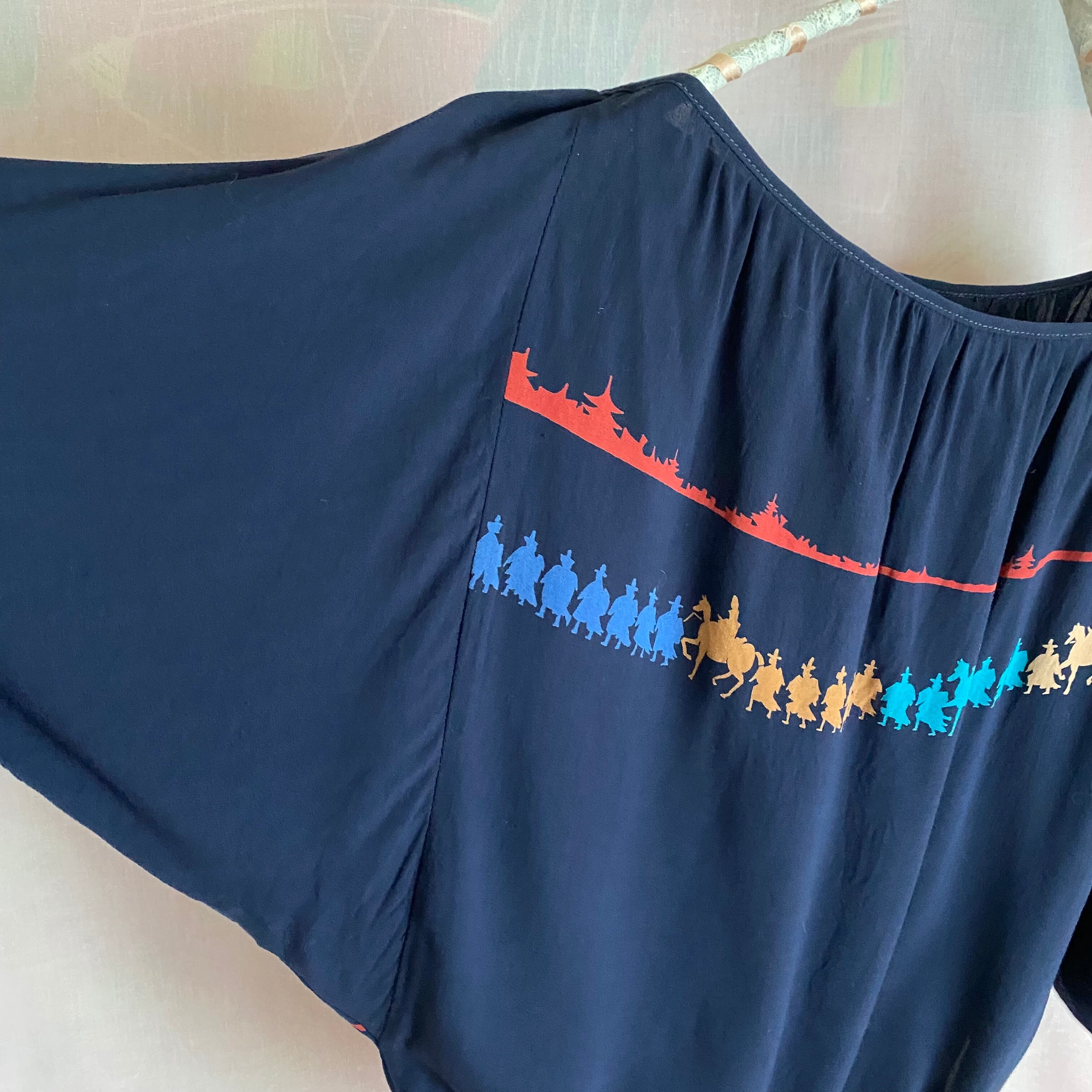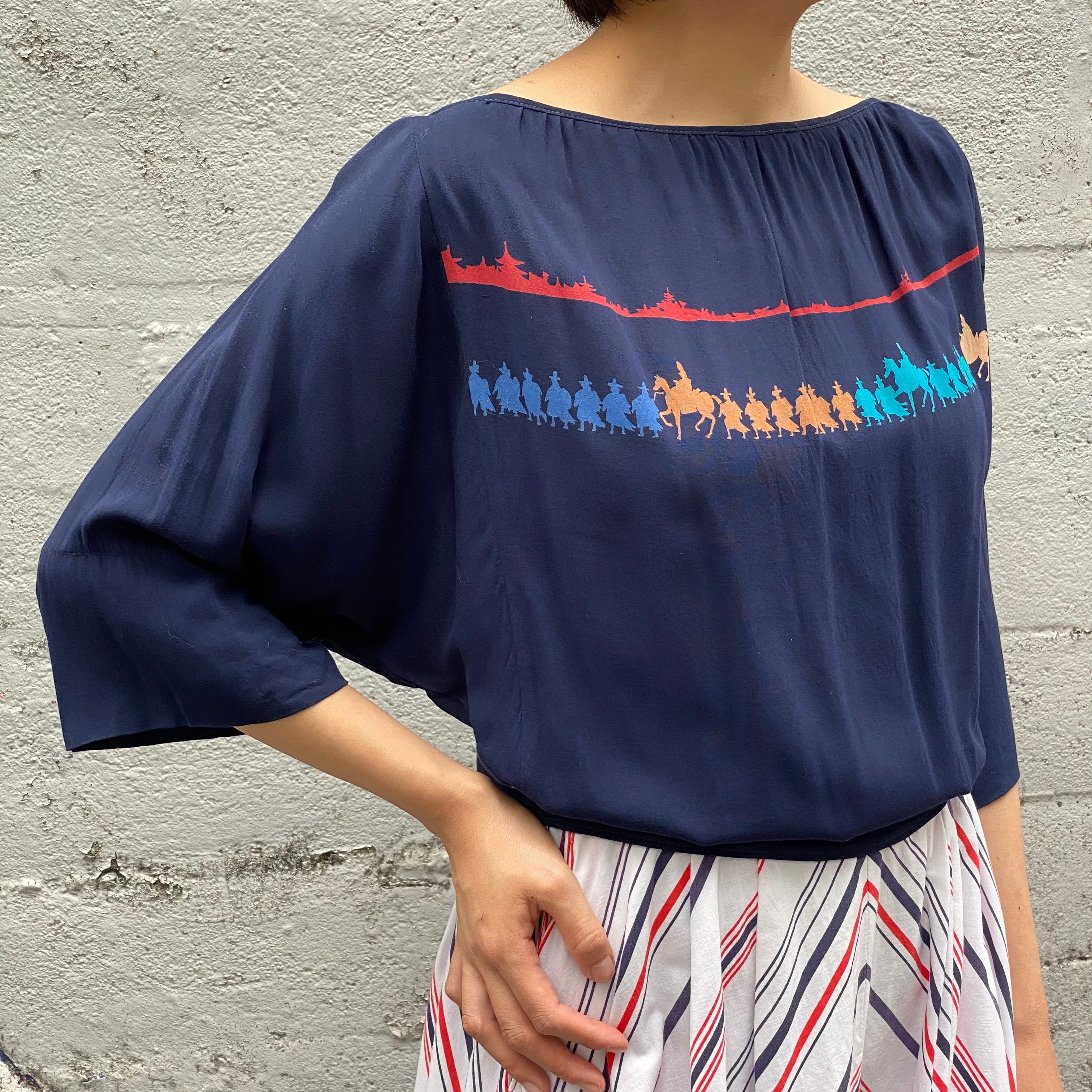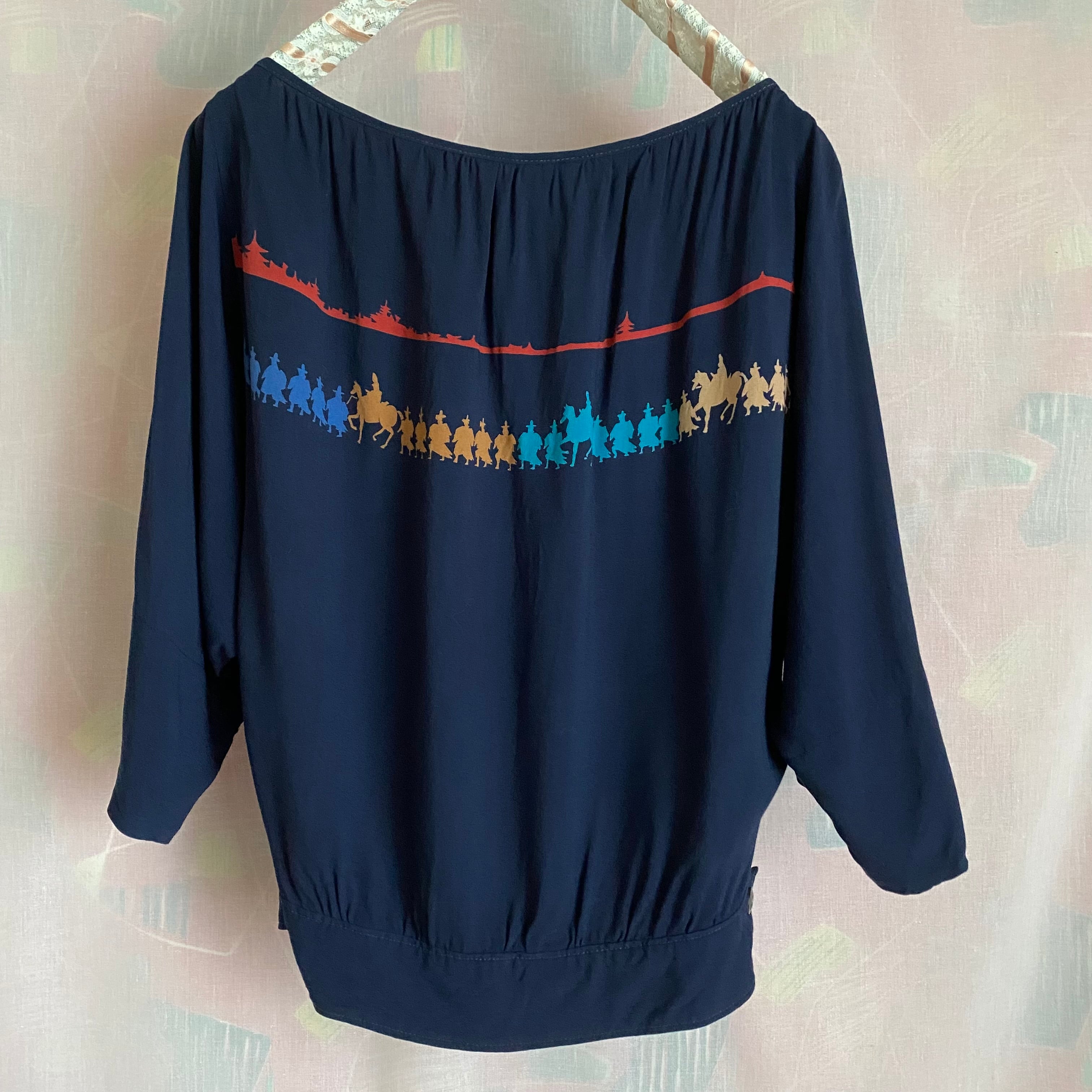 ドルマンスリーブのような七分袖もオリエンタルな印象。