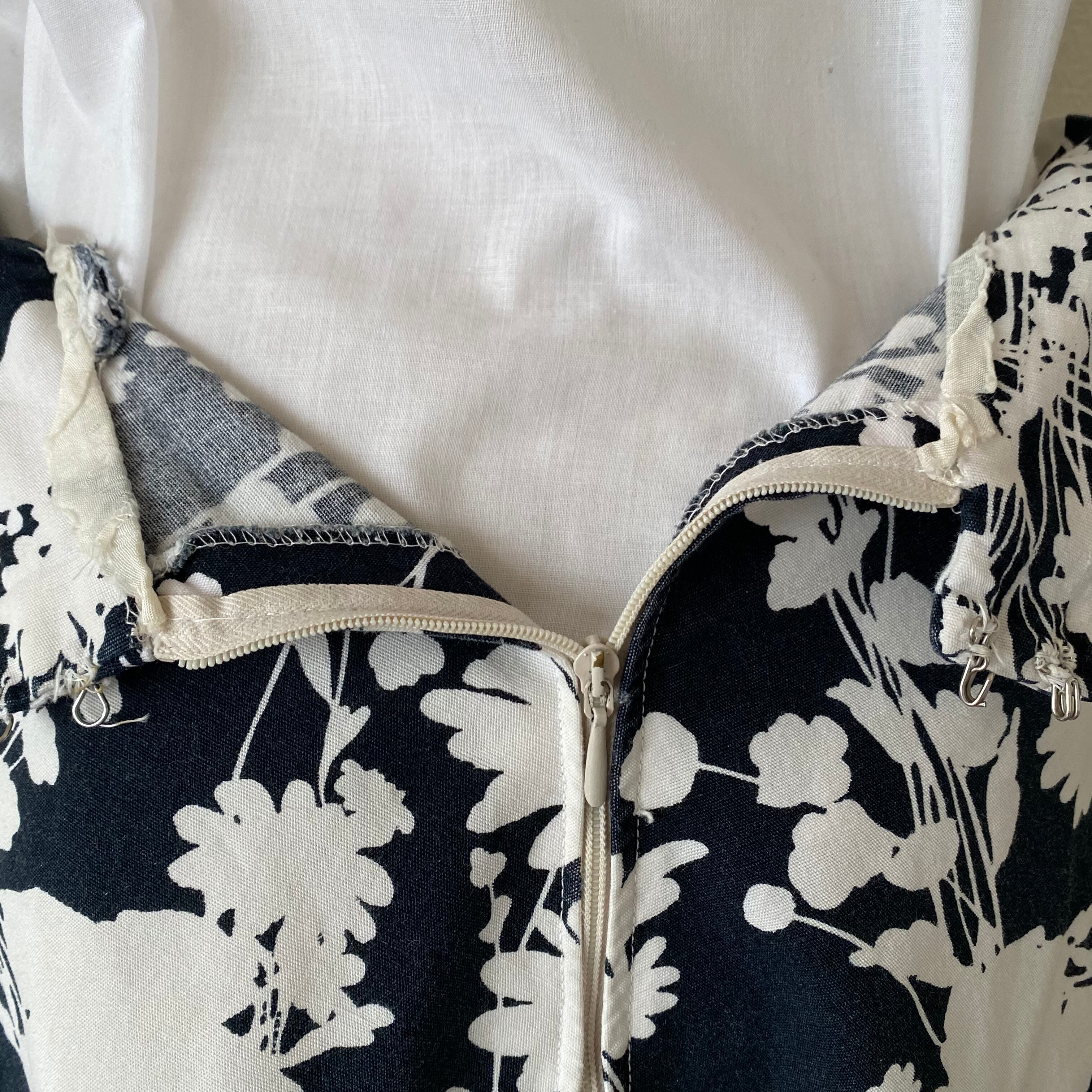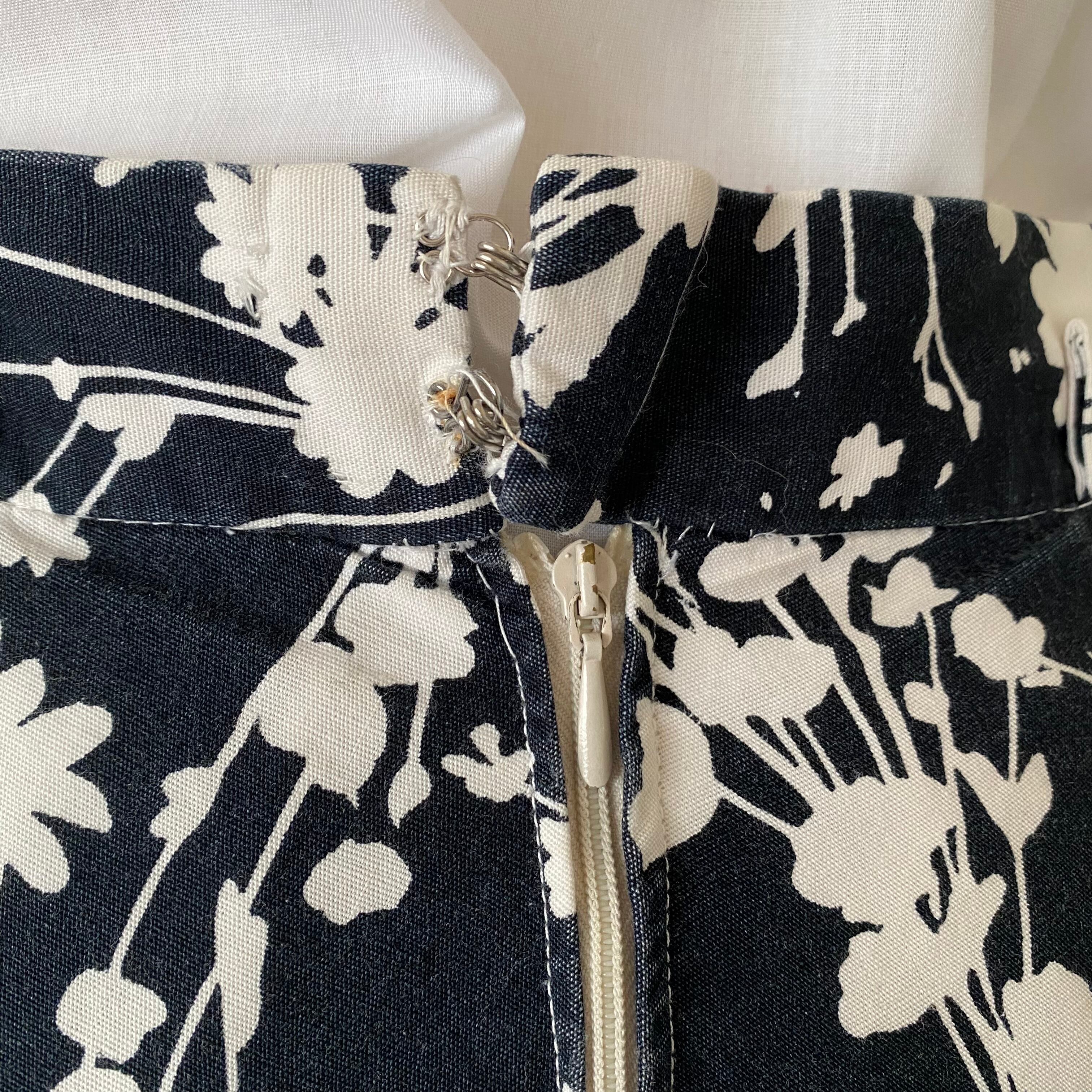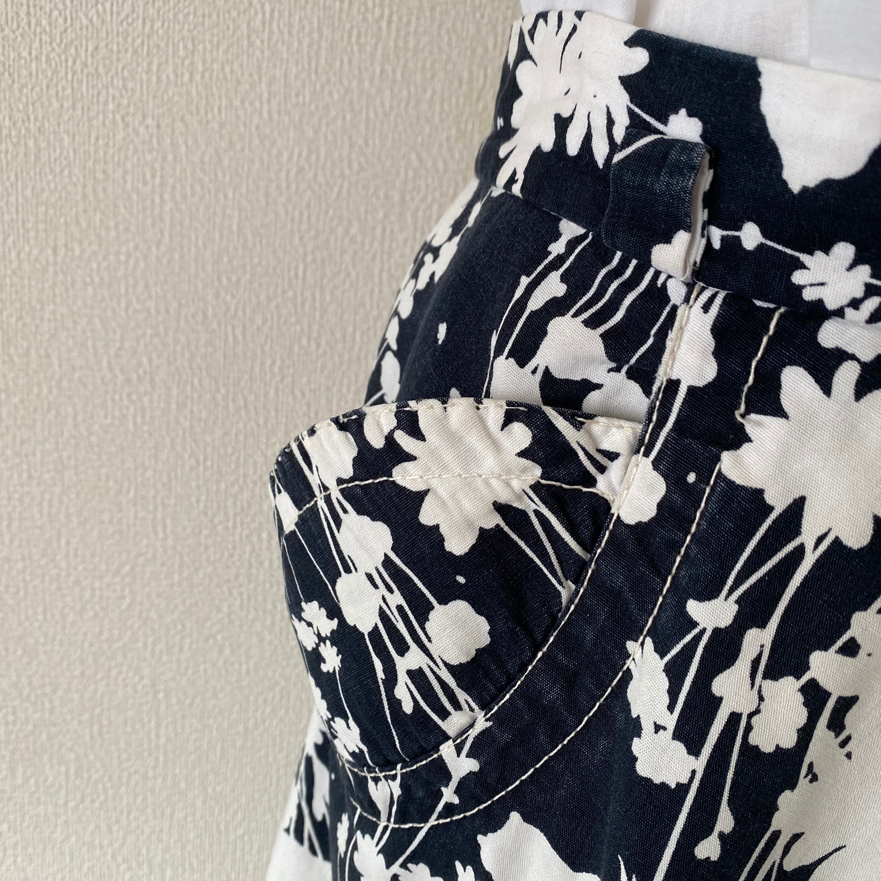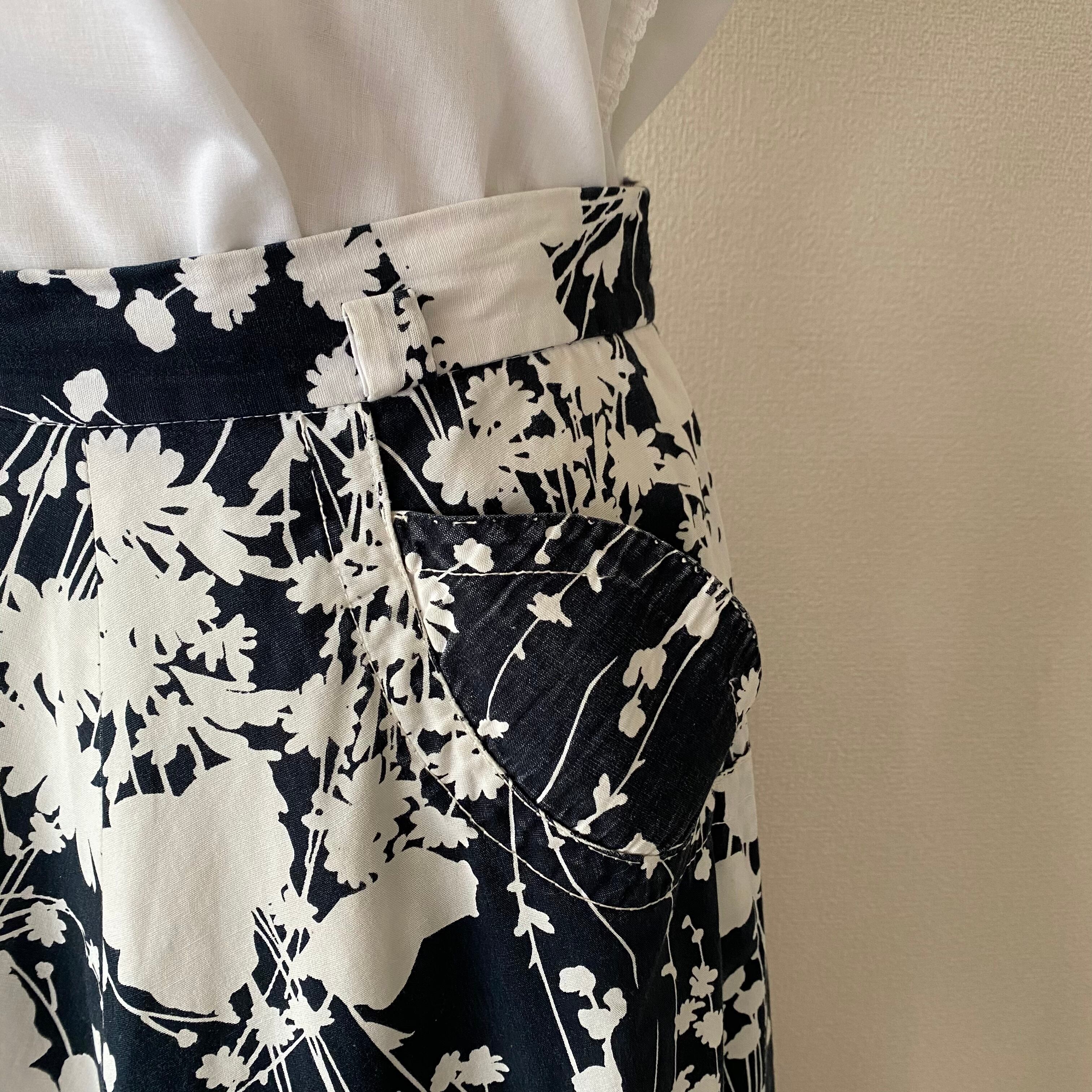 シックなブラック&ホワイトのボタニカル柄スカート。ゆるフレアーAラインシルエットです。