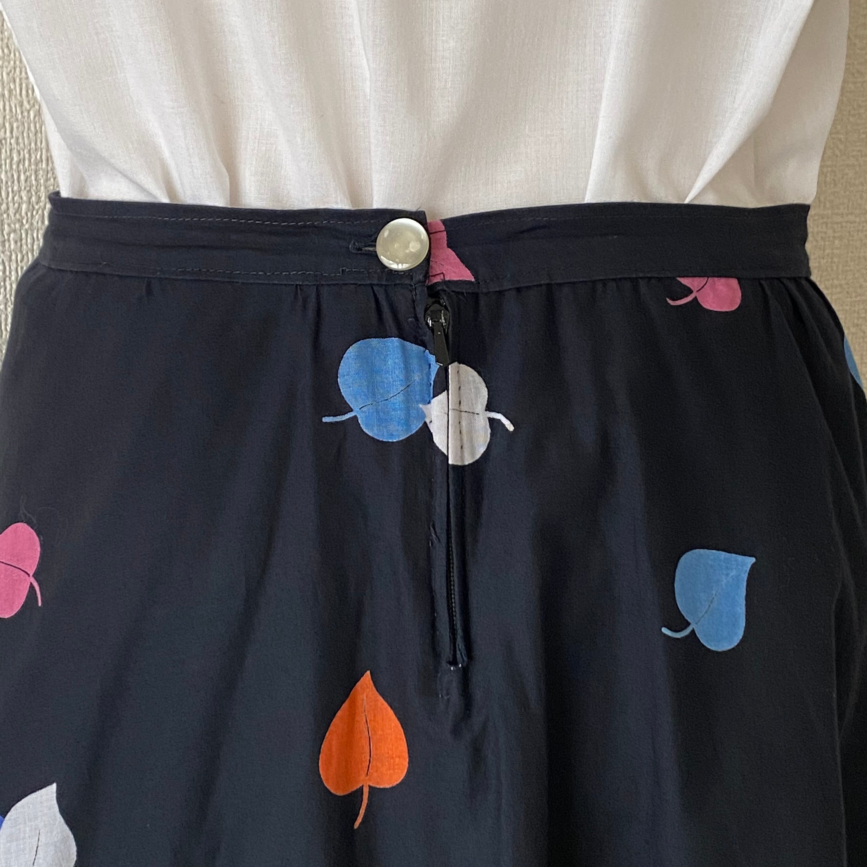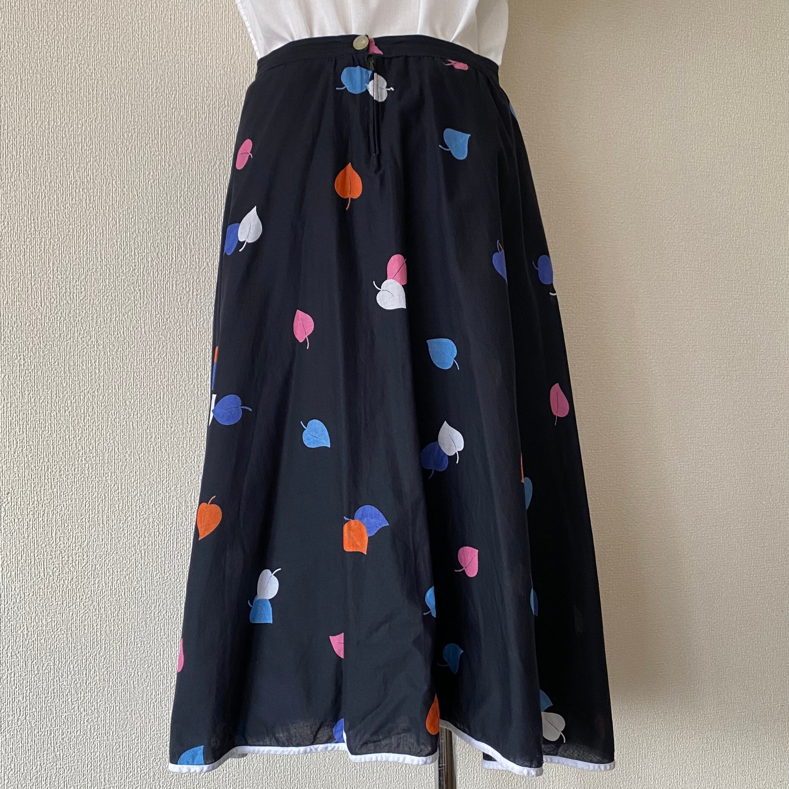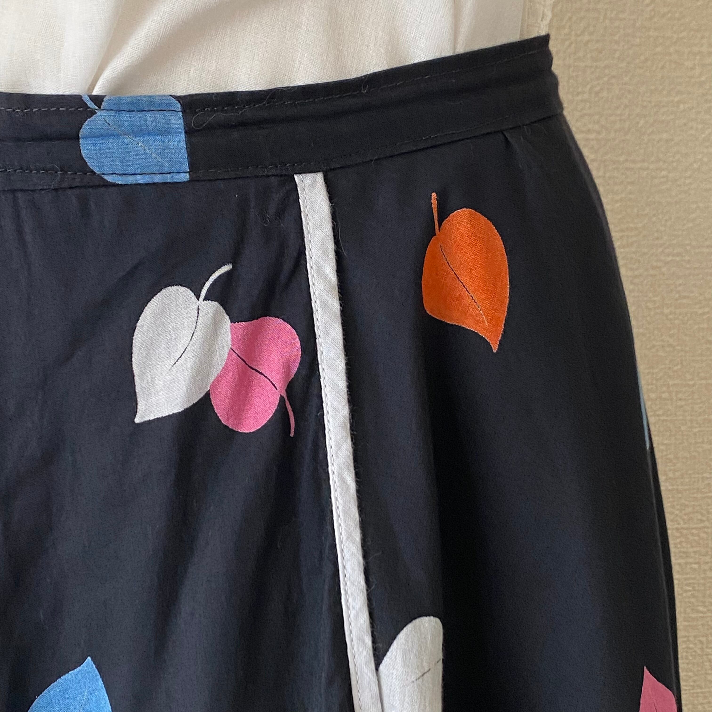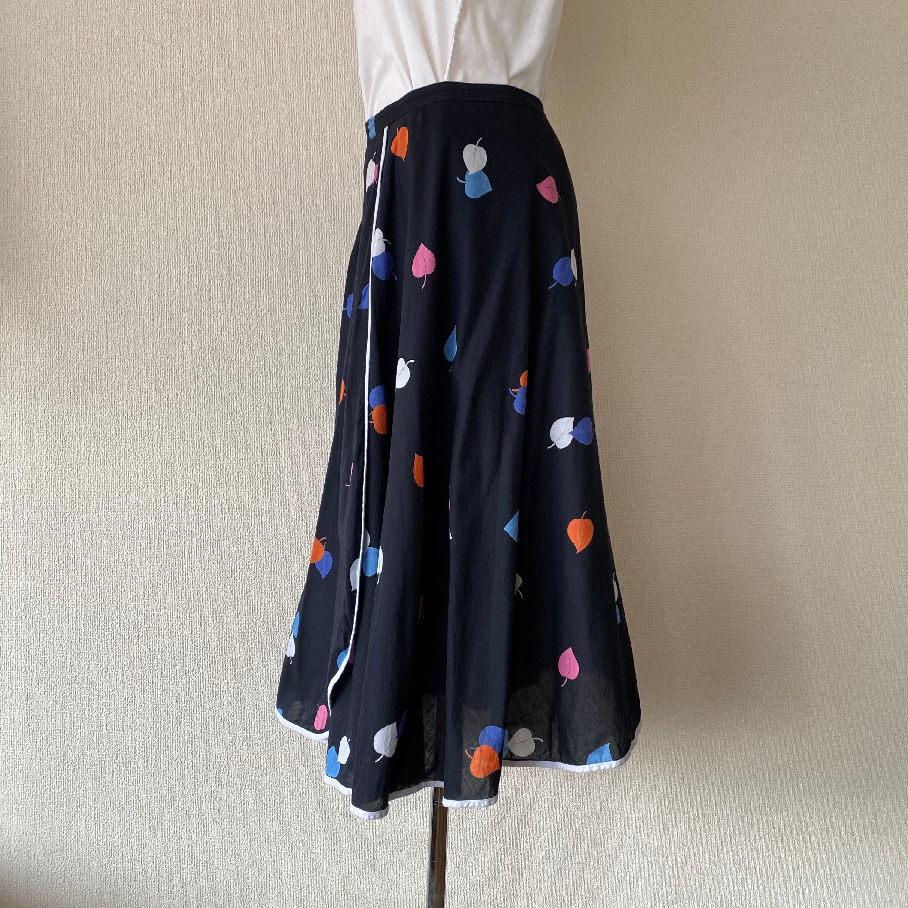カラフルリーフが舞うラップ風スカート。