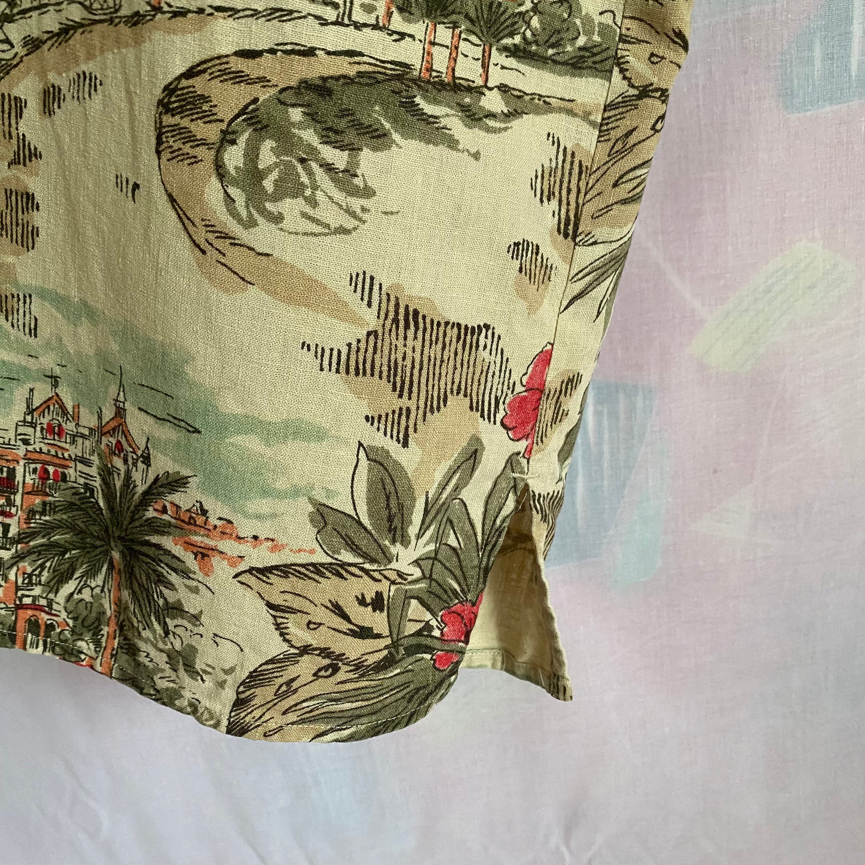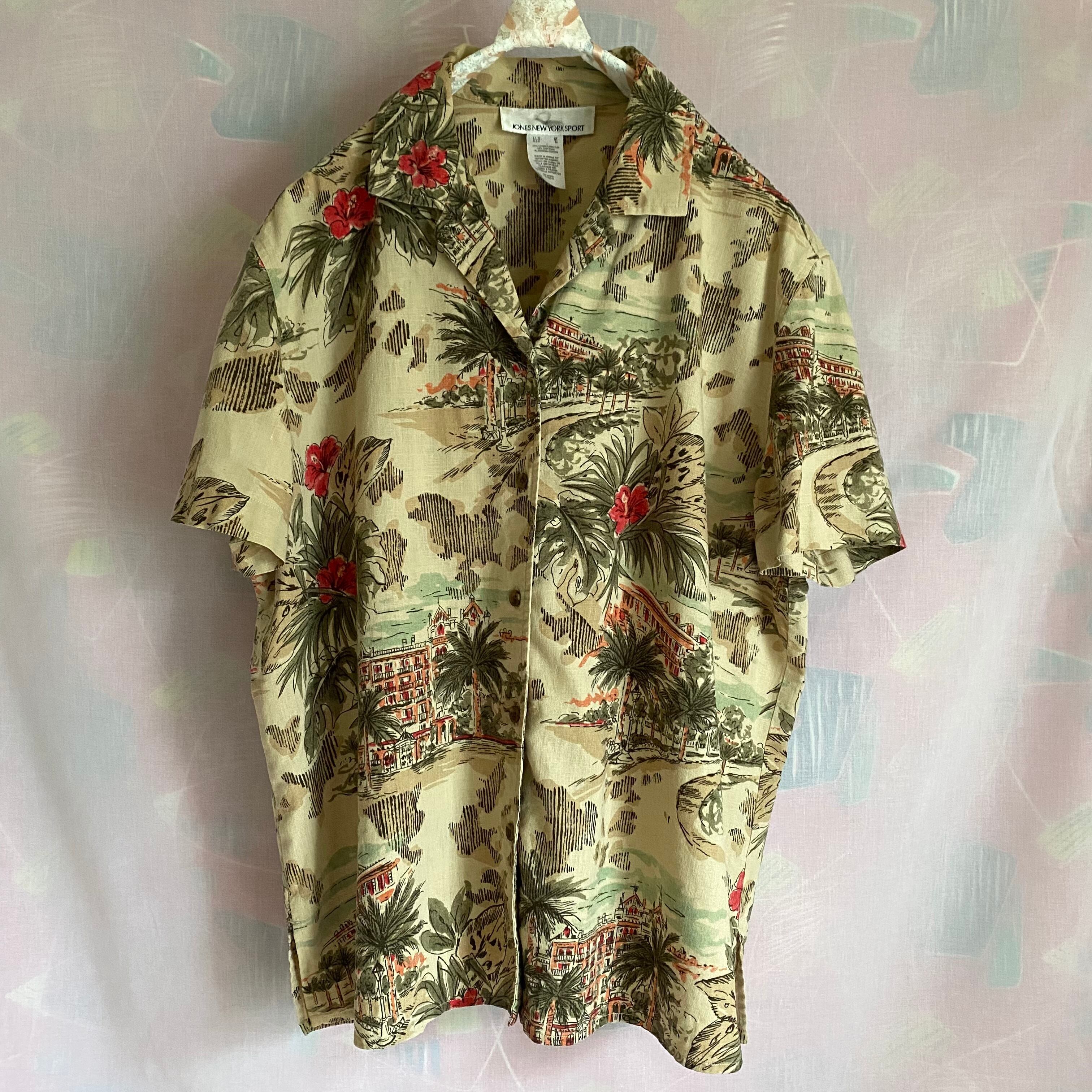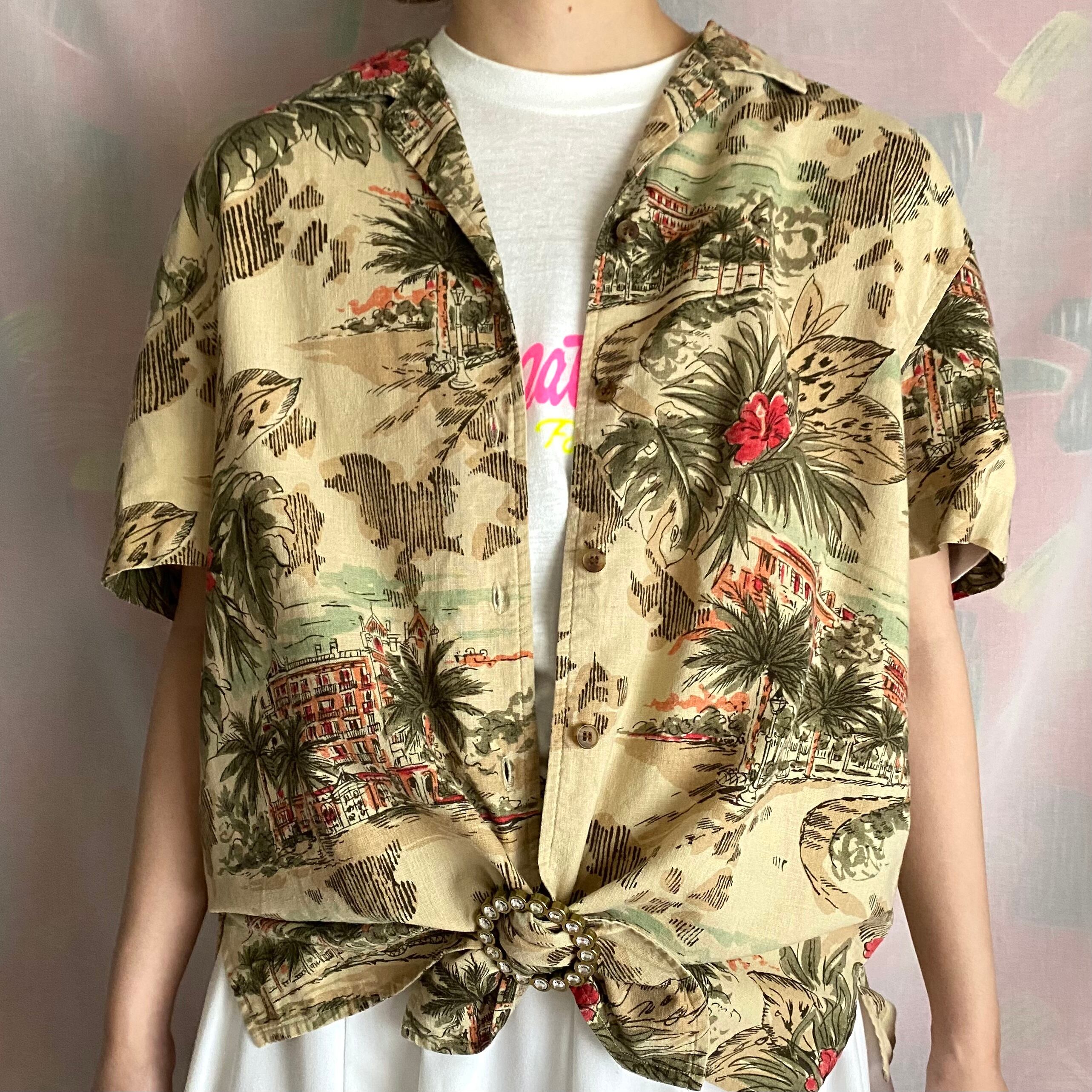 Used beige tone aloha shirt