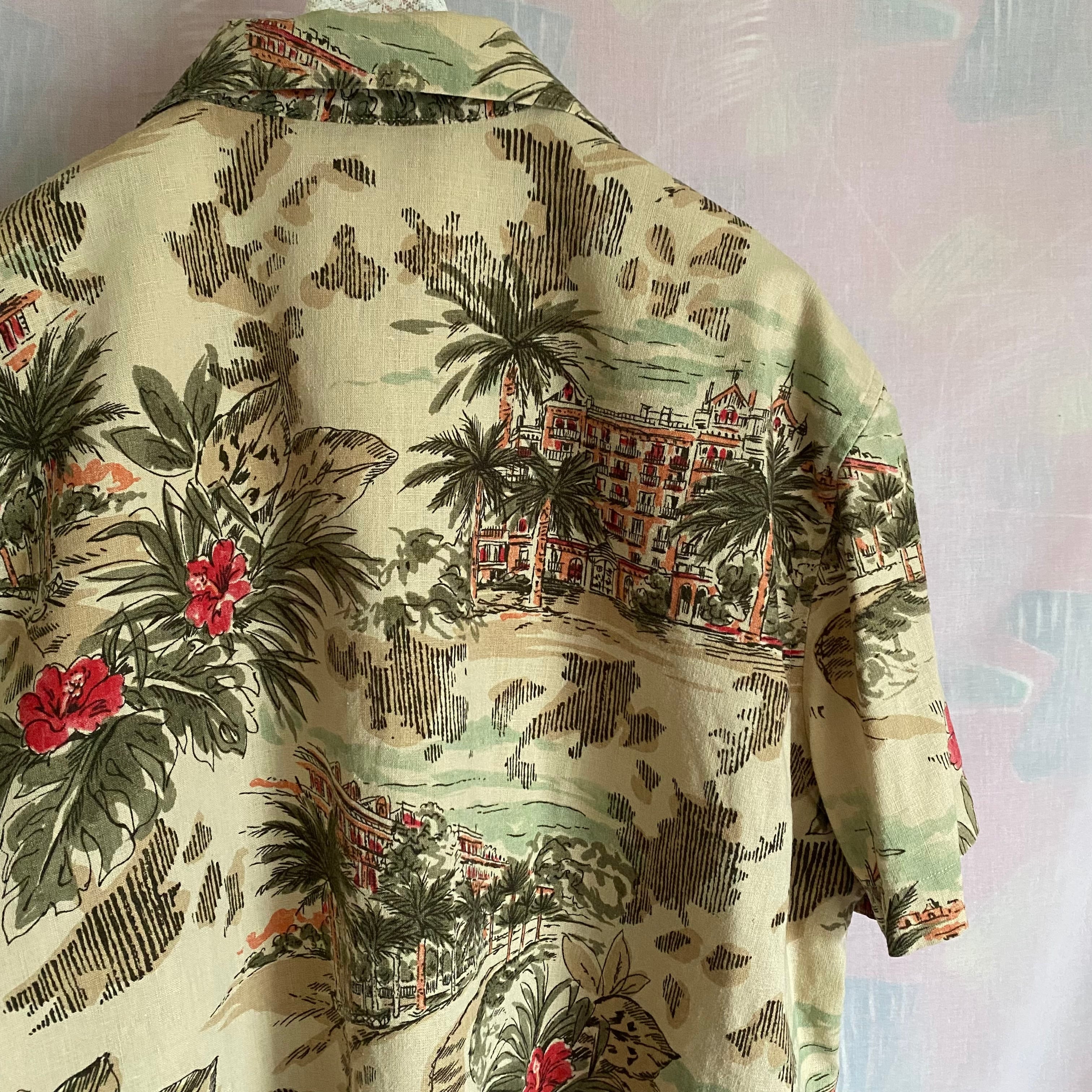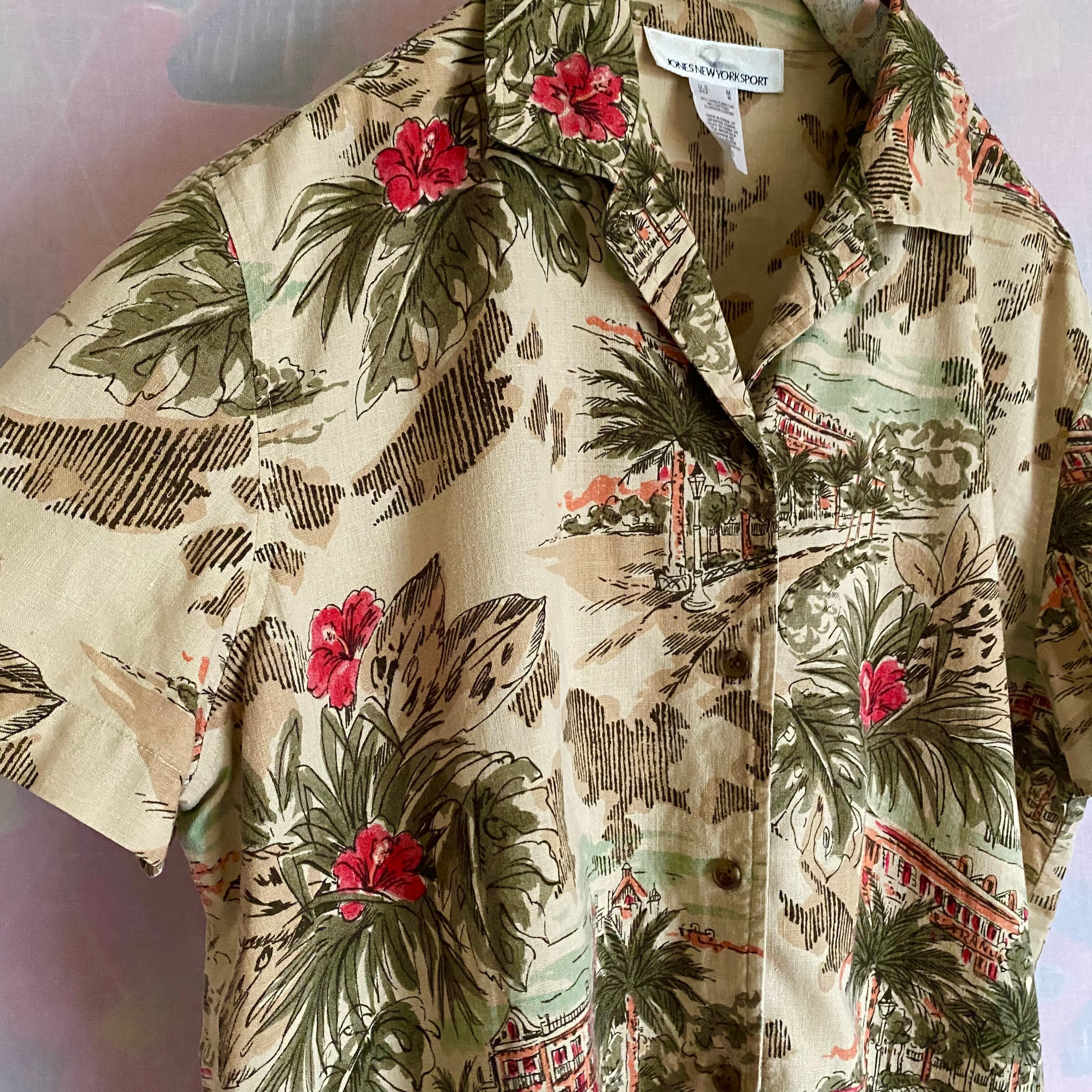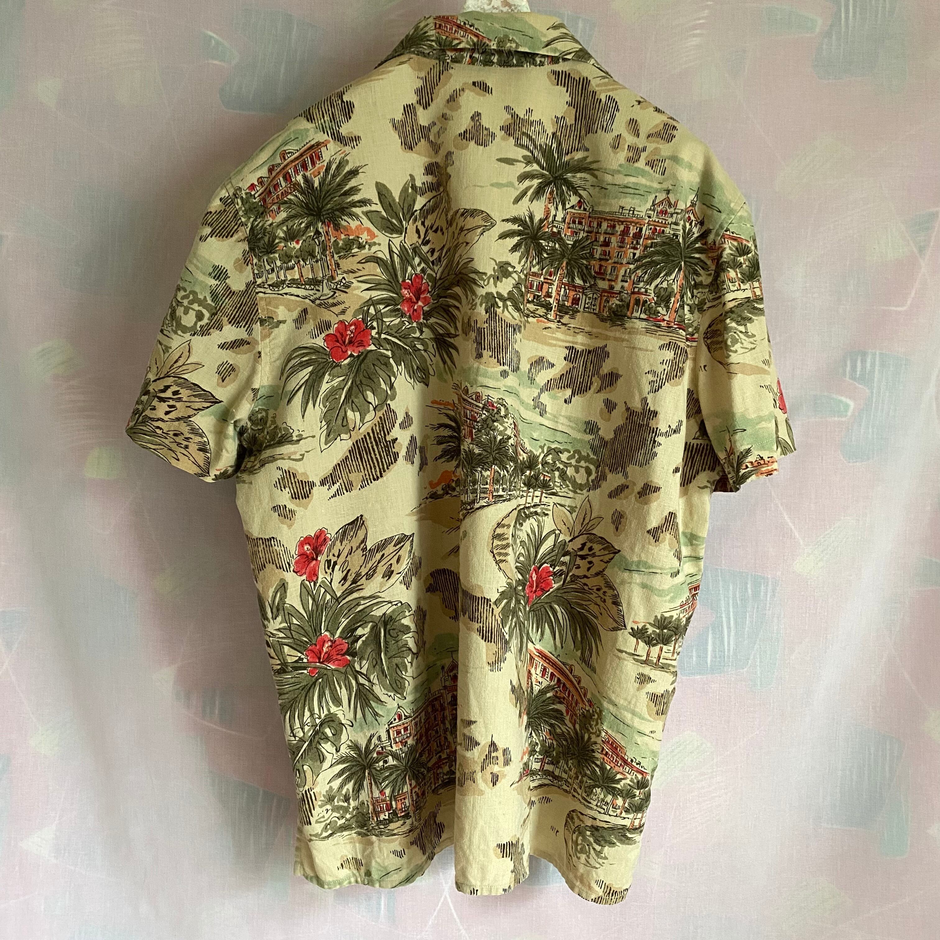 Used beige tone aloha shirt