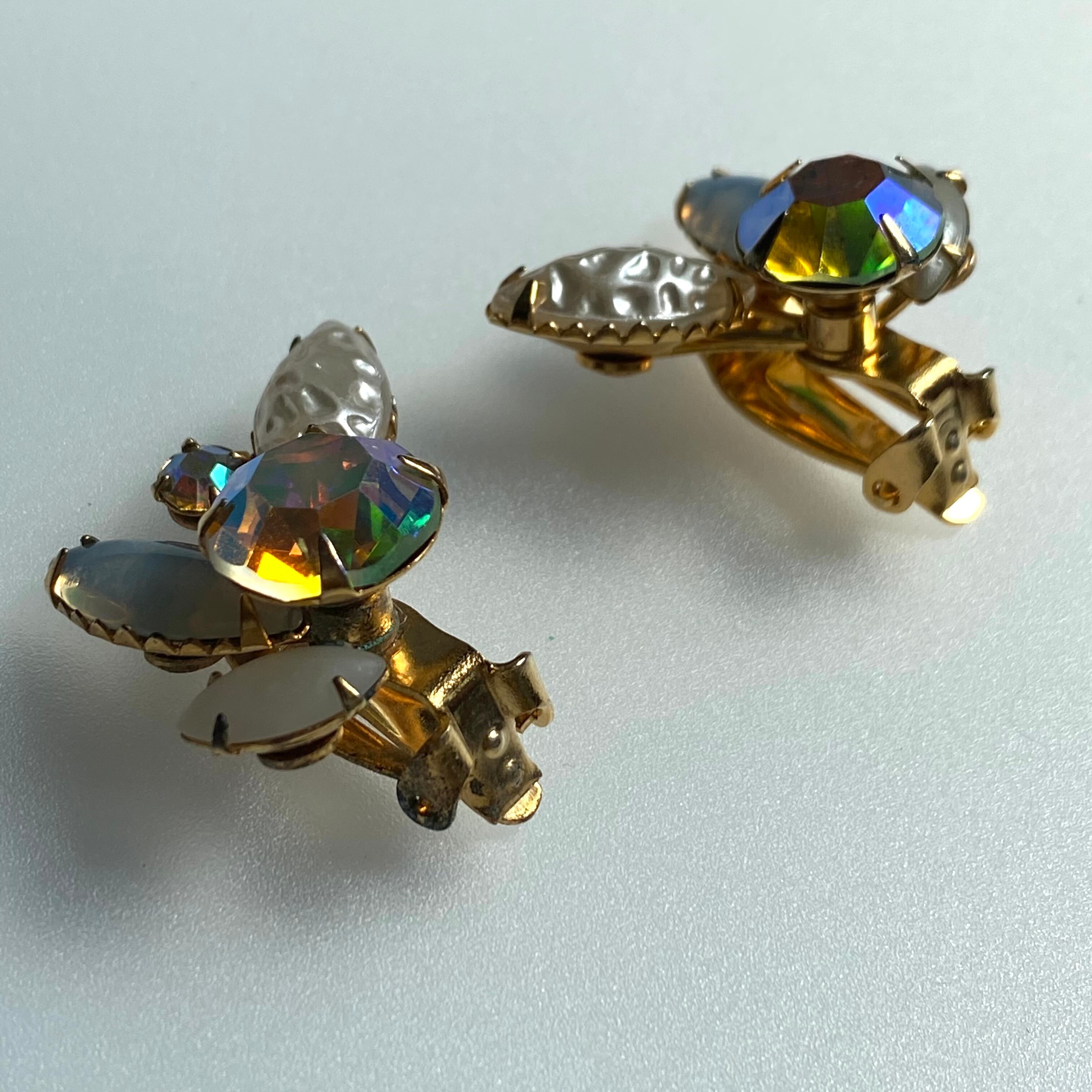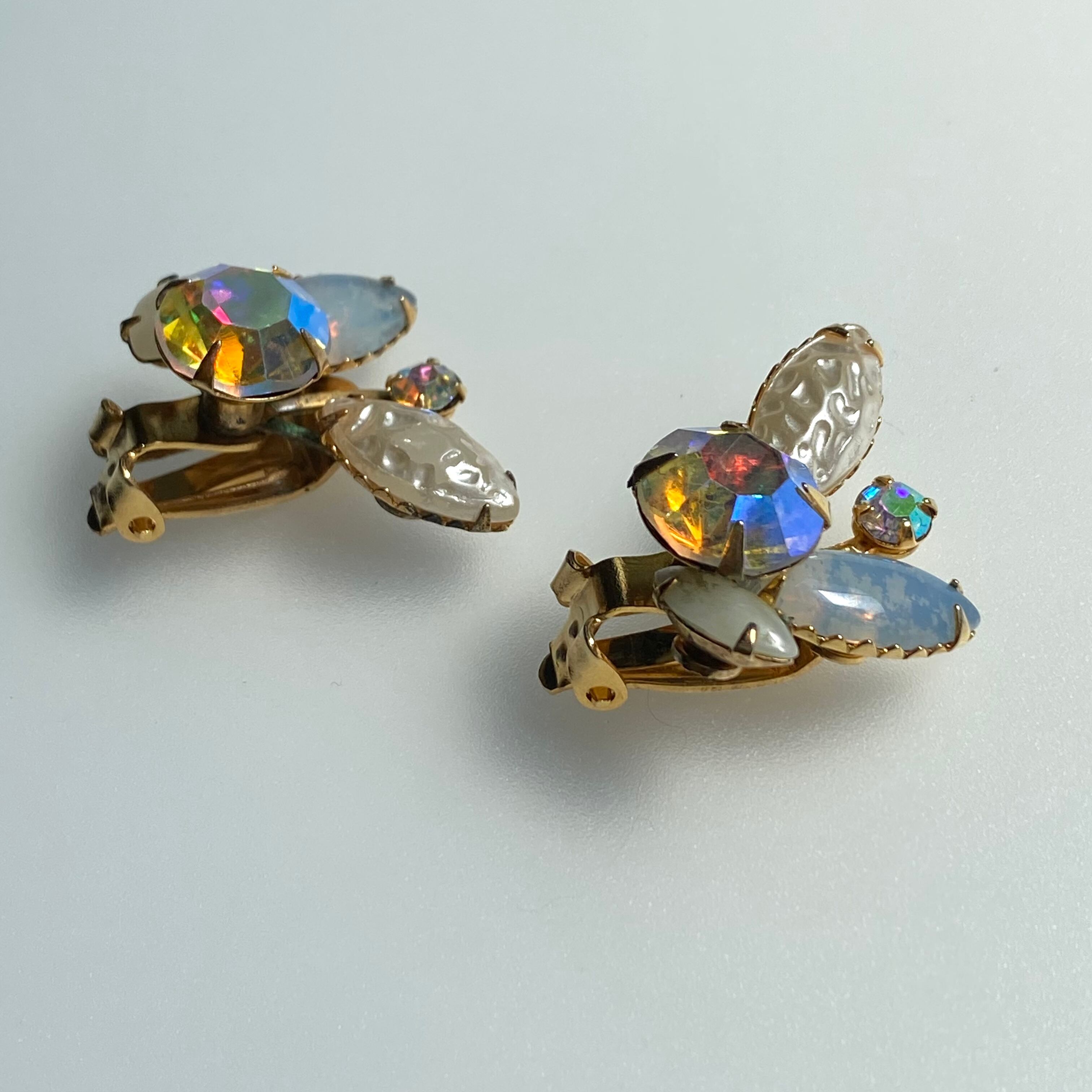 50's〜60's 「BEAU JUWELS」aurora x white earrings