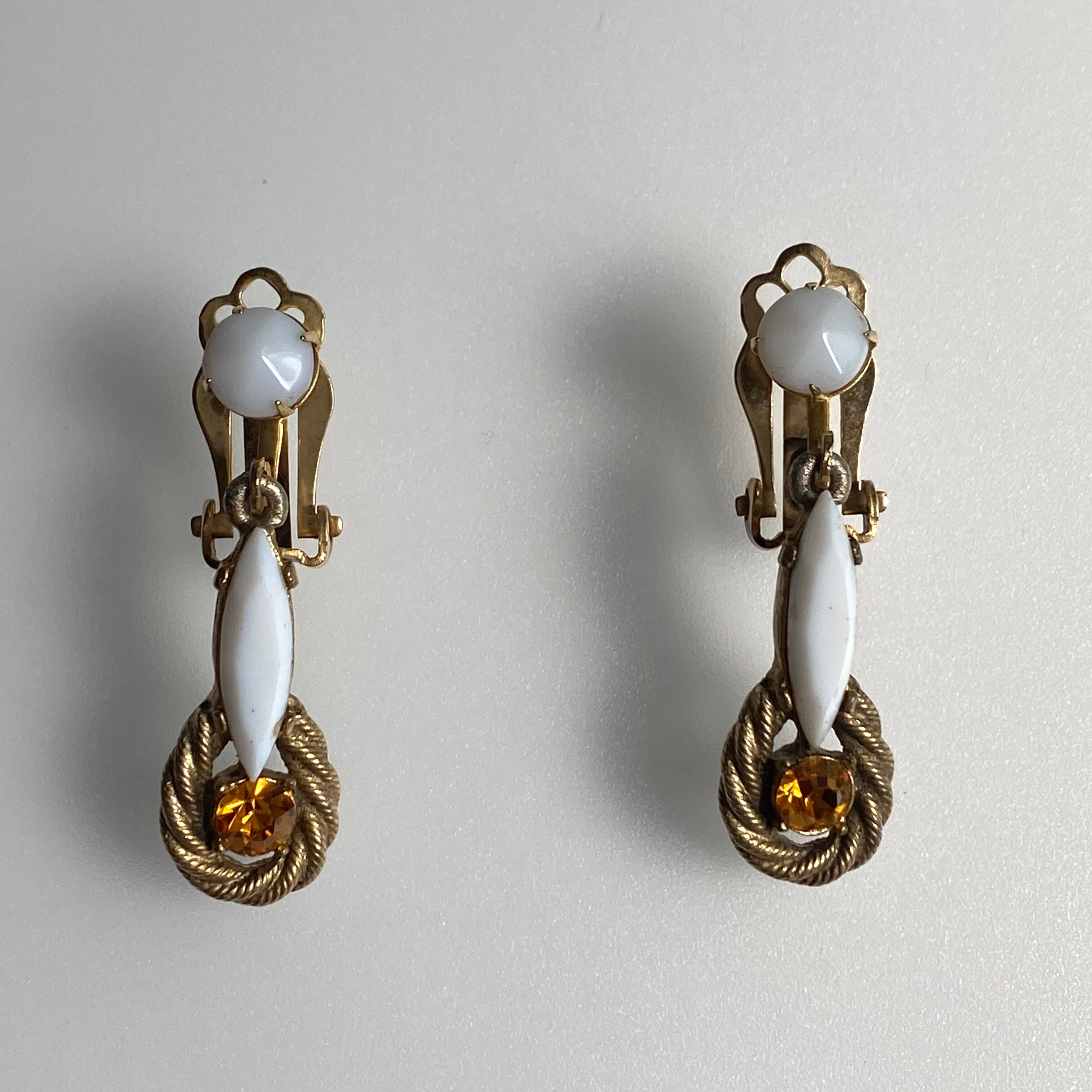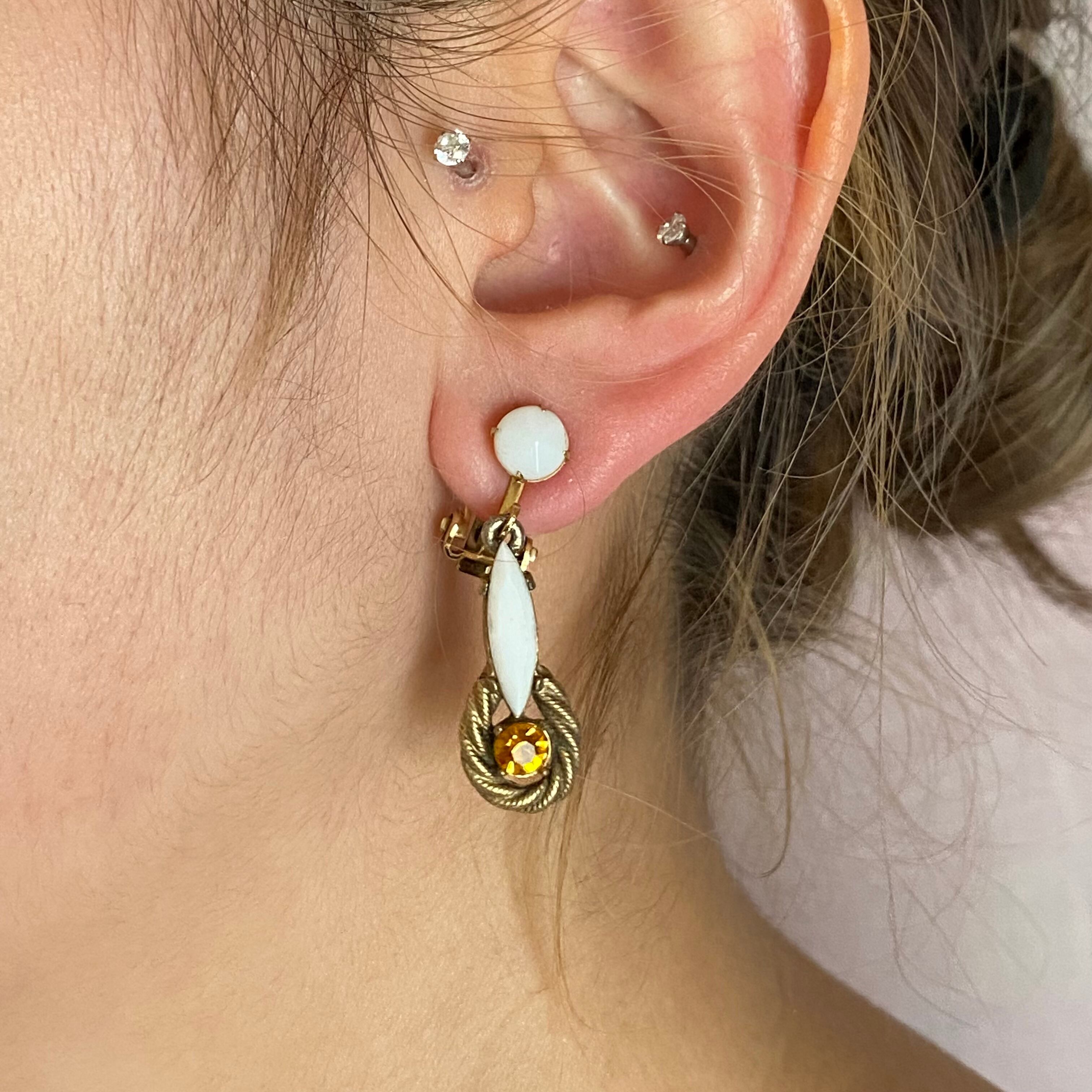 マットな白にオレンジがアクセントなスイングイヤリング。