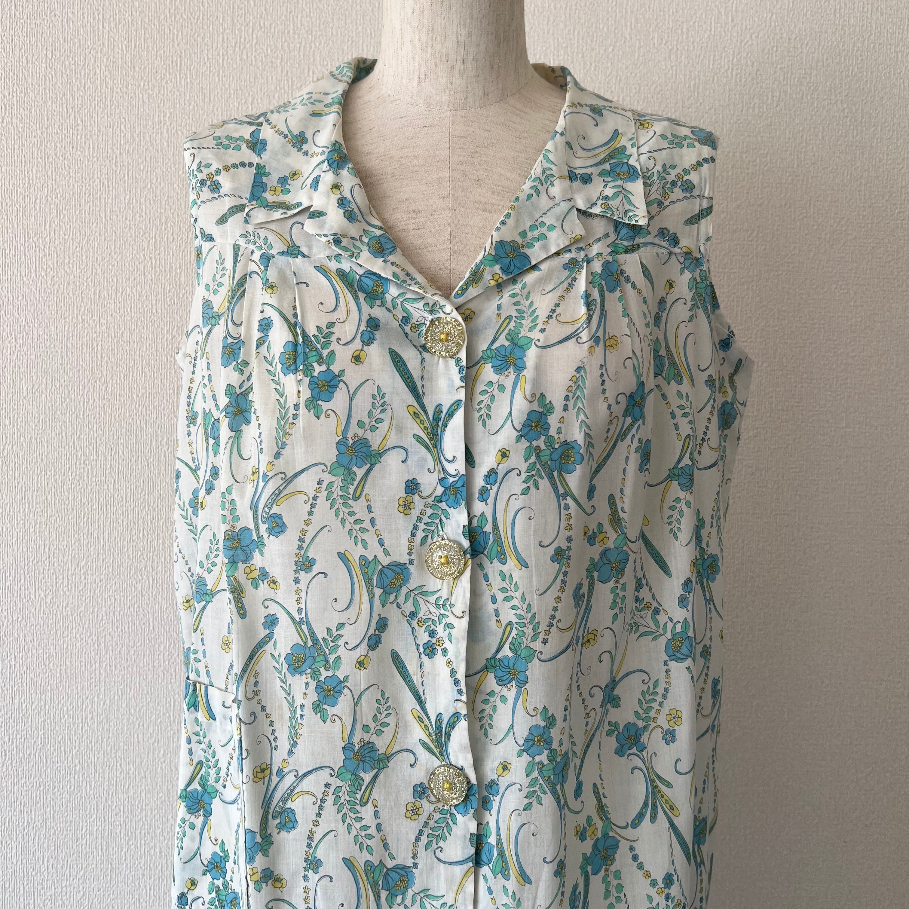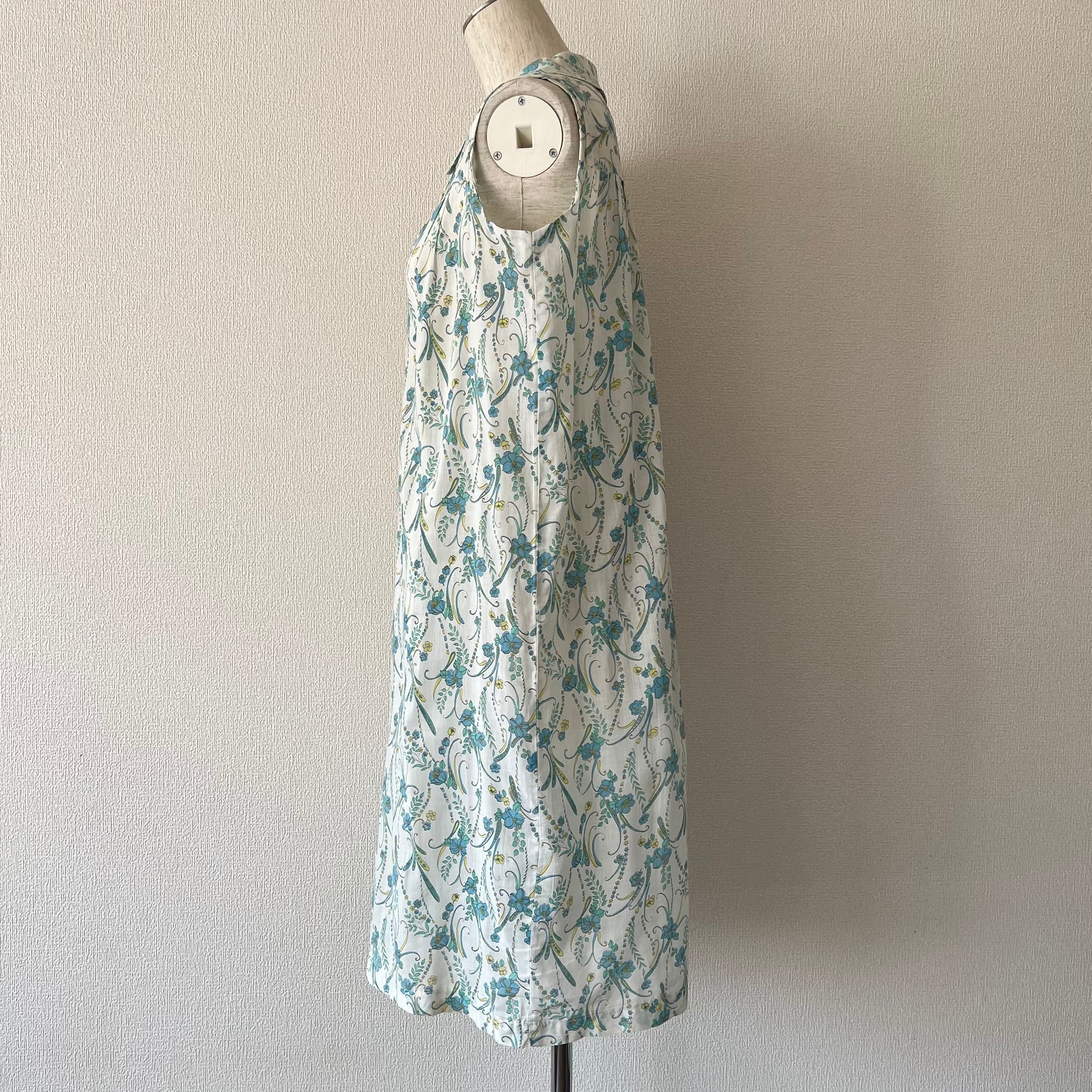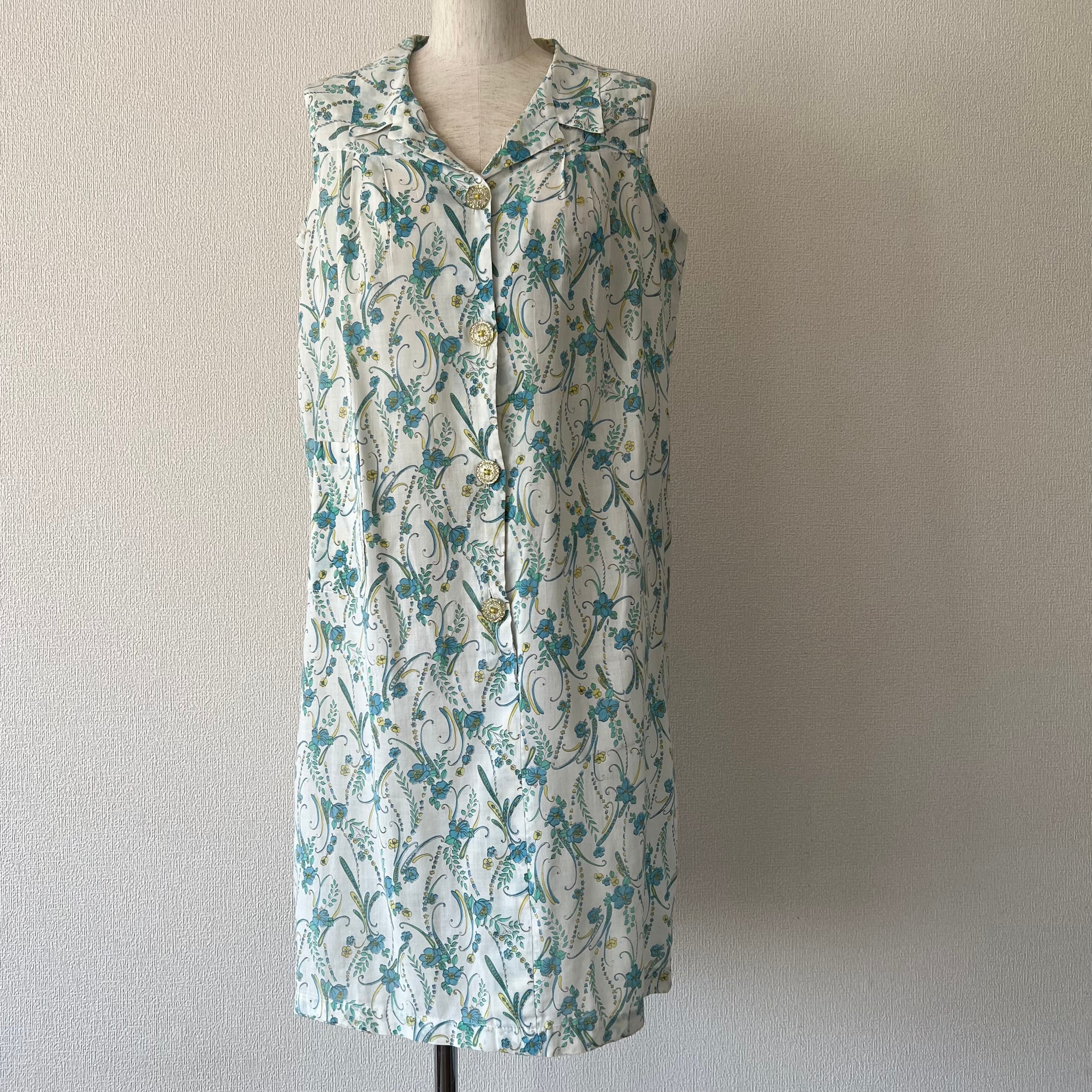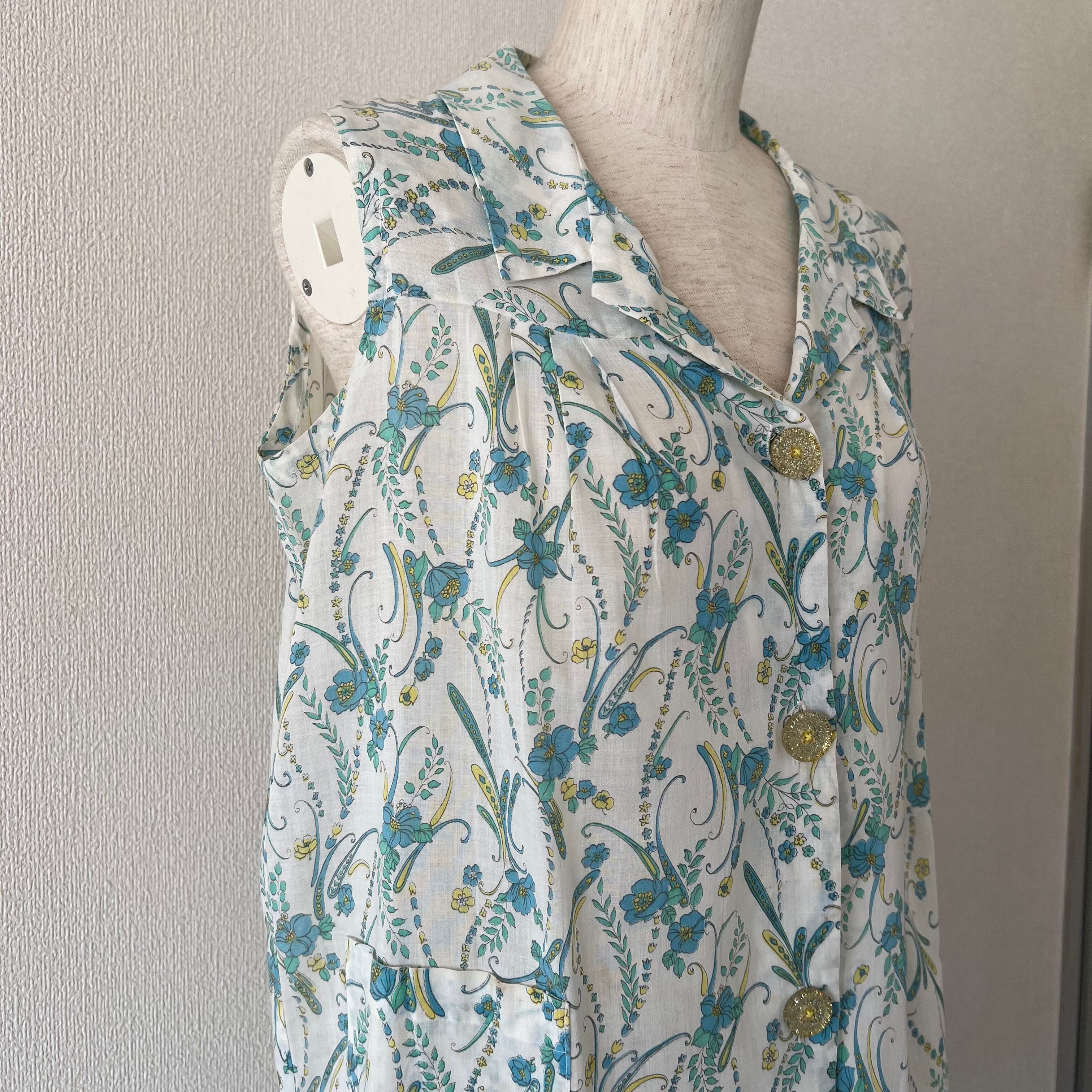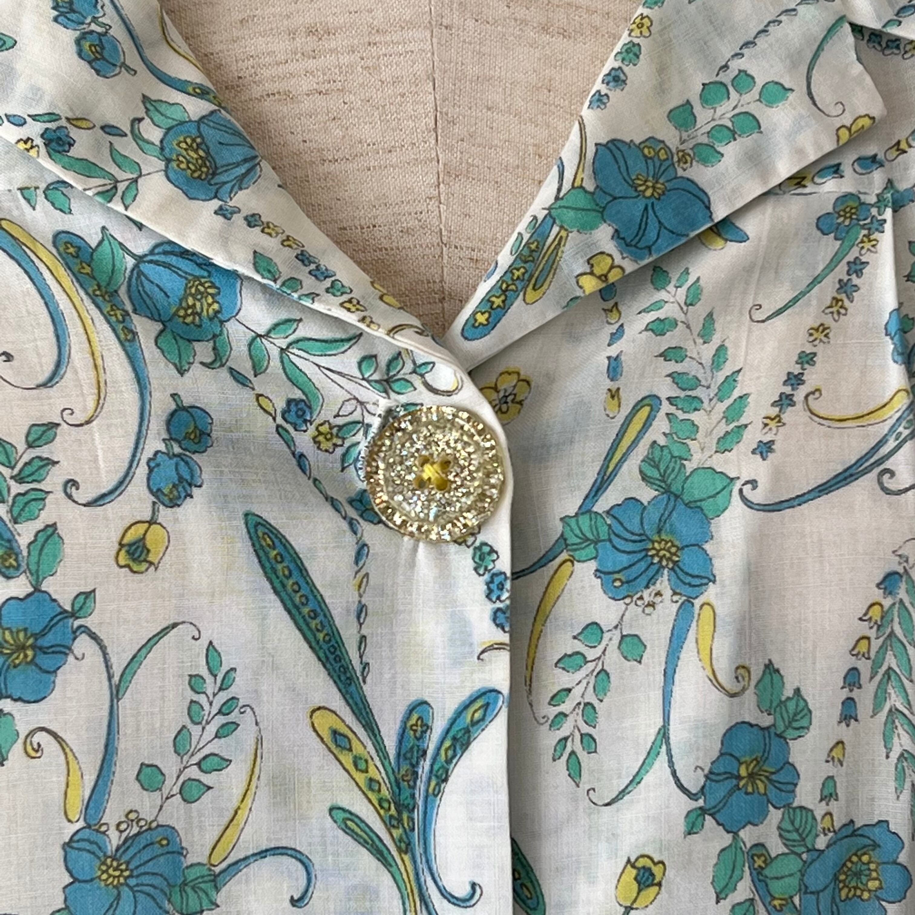 70's Blue botanical print easy dress