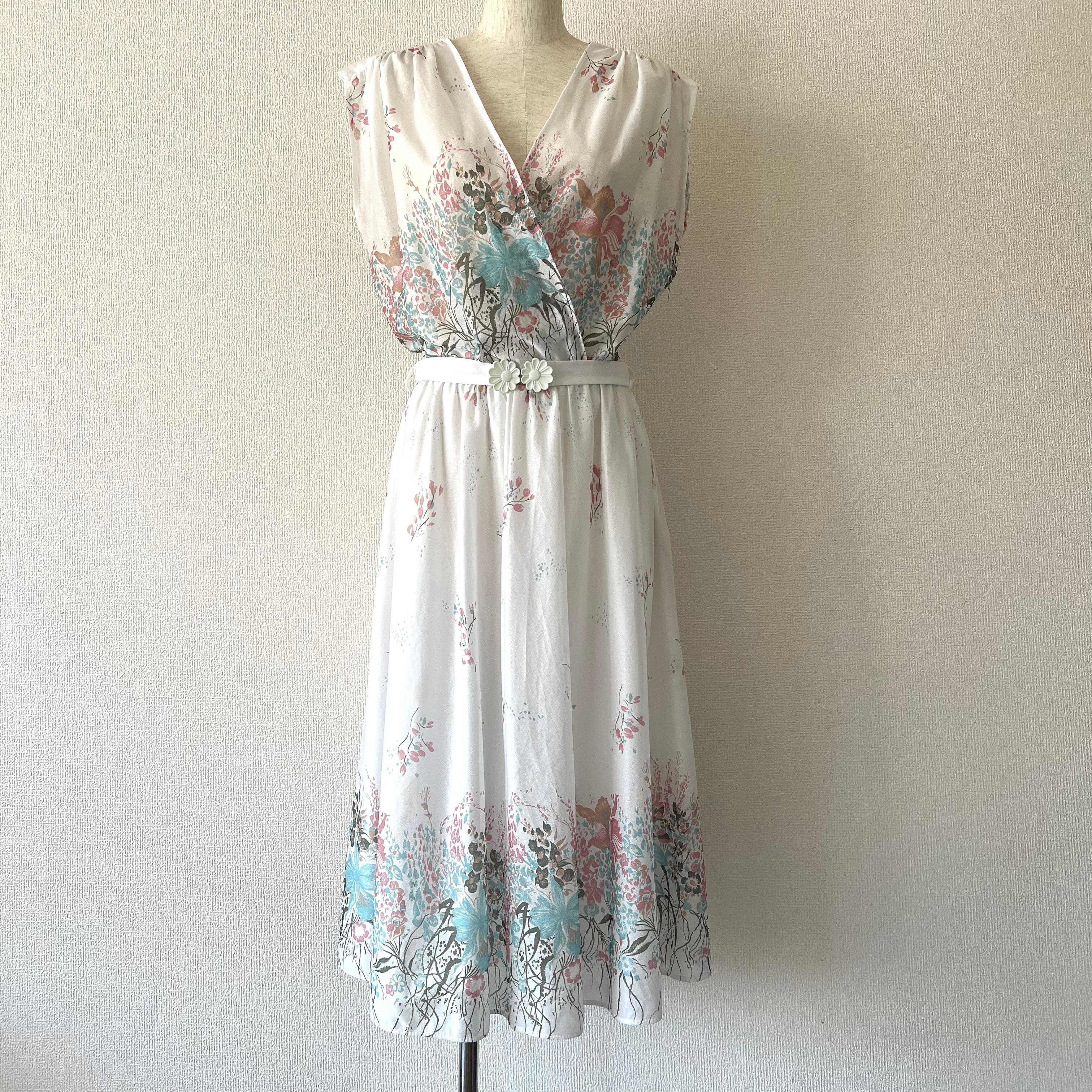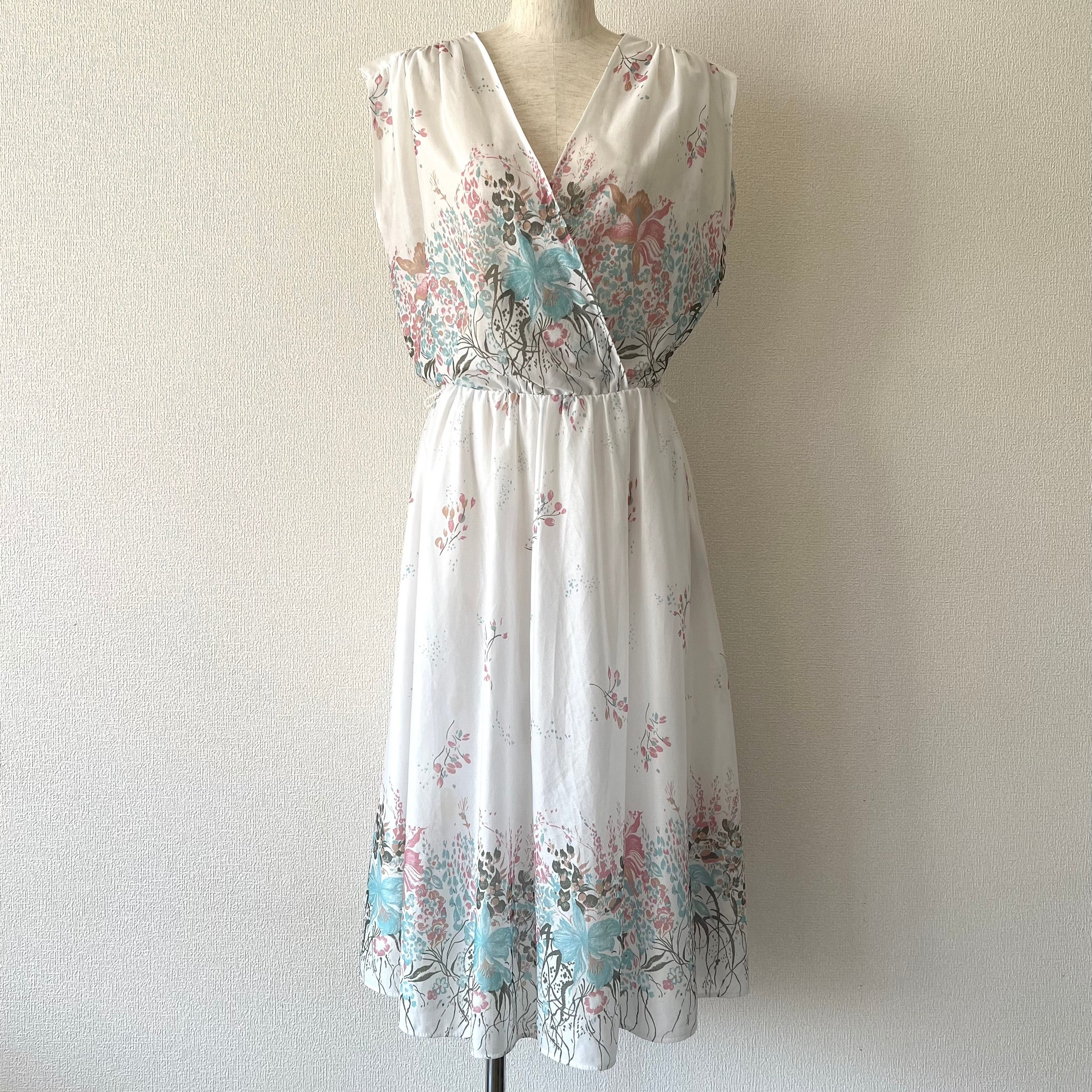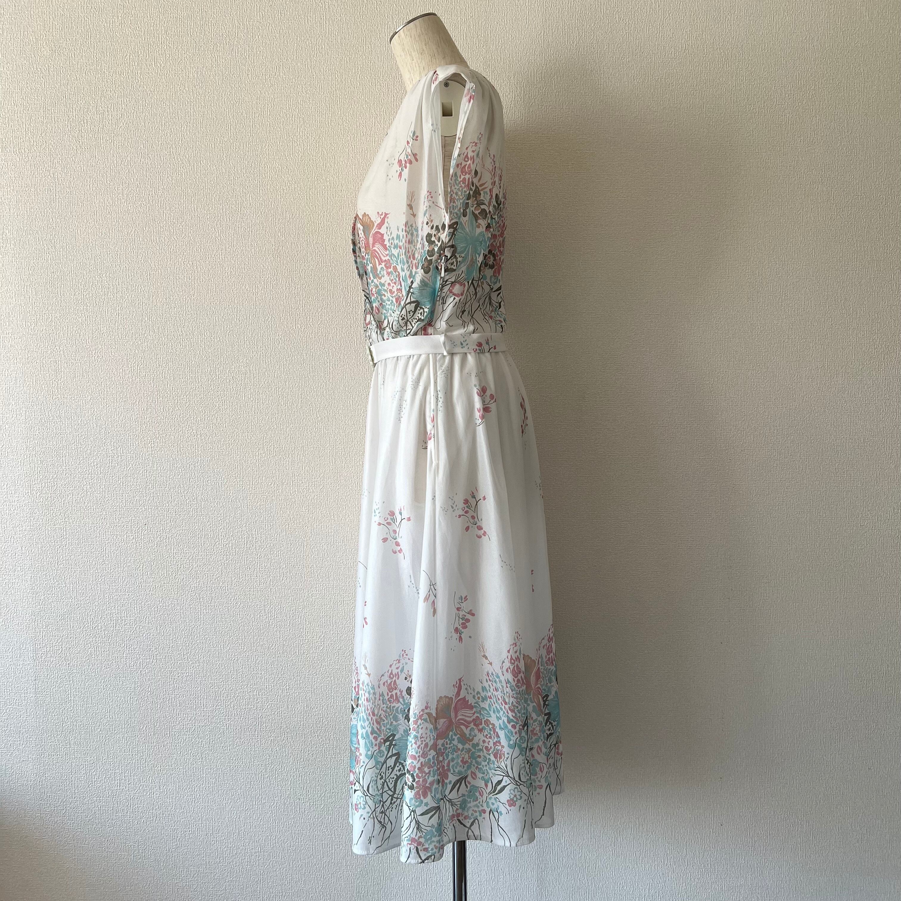 英国ガーデンを思わせるボタニカル柄のフレアーワンピース。
