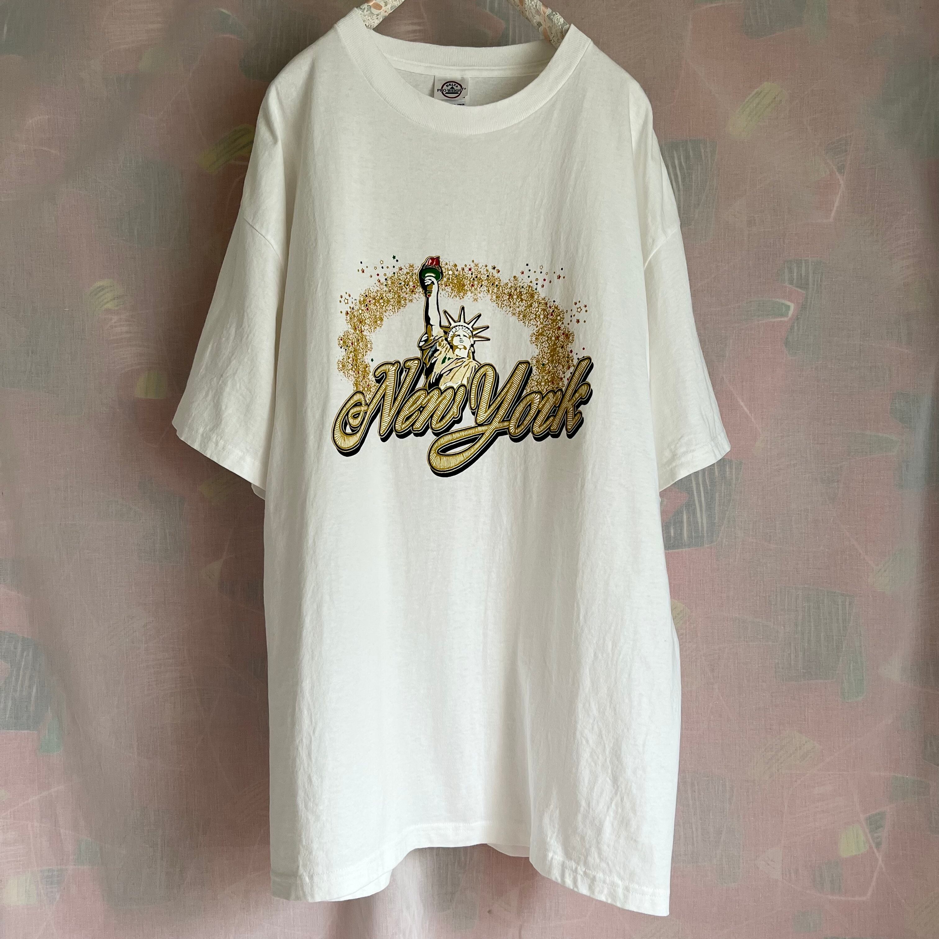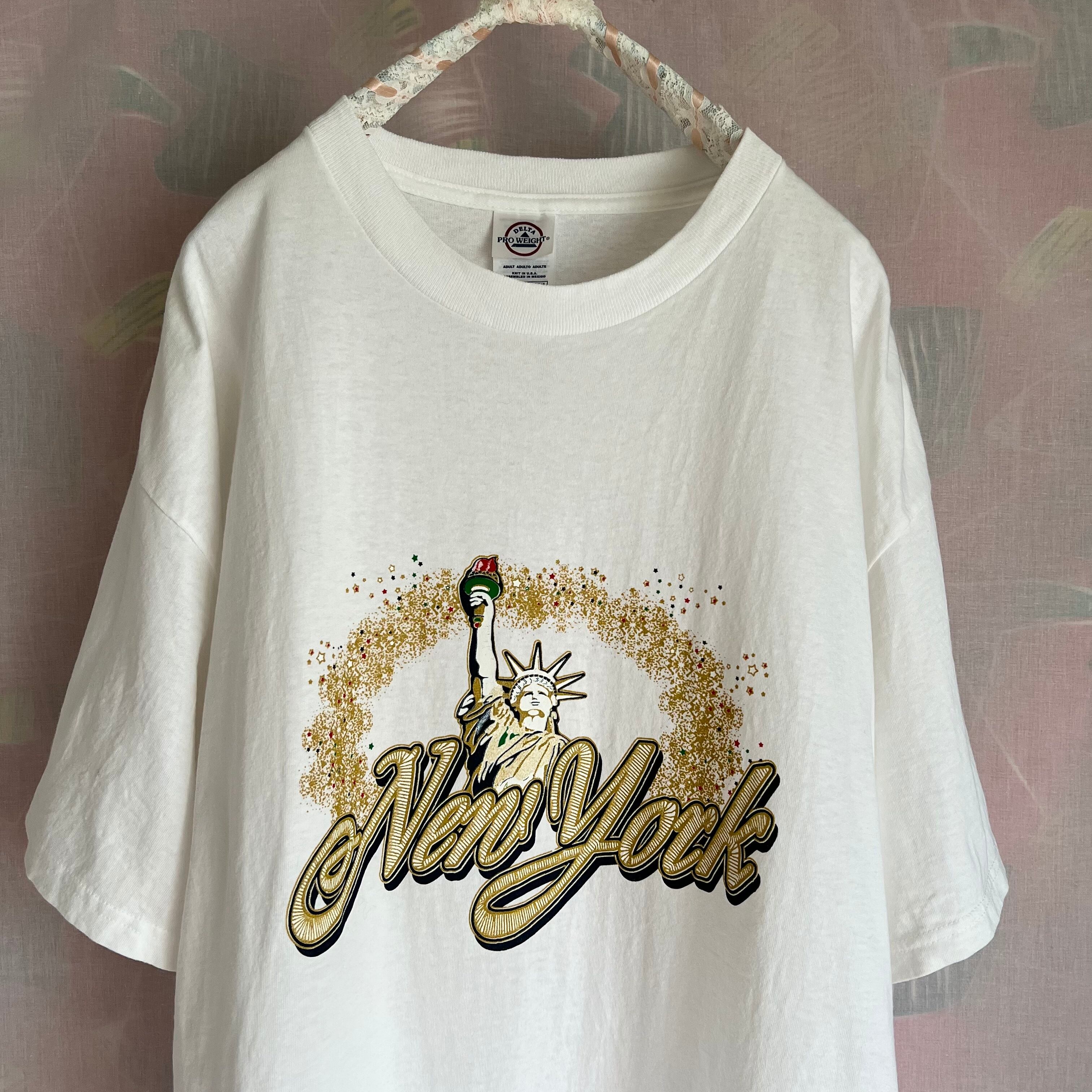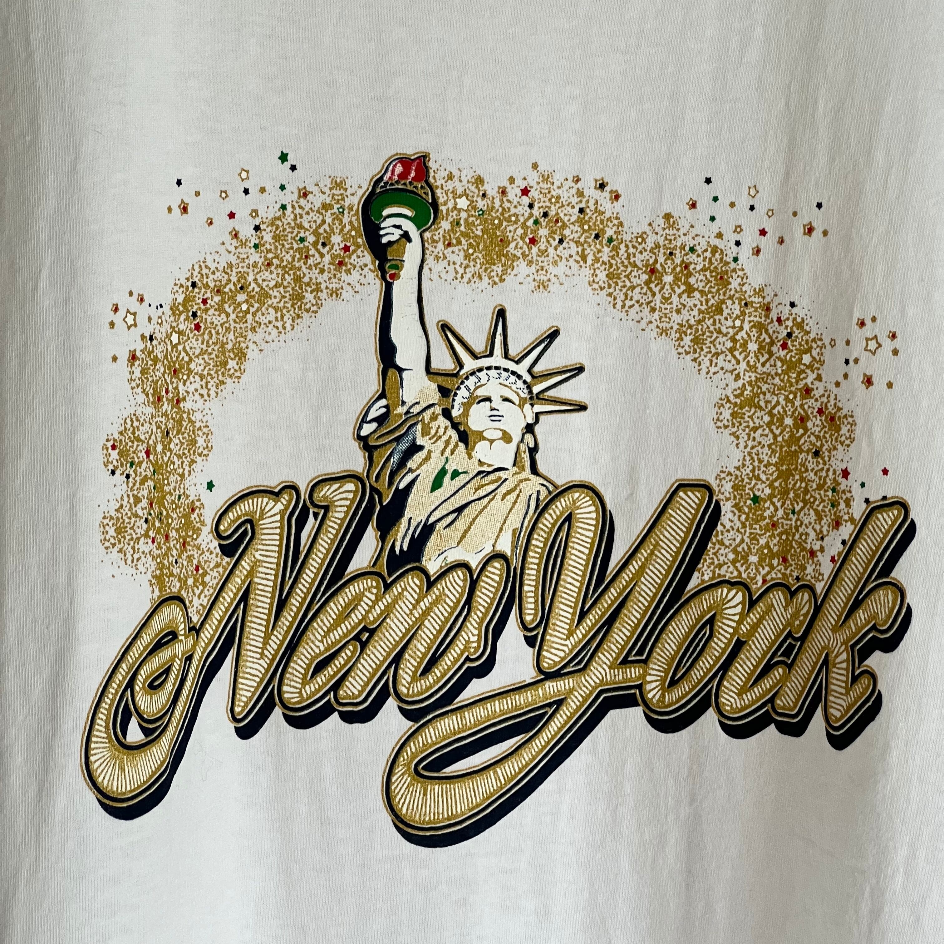 煌めくゴールドの星々×自由の女神×New Yorkプリントです。