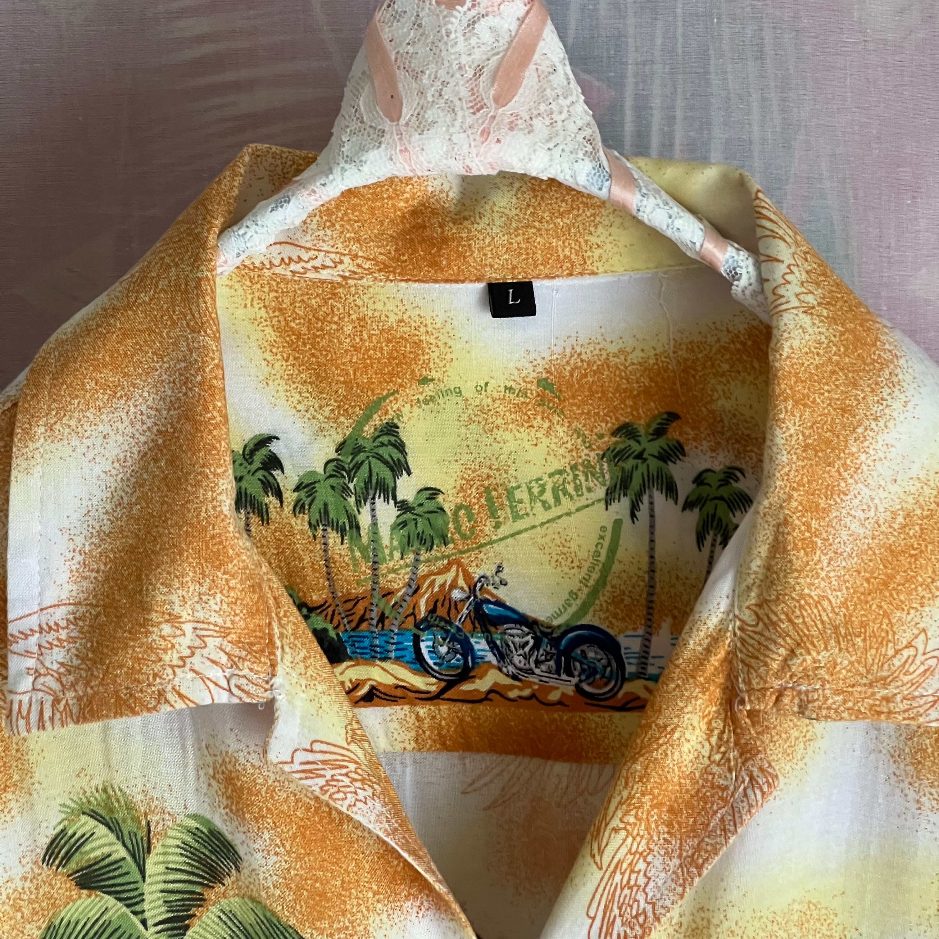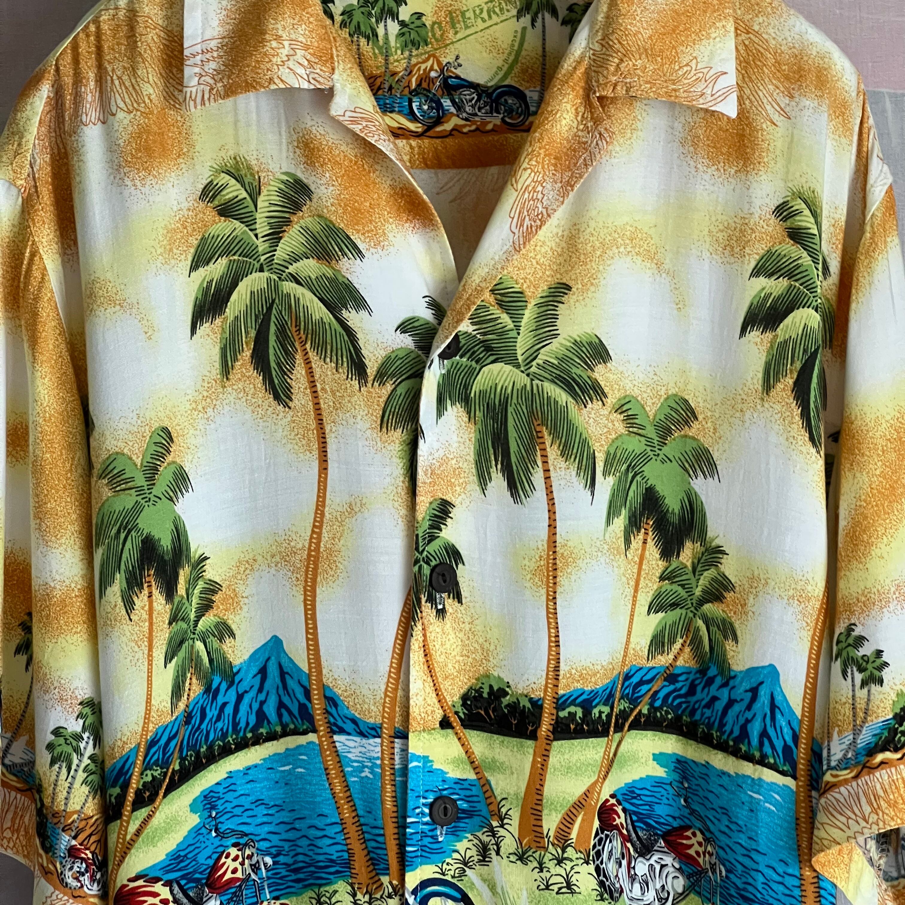 ドイツ ケルンのスポーツウェア専門店「Half Moon」の派手派手アロハ。イカしたバイクがキュートです。