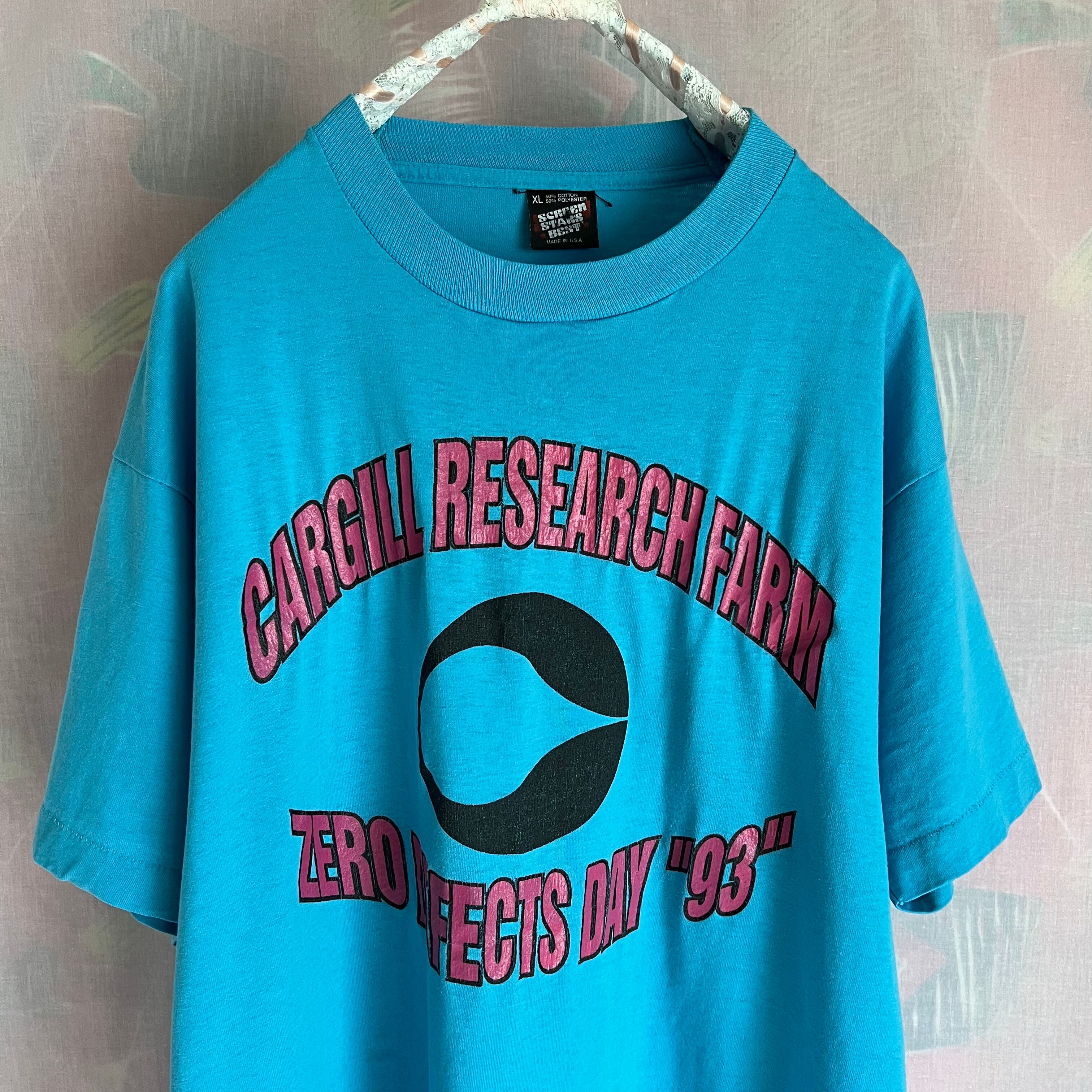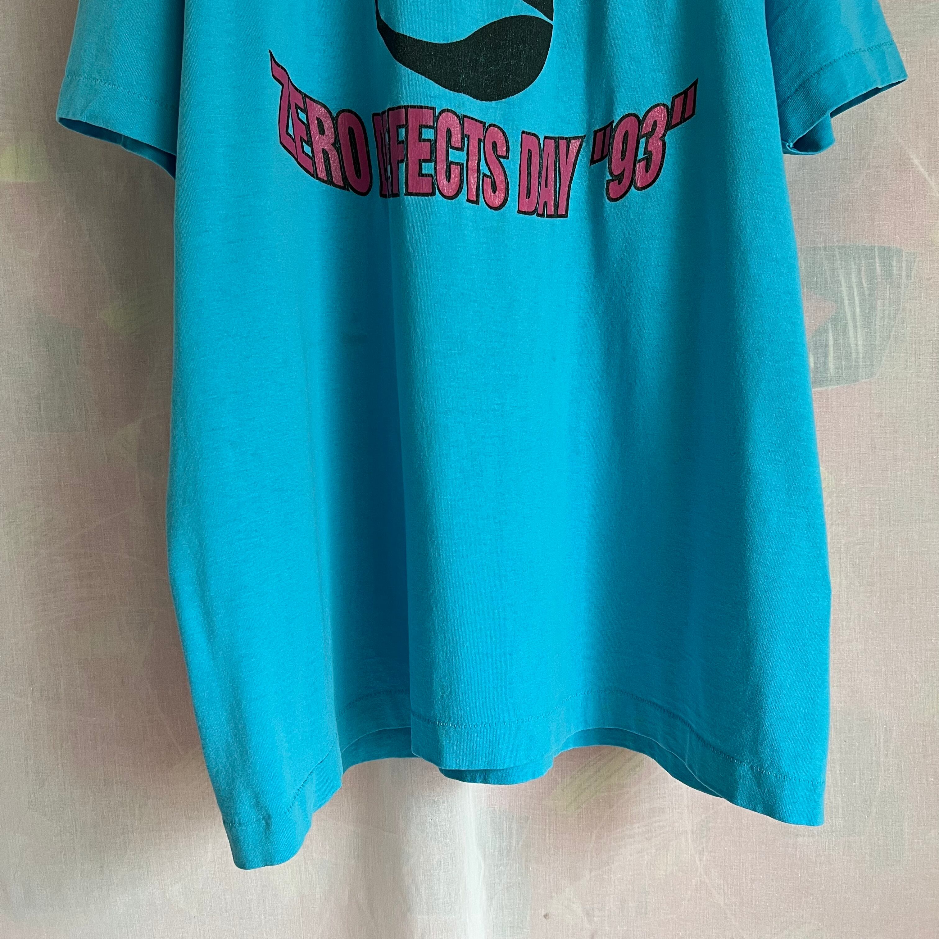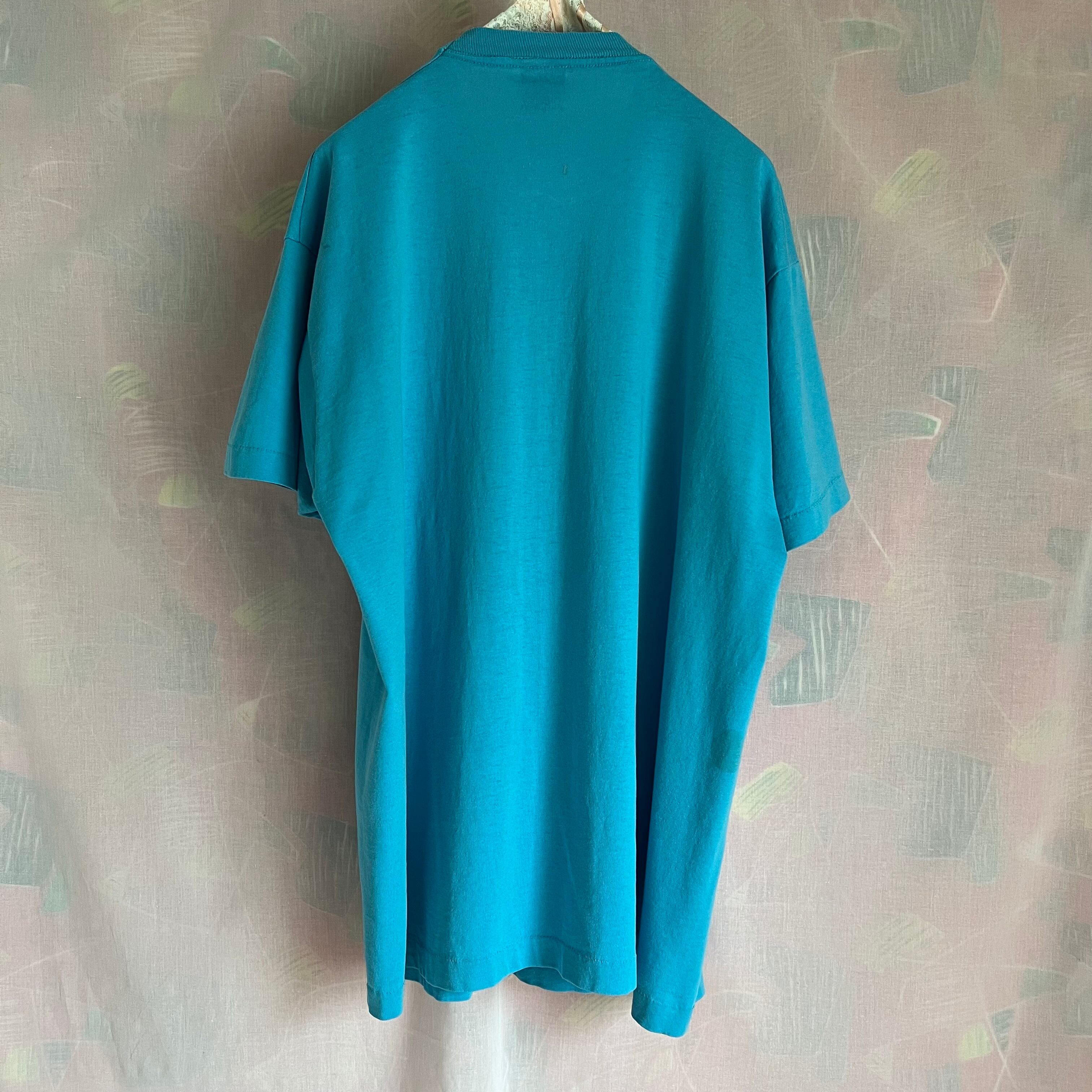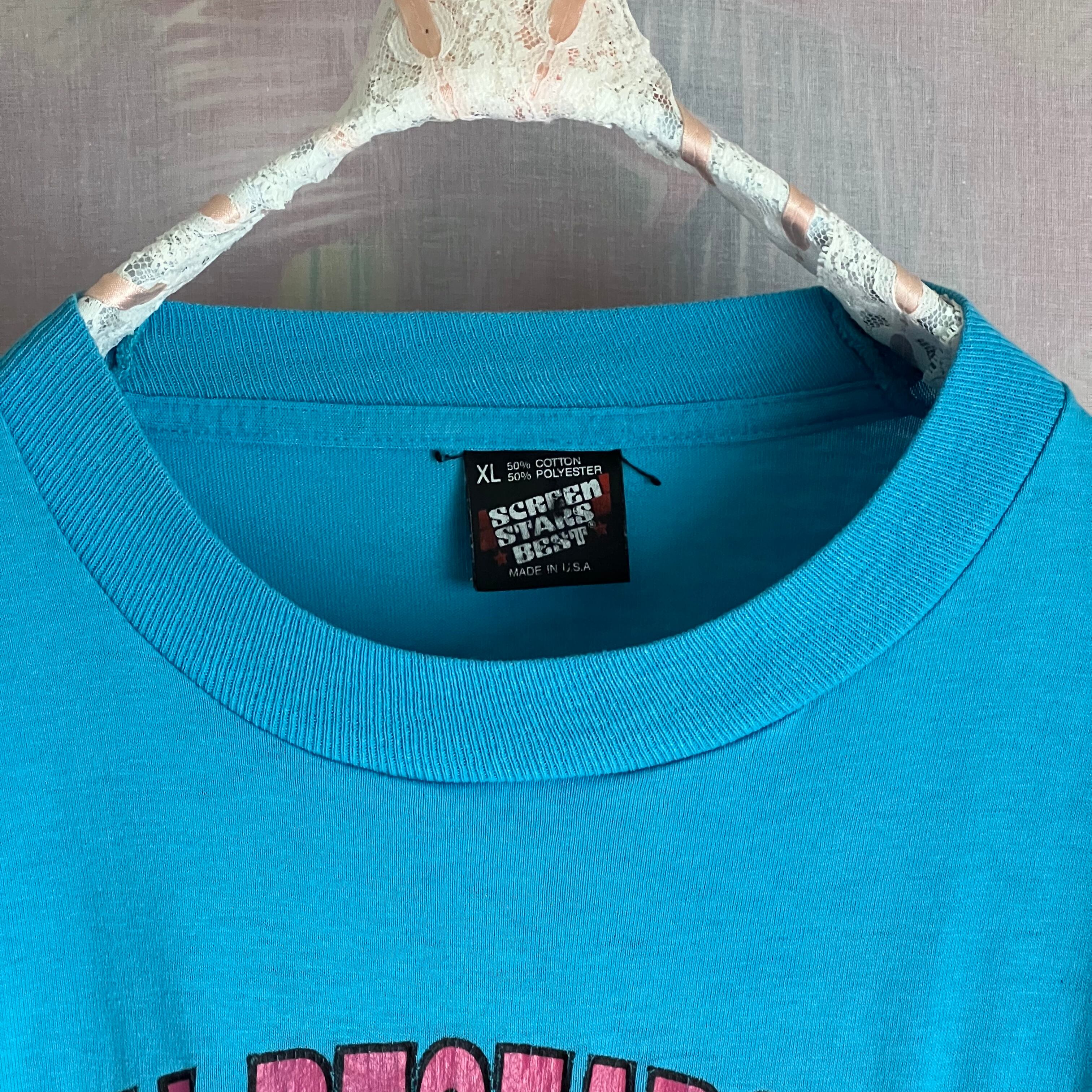Used スカイブルー×フューシャピンク文字のレタードT。