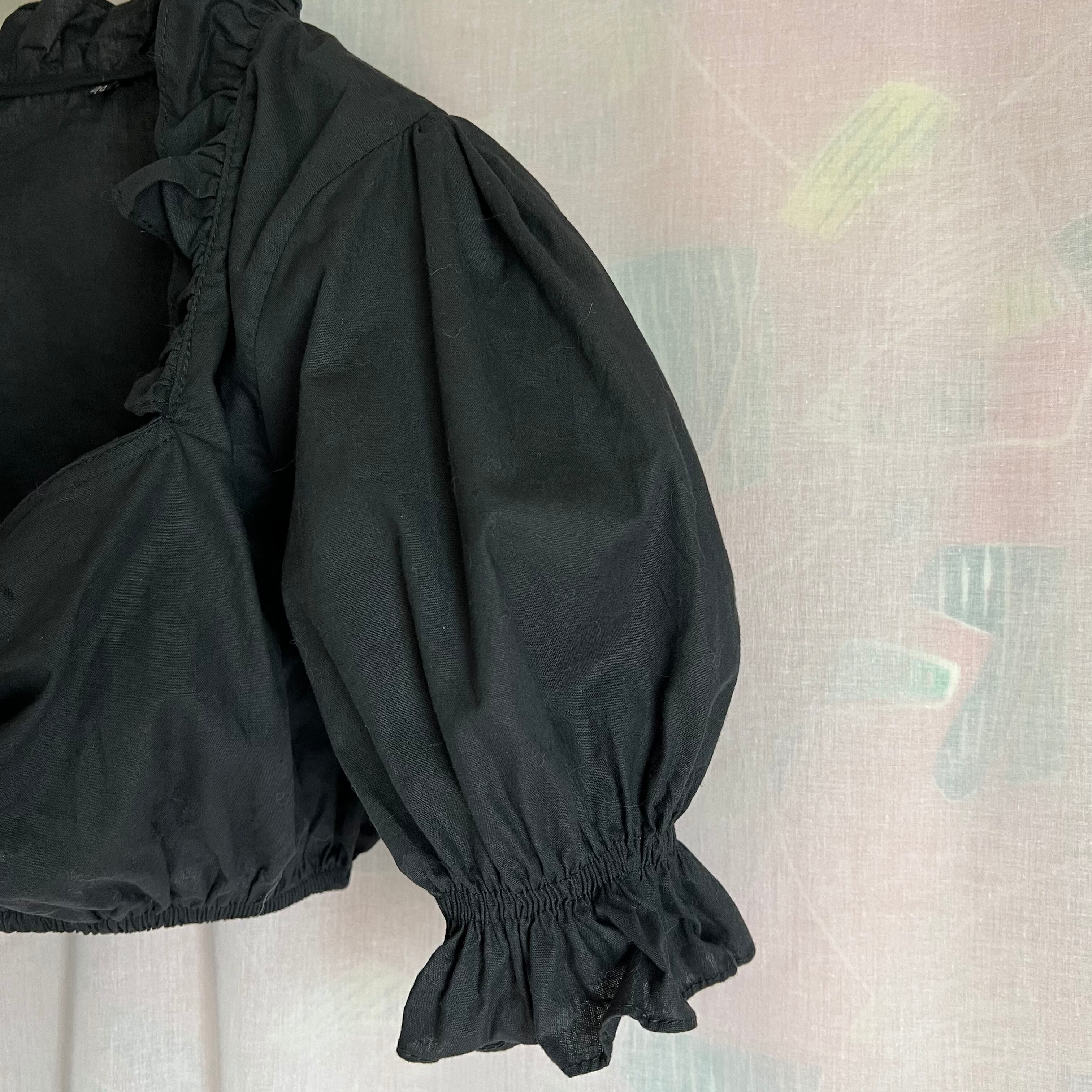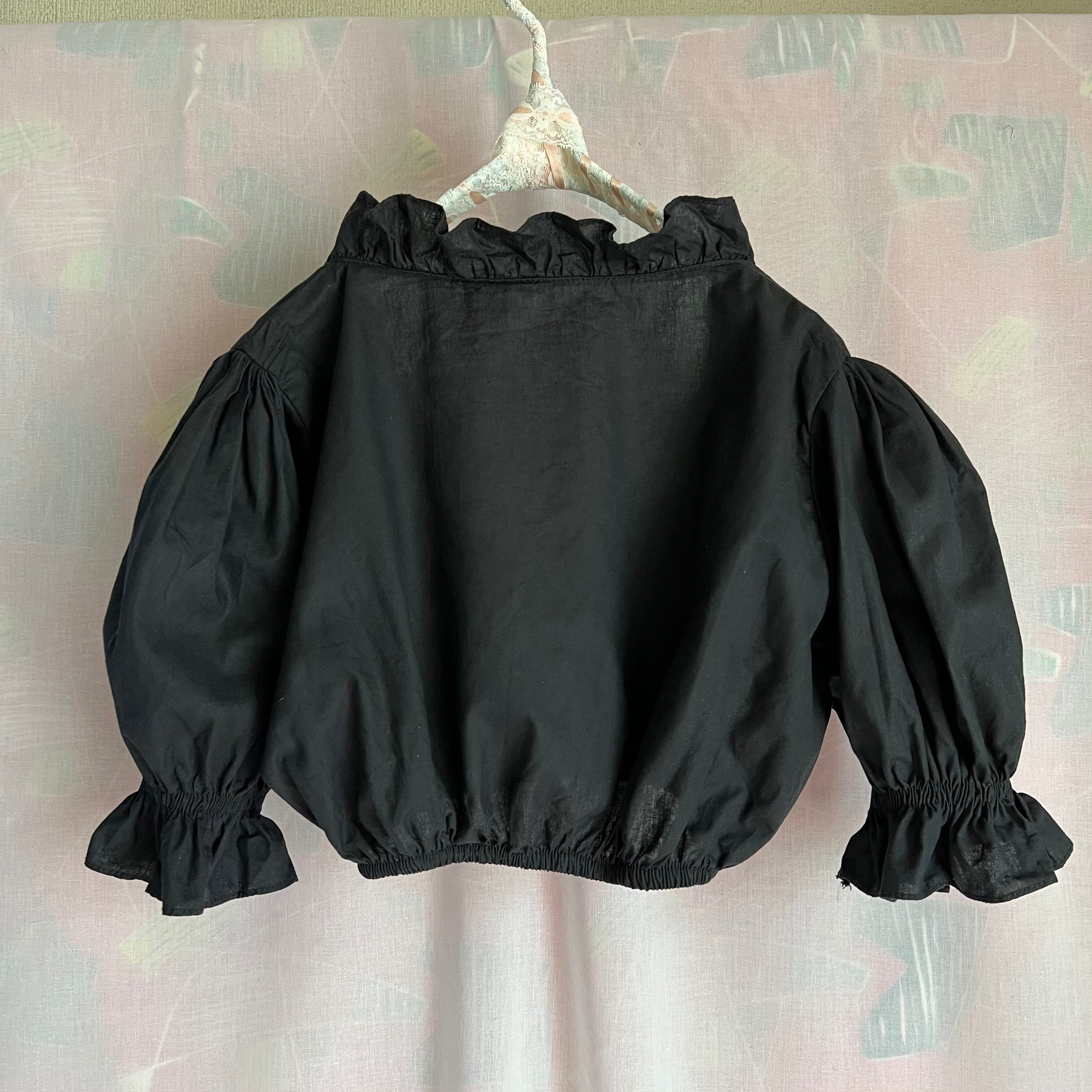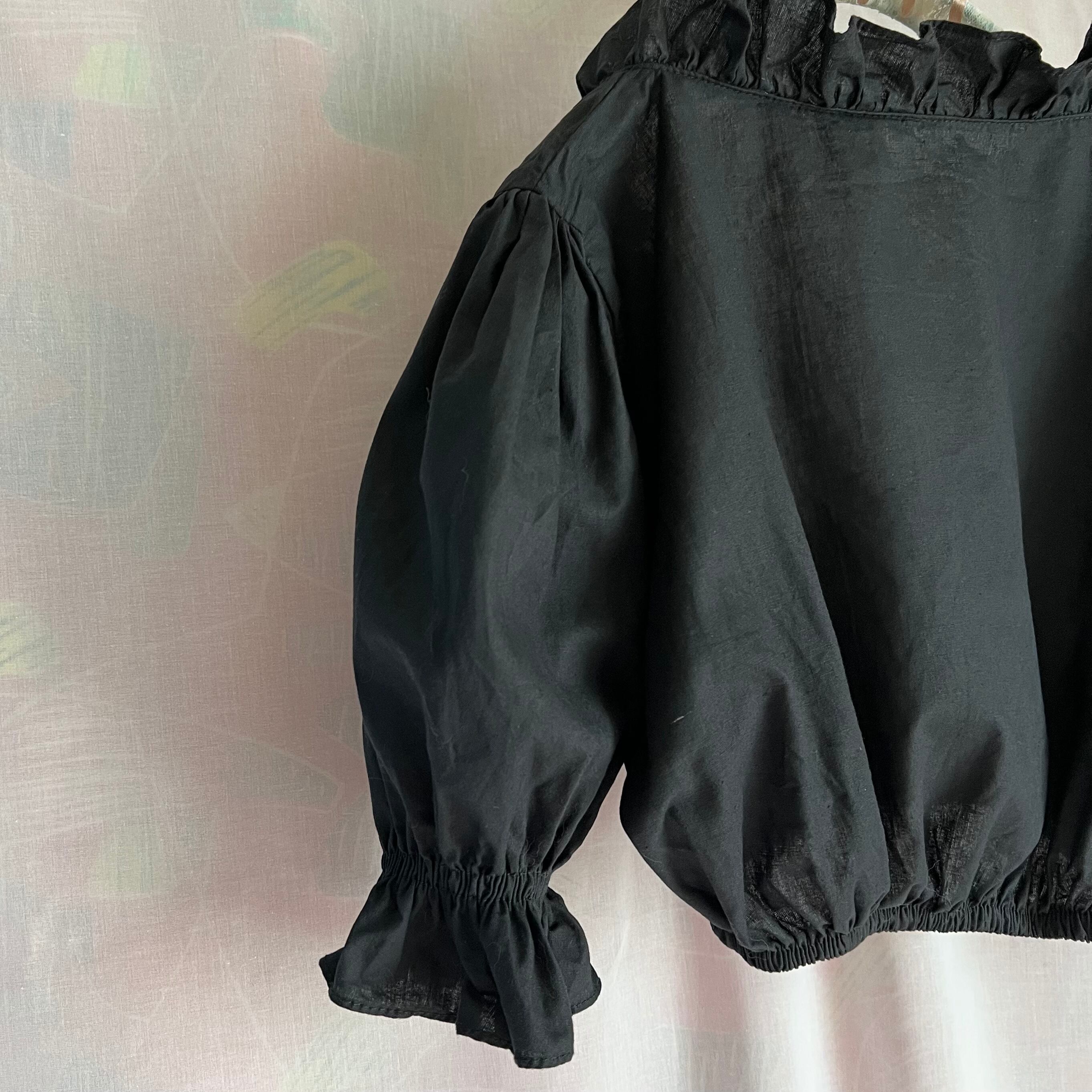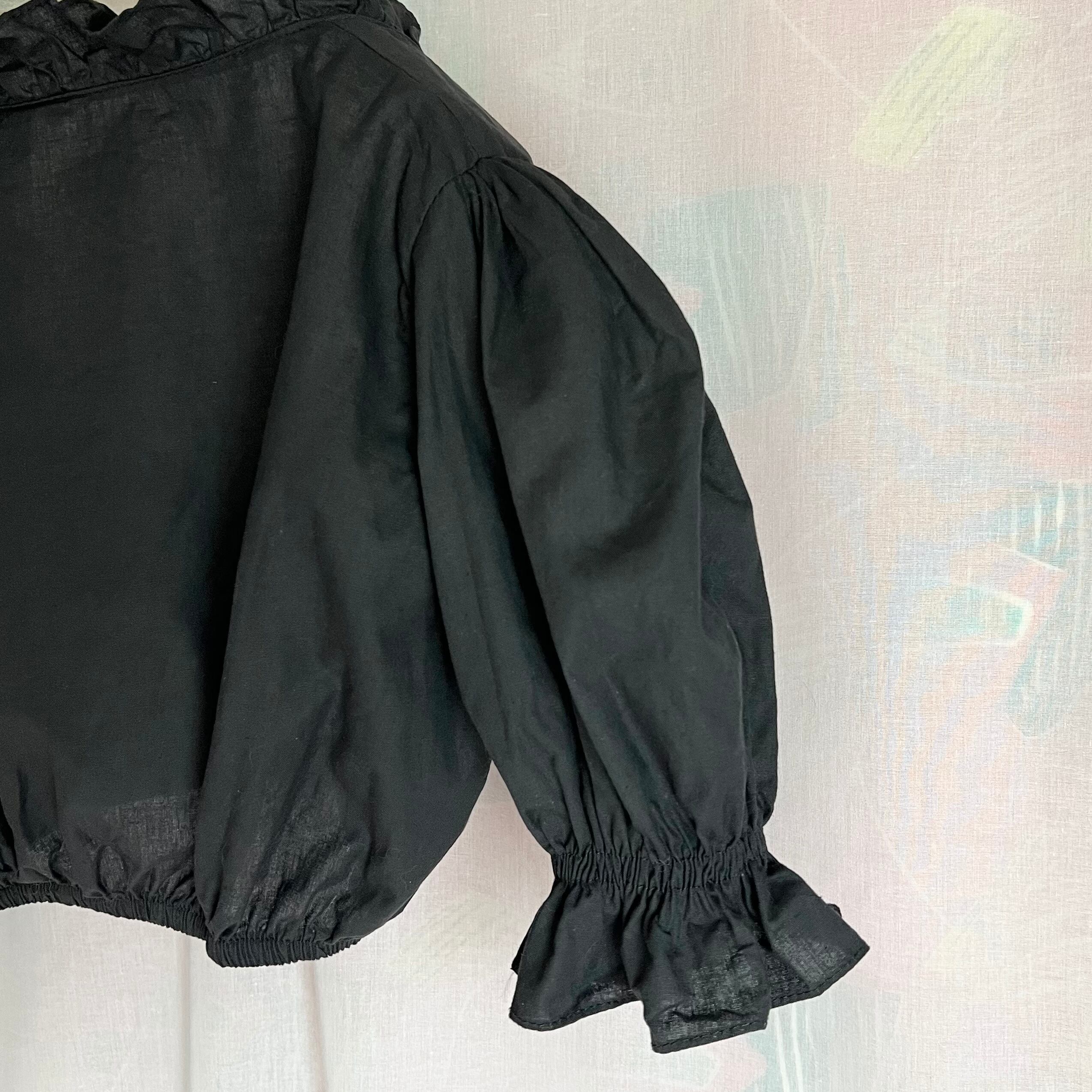 短丈のチロリアントップス。ボリューミーな袖とのバランスがgoodです。