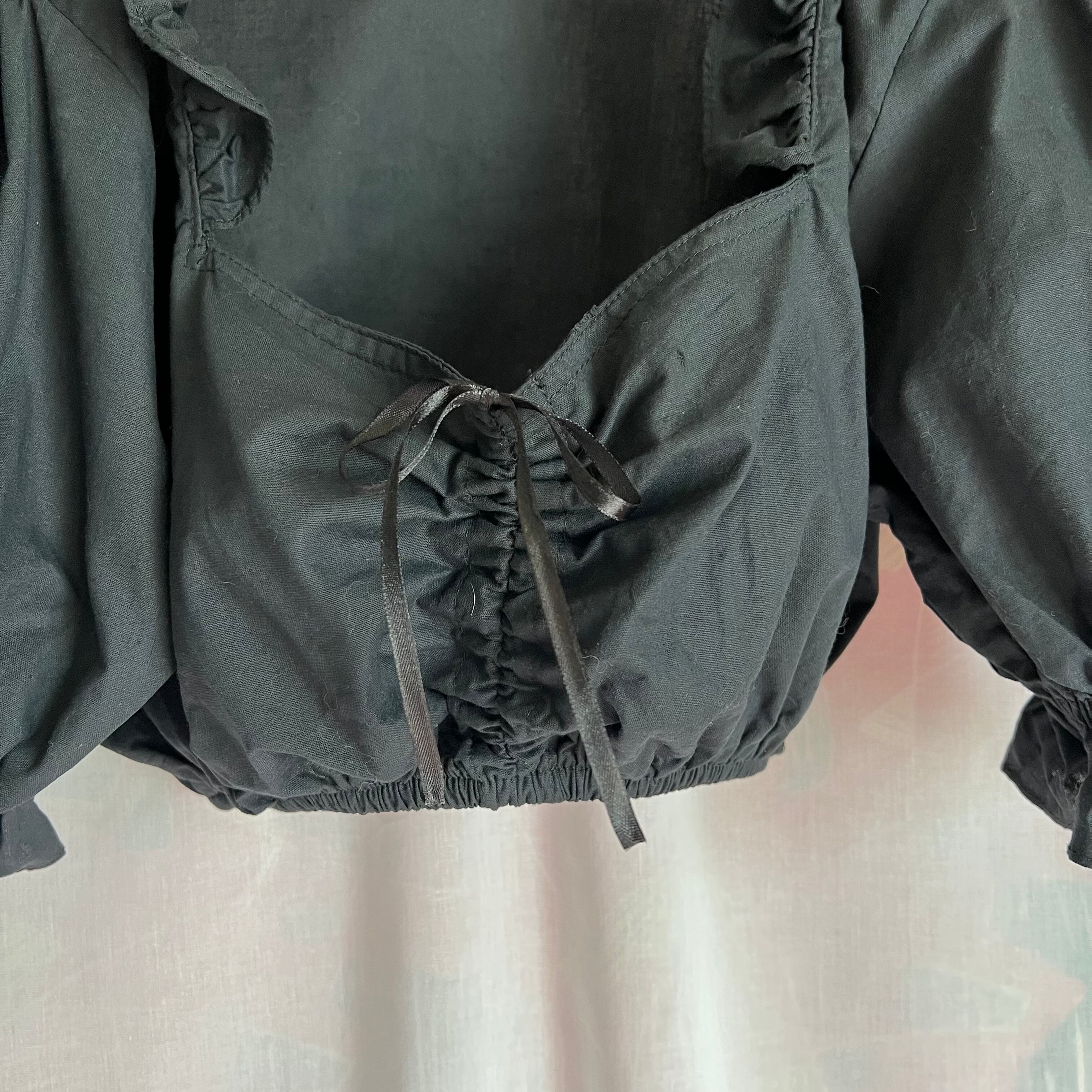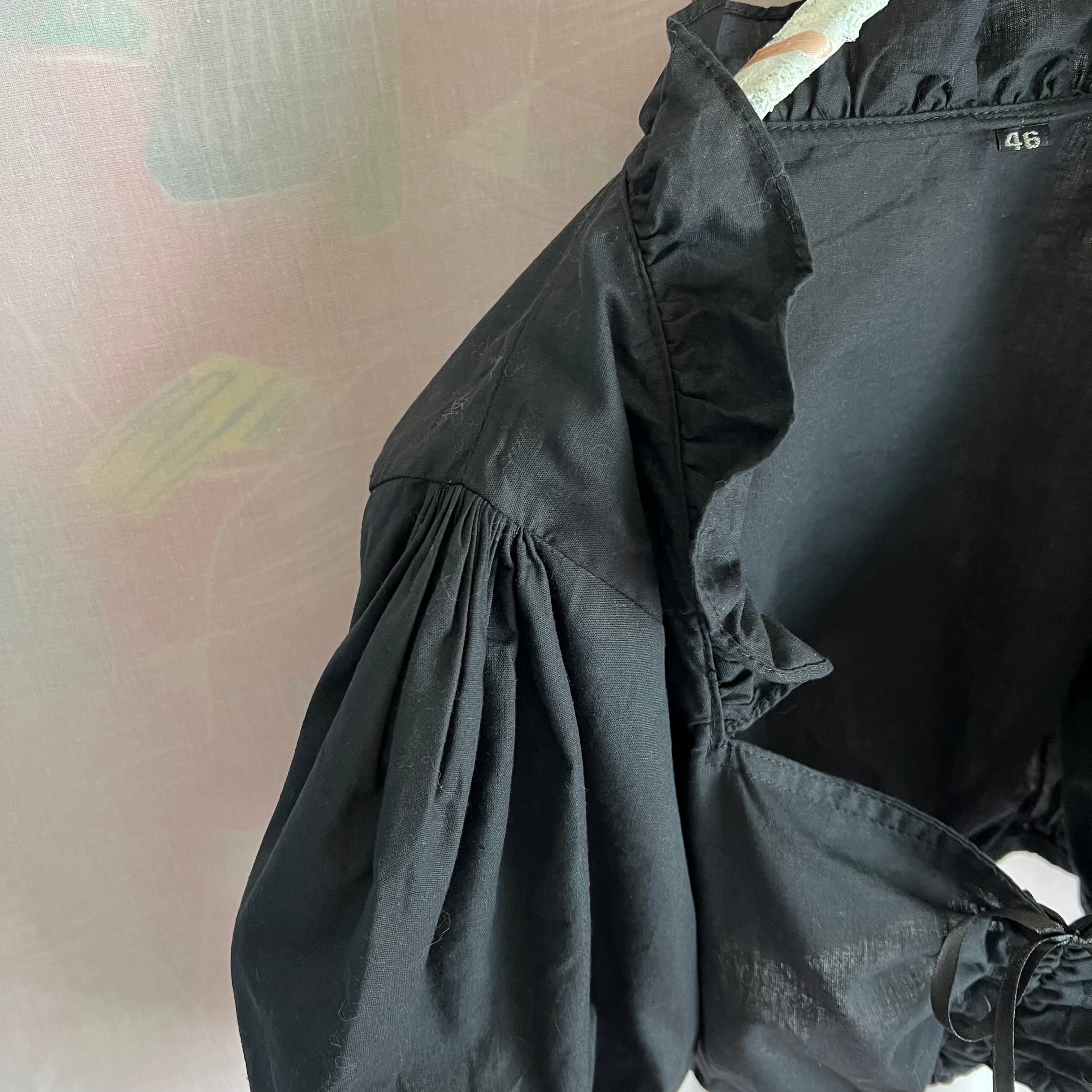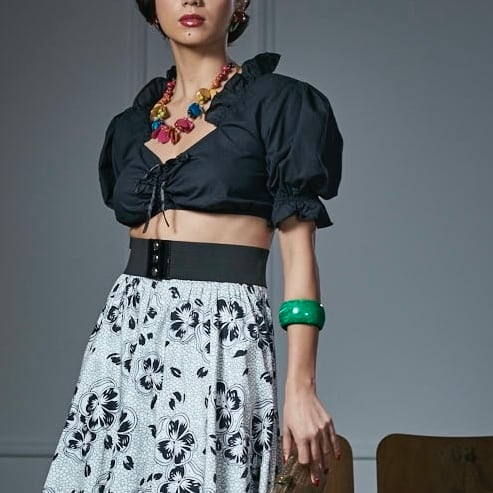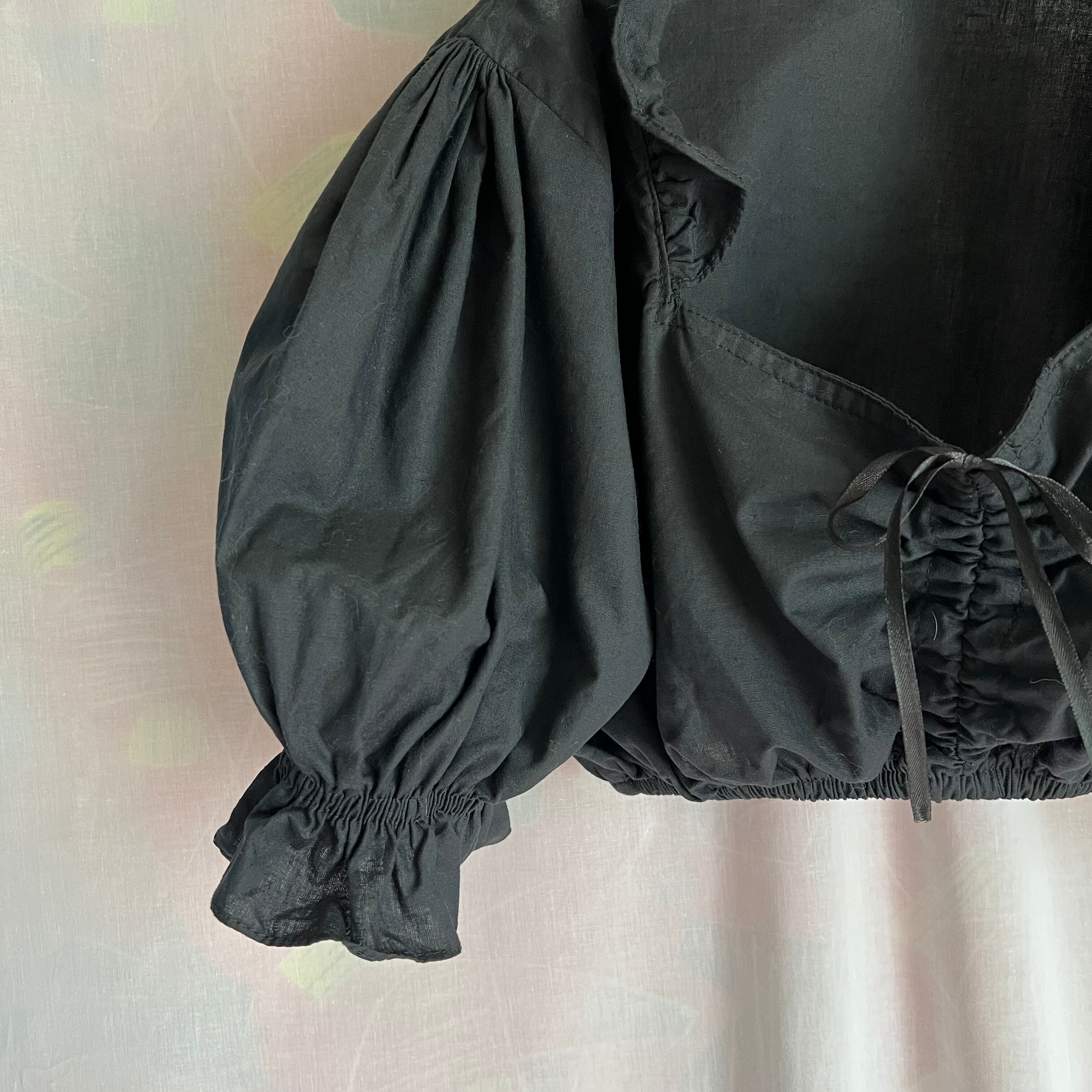短丈のチロリアントップス。ボリューミーな袖とのバランスがgoodです。