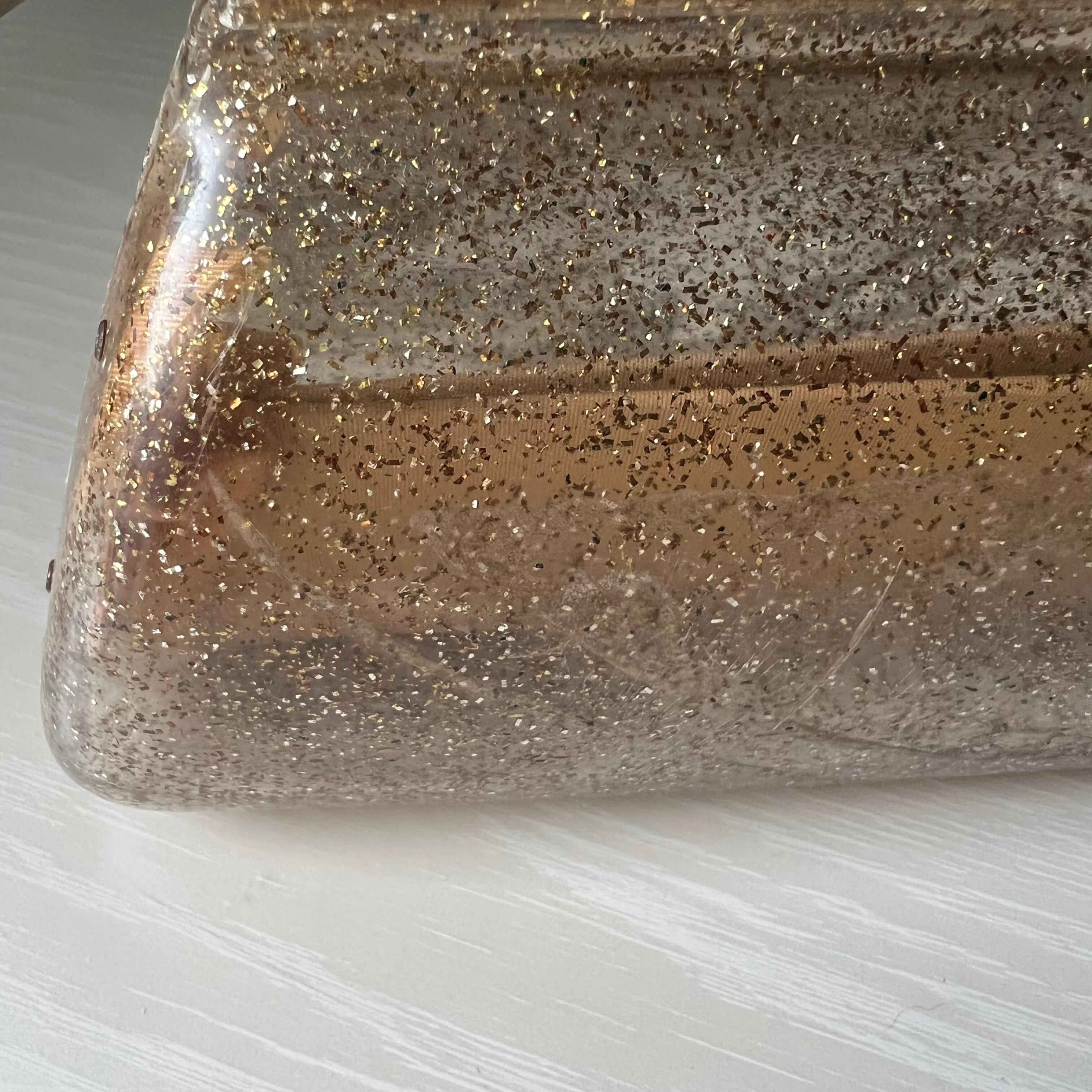 ラメ混プラスチックのクラッチバッグ。