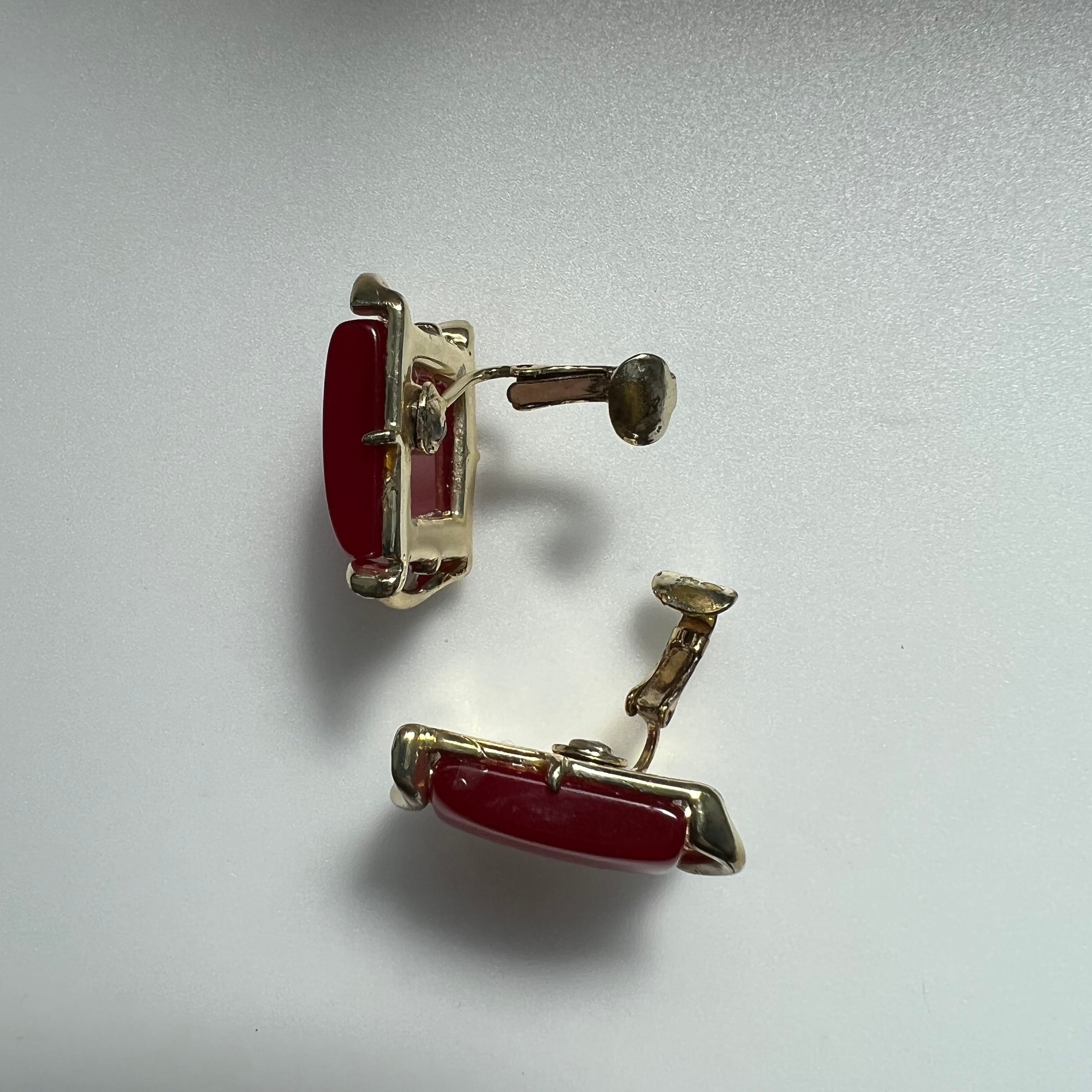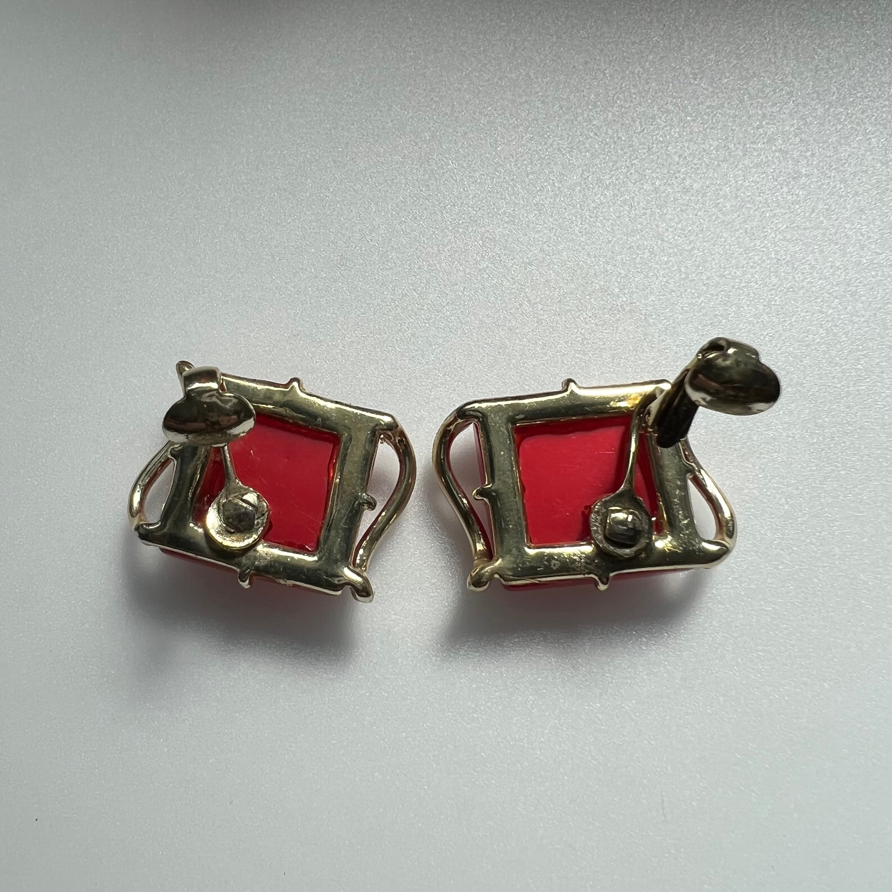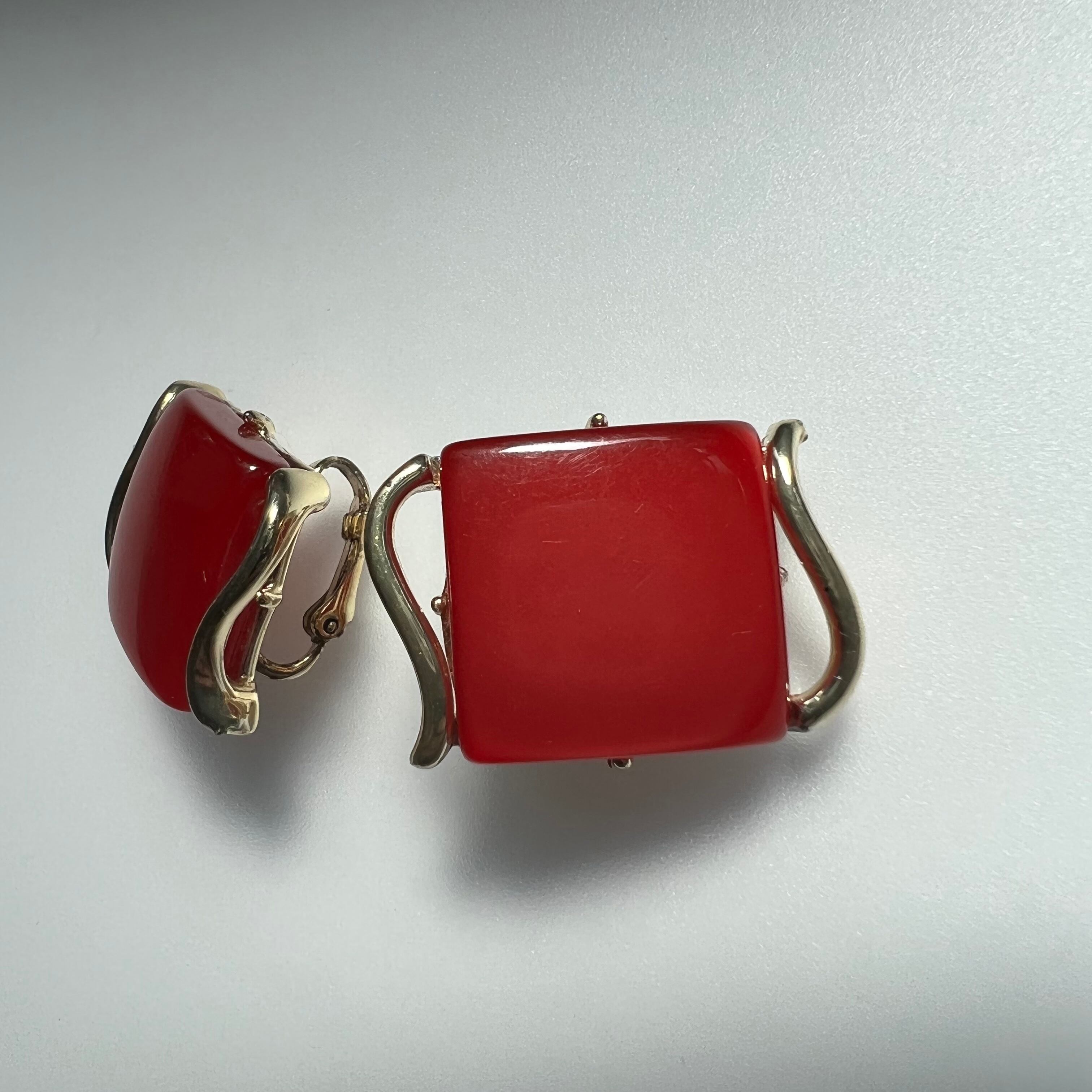 ツルンとした赤いプラスチックが可愛いCoroのイヤリング。スクエアを囲むメタルのあしらいがモダンな印象です。