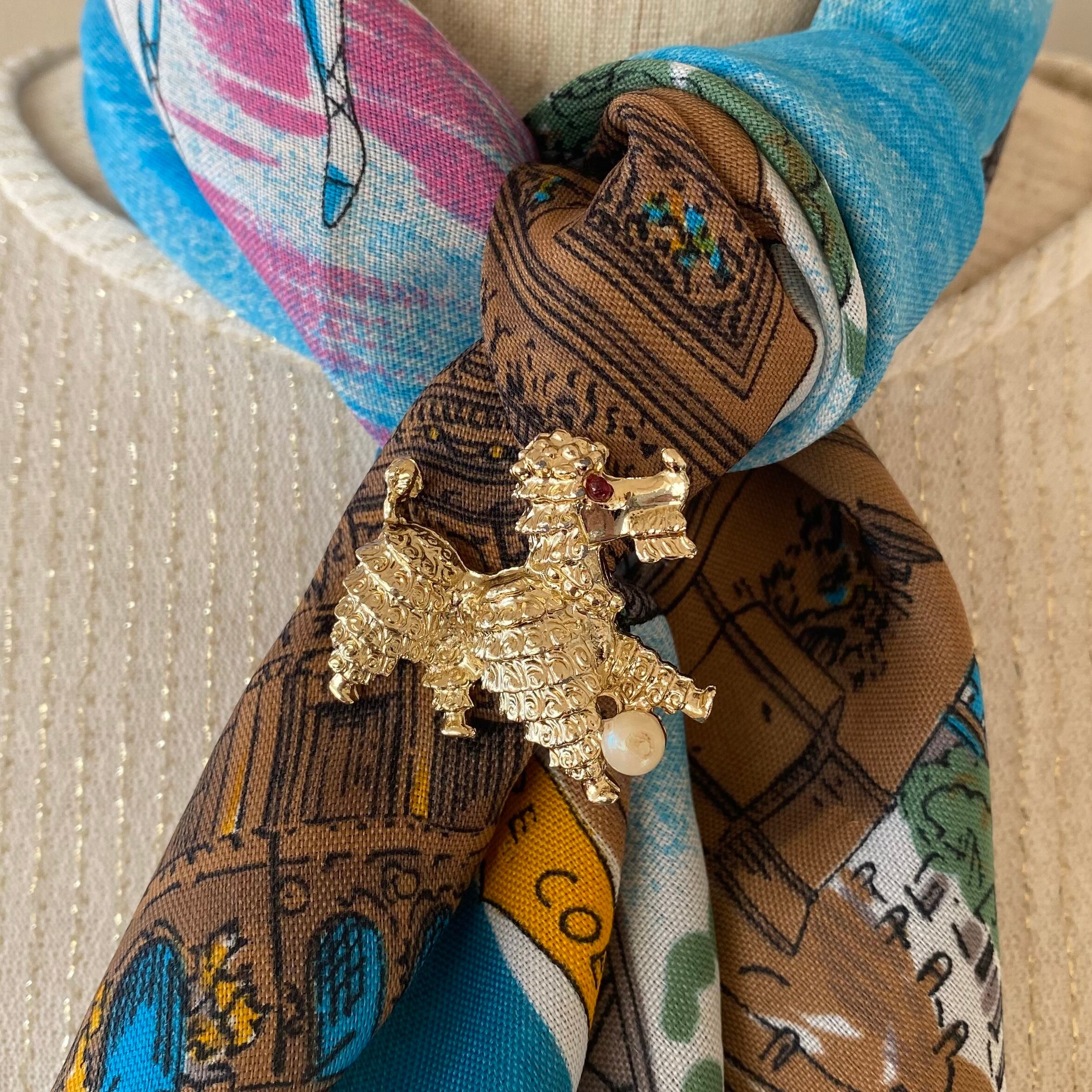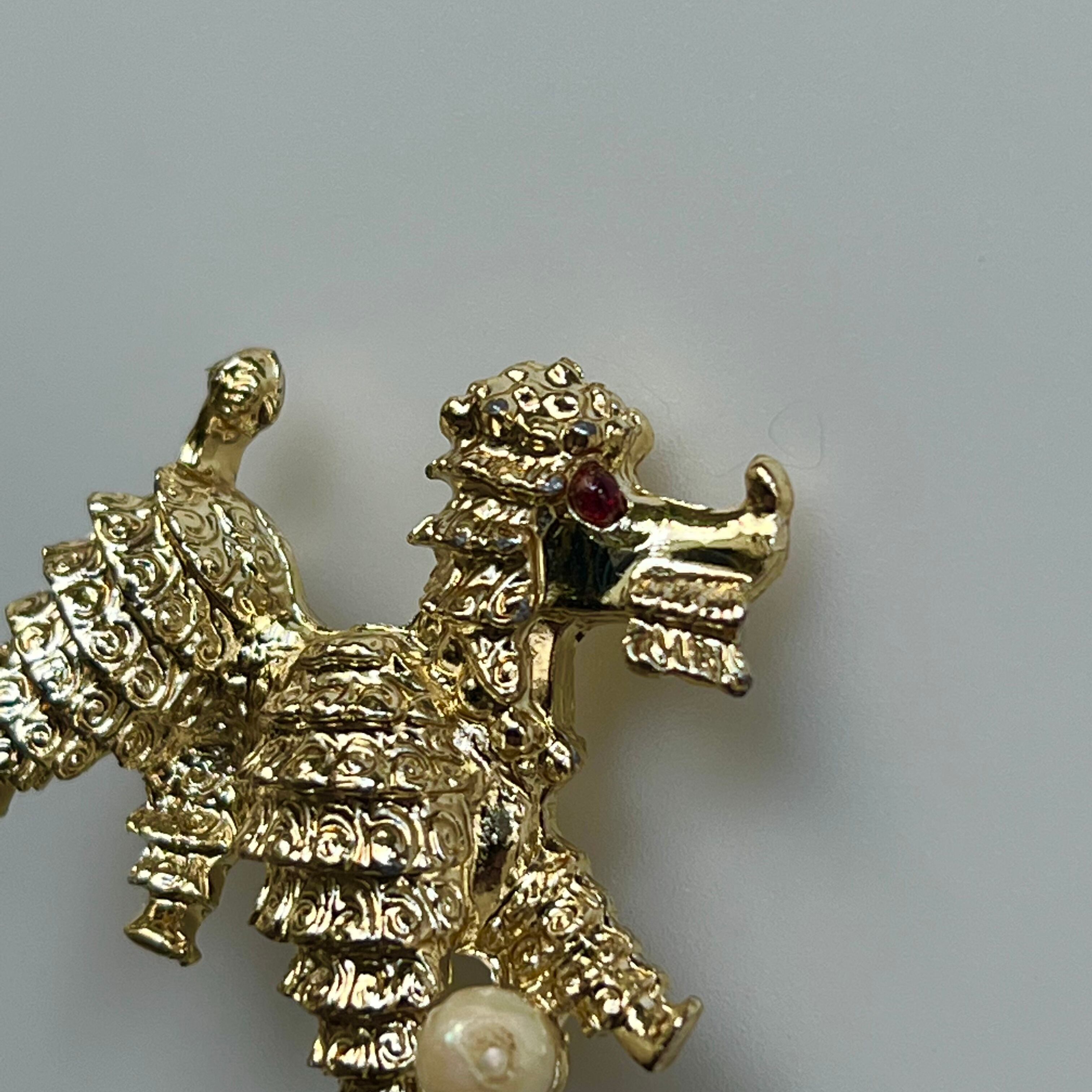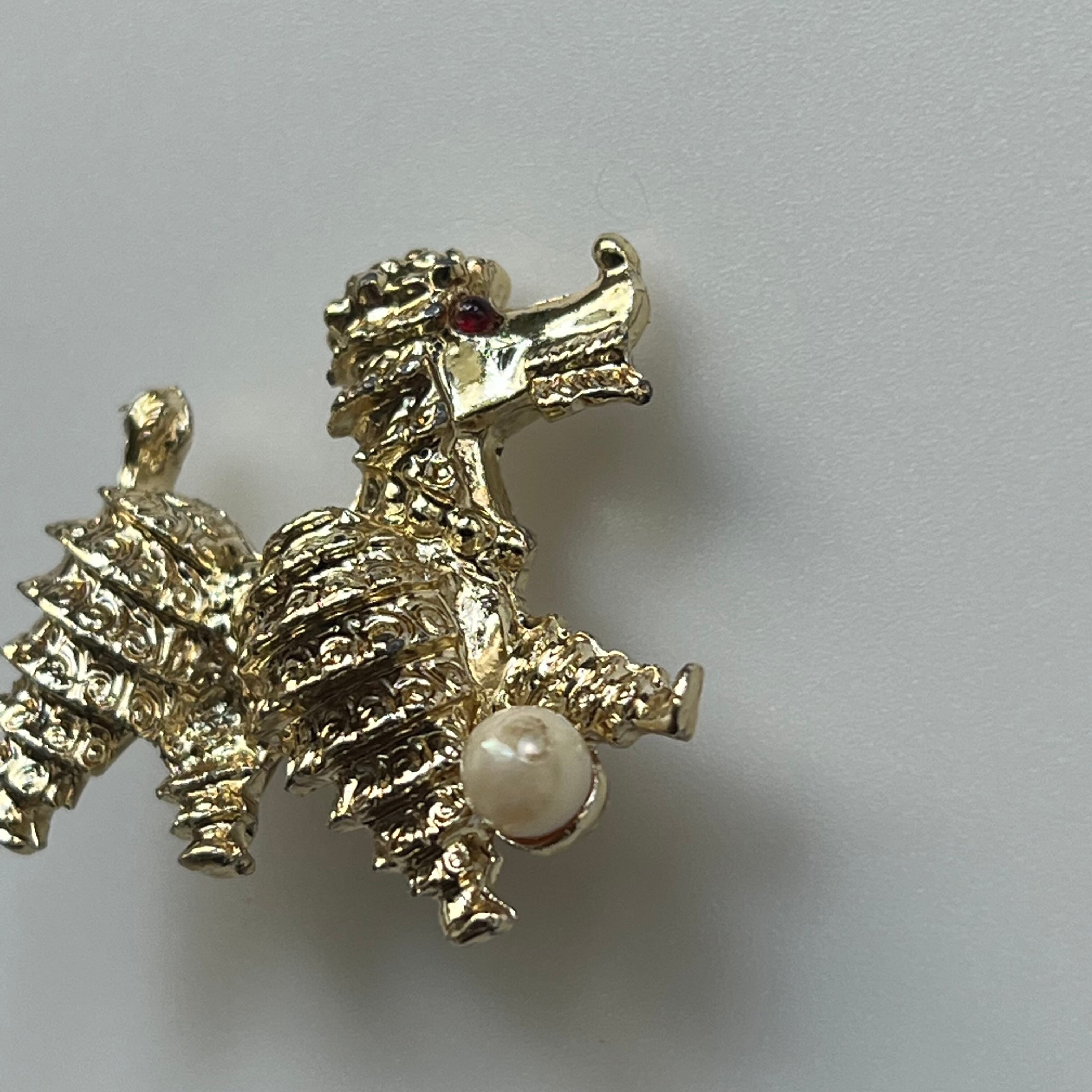 フェイクパールのボールで遊ぶプードルブローチ。