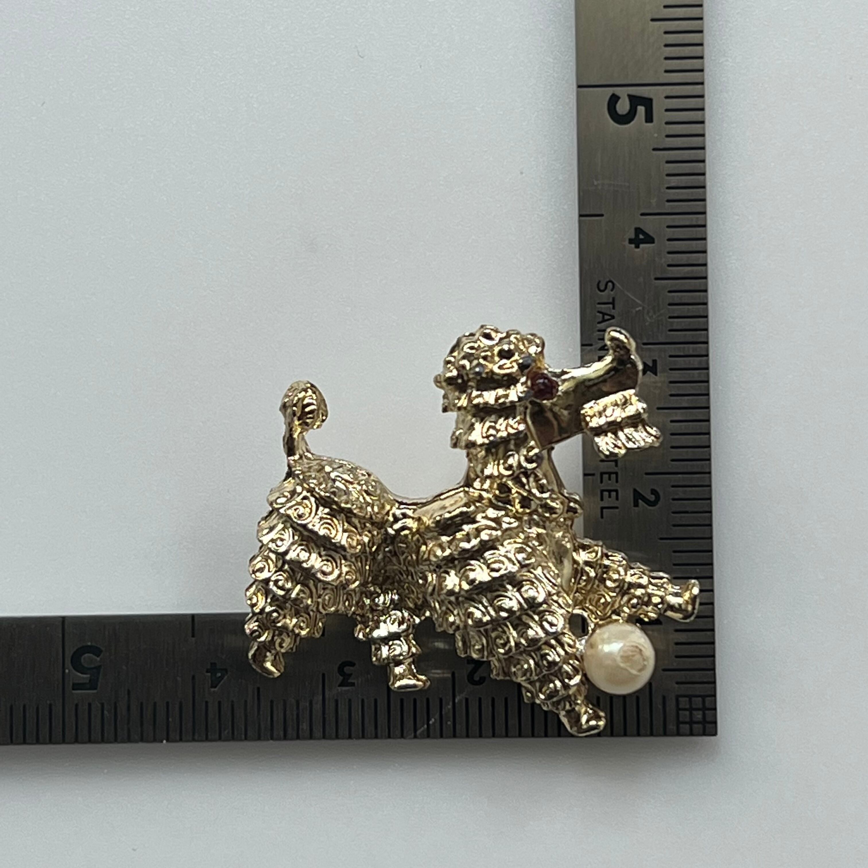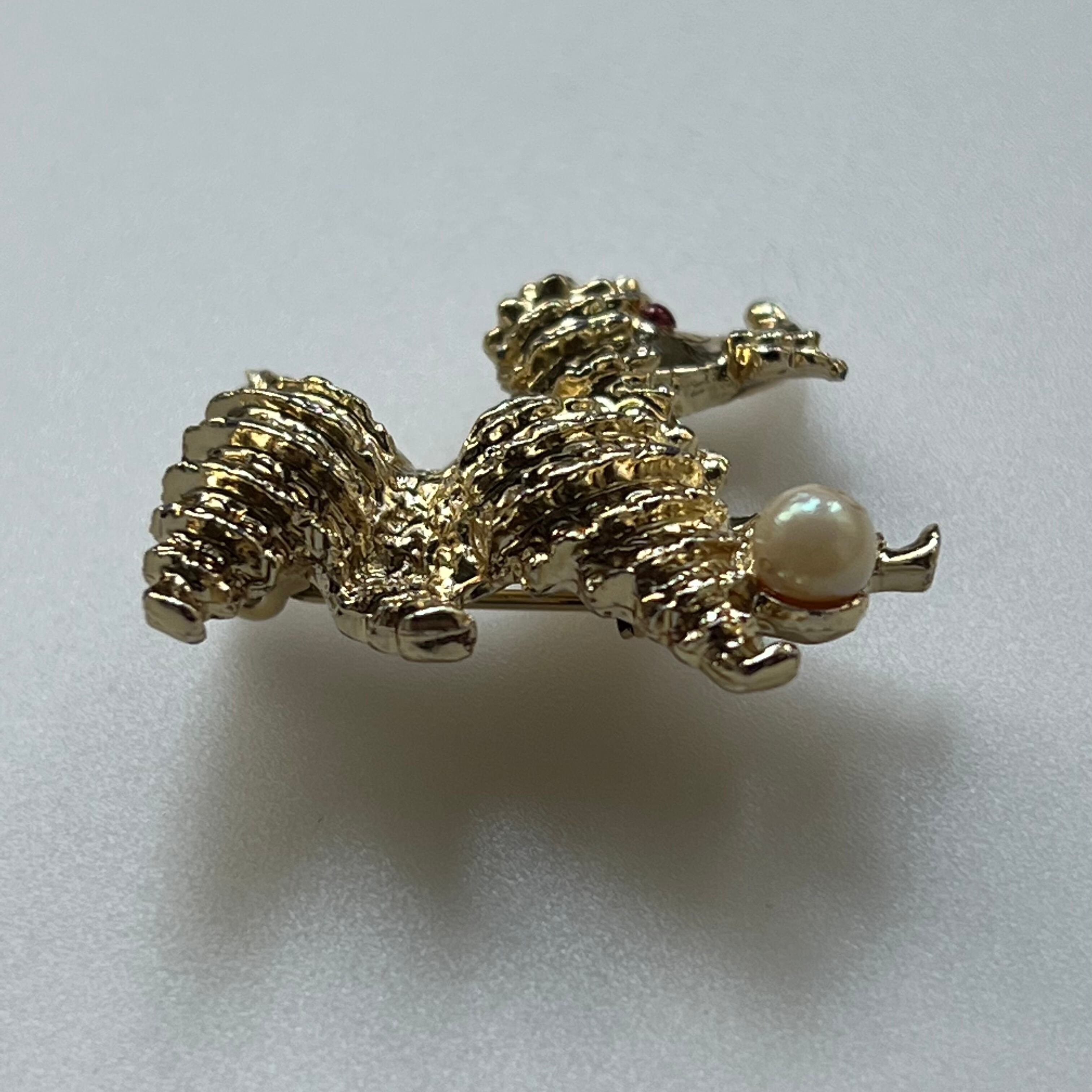 80's Poodle brooch playing with ball