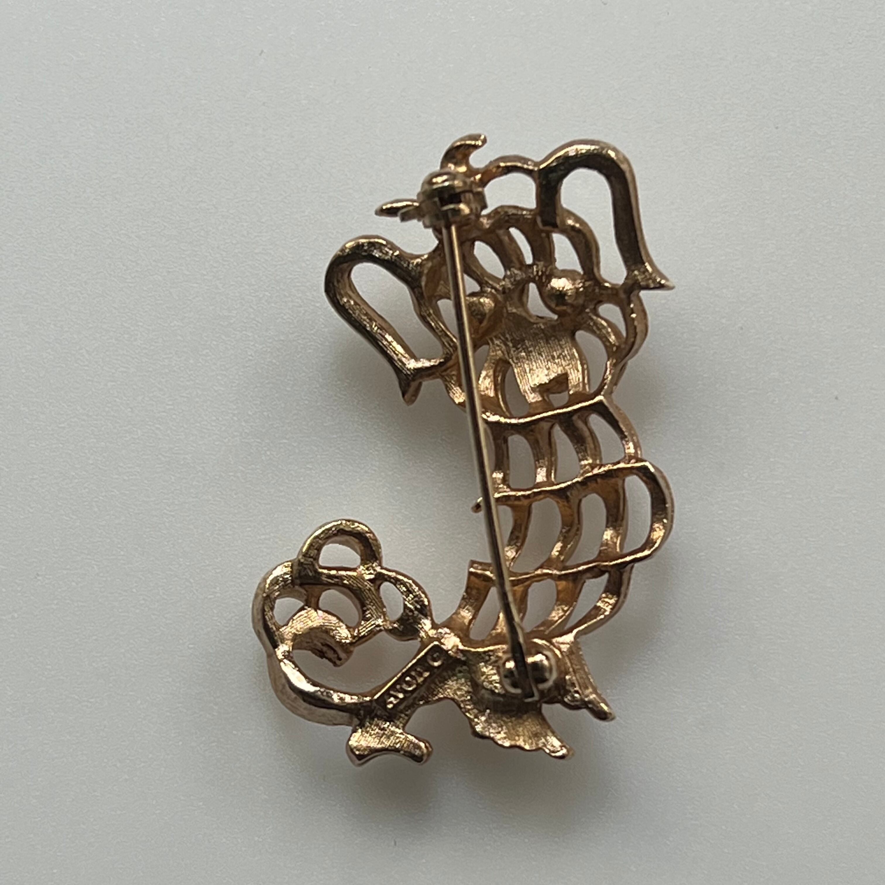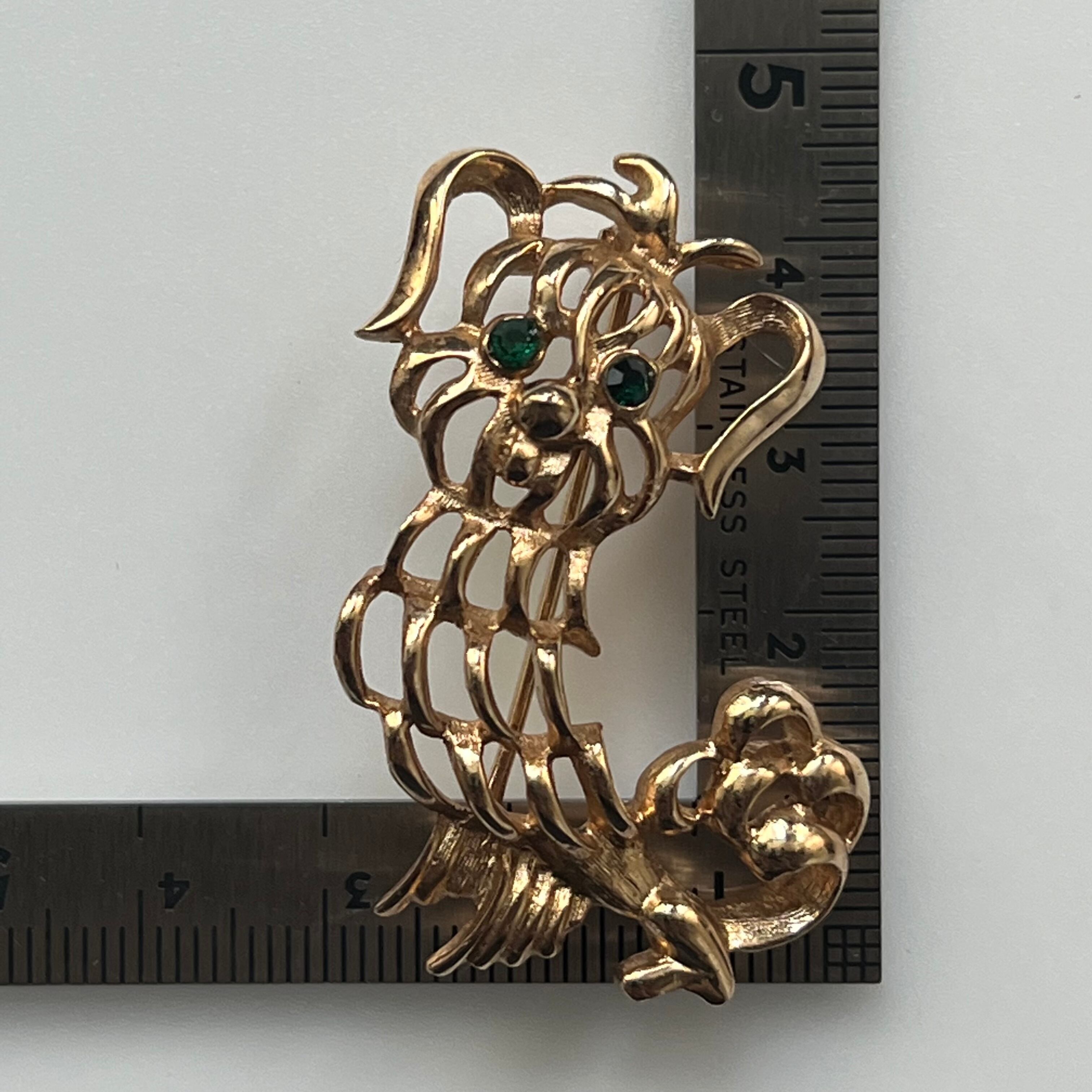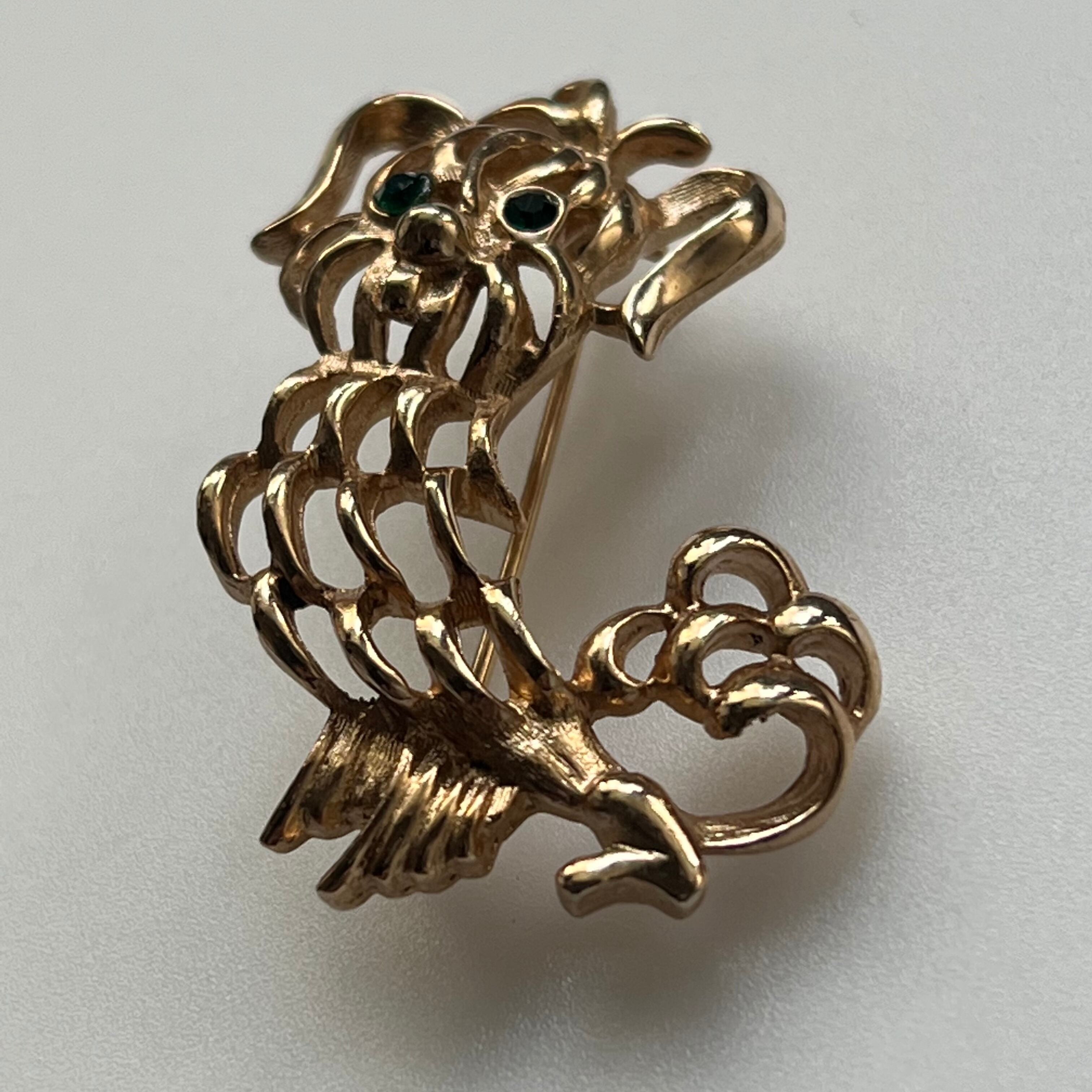 AVON 透かし細工のもふもふペキニーズブローチ。