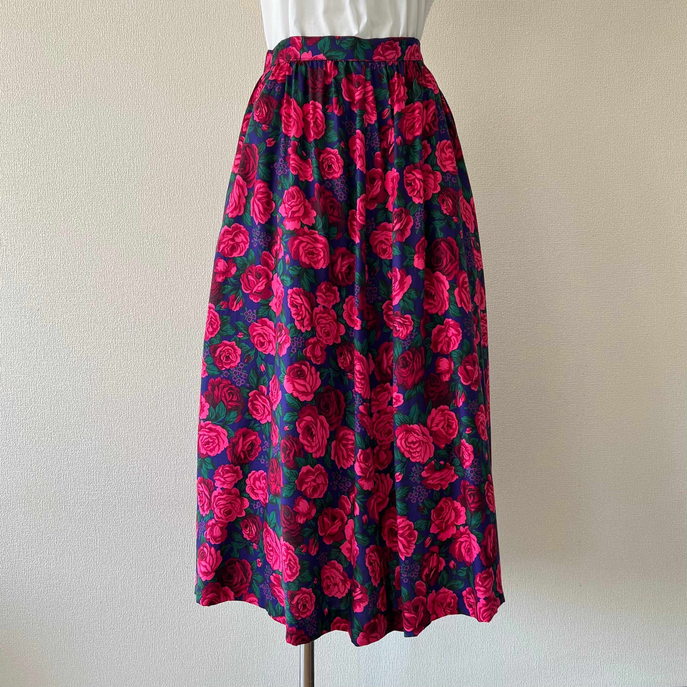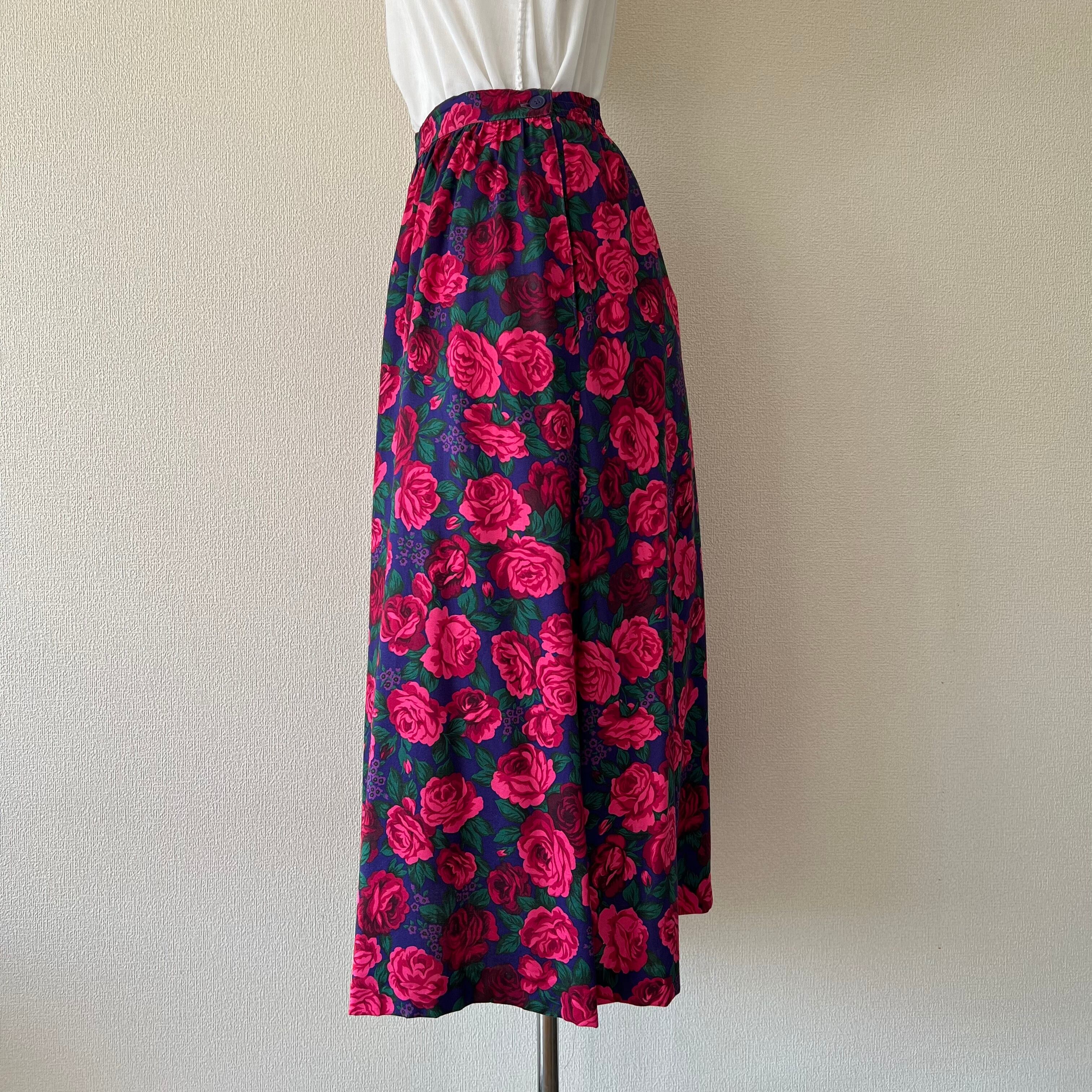 控えめなギャザー使いで広がり過ぎず、レーヨン素材特有のストンと落ちるシルエット。ウエスト後ろはゴム仕様。