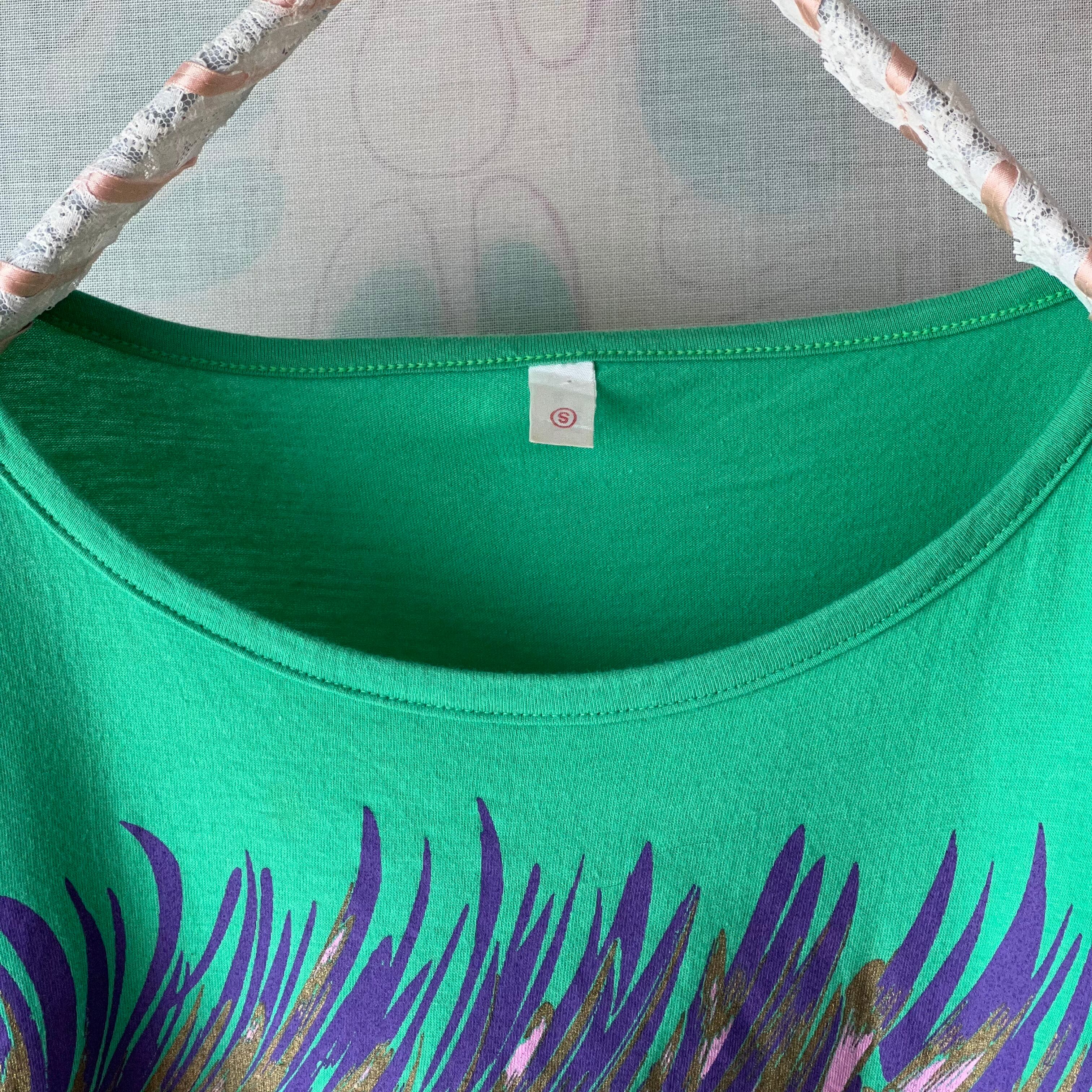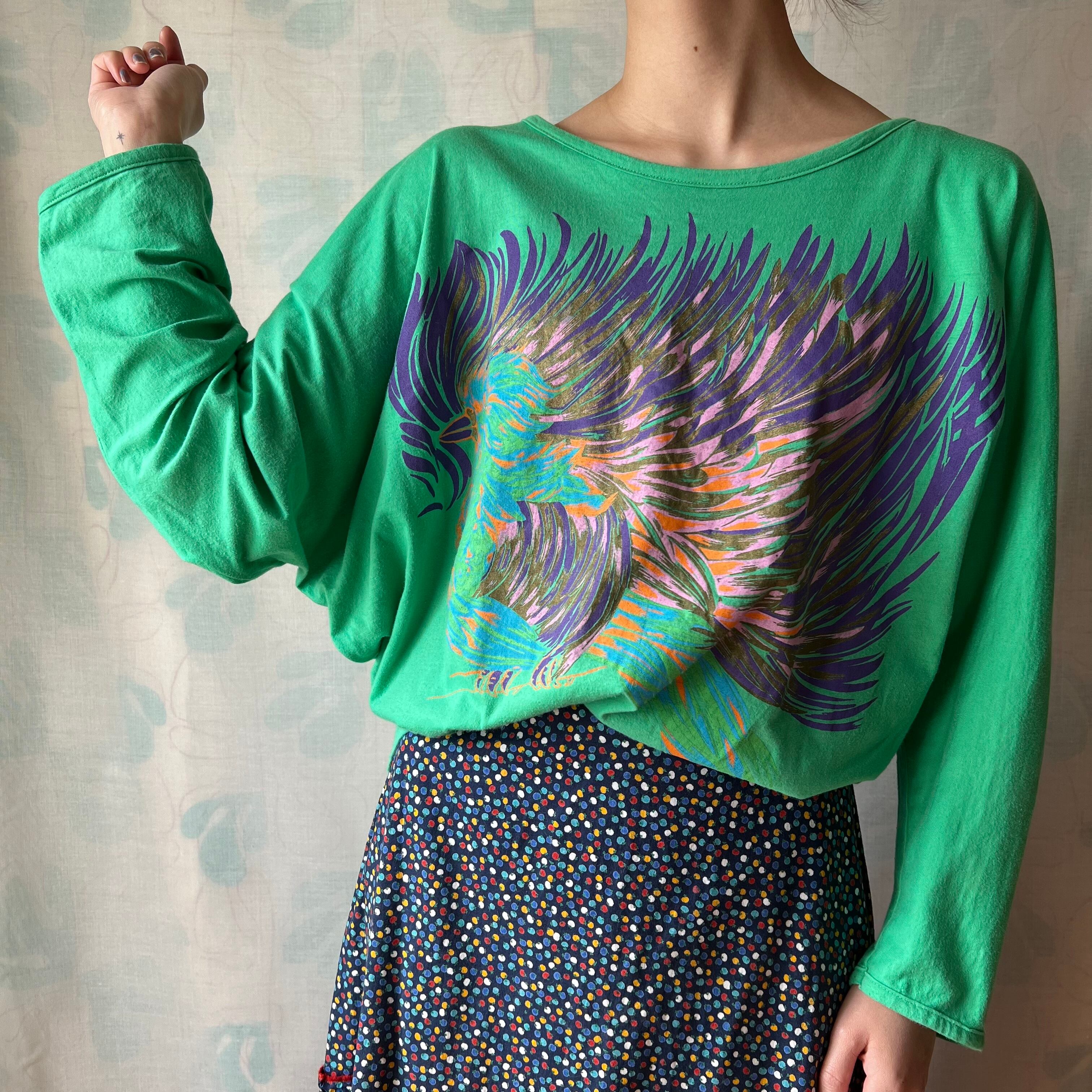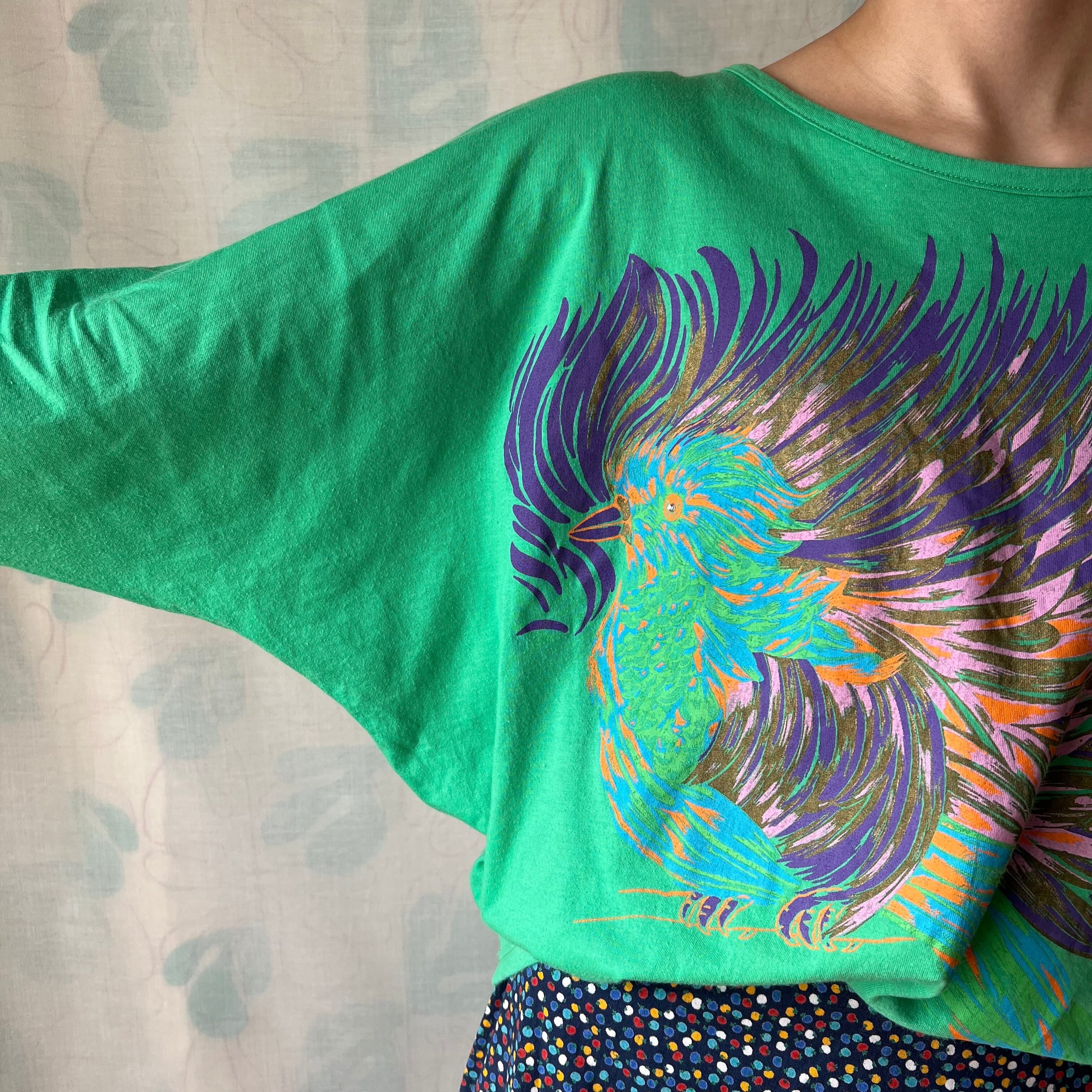 カラフルな鳥がプリントされたロンT。