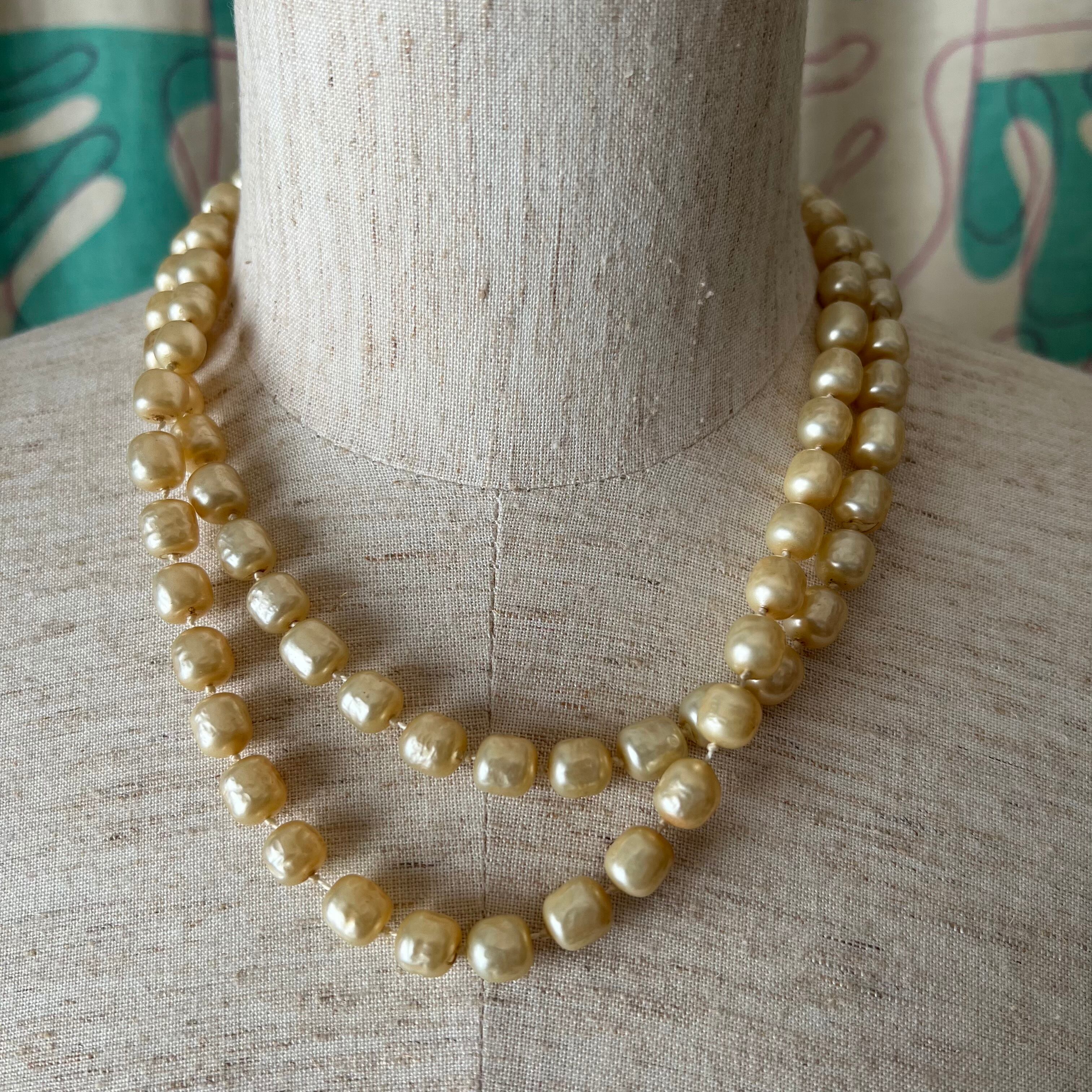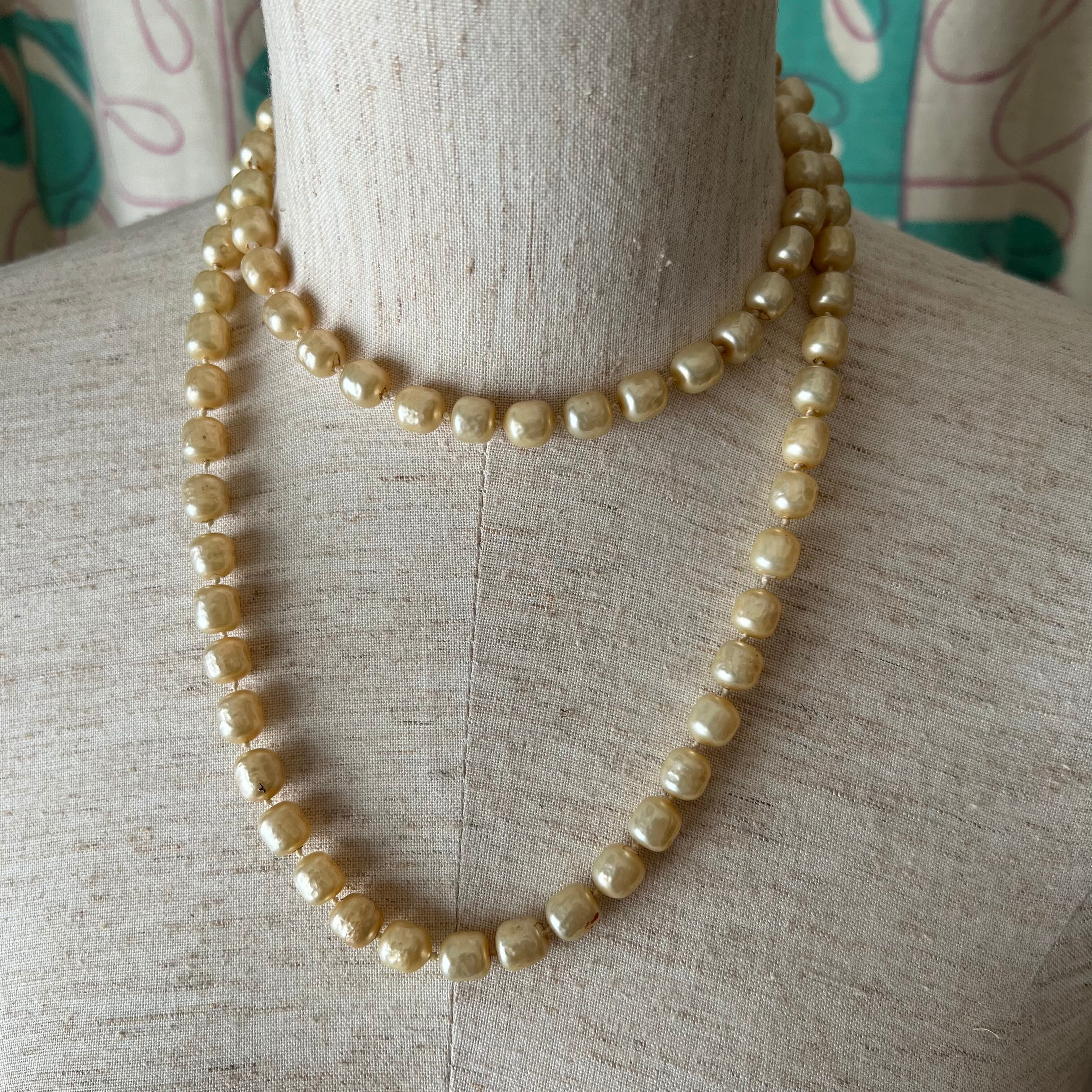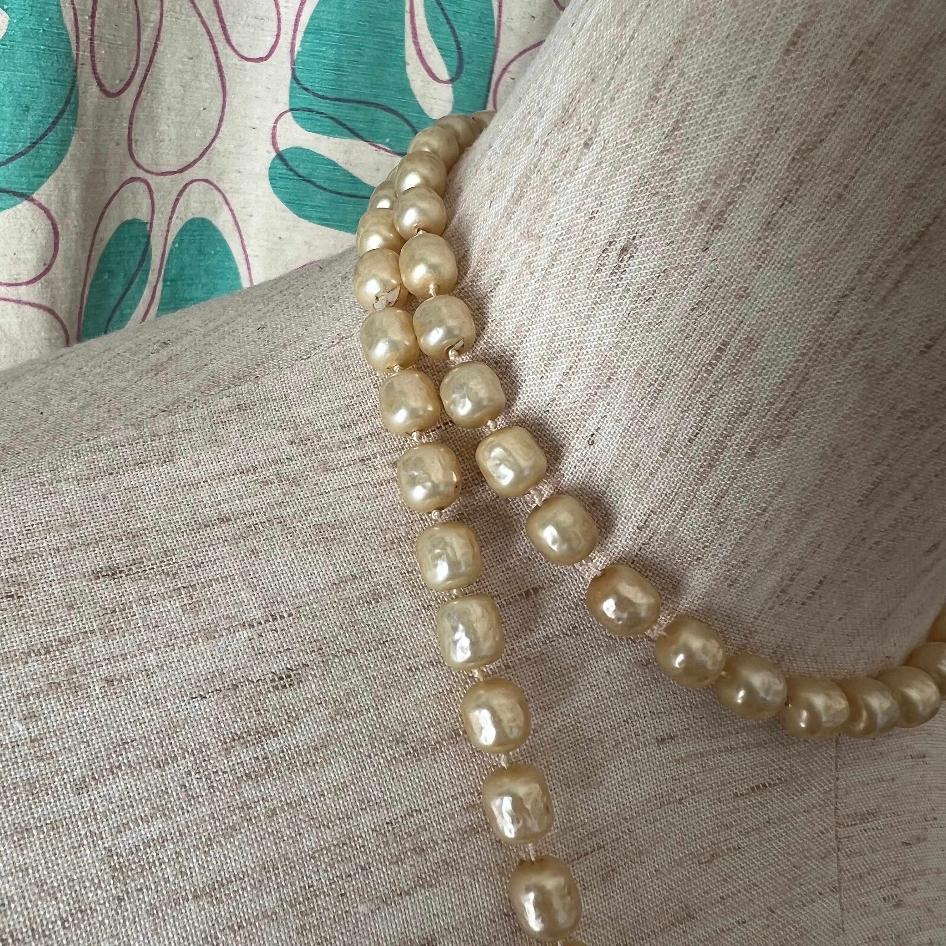 俵型の生成りフェイクパール一連のネックレス。コットンコードで繋がったシンプルな作りですがとても存在感があります。