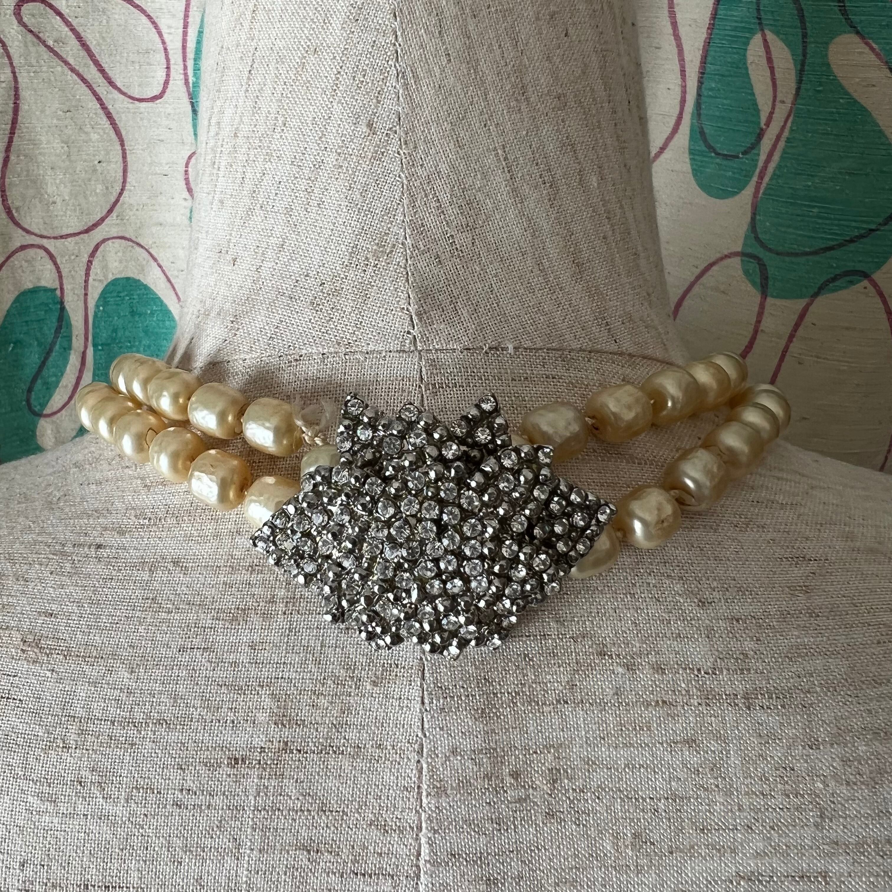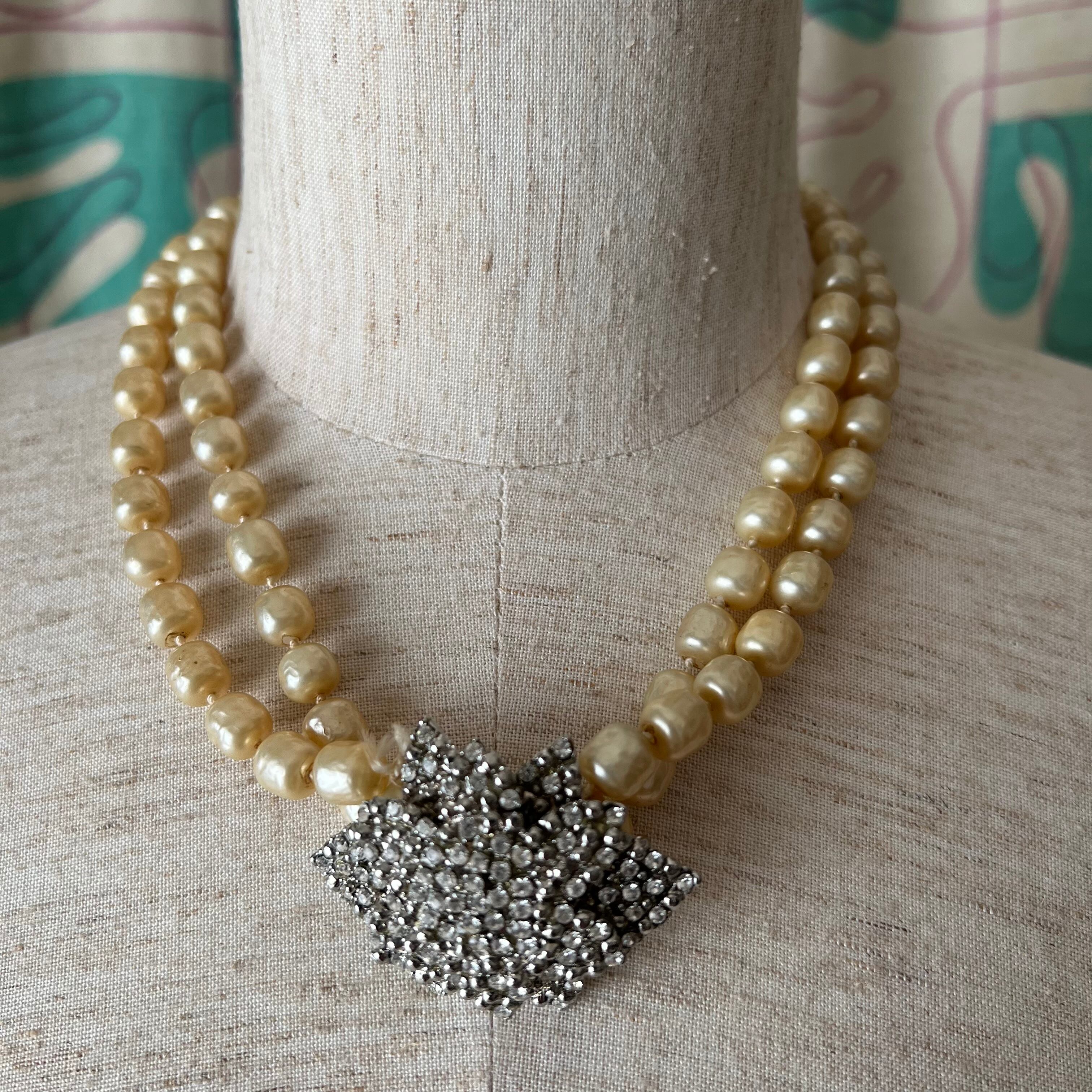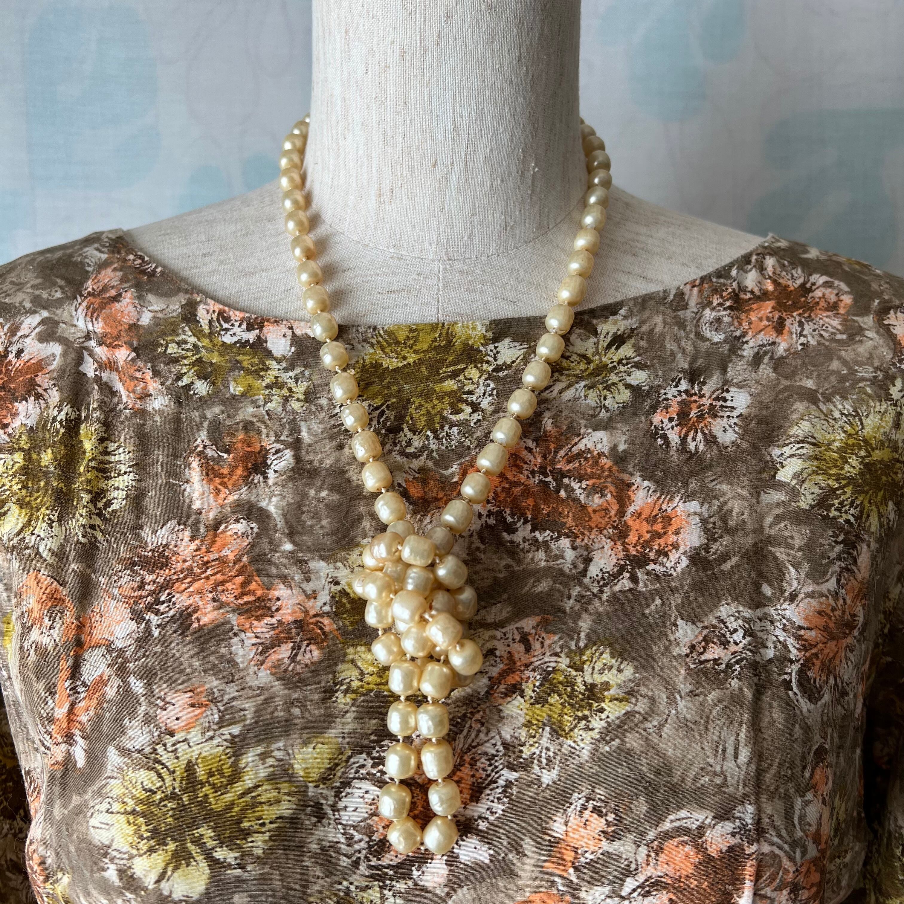 俵型の生成りフェイクパール一連のネックレス。コットンコードで繋がったシンプルな作りですがとても存在感があります。