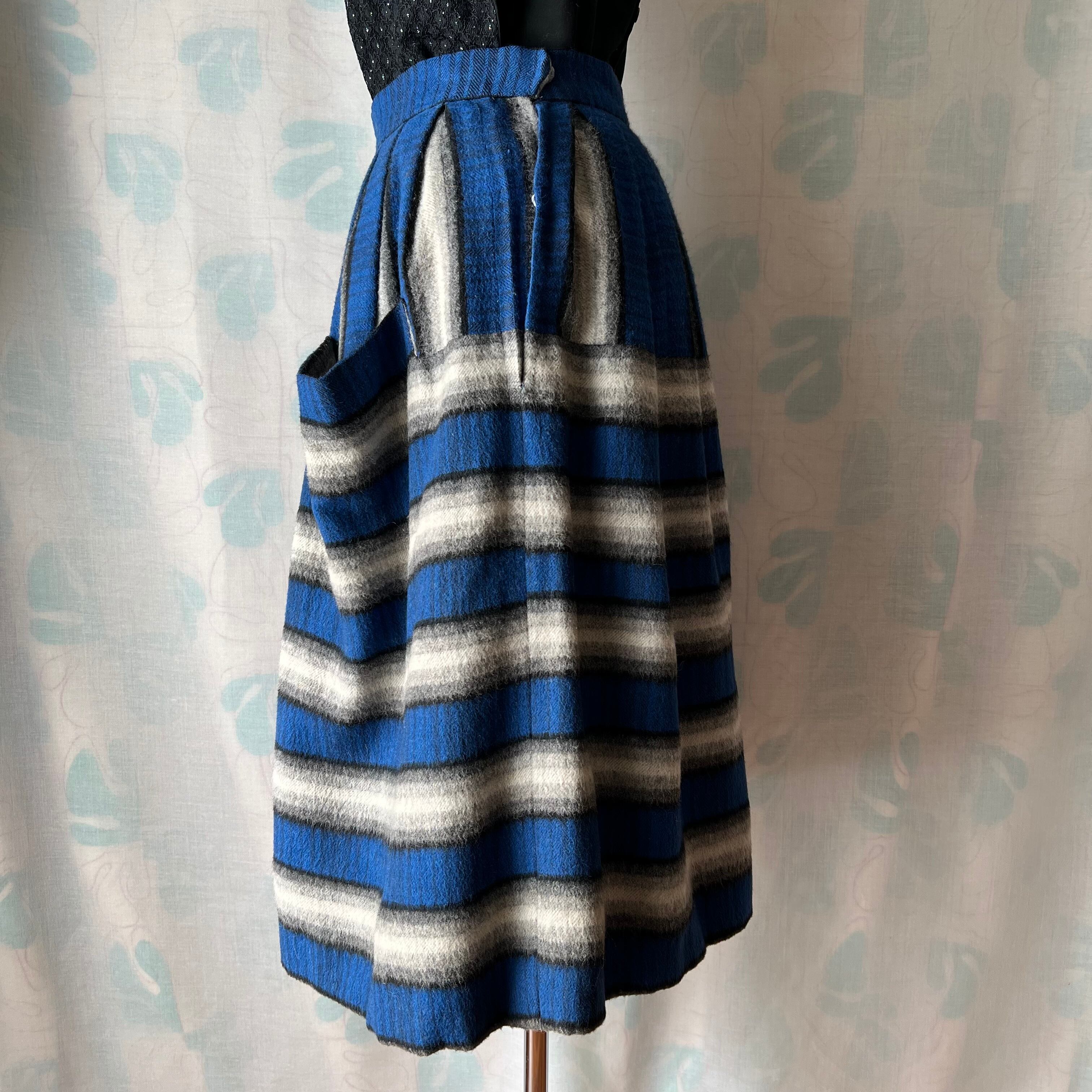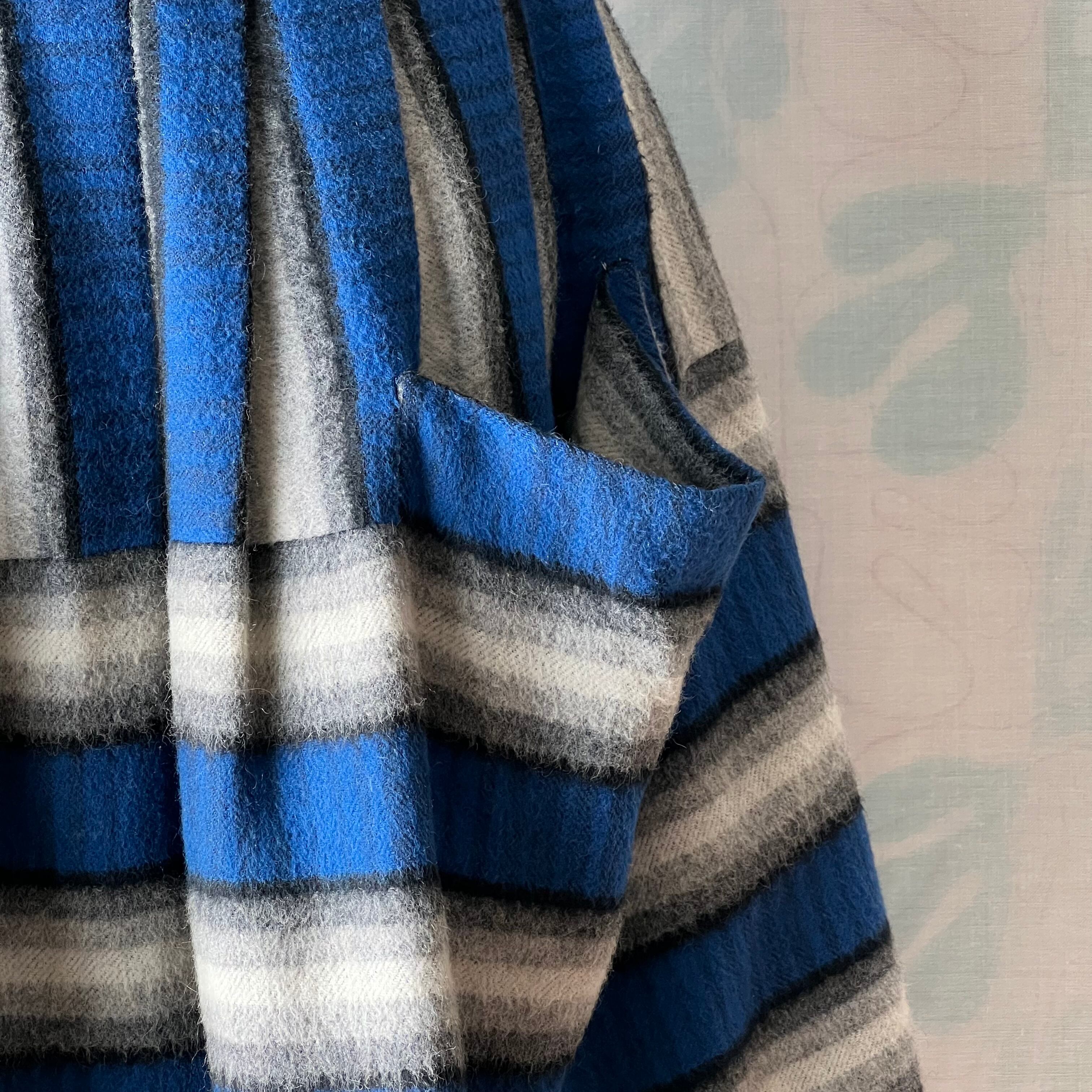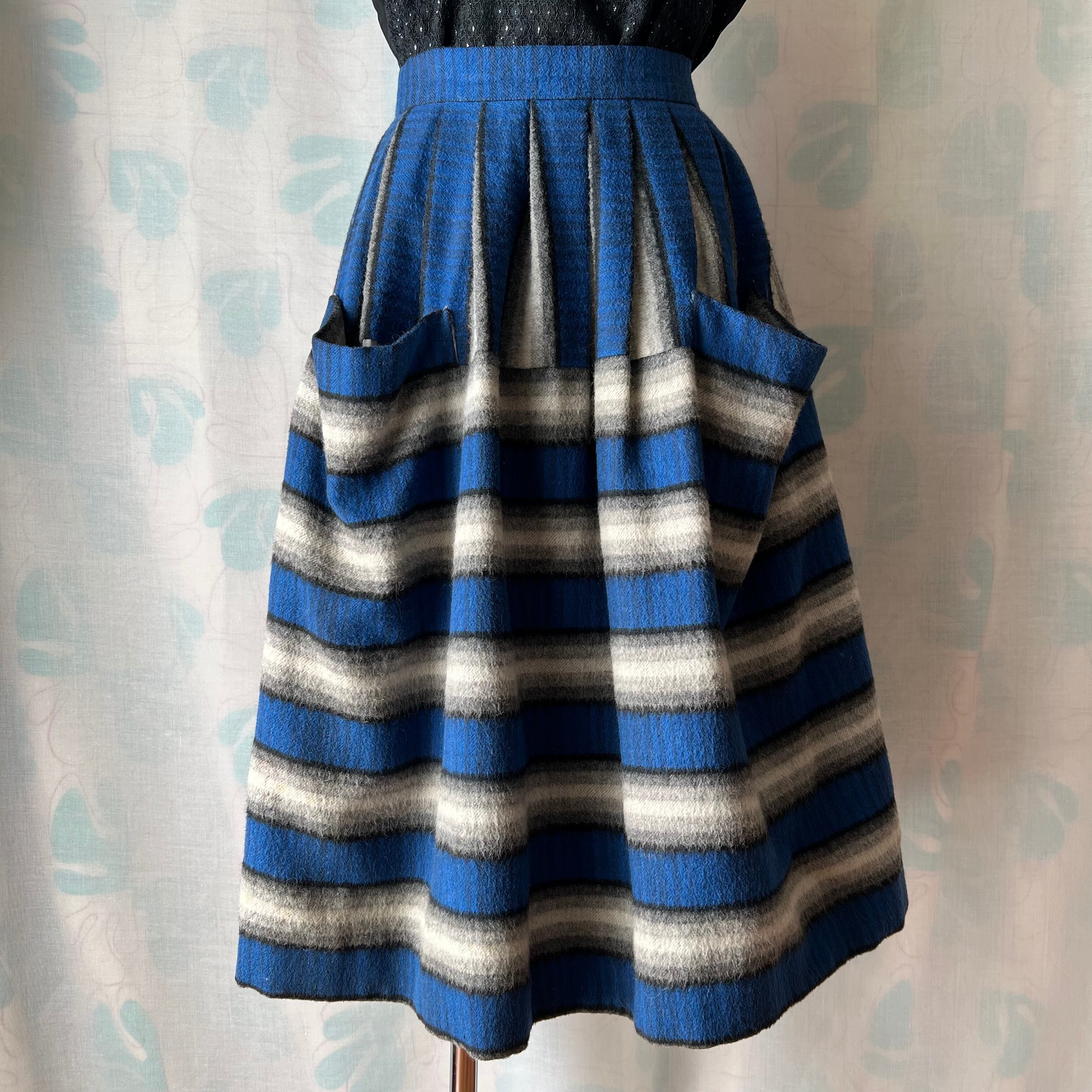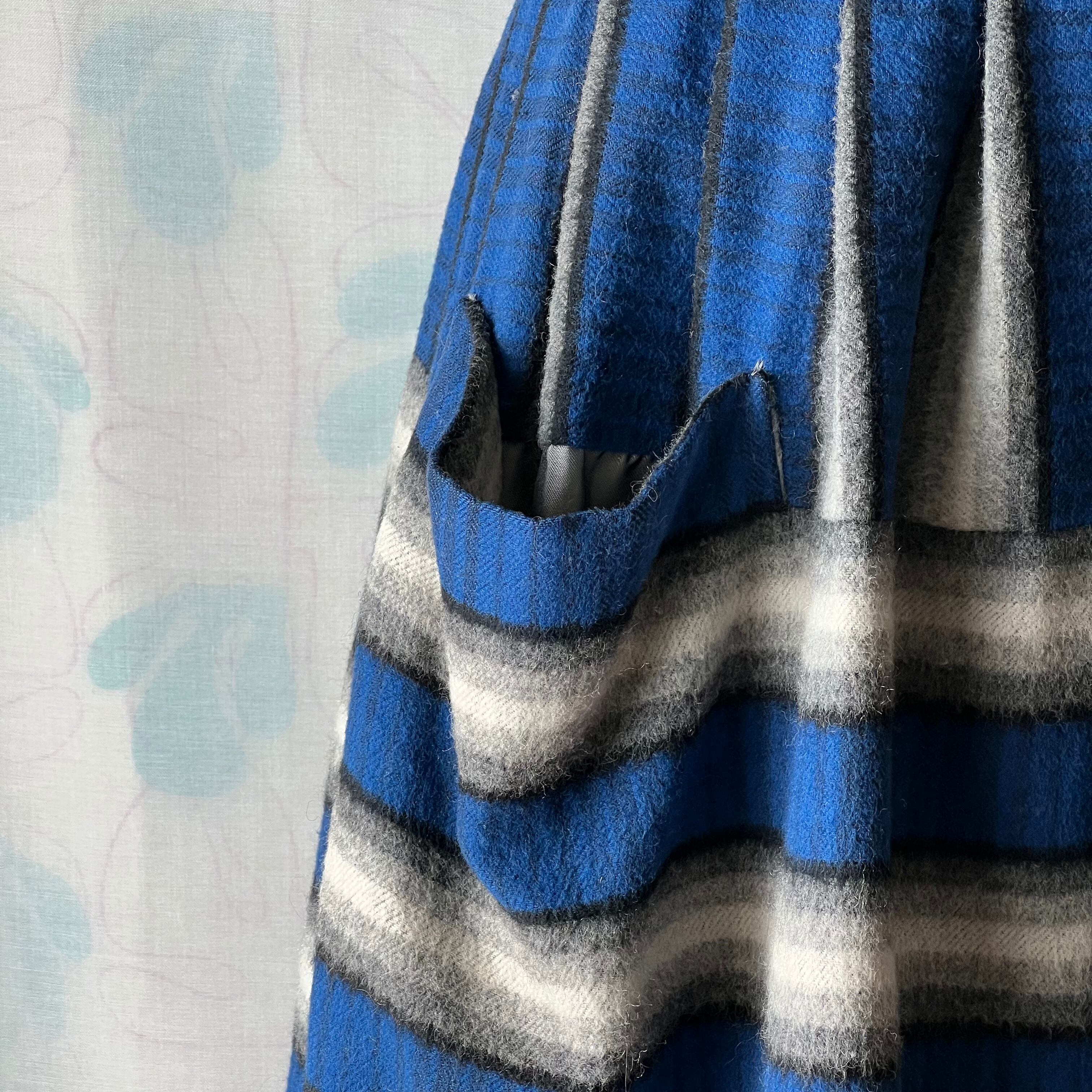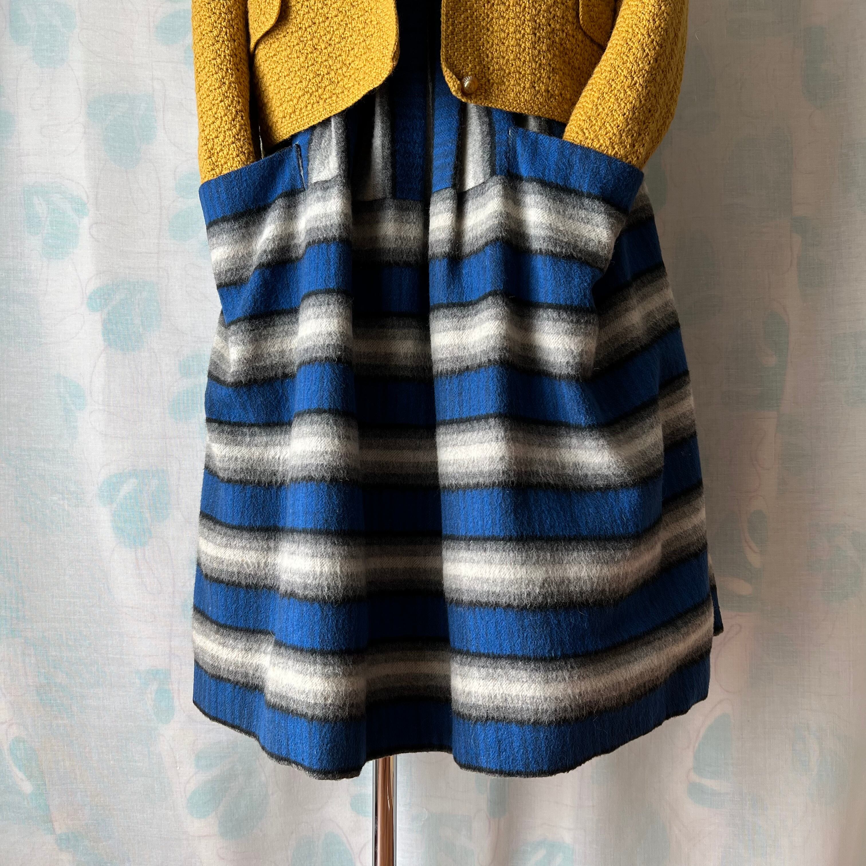 腰の辺りで切り替えたストライプ×ボーダー、この時代らしい大きめアウトポケットがとても可愛らしいです。