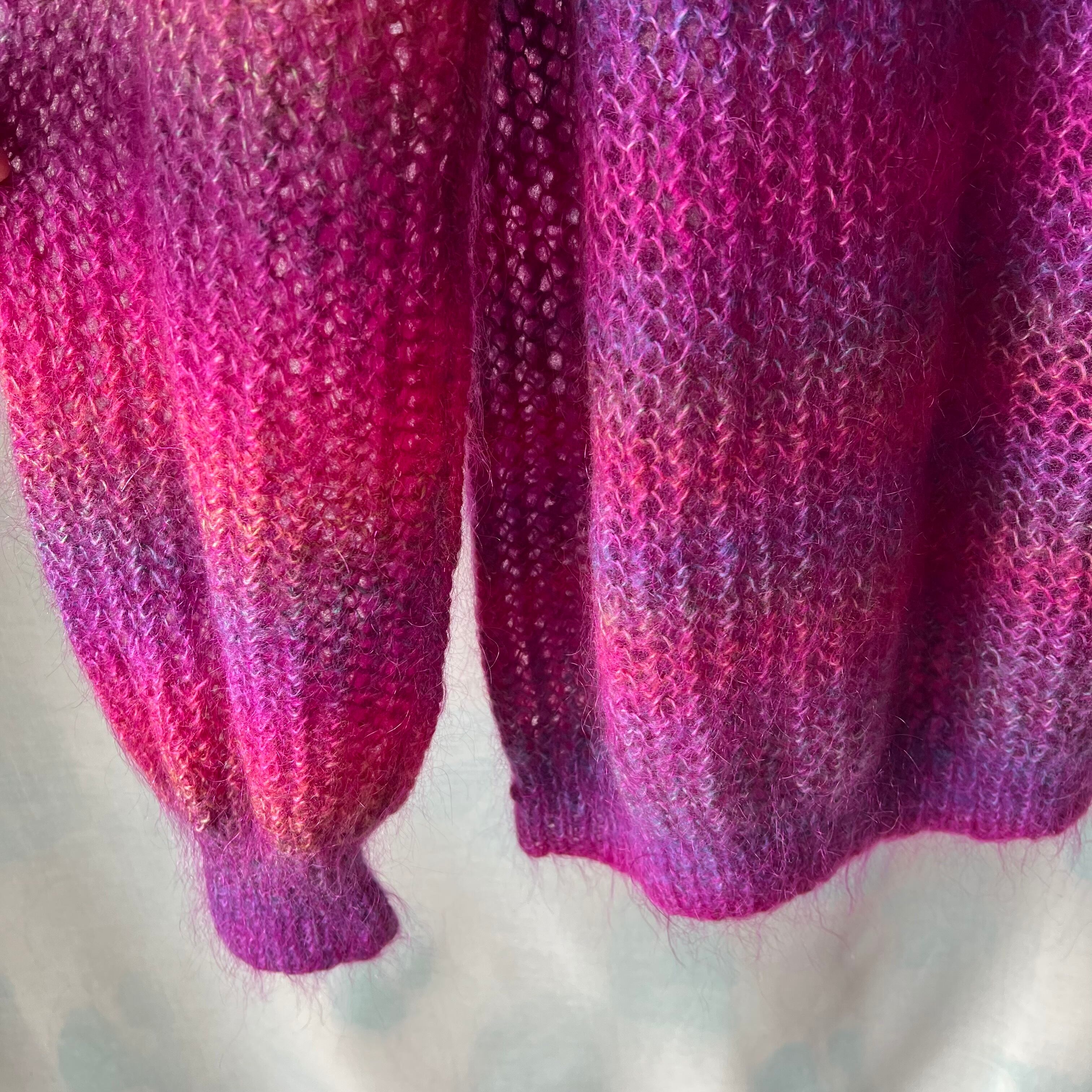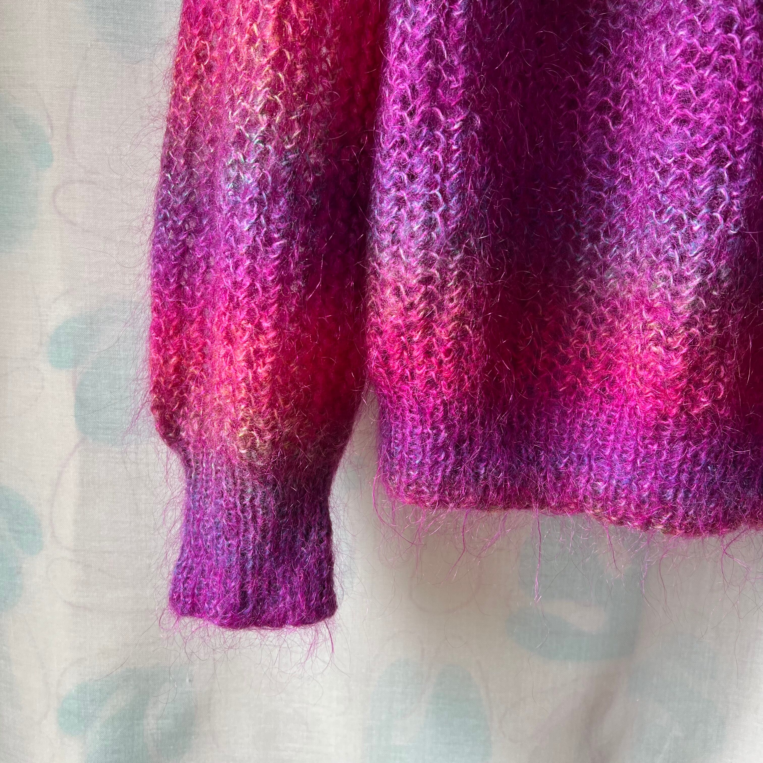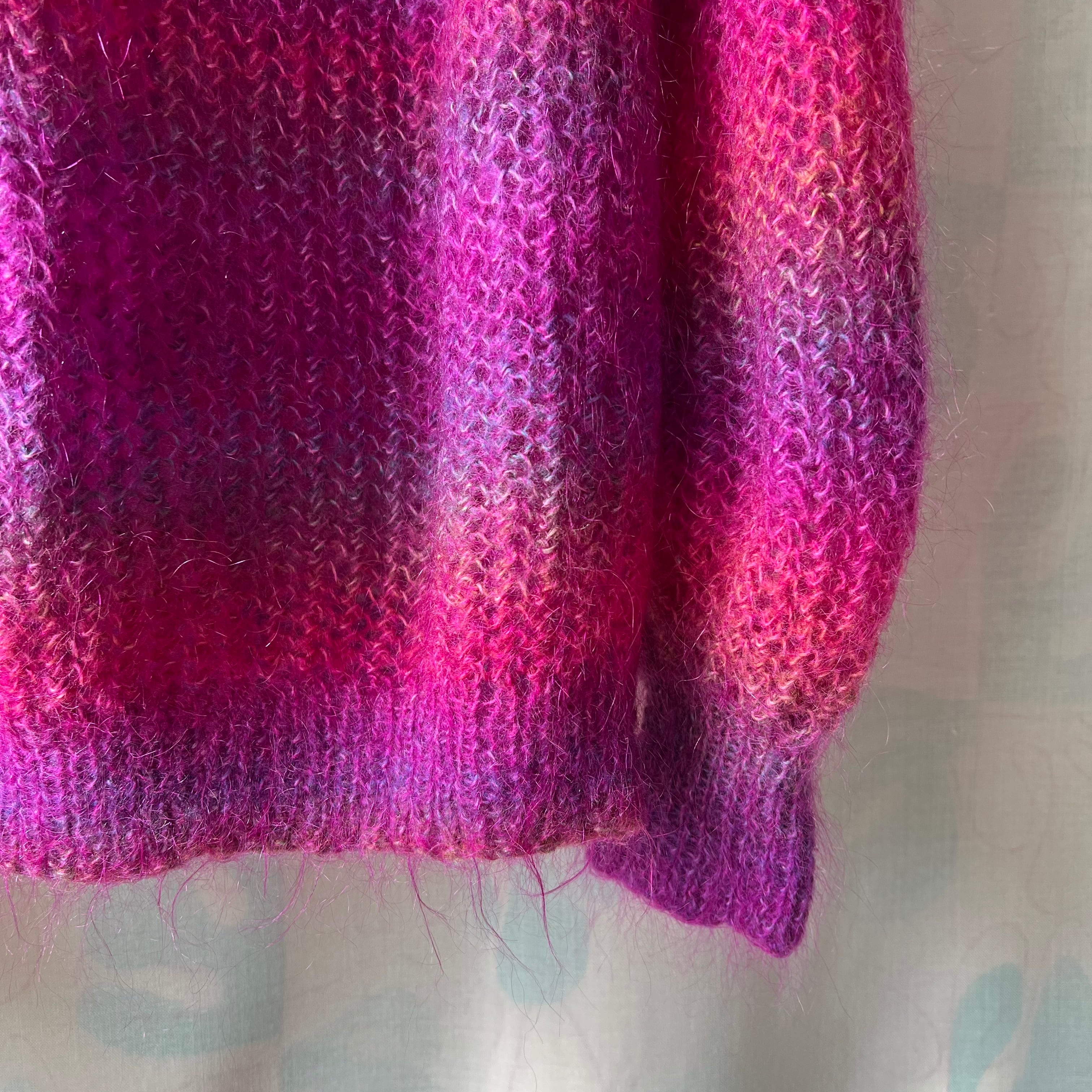 80's フューシャ×パープルグラデーションモヘアニットニットセーター。