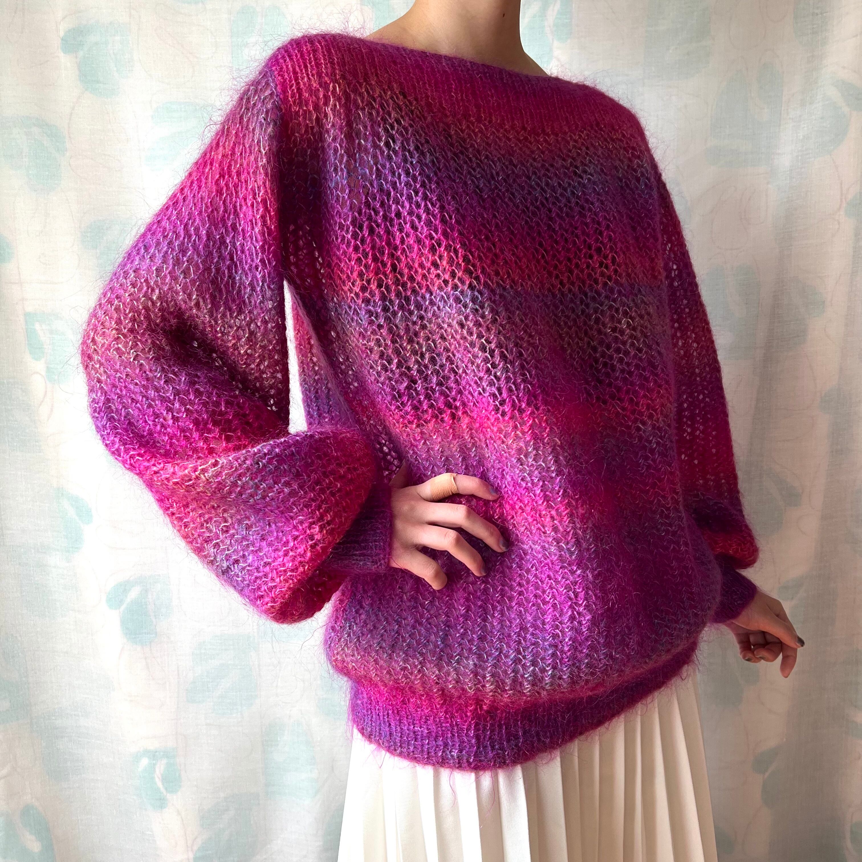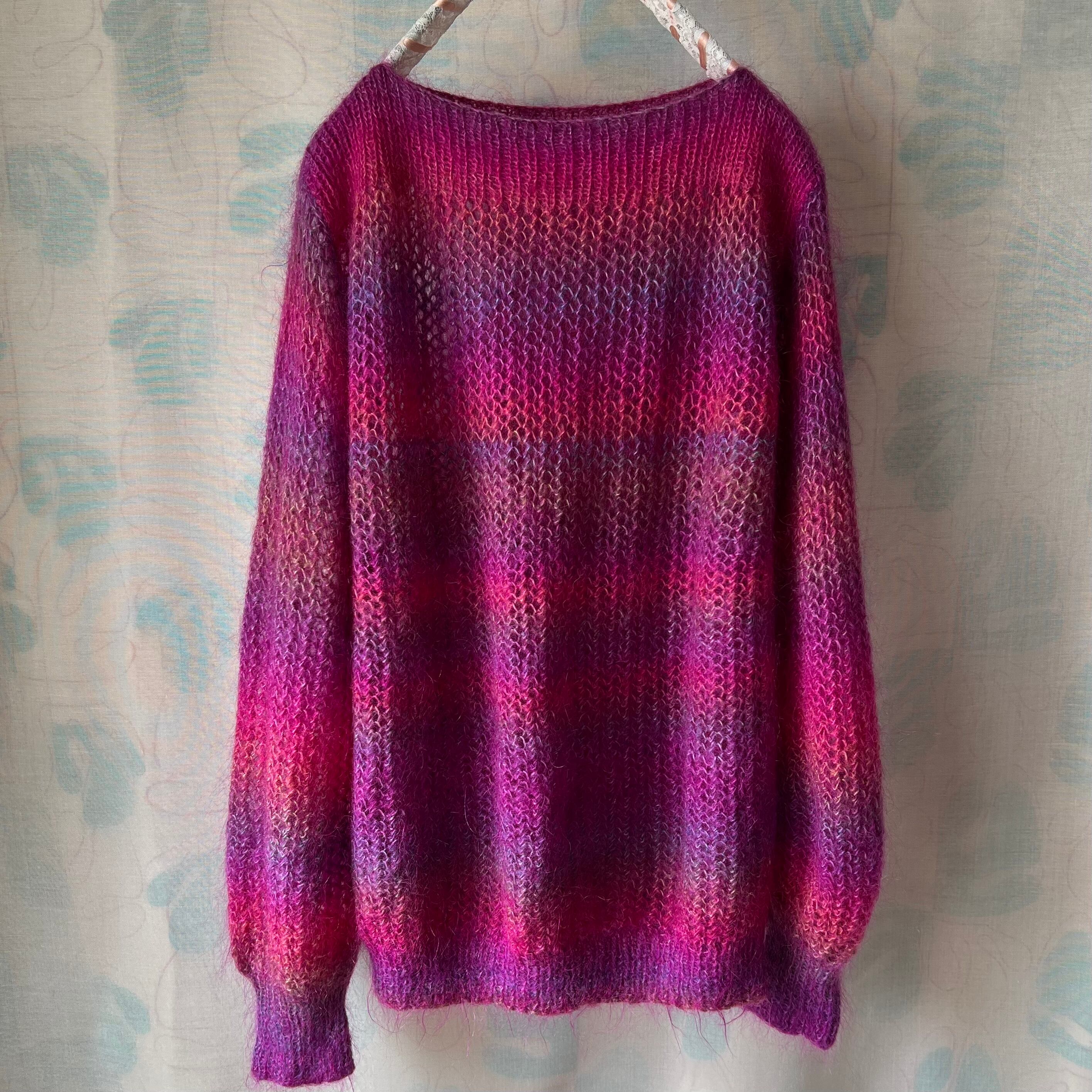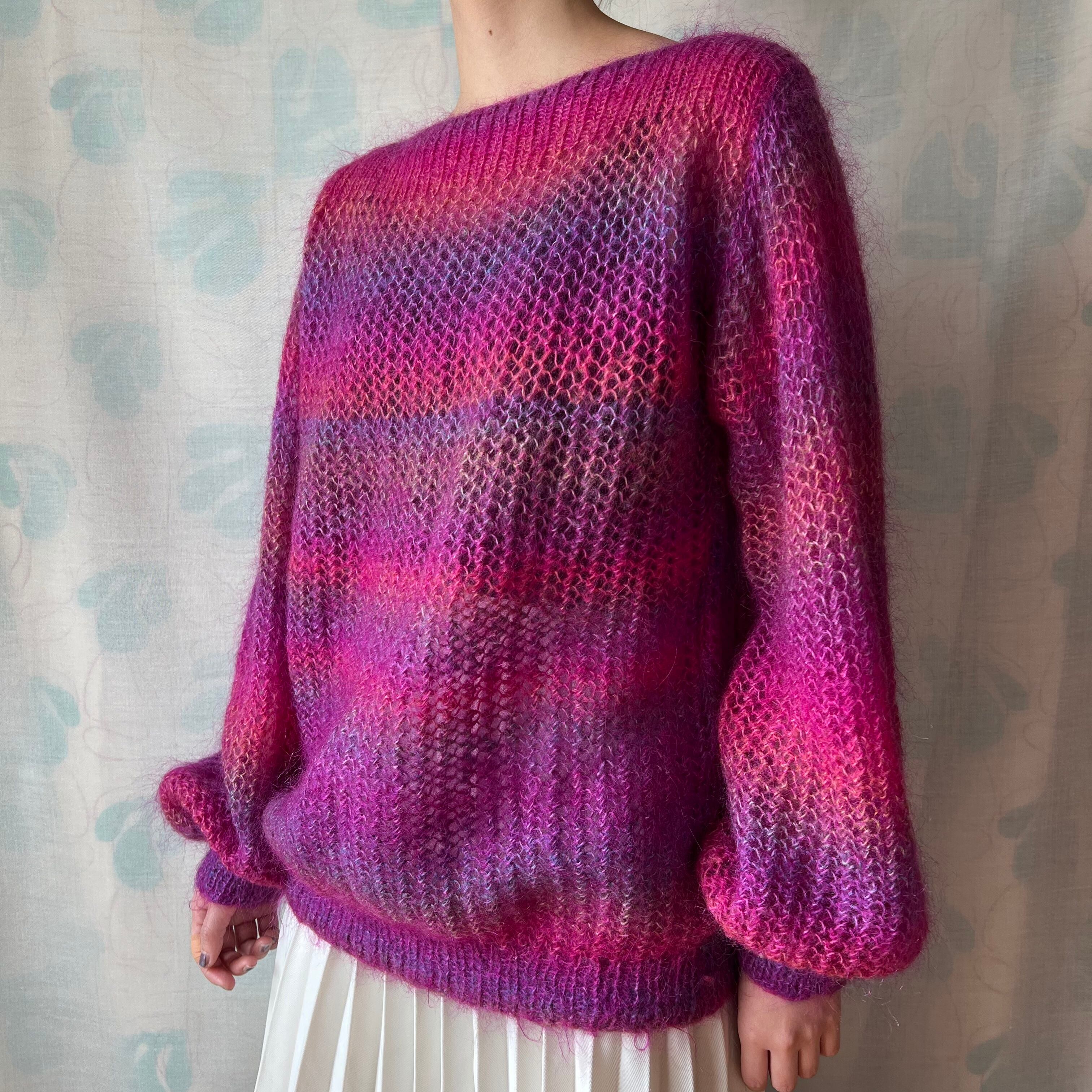 80's フューシャ×パープルグラデーションモヘアニットニットセーター。